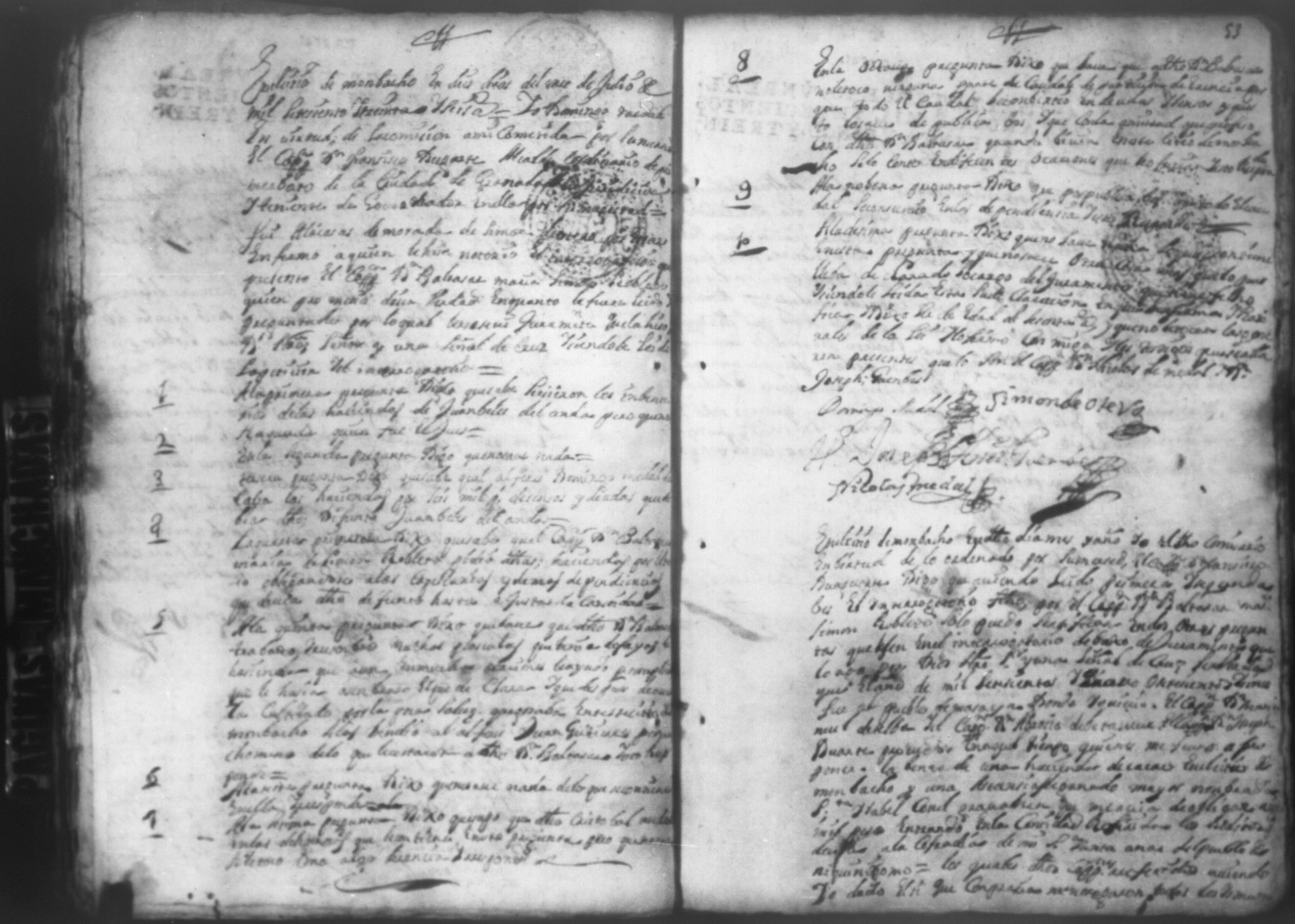 Alferez Alonzo Aldana de Meneses pide y demanda a Don Baltazar Maria de Simon Robleto, Granada 1743