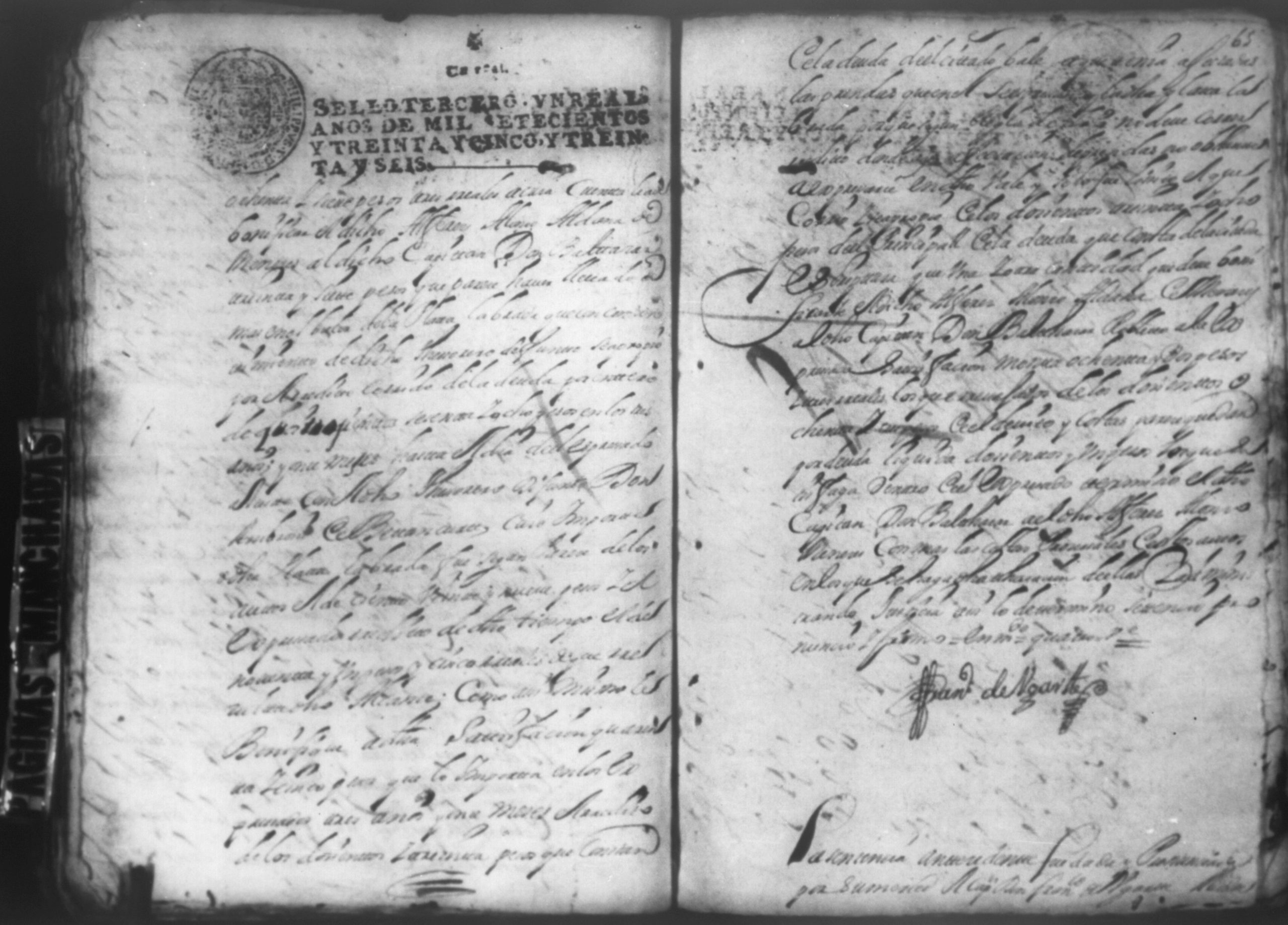 Temática: Granada año de 1743. El Alferez Alonzo Aldana de Meneses pide y demanda a Don Baltazar Maria de Simon Robleto el pago de docientos quince pesos, como Albacea del Licenciado Don Simon Baesa Guerra de la Vega, Clerigo Presbitero que fue de este obispado a el Capitan