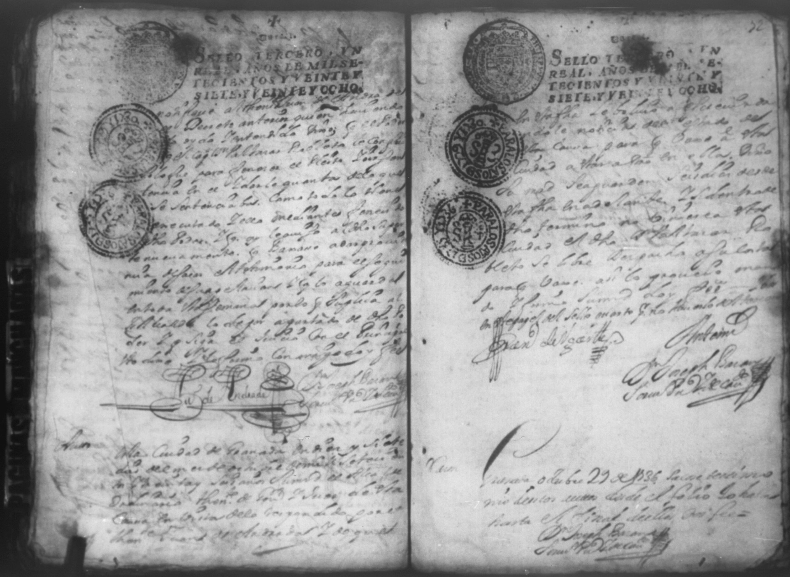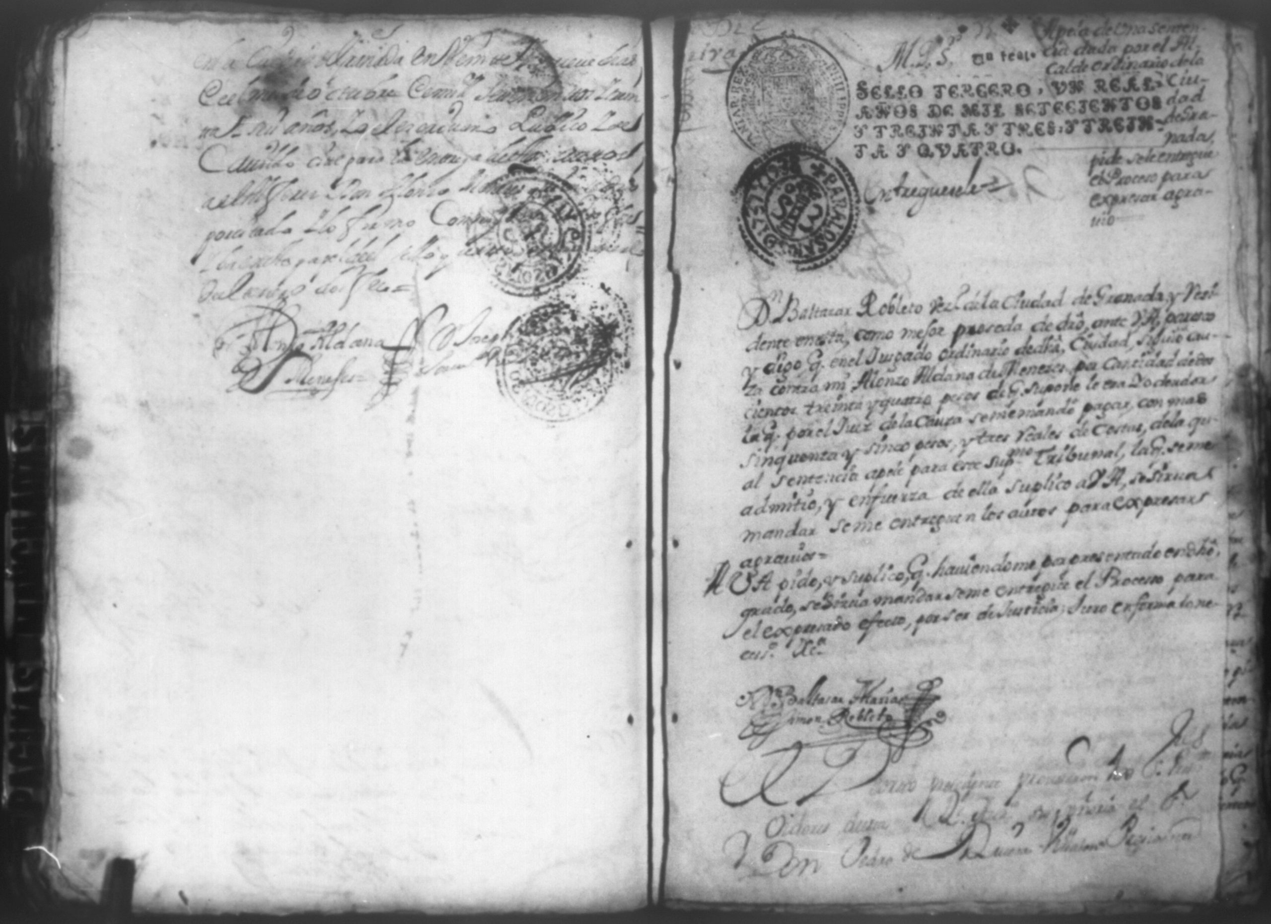 Alferez Alonzo Aldana de Meneses pide y demanda a Don Baltazar Maria de Simon Robleto, Granada 1743