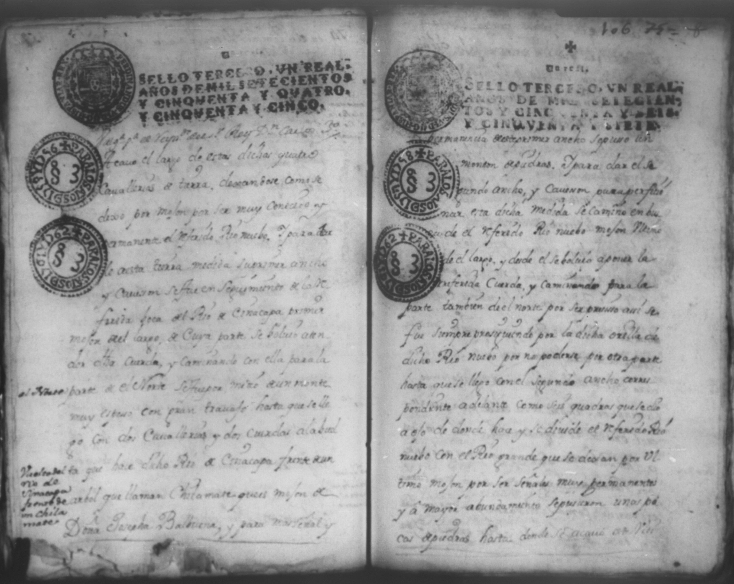Temática: Audiencia Leon 1780. Andres Altamirano sobre exceso de 282 caballerias de tierras en la hacienda de Rio Grande.