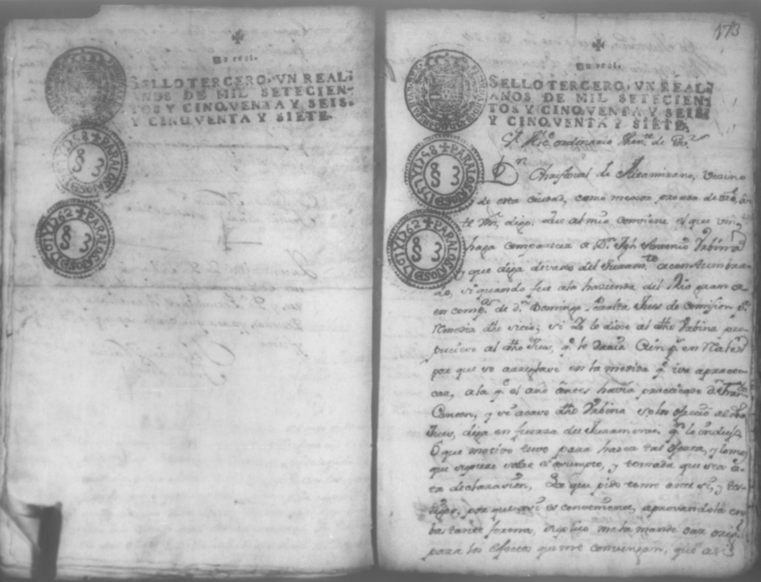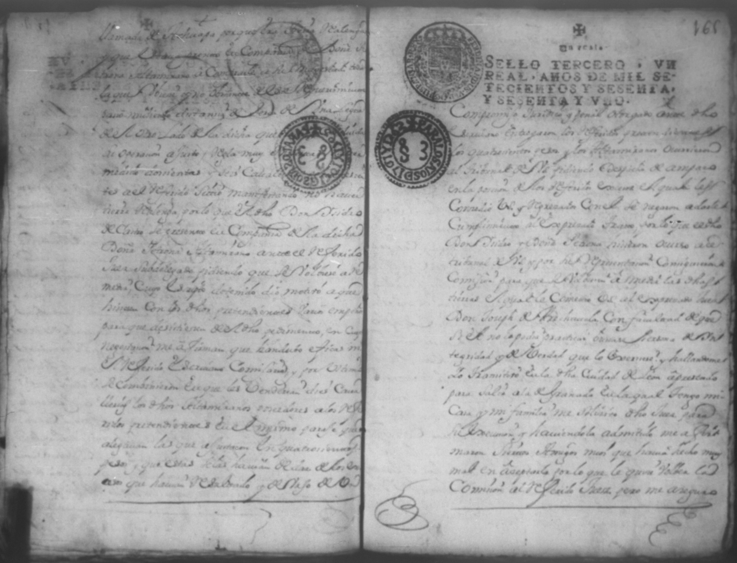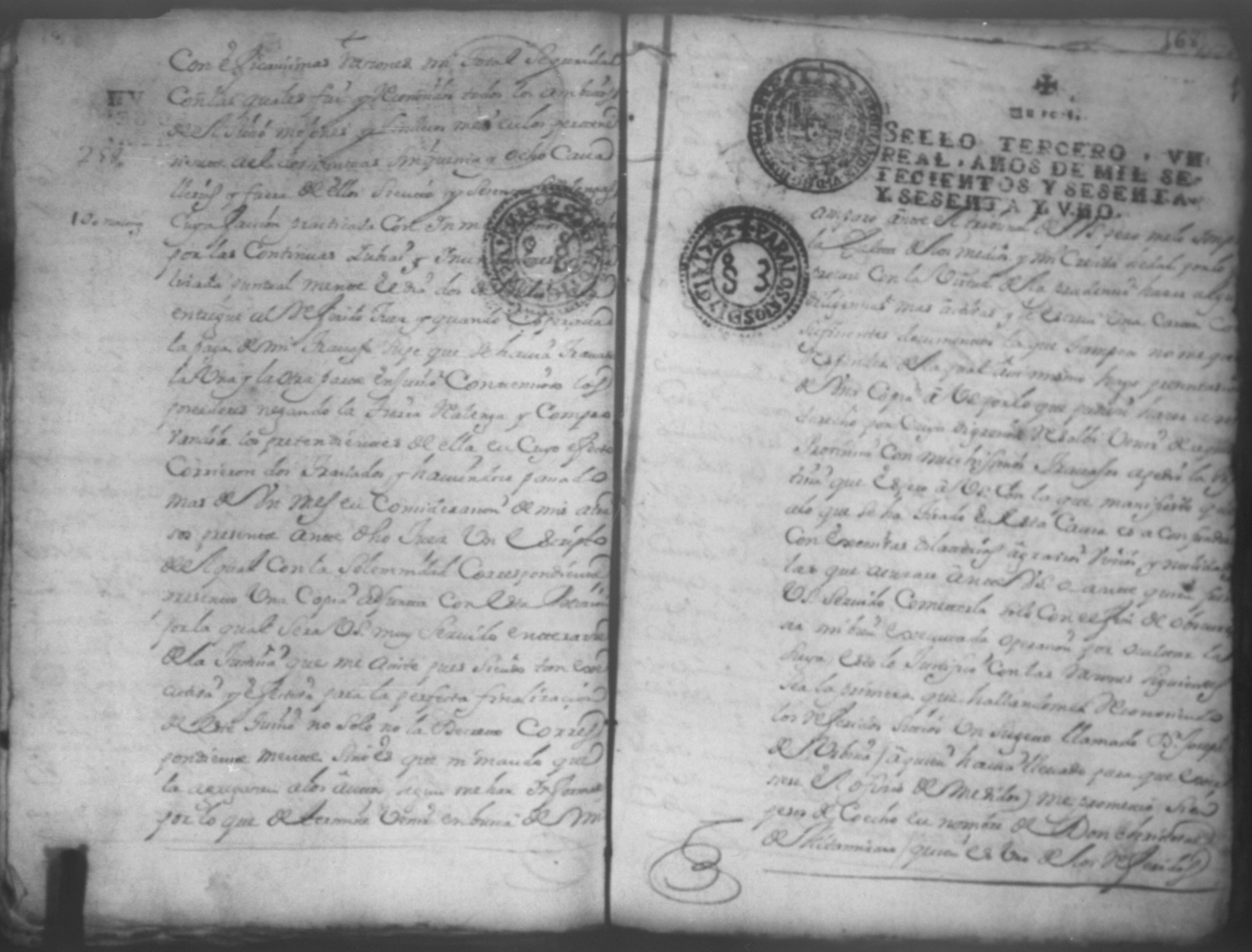Temática: Audiencia Leon 1780. Andres Altamirano sobre exceso de 282 caballerias de tierras en la hacienda de Rio Grande.