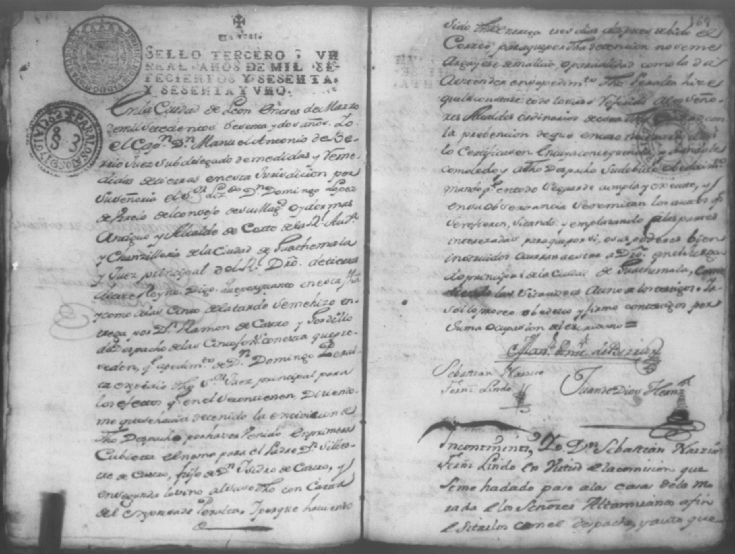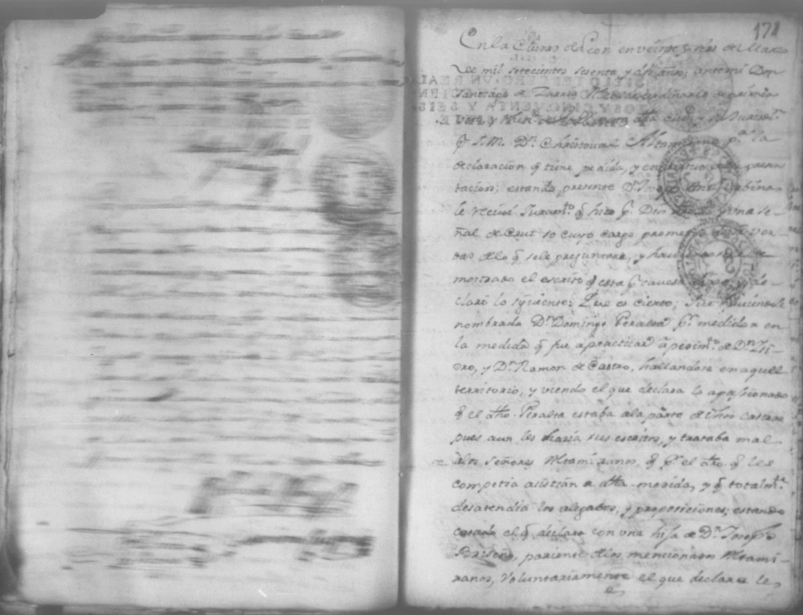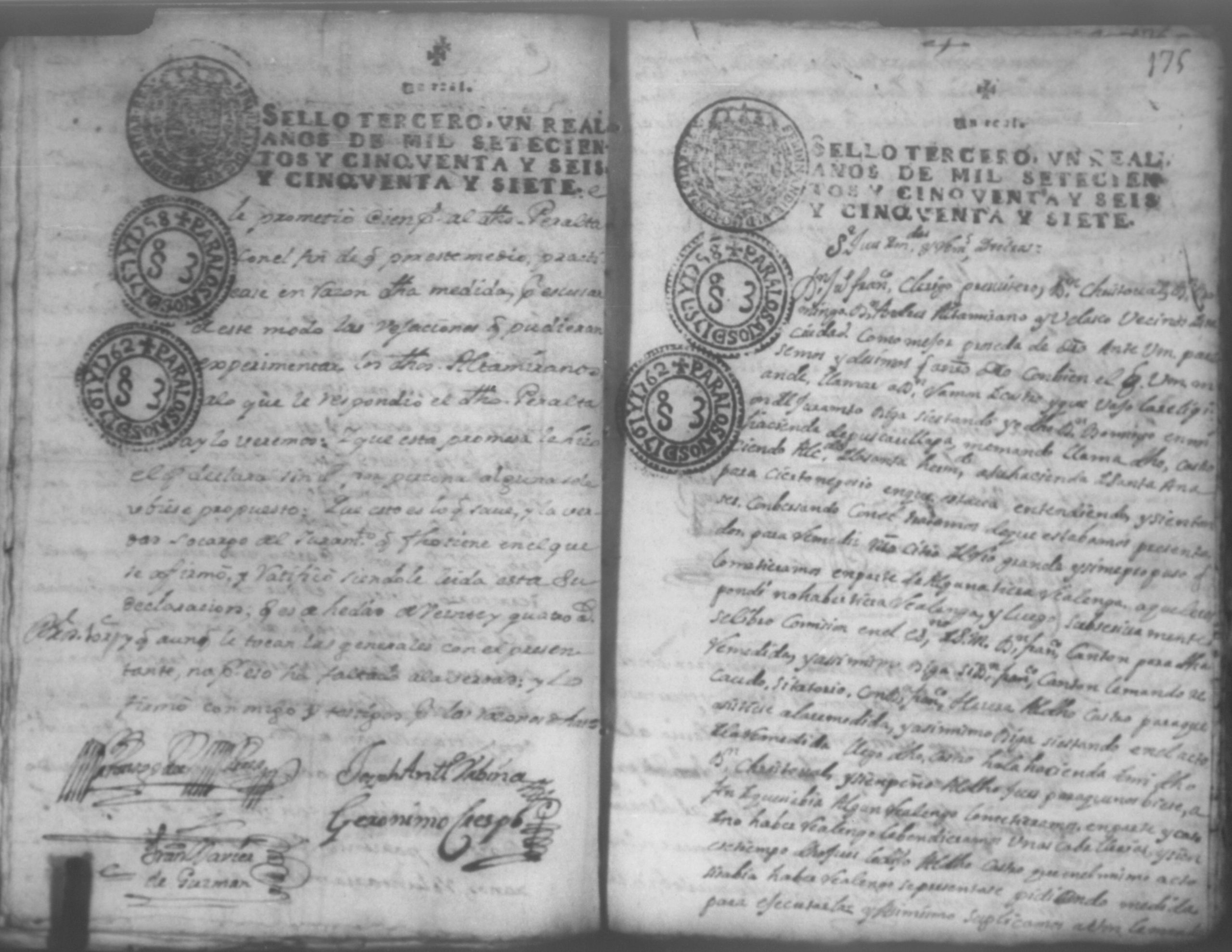 Temática: Audiencia Leon 1780. Andres Altamirano sobre exceso de 282 caballerias de tierras en la hacienda de Rio Grande.