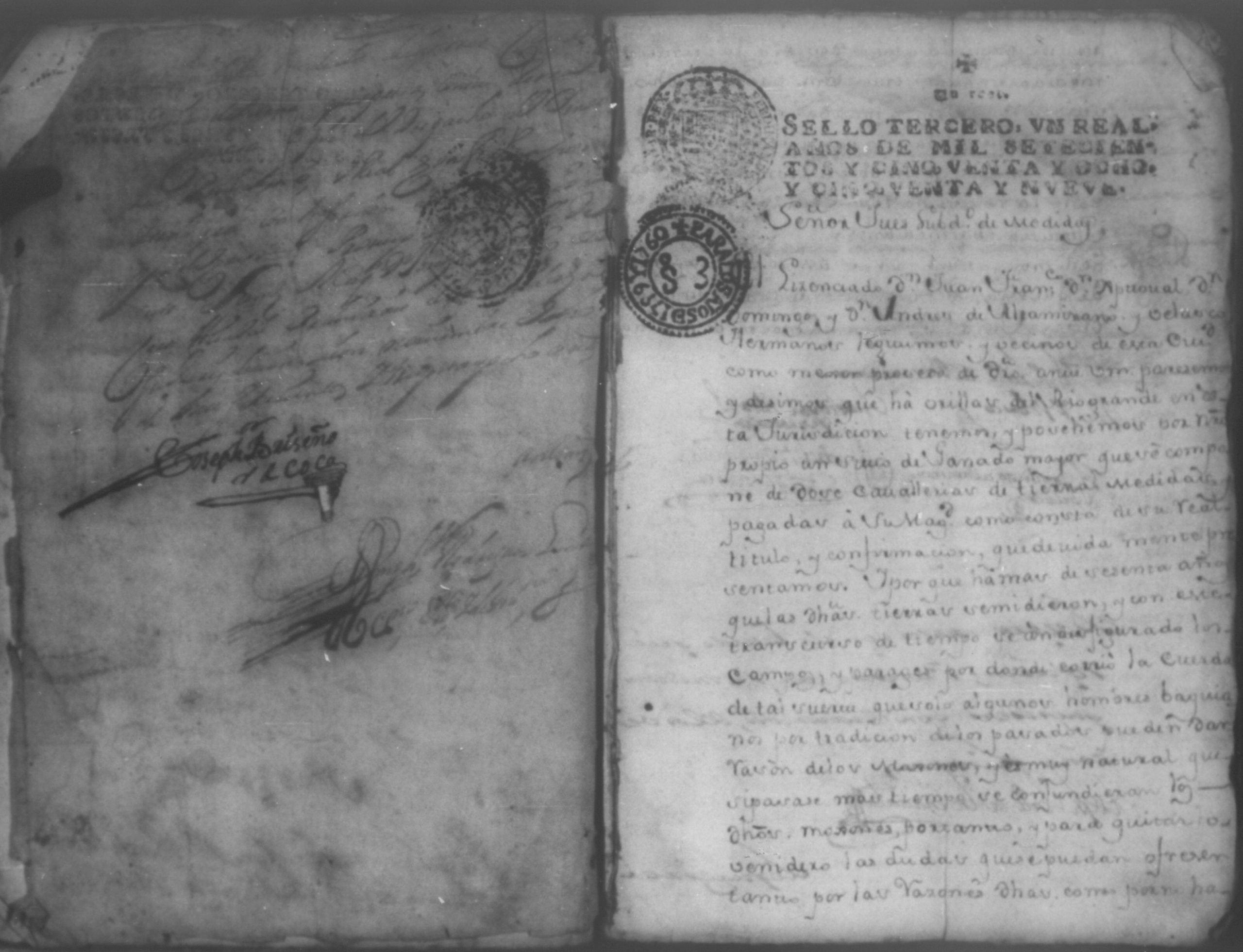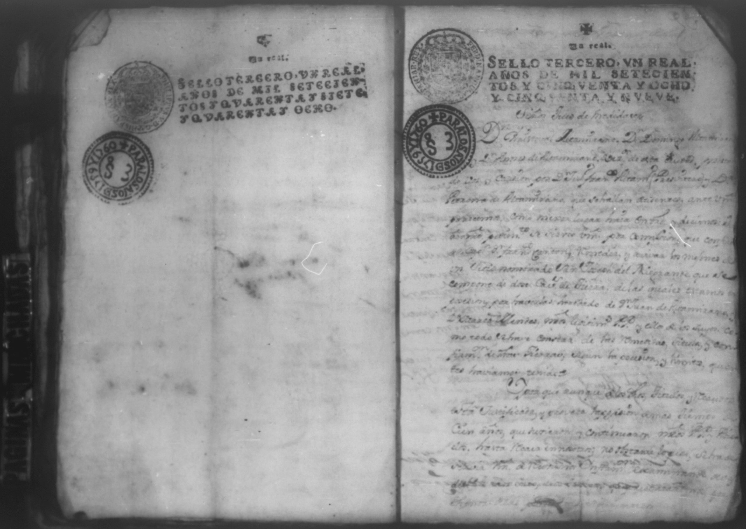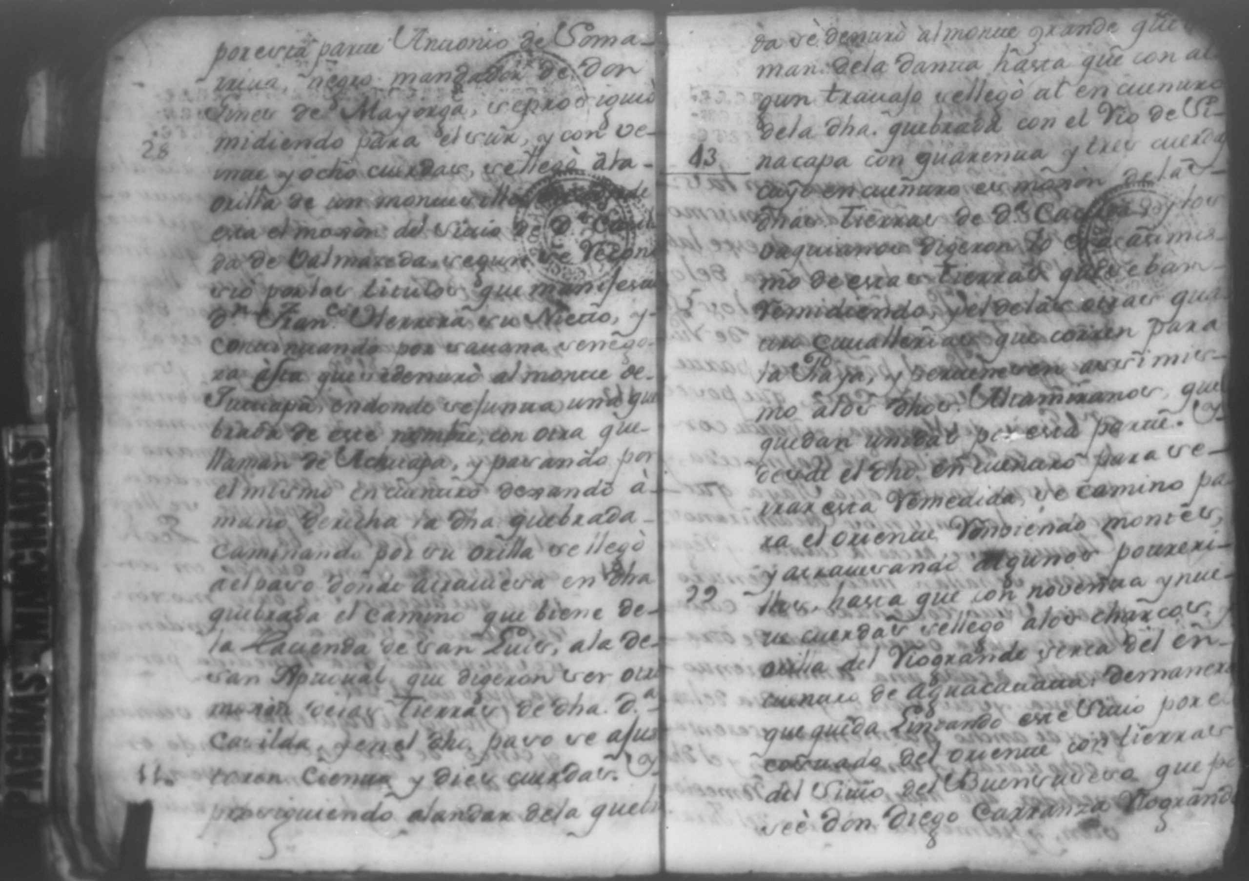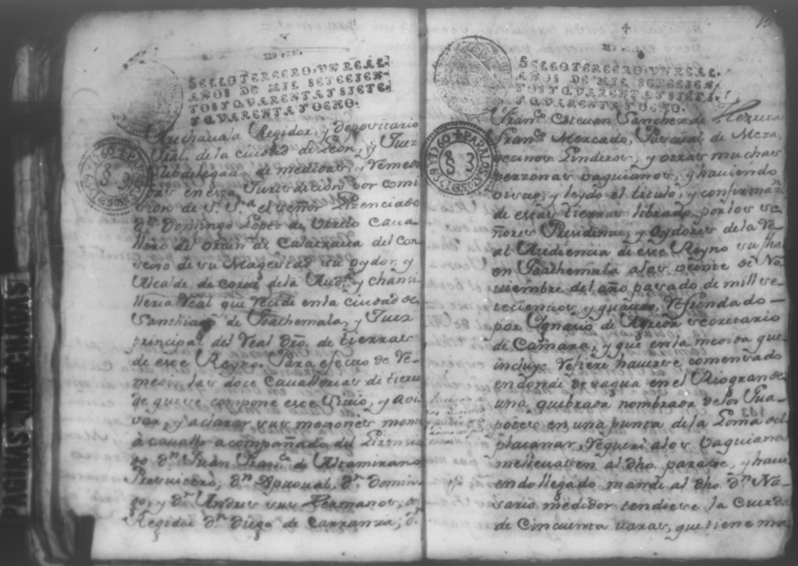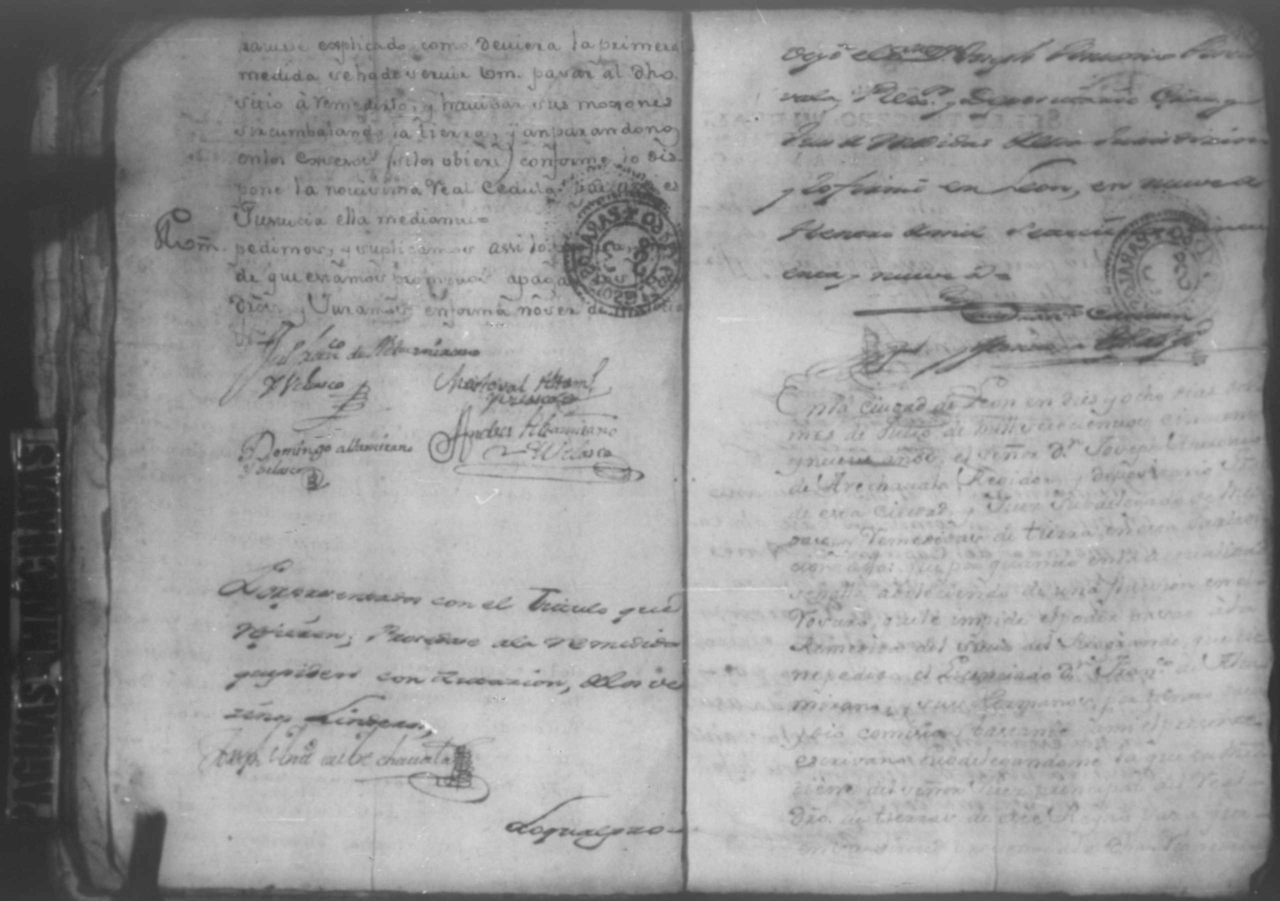 Temática: Audiencia Leon 1780. Andres Altamirano sobre exceso de 282 caballerias de tierras en la hacienda de Rio Grande.