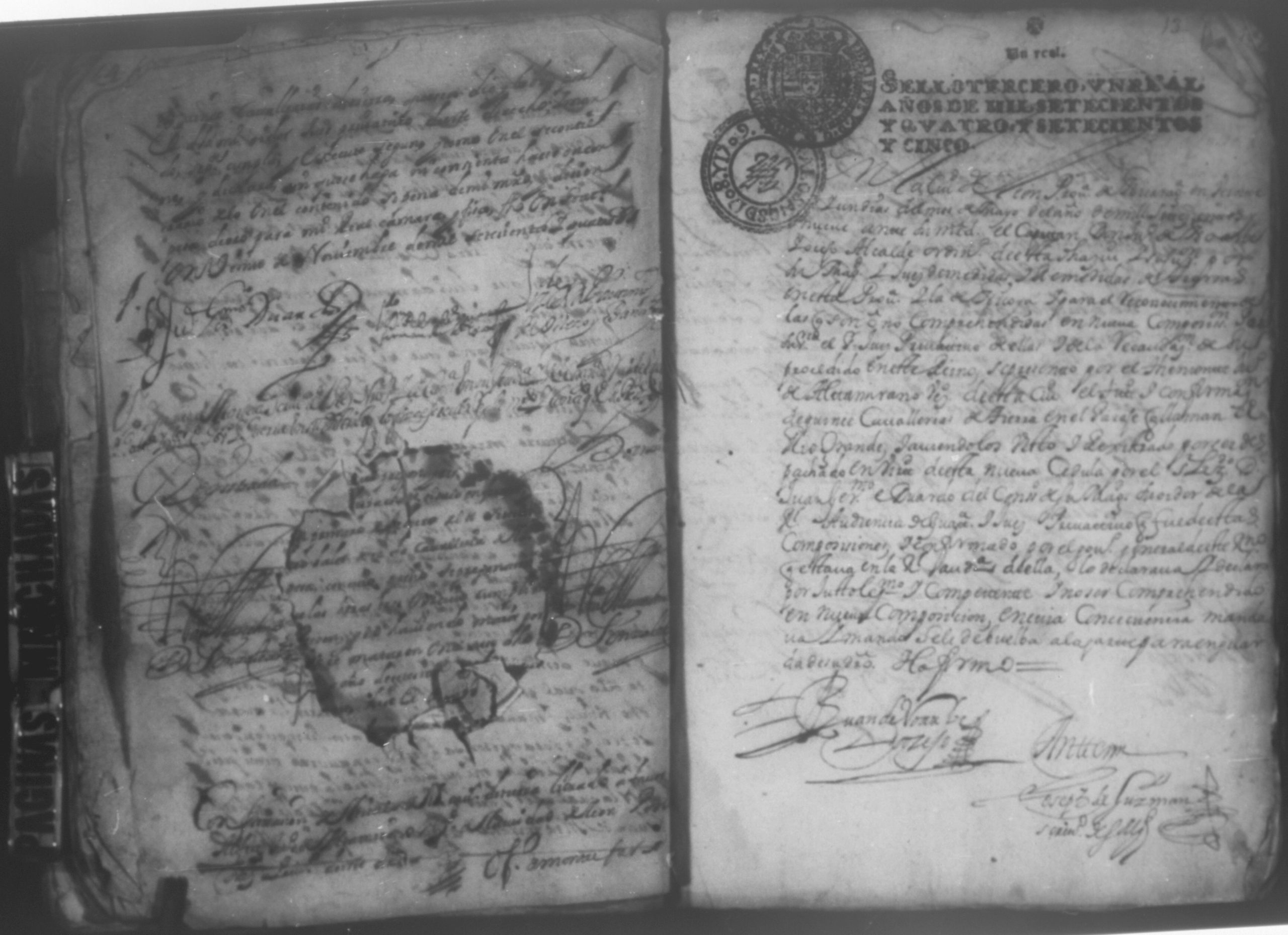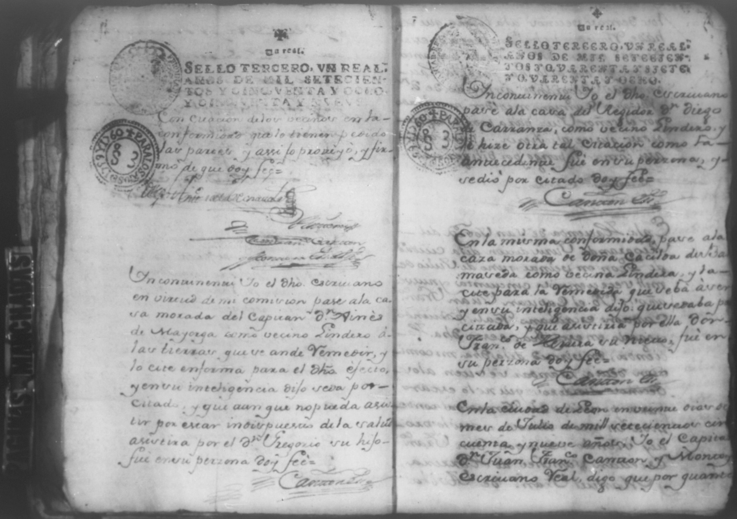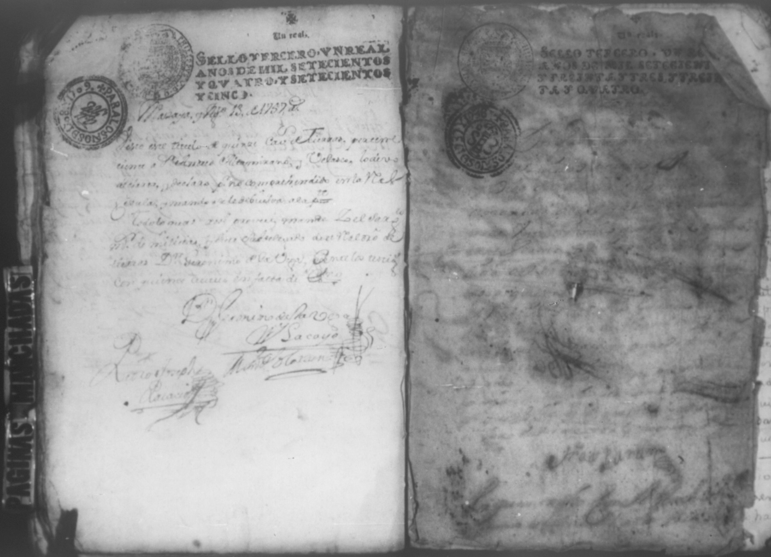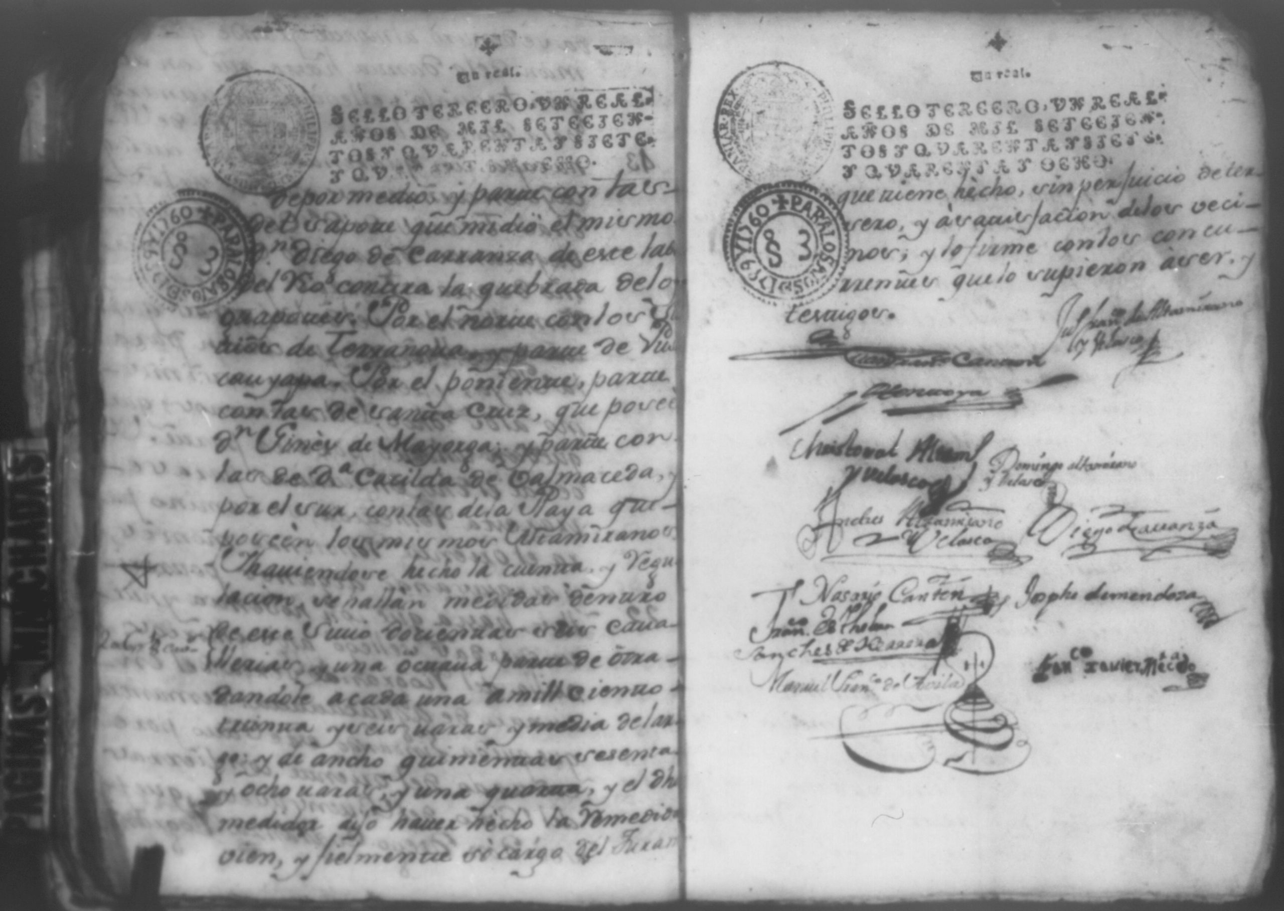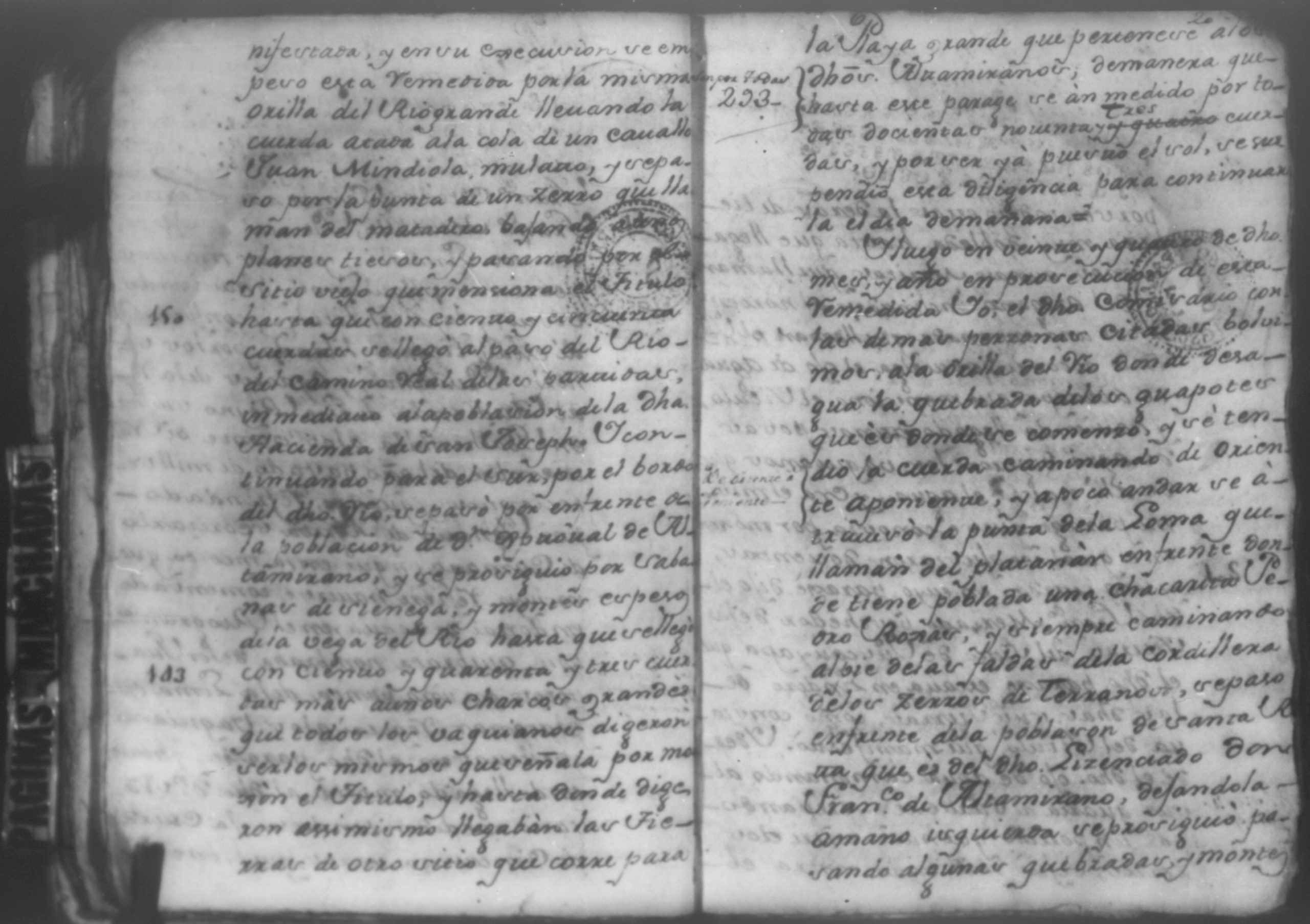 Temática: Audiencia Leon 1780. Andres Altamirano sobre exceso de 282 caballerias de tierras en la hacienda de Rio Grande.
