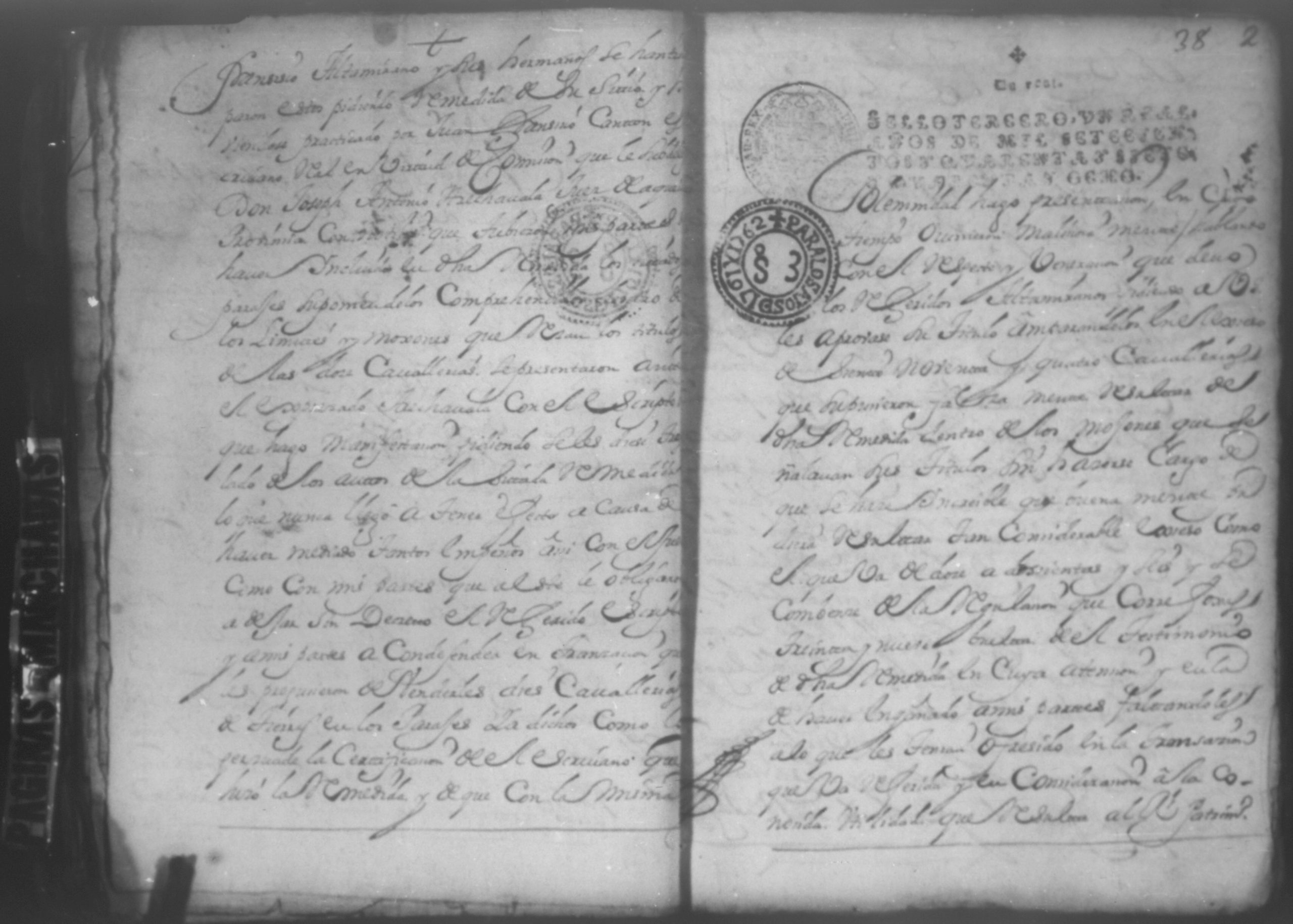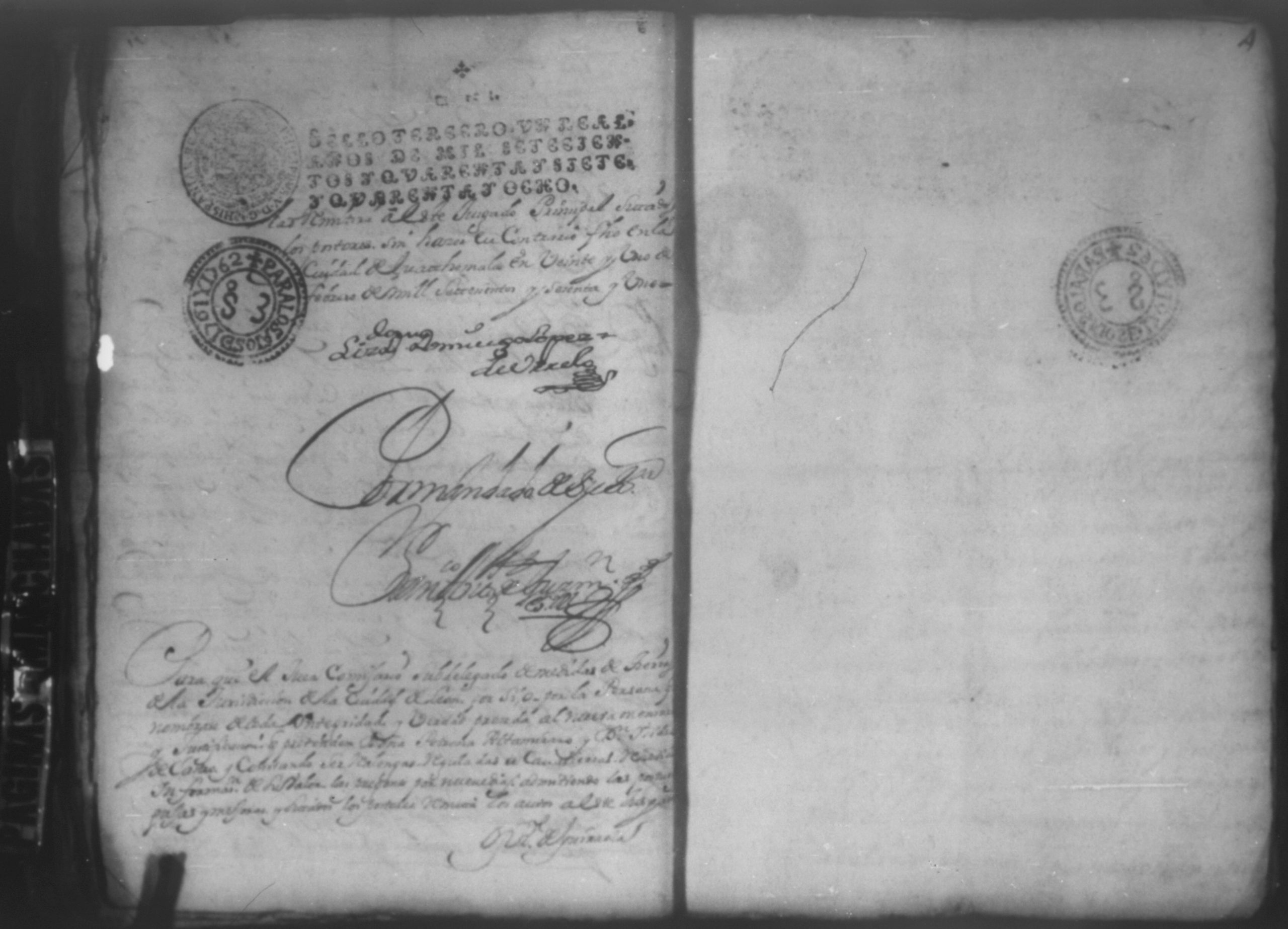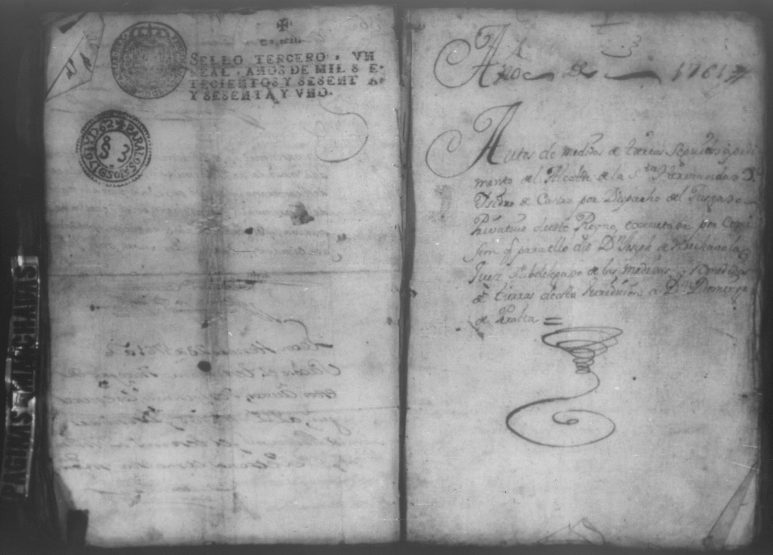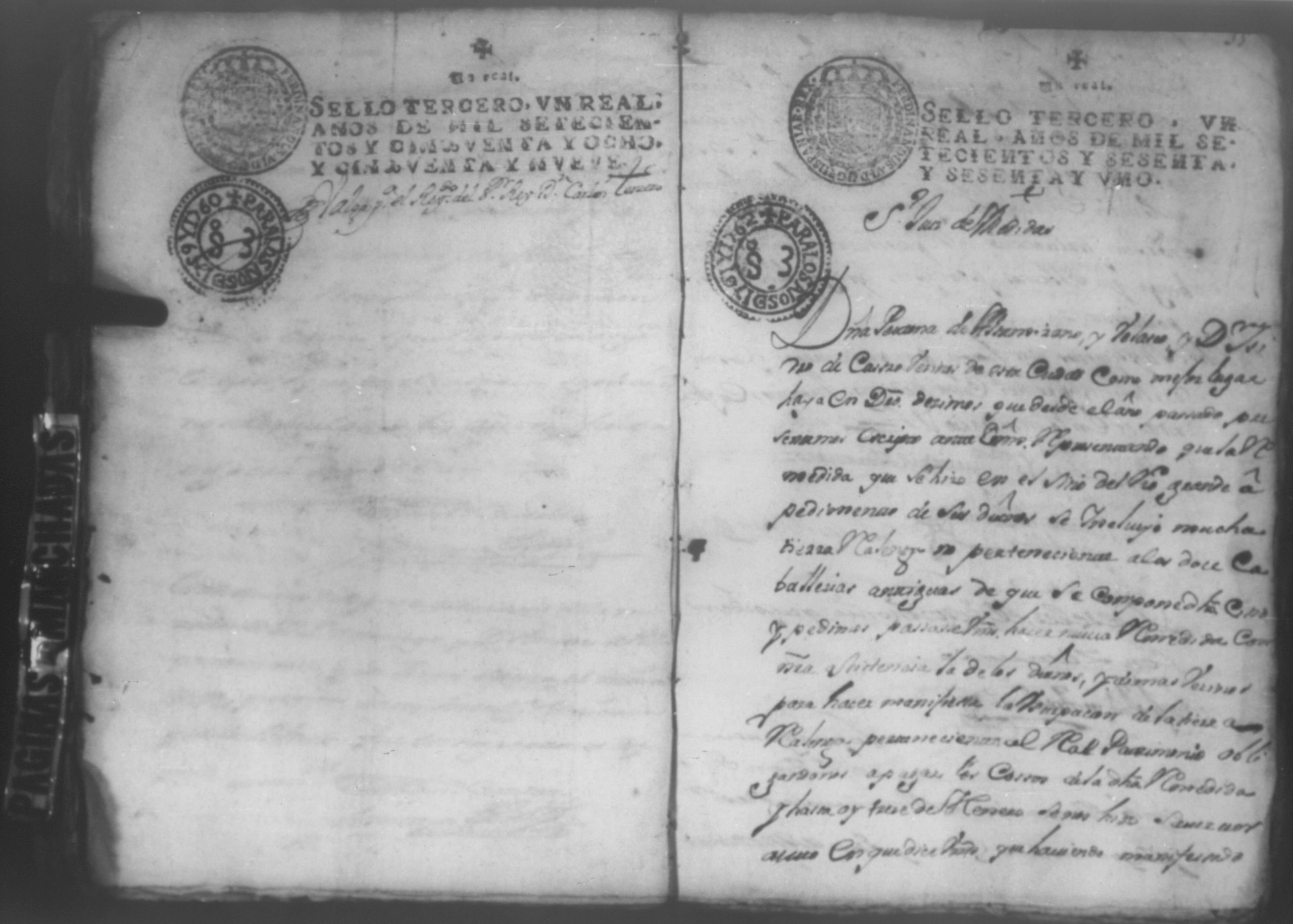 Temática: Audiencia Leon 1780. Andres Altamirano sobre exceso de 282 caballerias de tierras en la hacienda de Rio Grande.