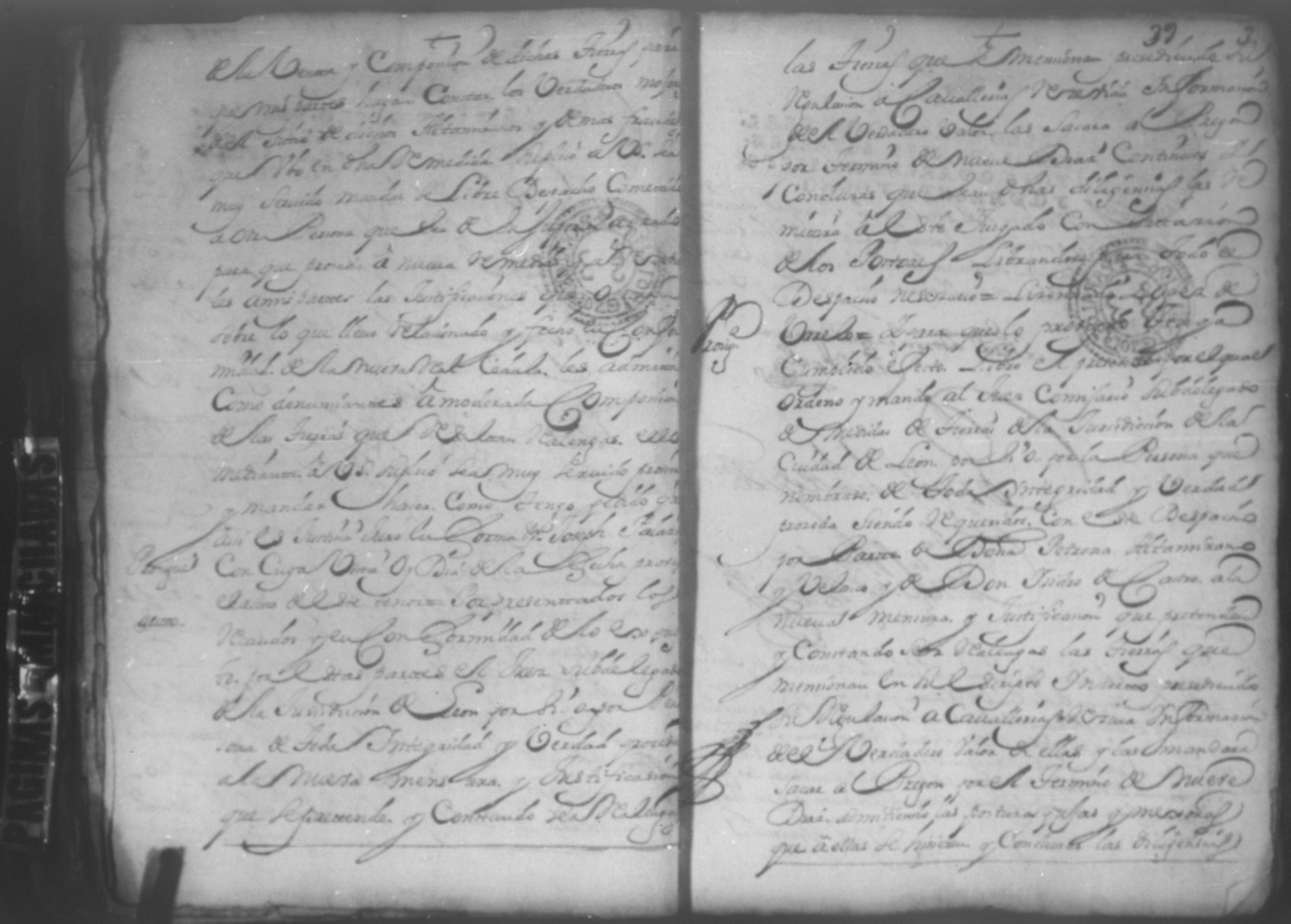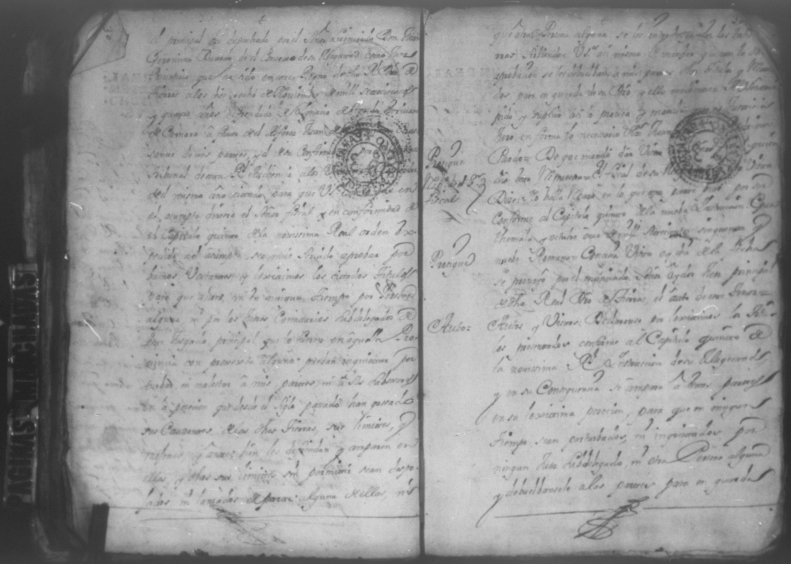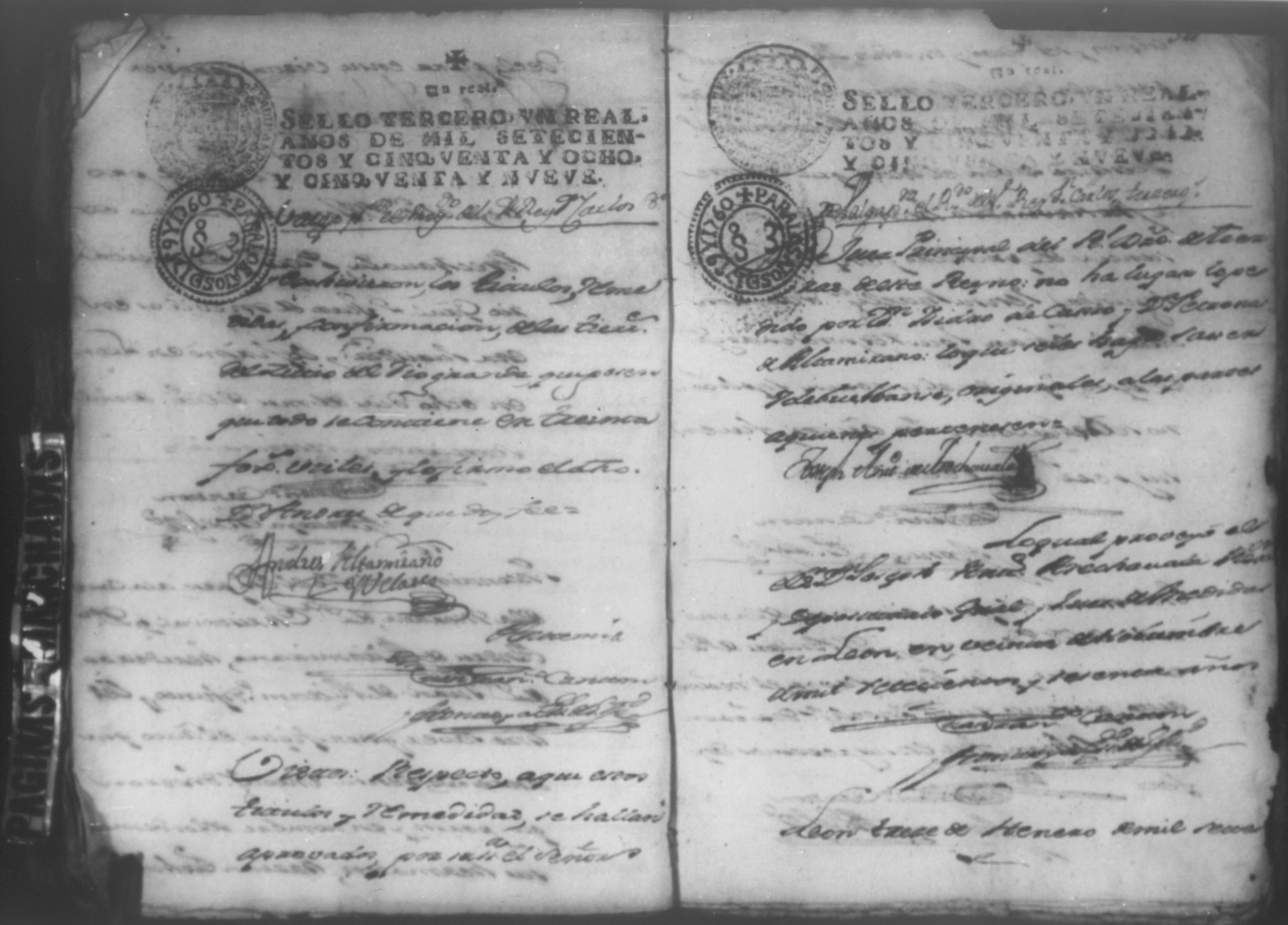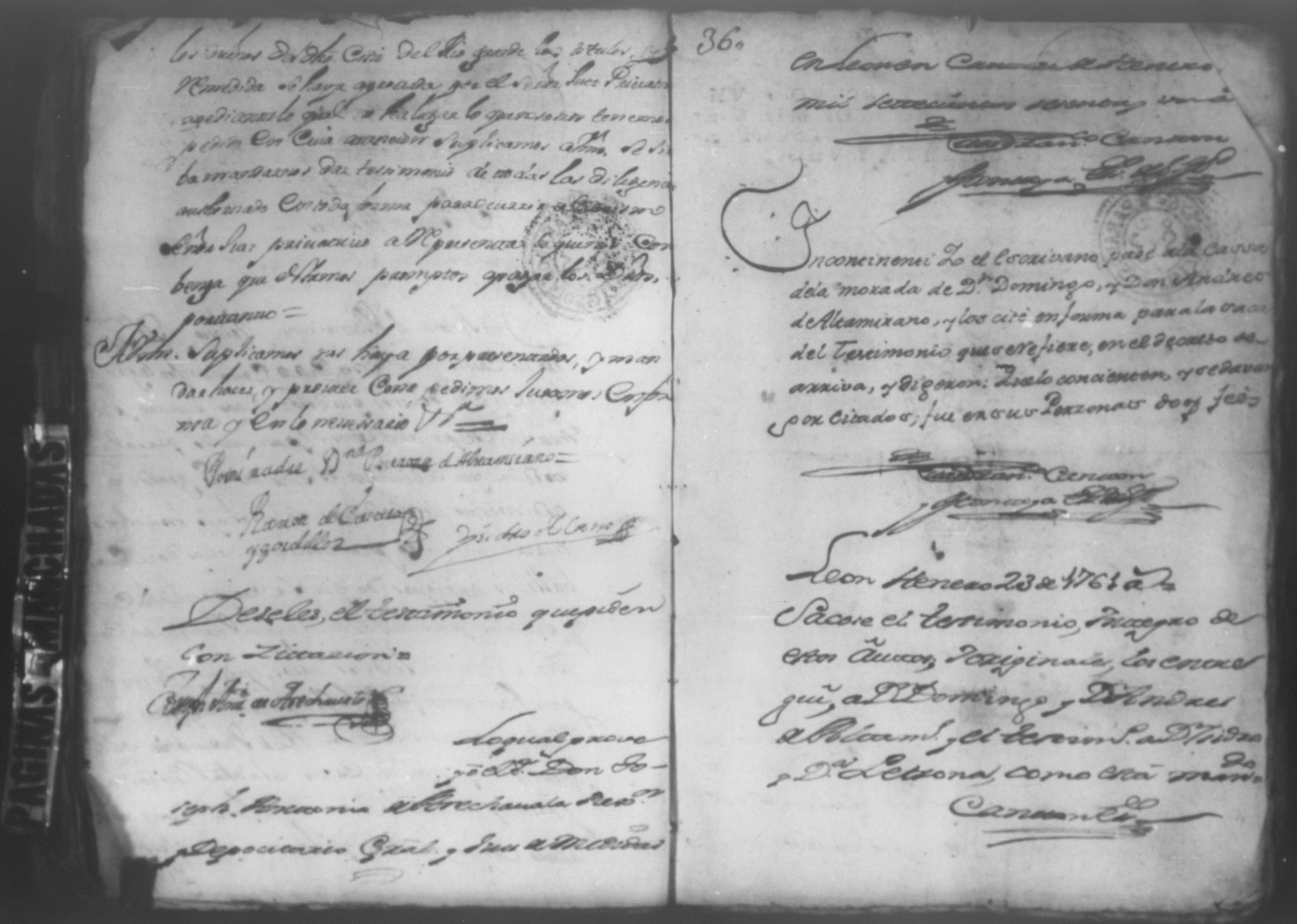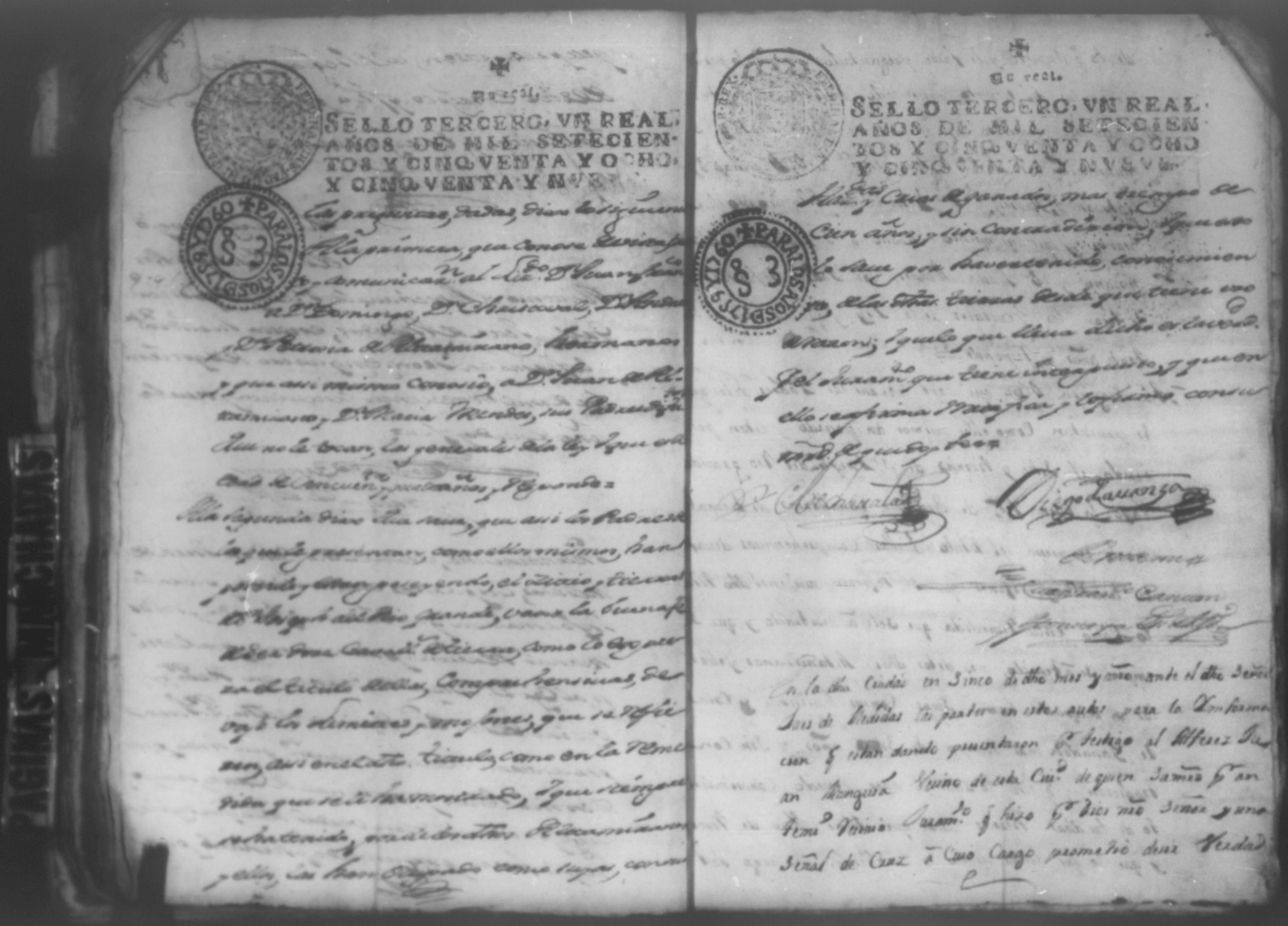 Temática: Audiencia Leon 1780. Andres Altamirano sobre exceso de 282 caballerias de tierras en la hacienda de Rio Grande.