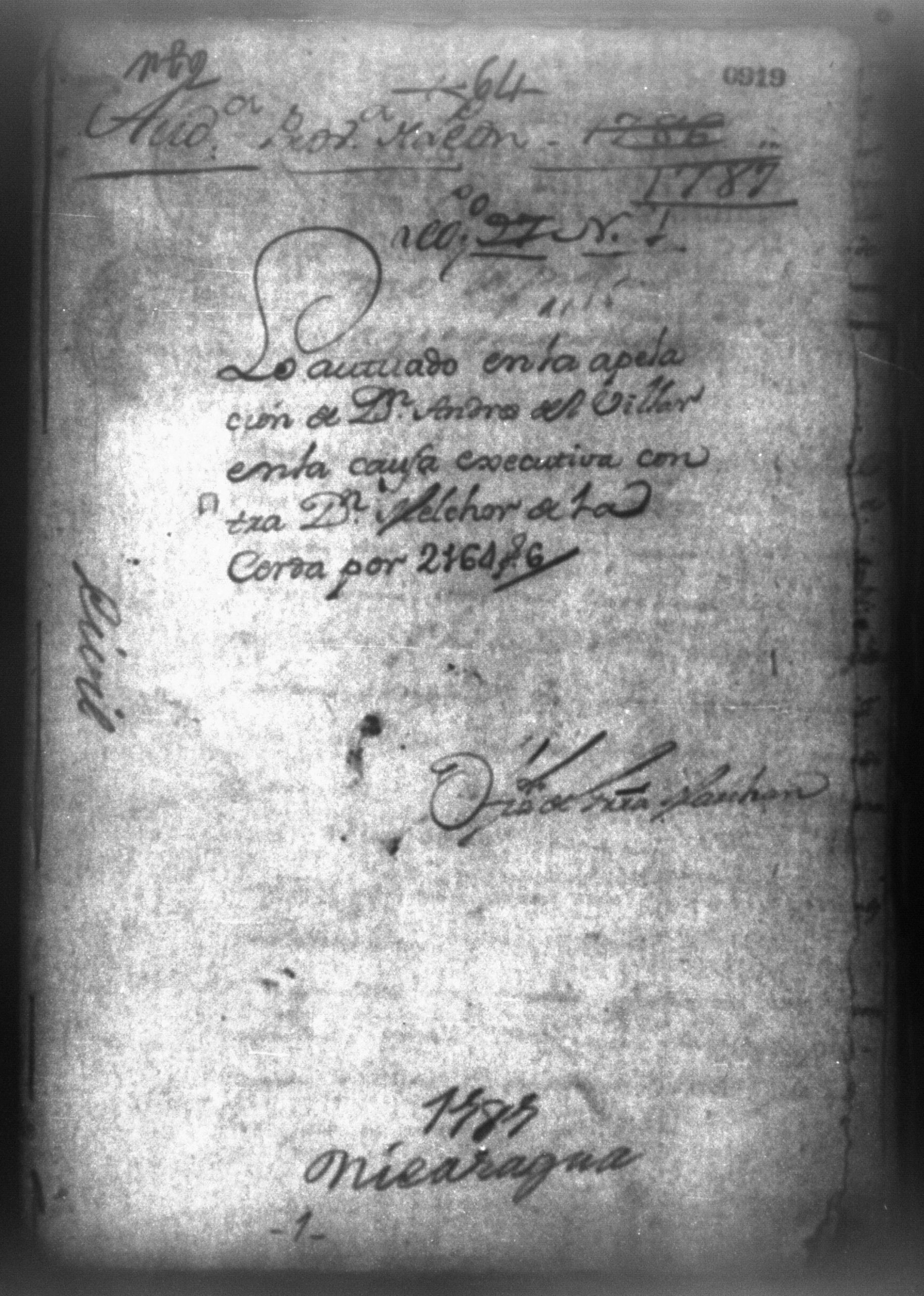 Temática: Audiencia Provincia de Leon, 1787. Lo actuado en la apelación de Don Andrés del Villar en la causa ejecutiva contra Don Melchor de la Cerda por 2,164 pesos 6 reales.