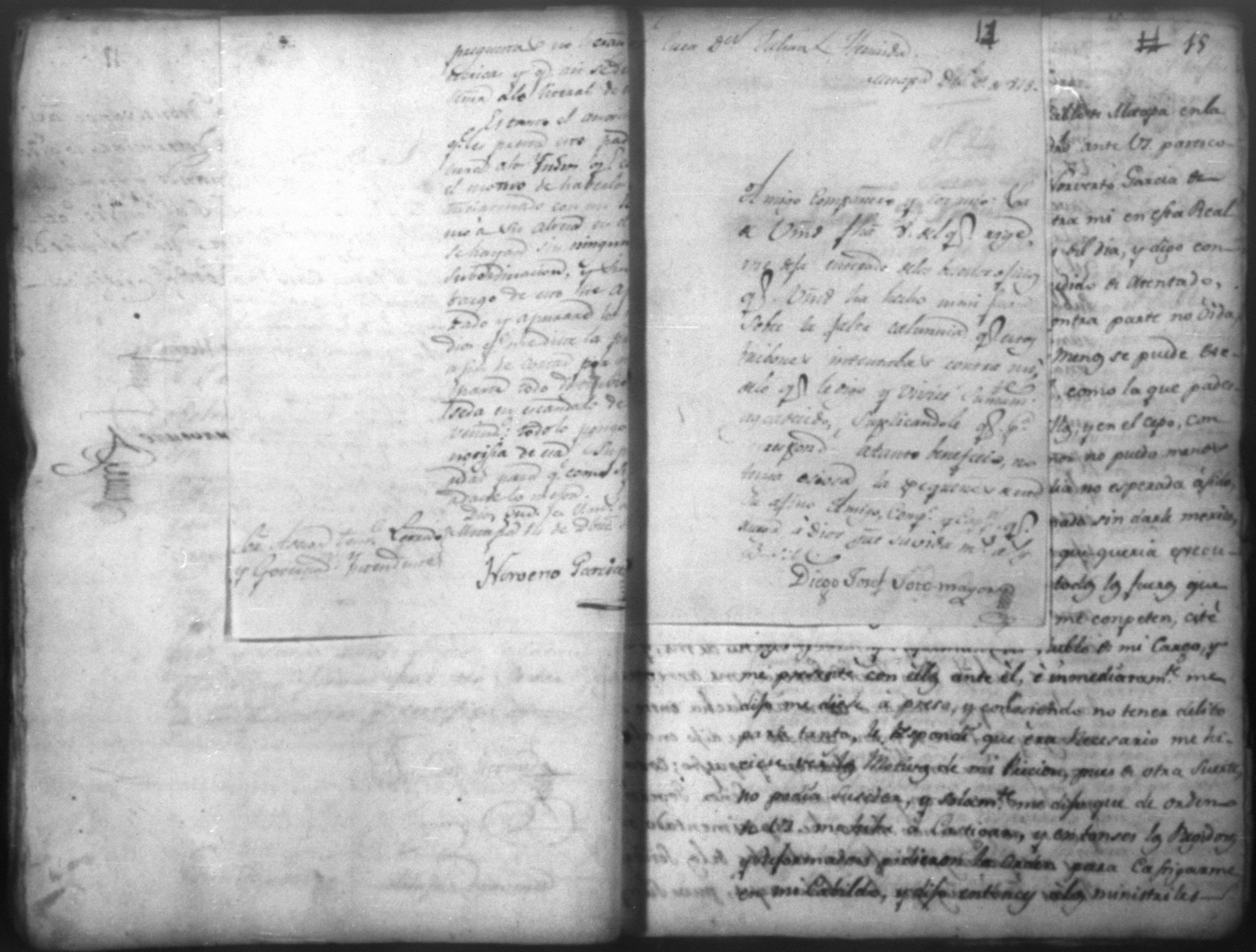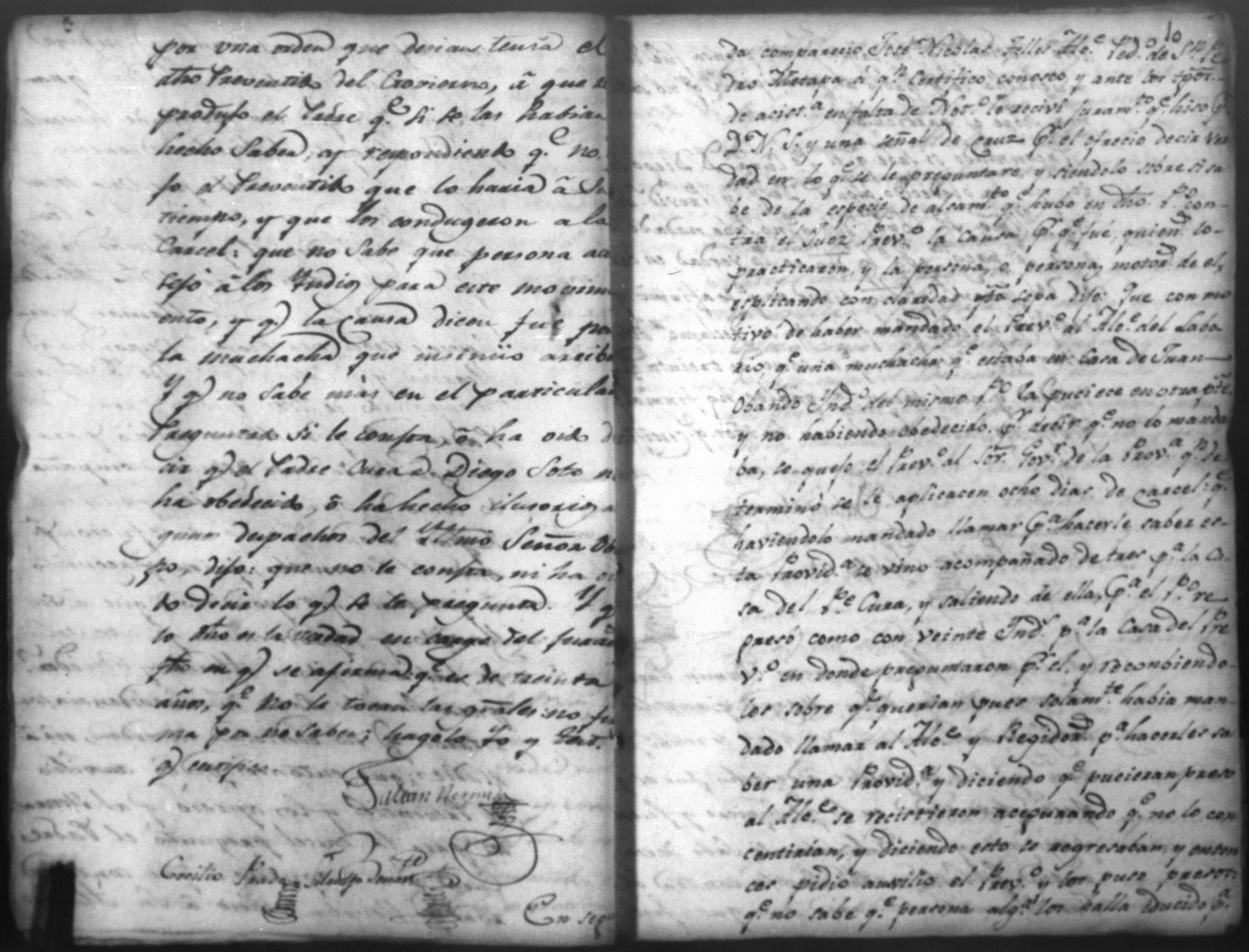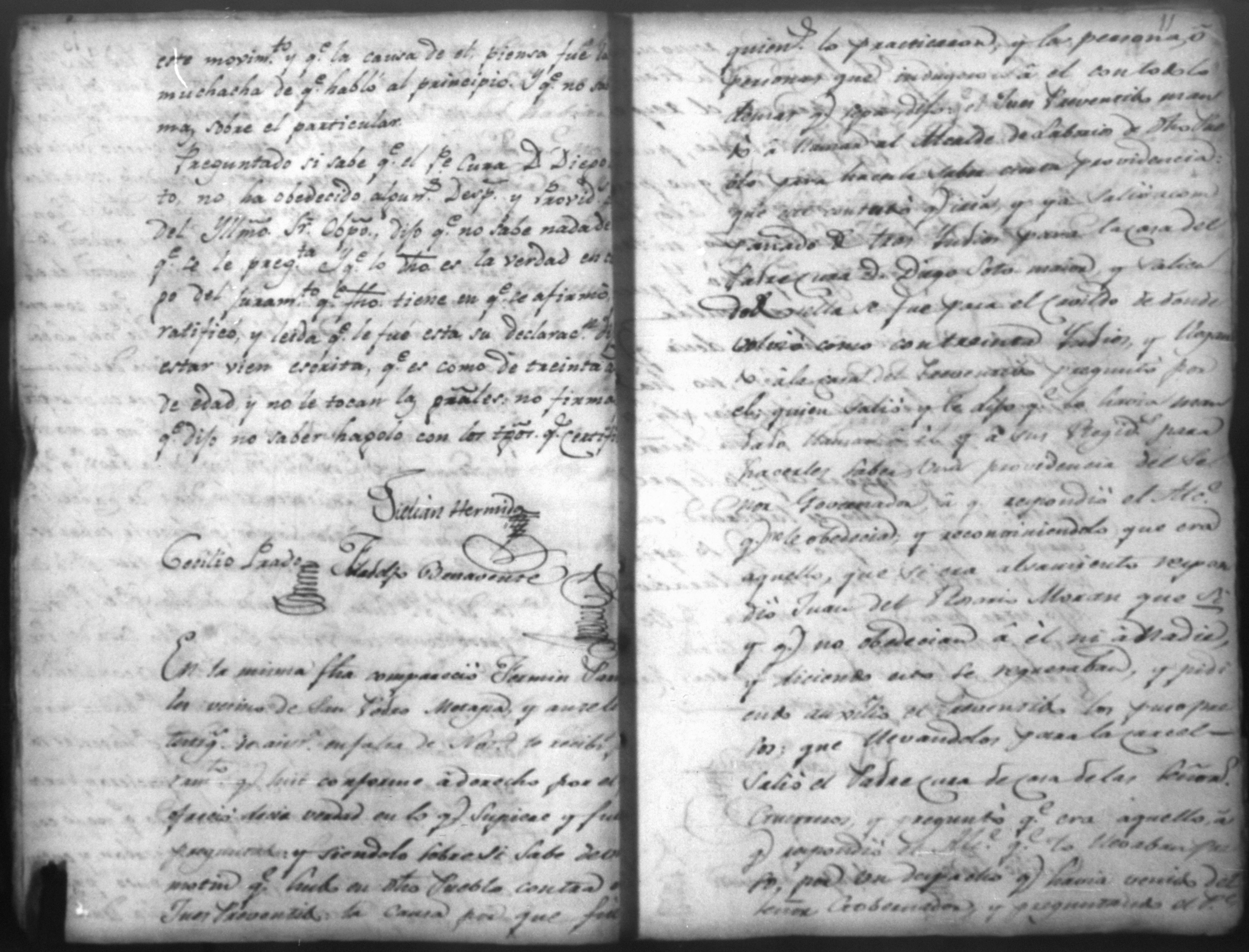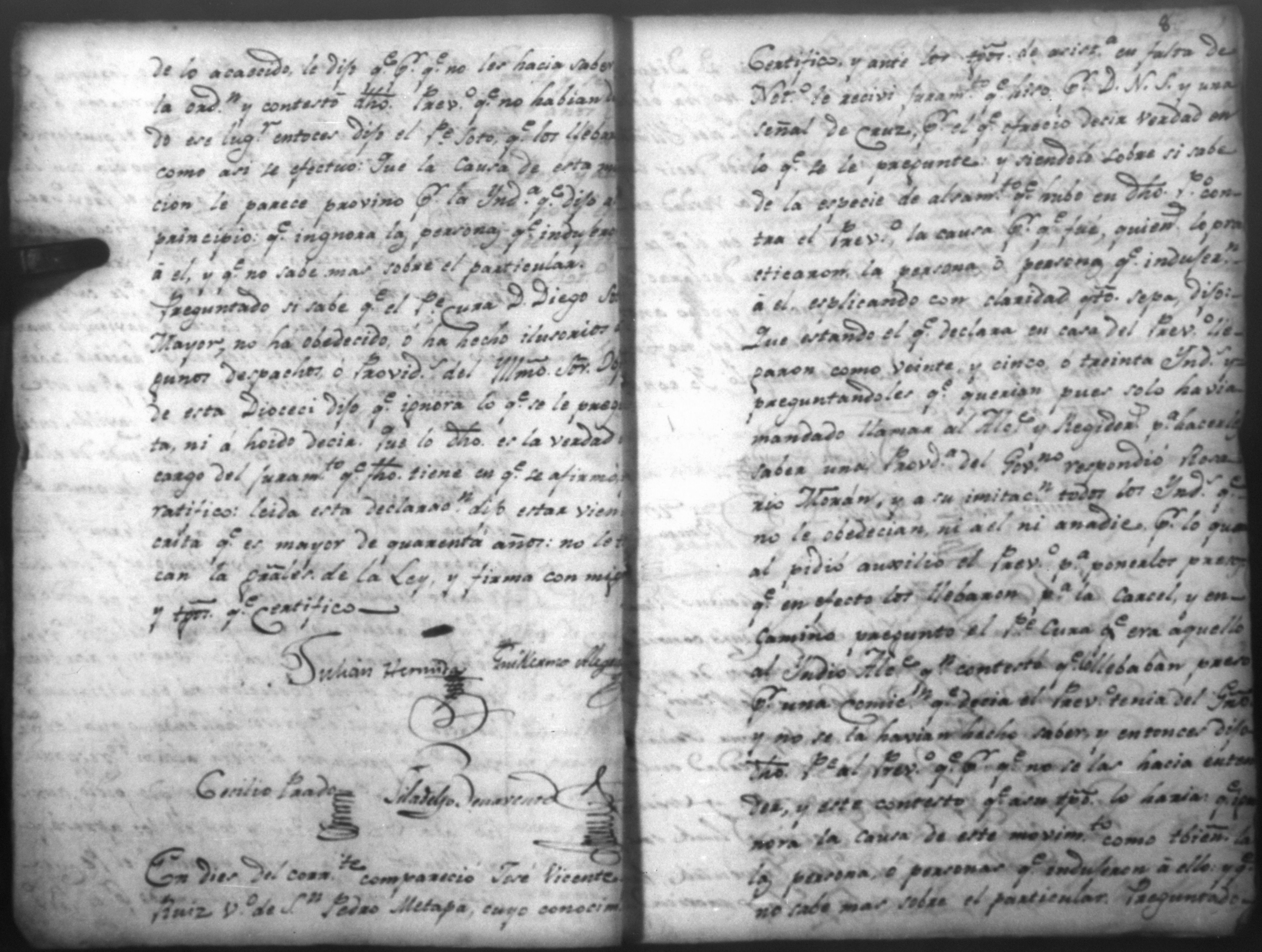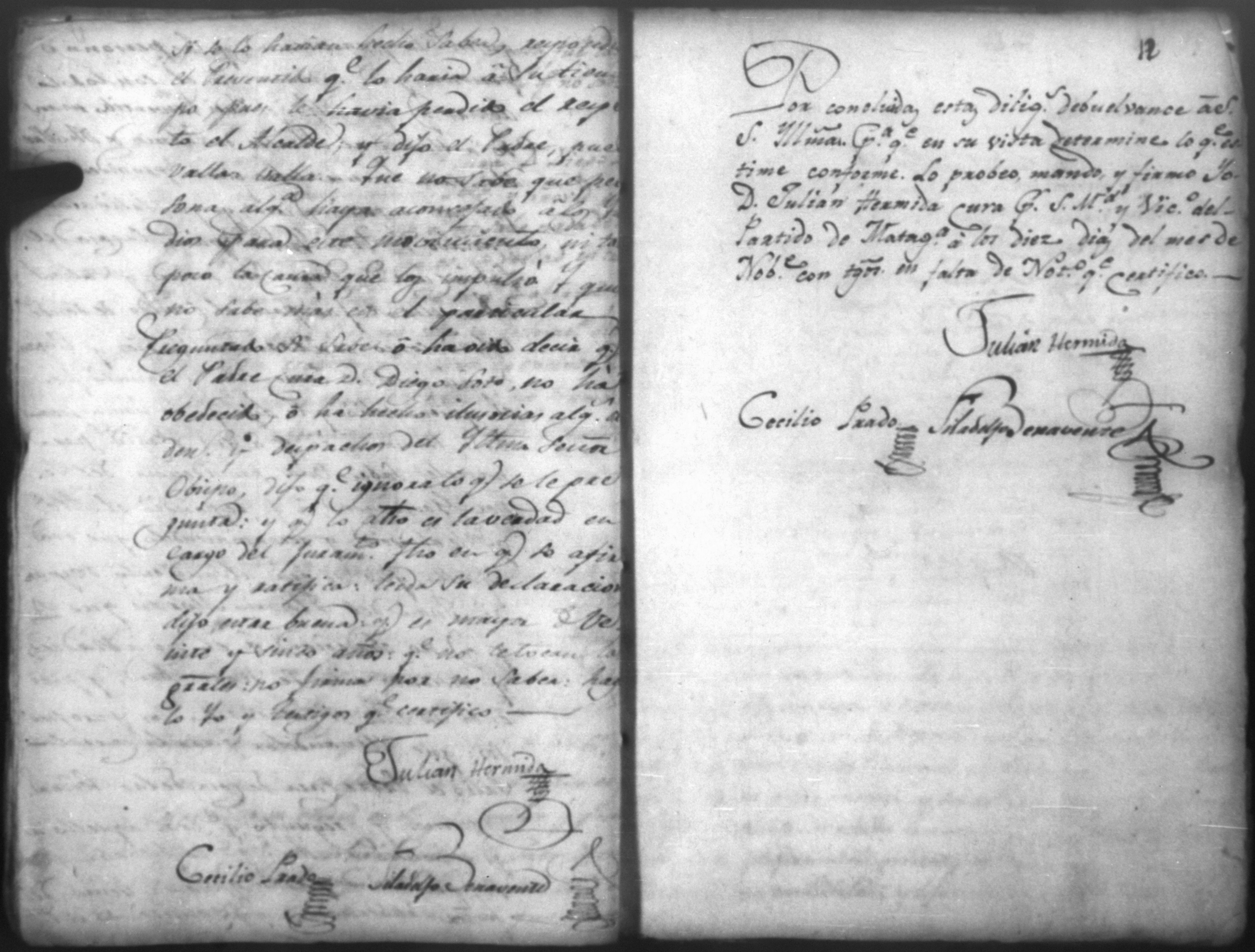 Temática: Audiencia Leon 1818. El Indio Dionicio Cerrano, contra el Presbitero Norberto Garcia por la prisión en que lo tiene. Relator: Ugalde. Firmas: Hurtado, Morán, Manuel Beltranena, Julian Montenegro.