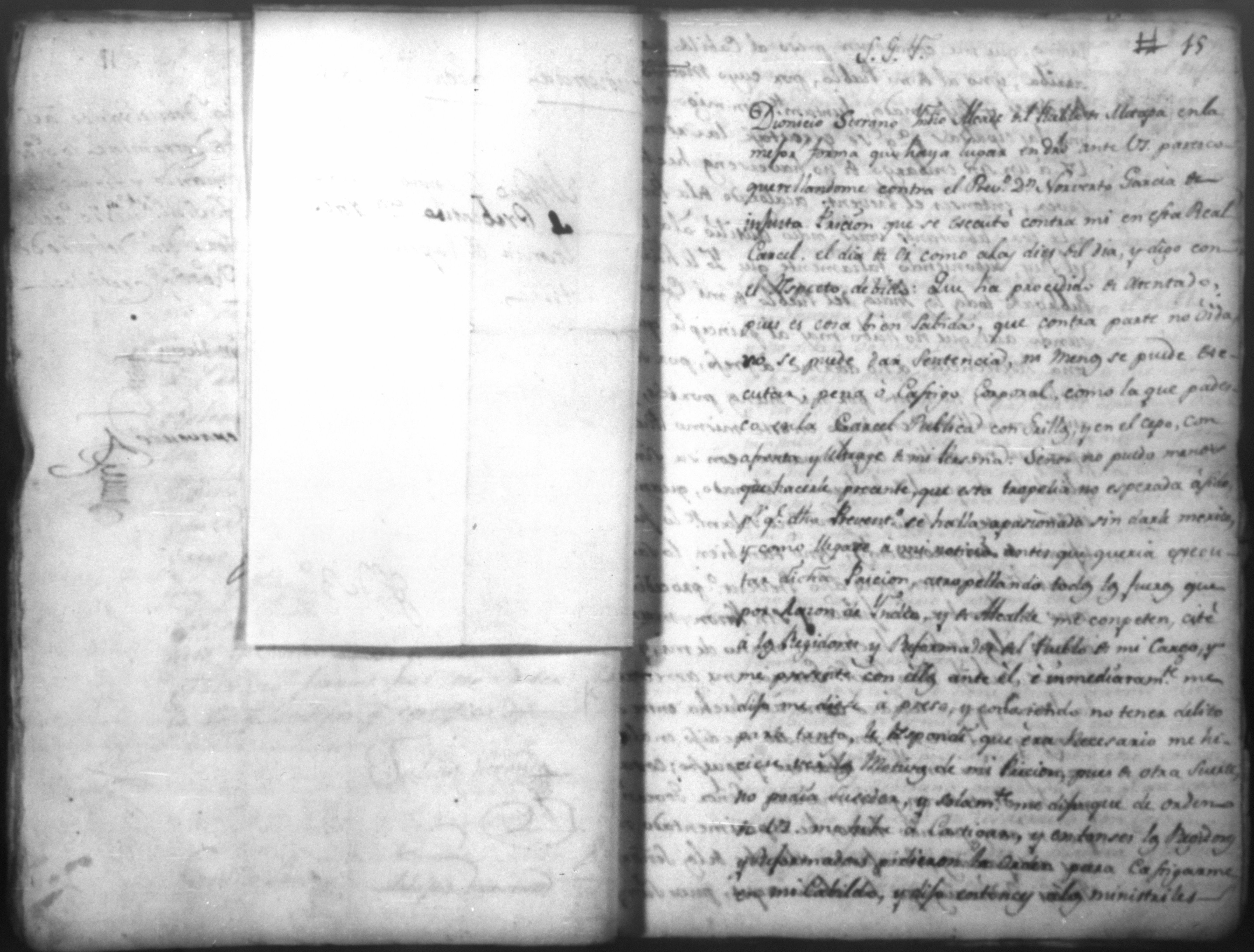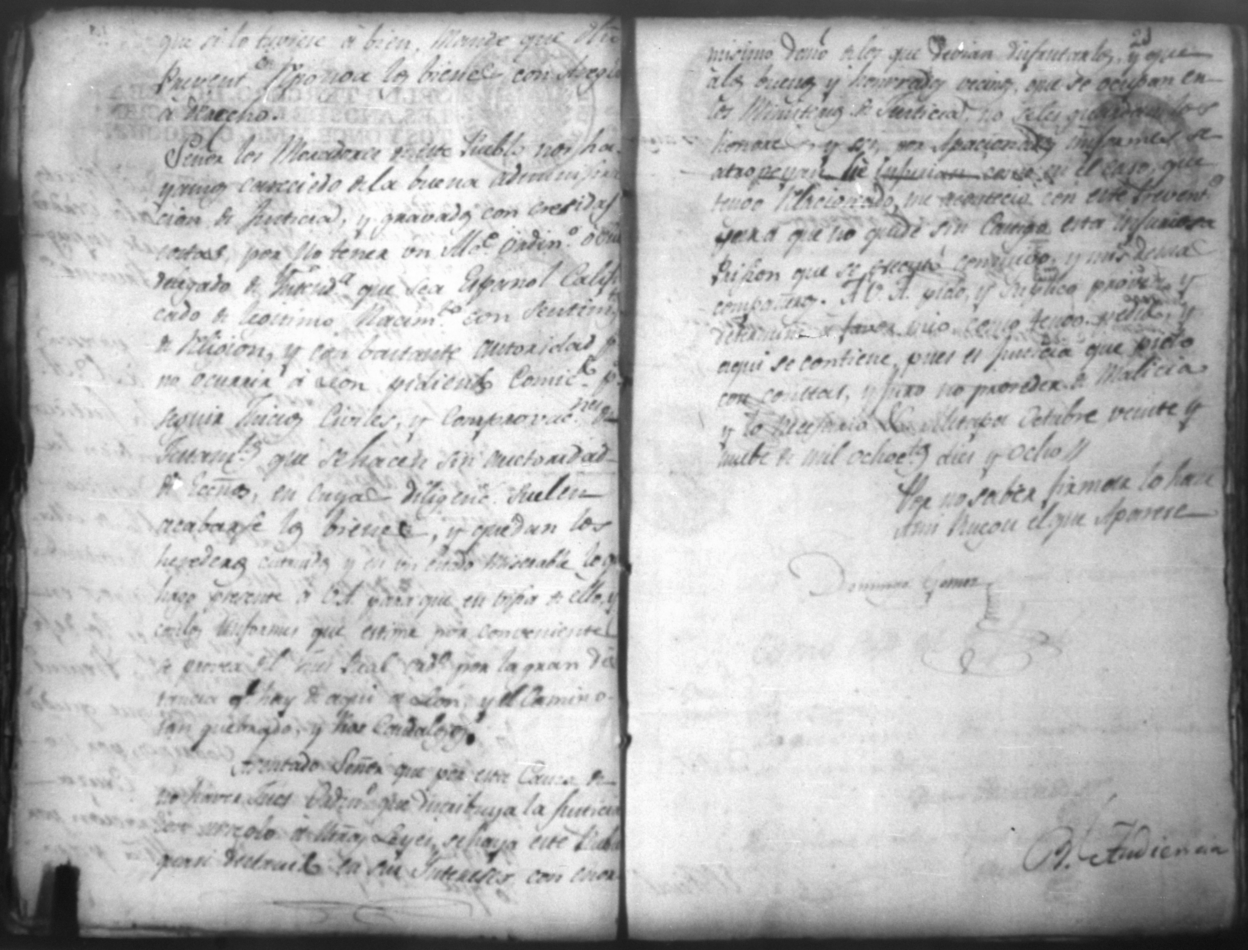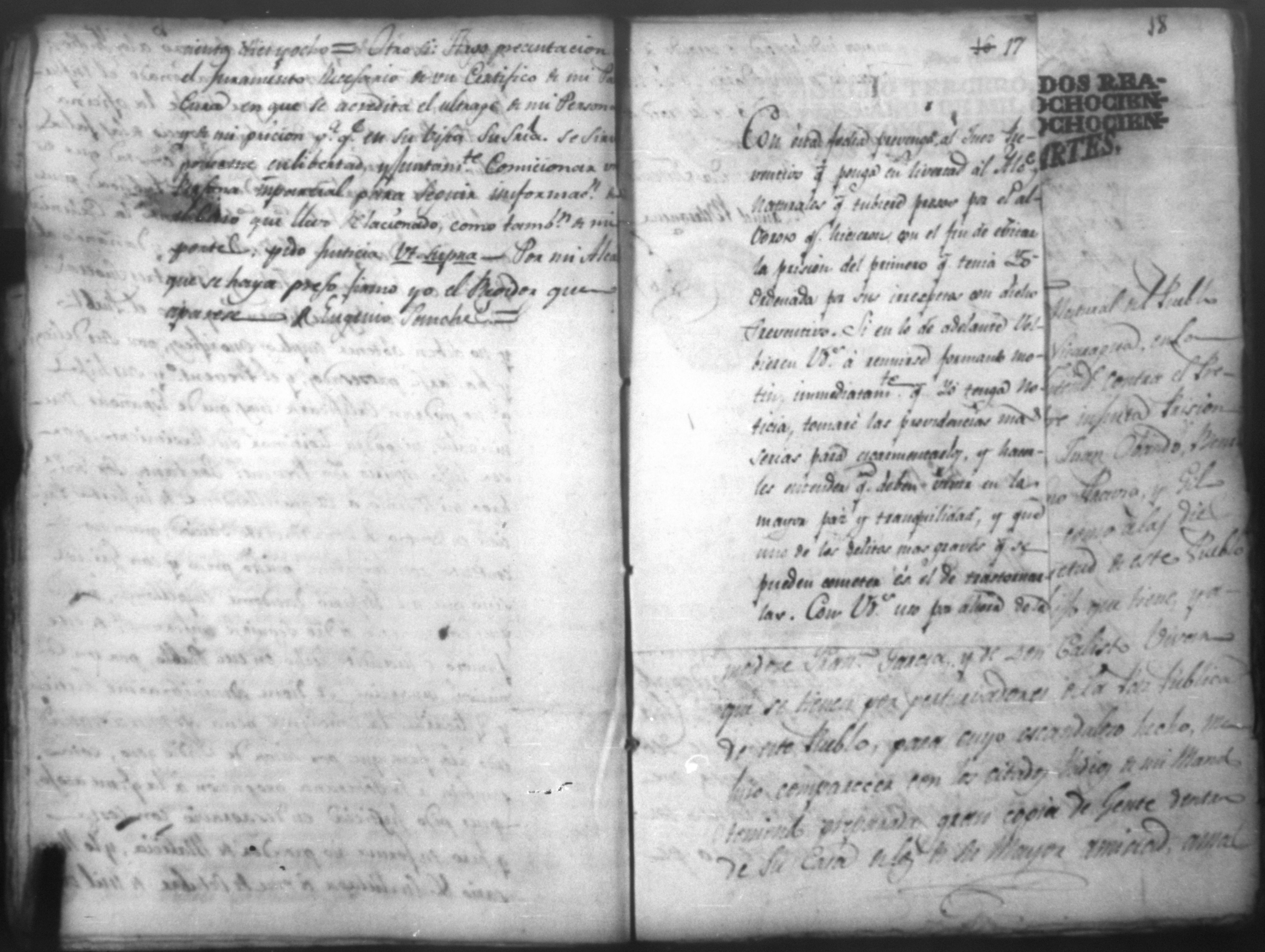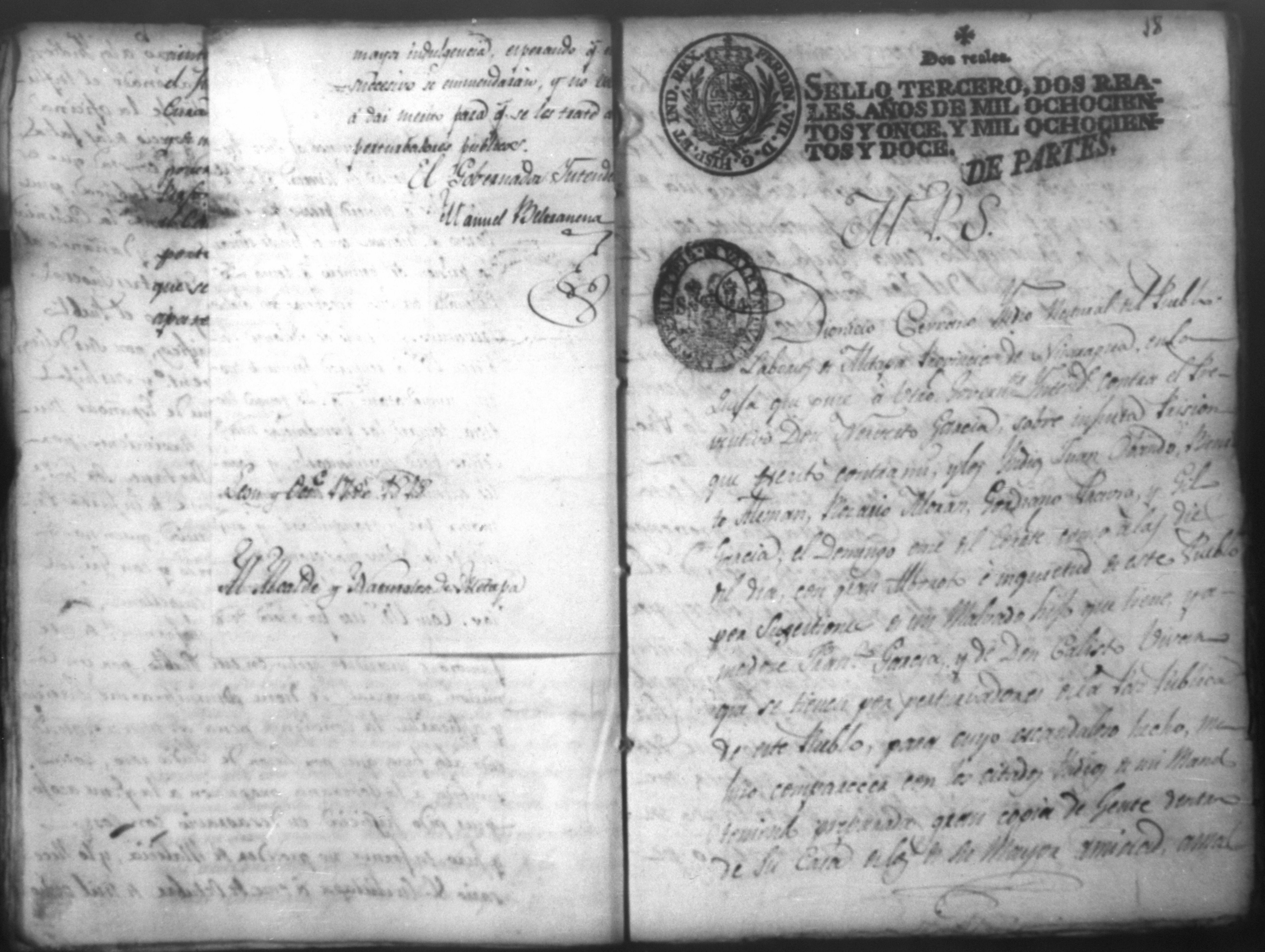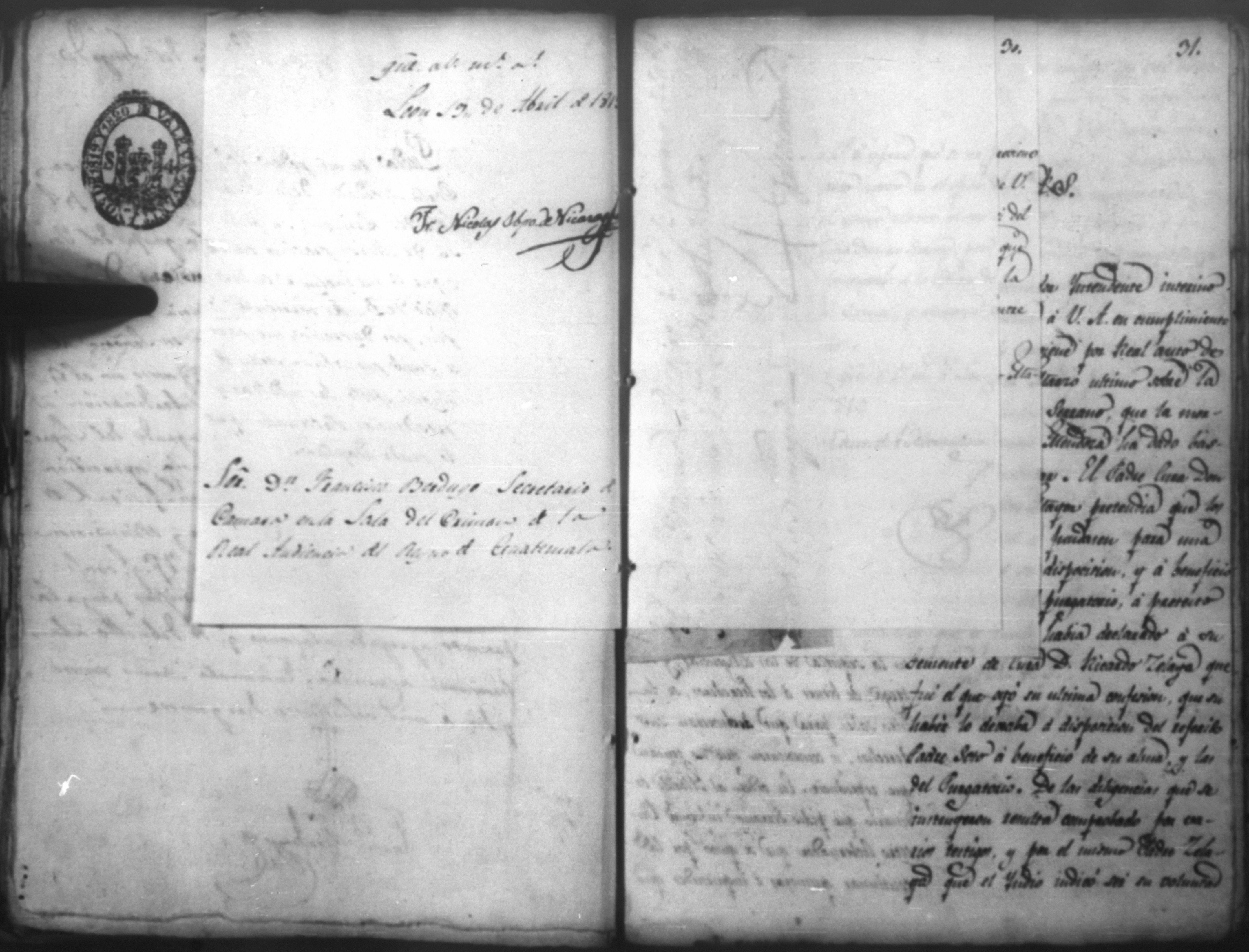 Temática: Audiencia Leon 1818. El Indio Dionicio Cerrano, contra el Presbitero Norberto Garcia por la prisión en que lo tiene. Relator: Ugalde. Firmas: Hurtado, Morán, Manuel Beltranena, Julian Montenegro.