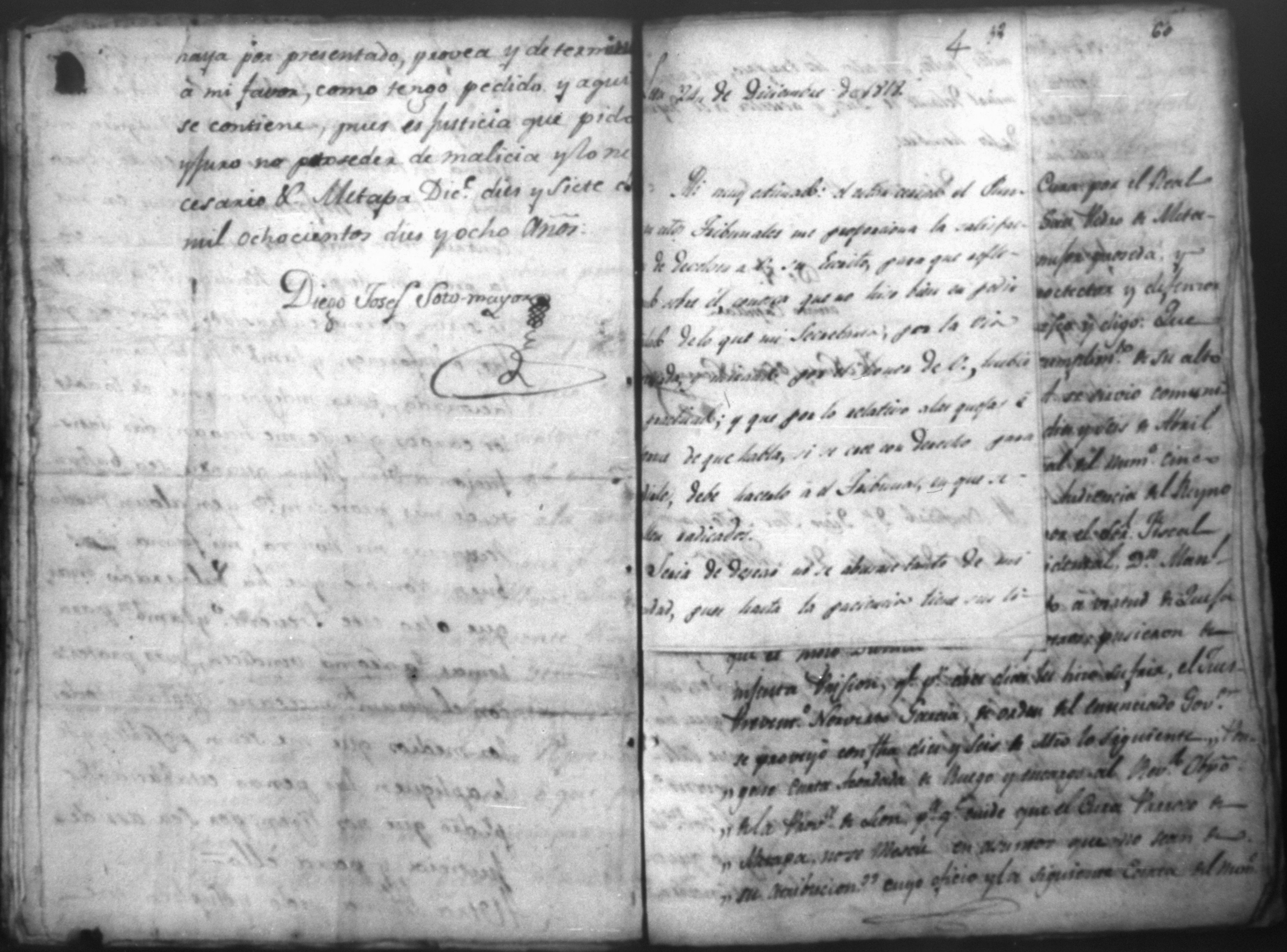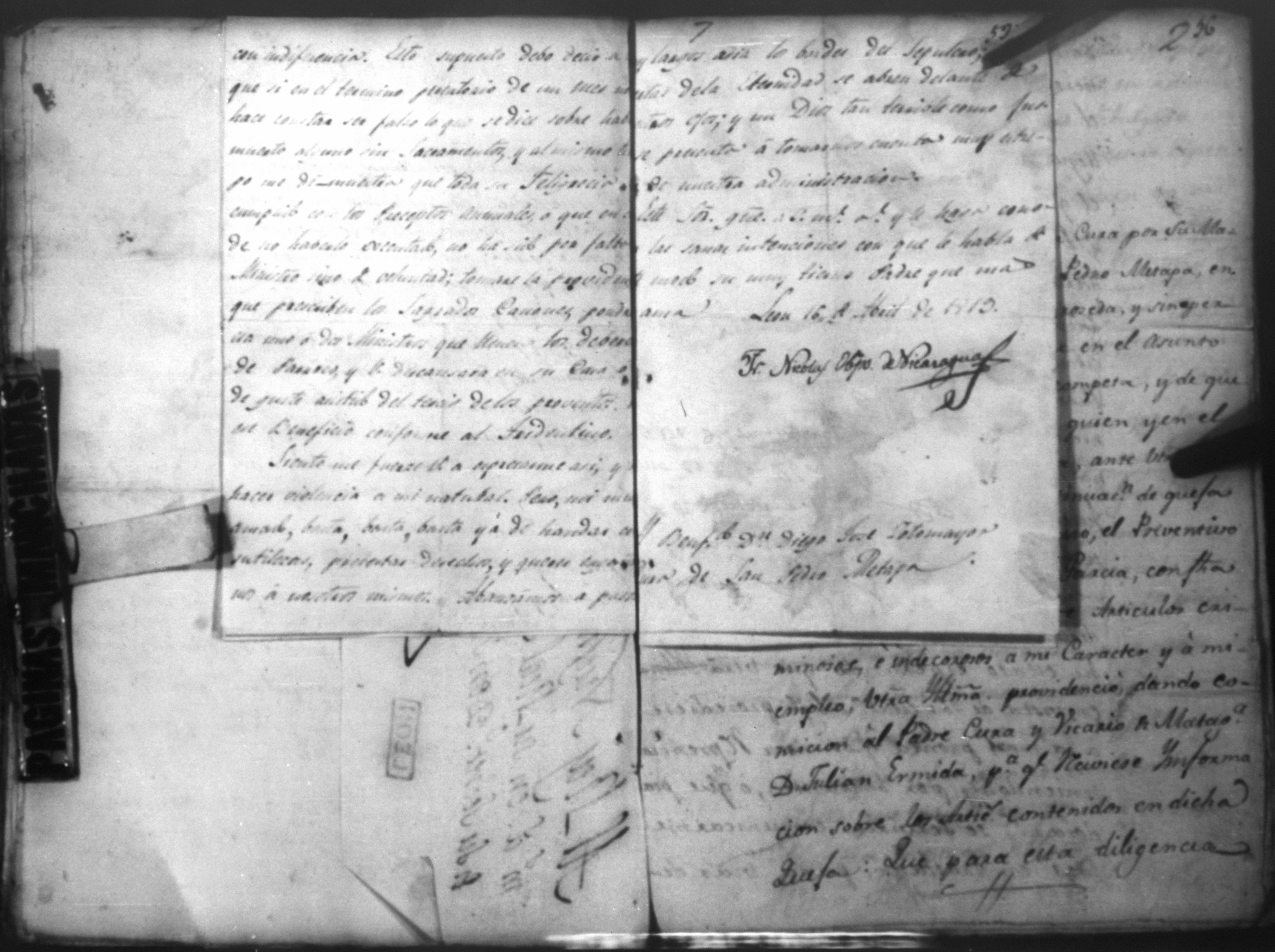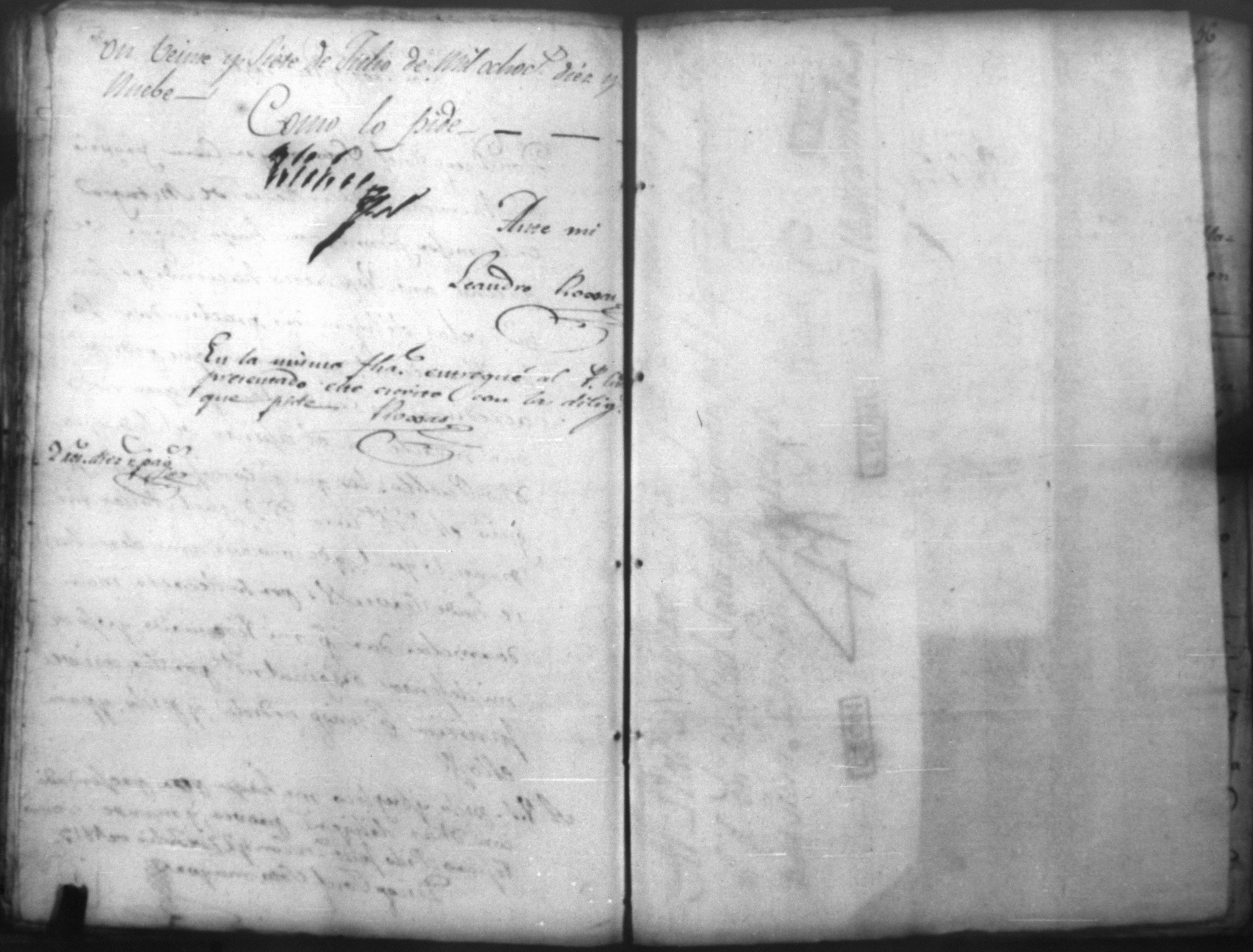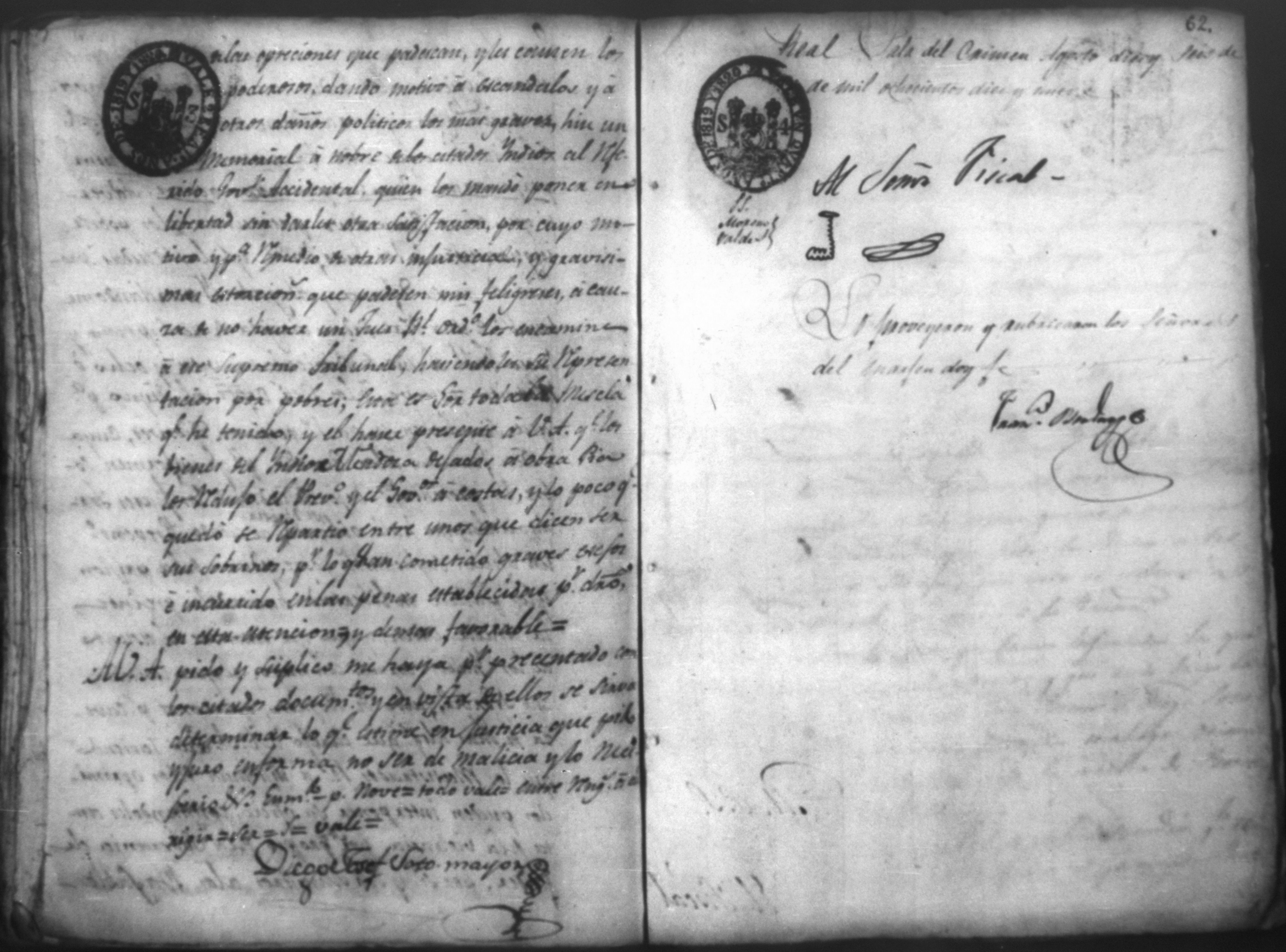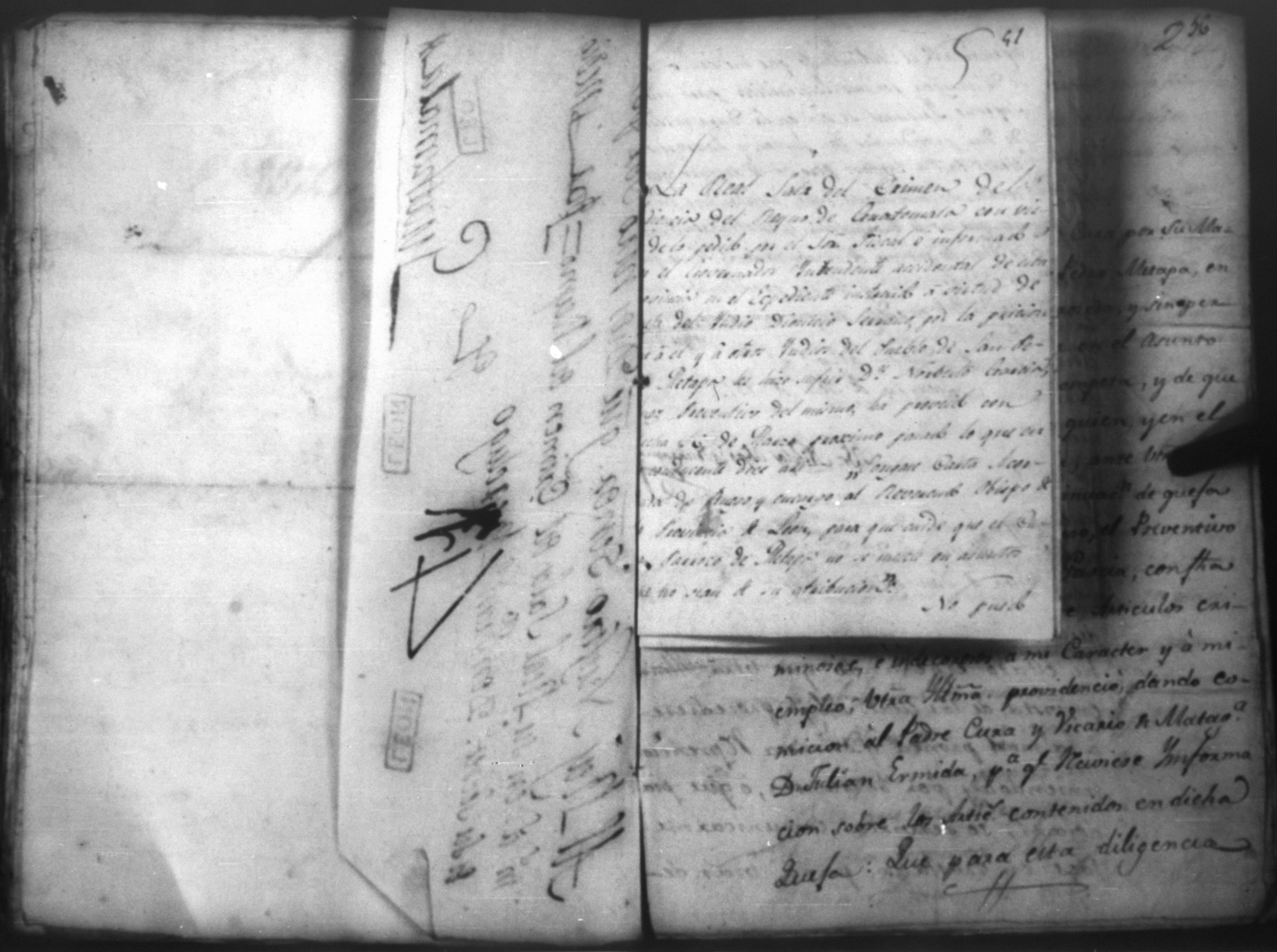 Temática: Audiencia Leon 1818. El Indio Dionicio Cerrano, contra el Presbitero Norberto Garcia por la prisión en que lo tiene. Relator: Ugalde. Firmas: Hurtado, Morán, Manuel Beltranena, Julian Montenegro.