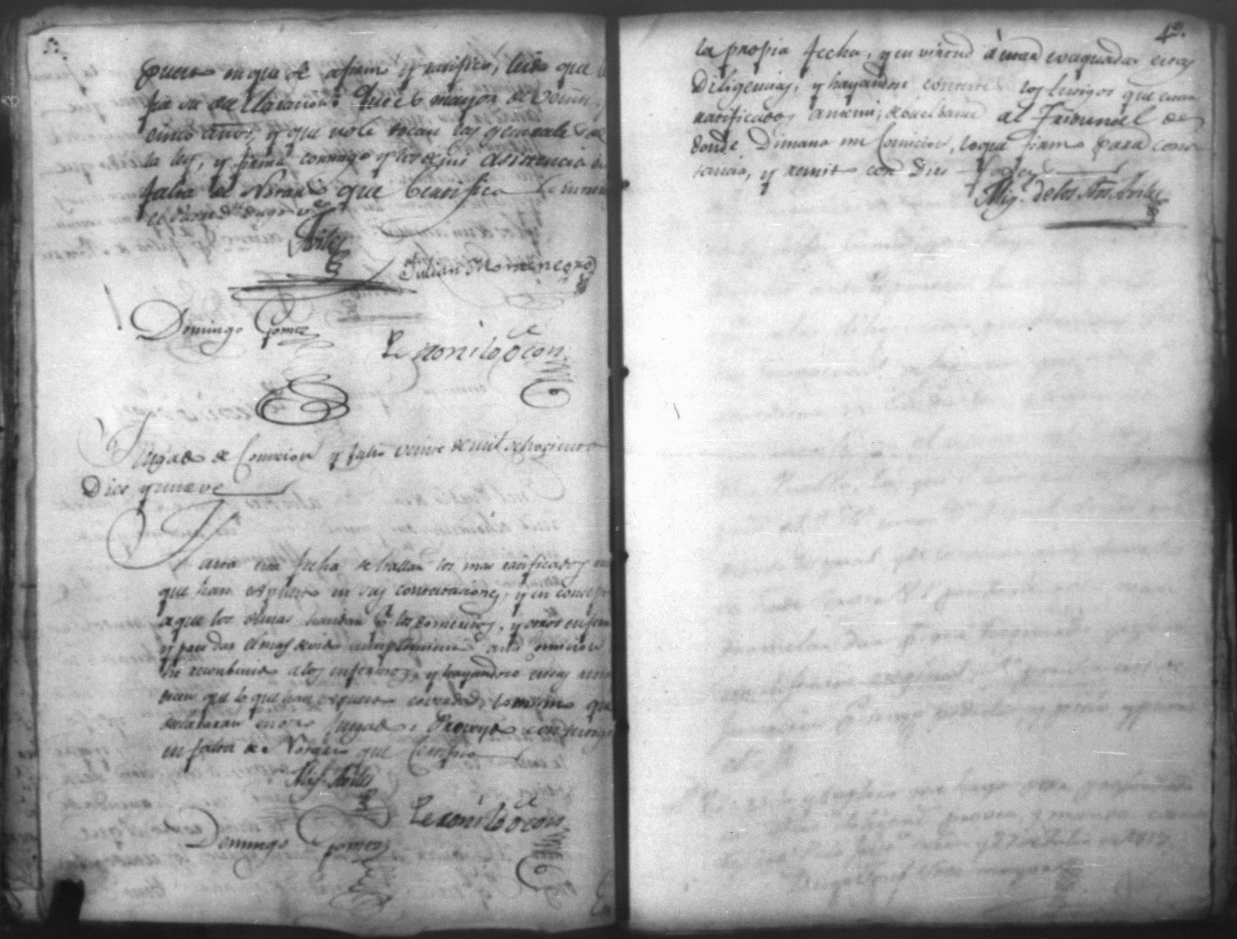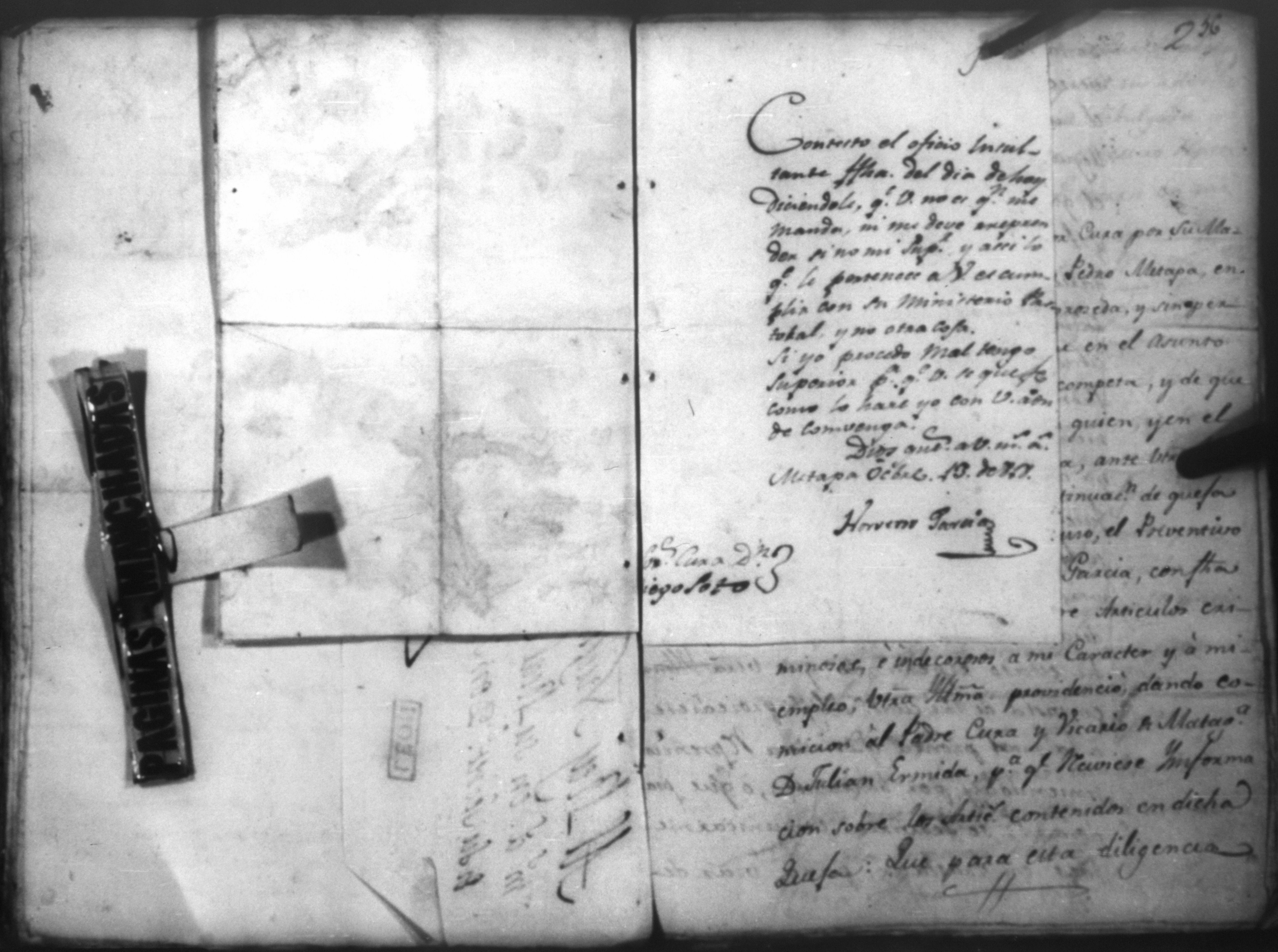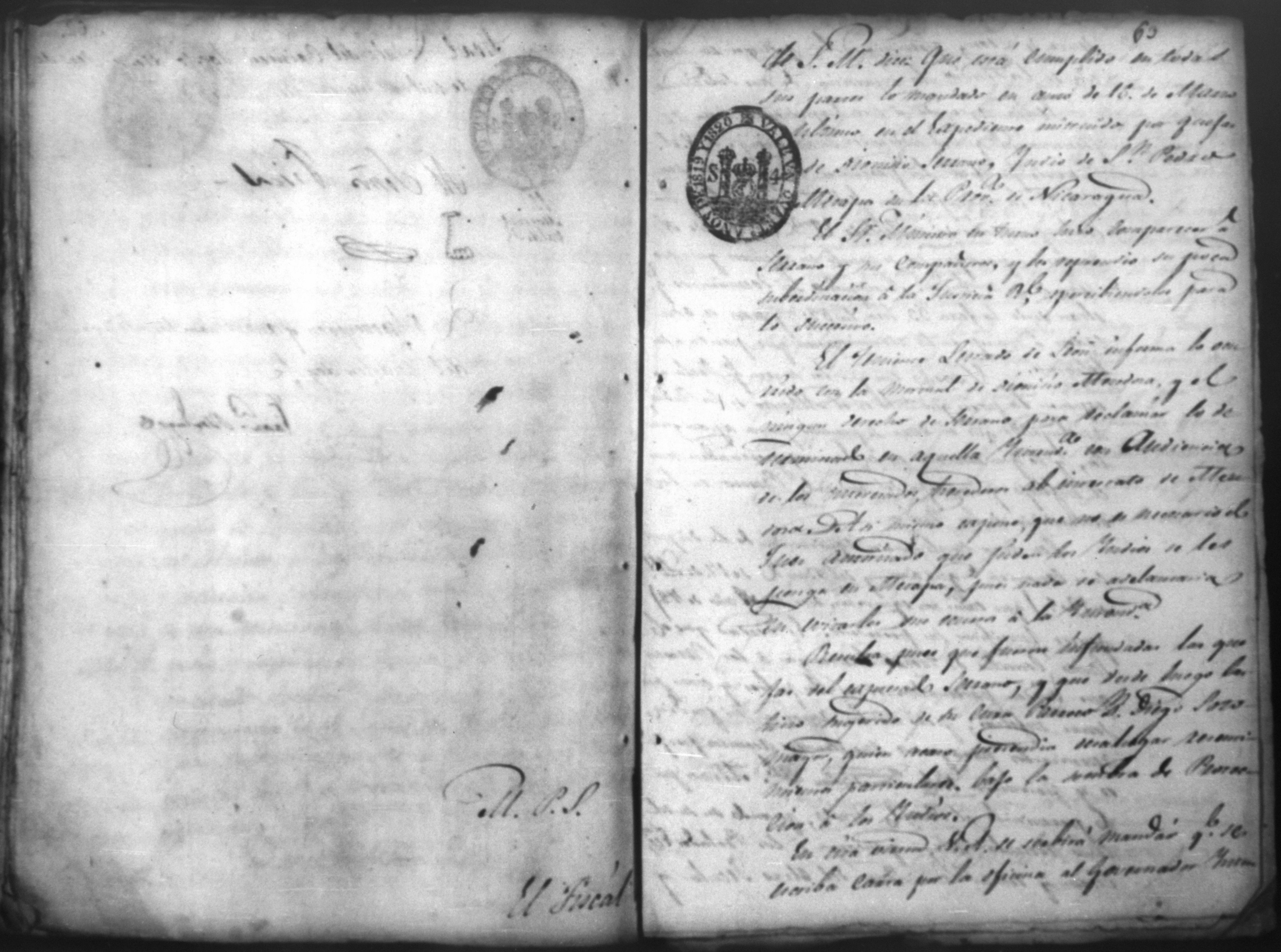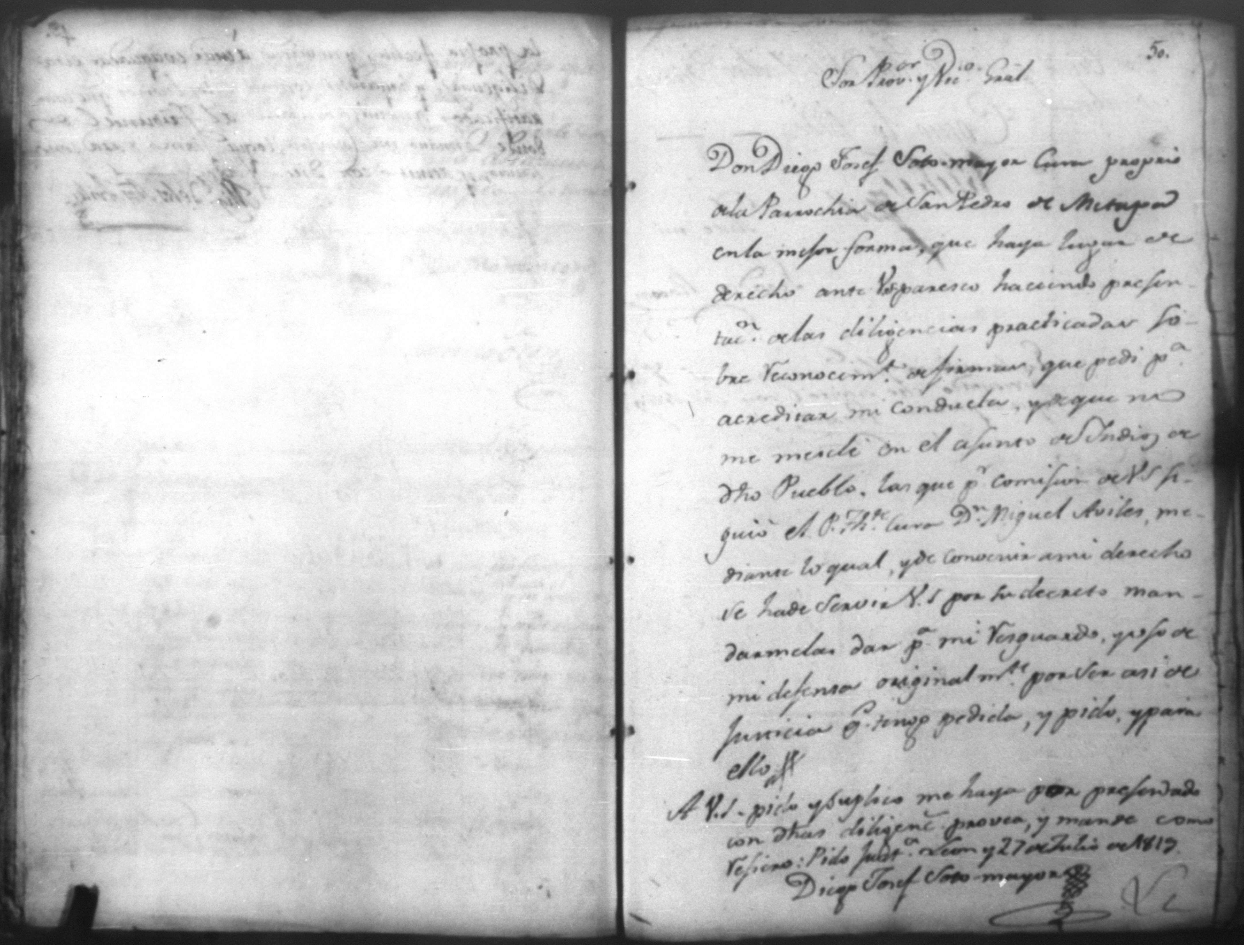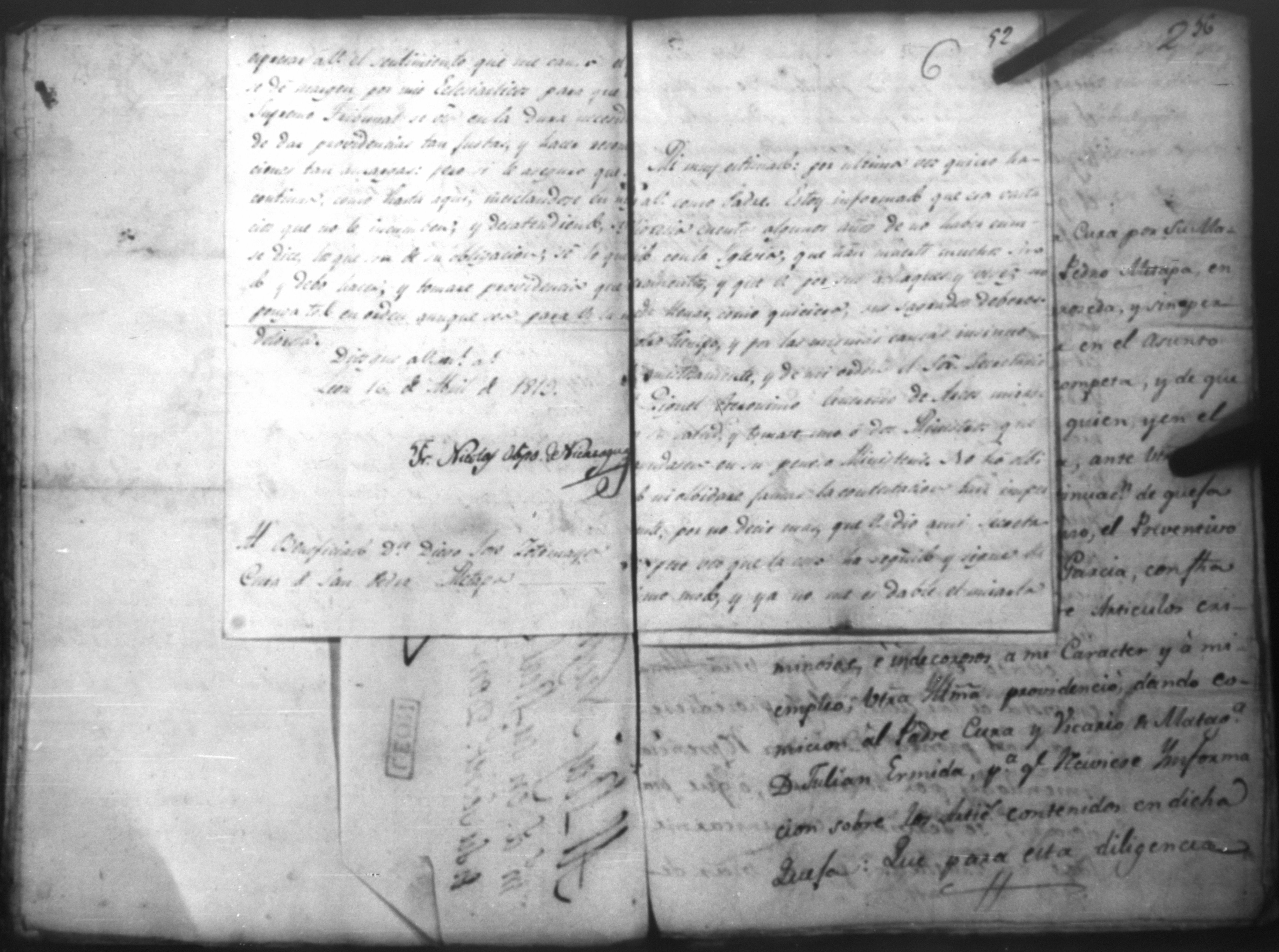 Temática: Audiencia Leon 1818. El Indio Dionicio Cerrano, contra el Presbitero Norberto Garcia por la prisión en que lo tiene. Relator: Ugalde. Firmas: Hurtado, Morán, Manuel Beltranena, Julian Montenegro.