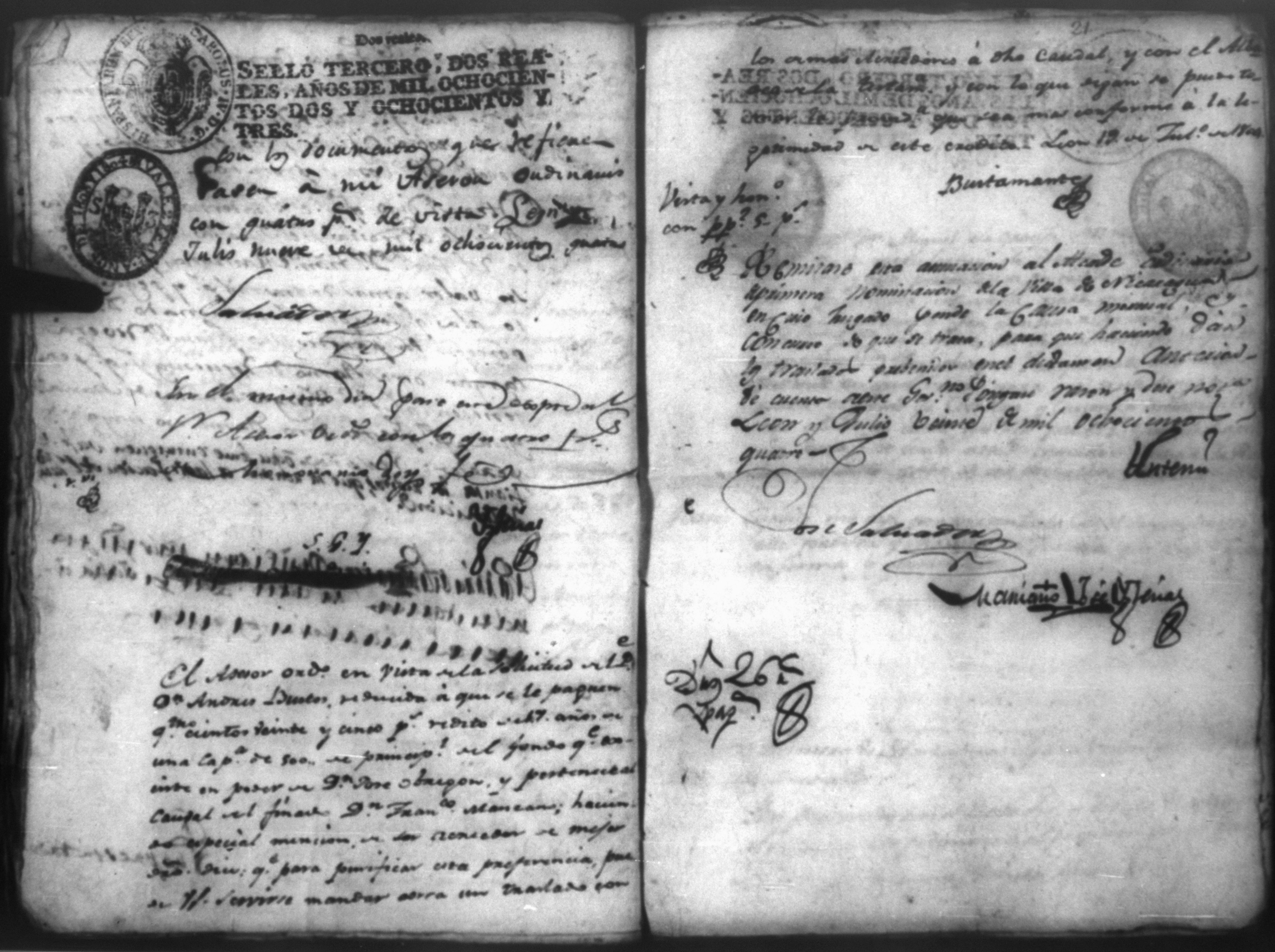 Temática: Audiencia Leon 1807. Don José Obregón con el Presbitero Don Andres Bustos sobre ciertas Capellanias. Relator: Ugalde.