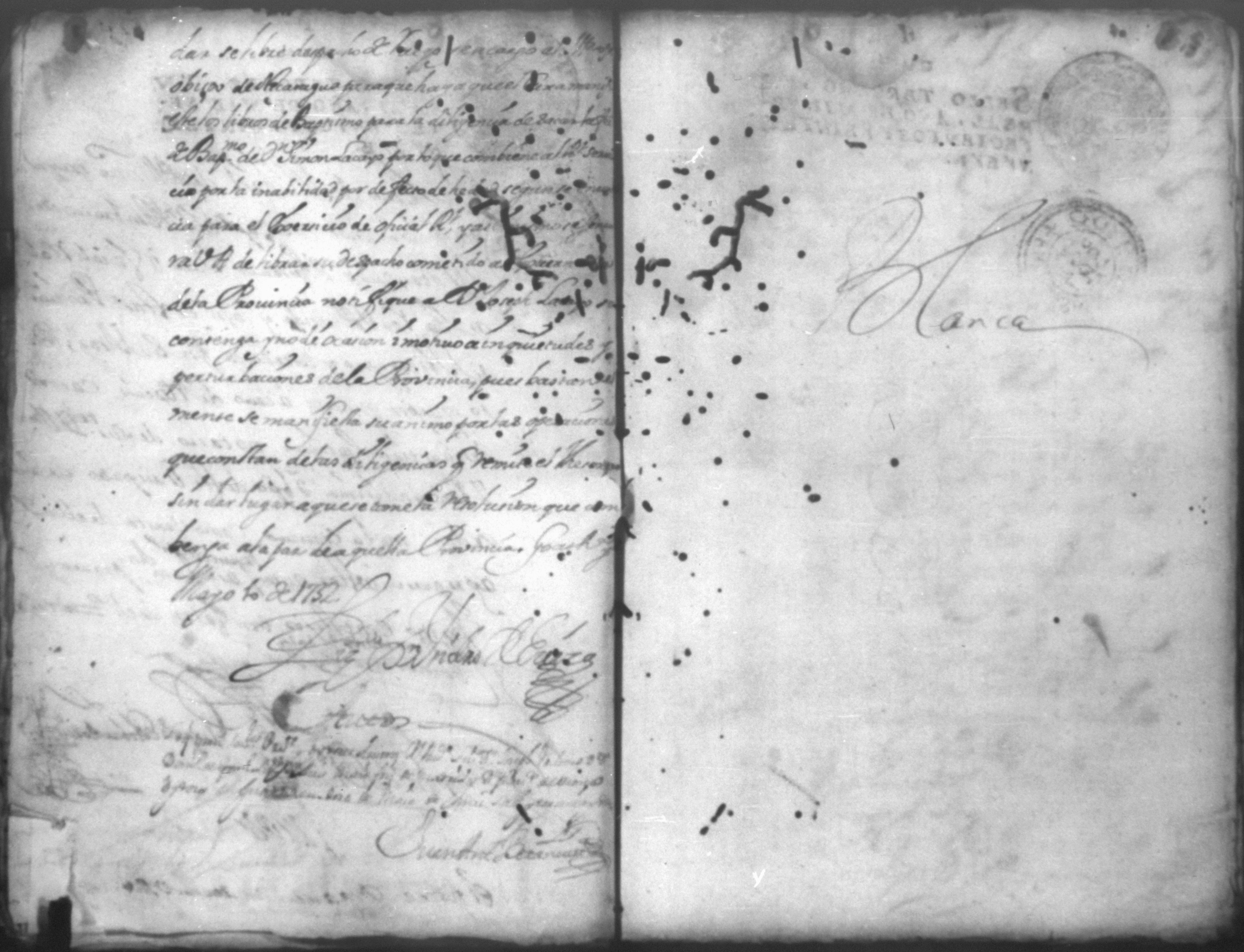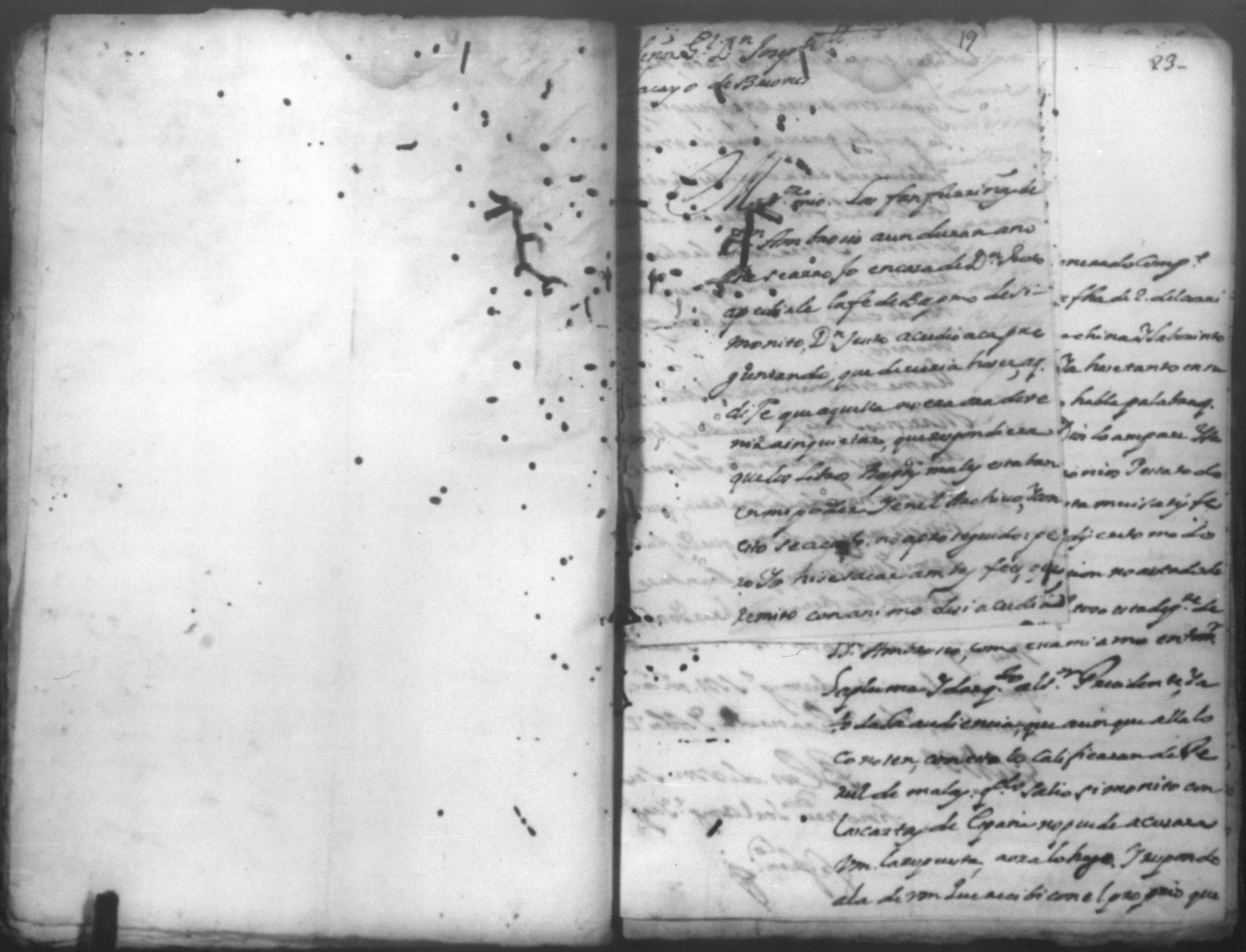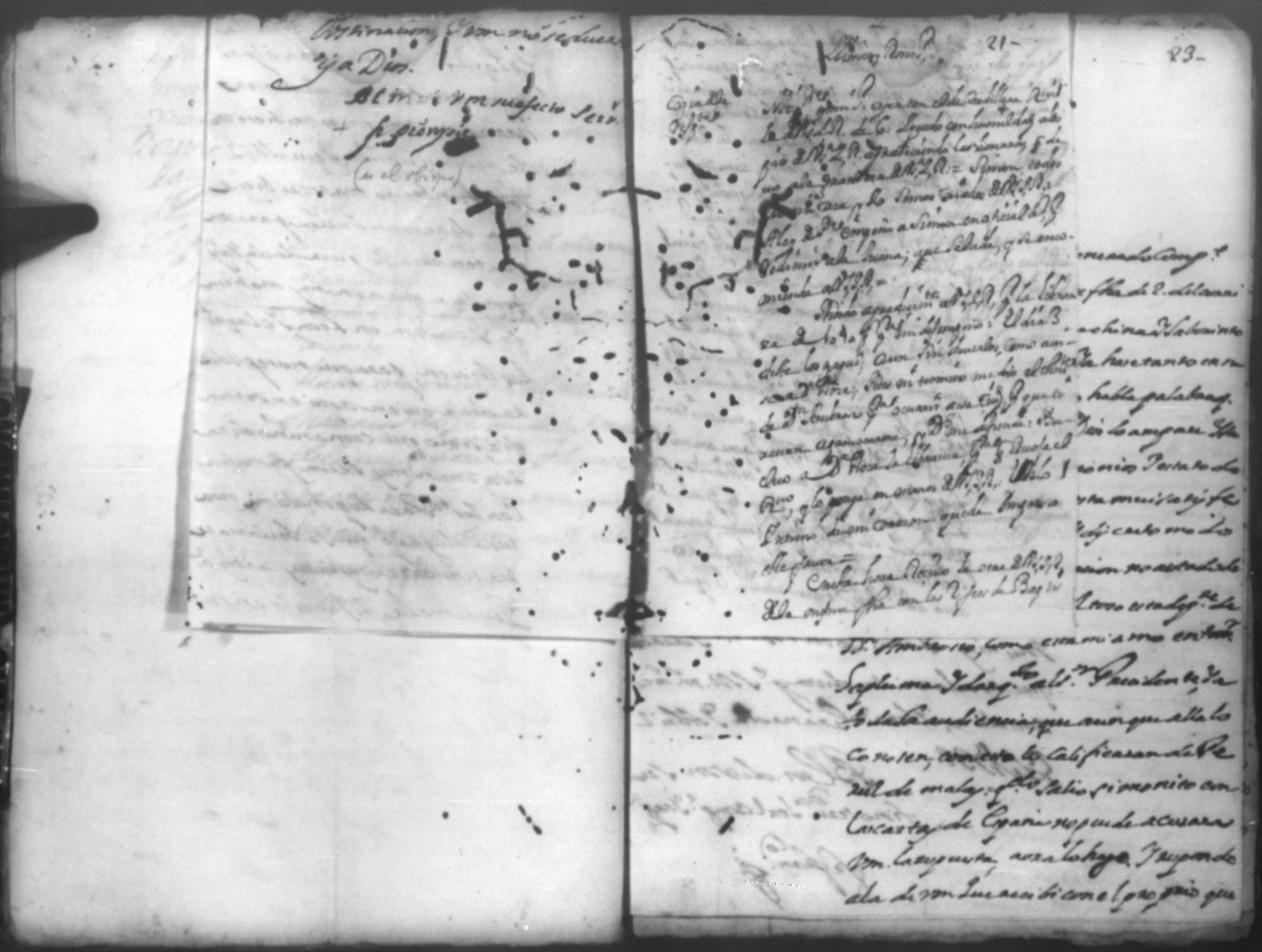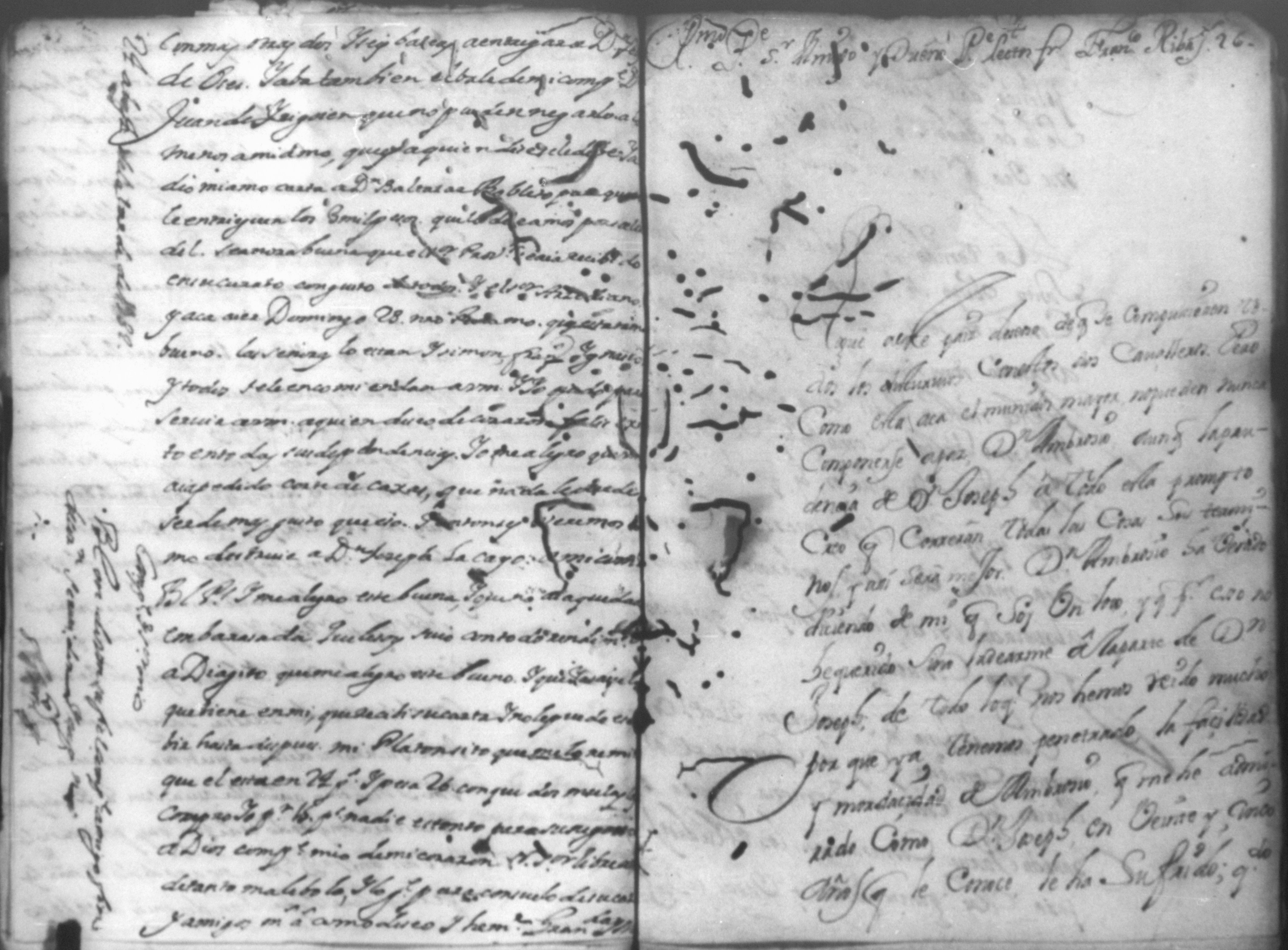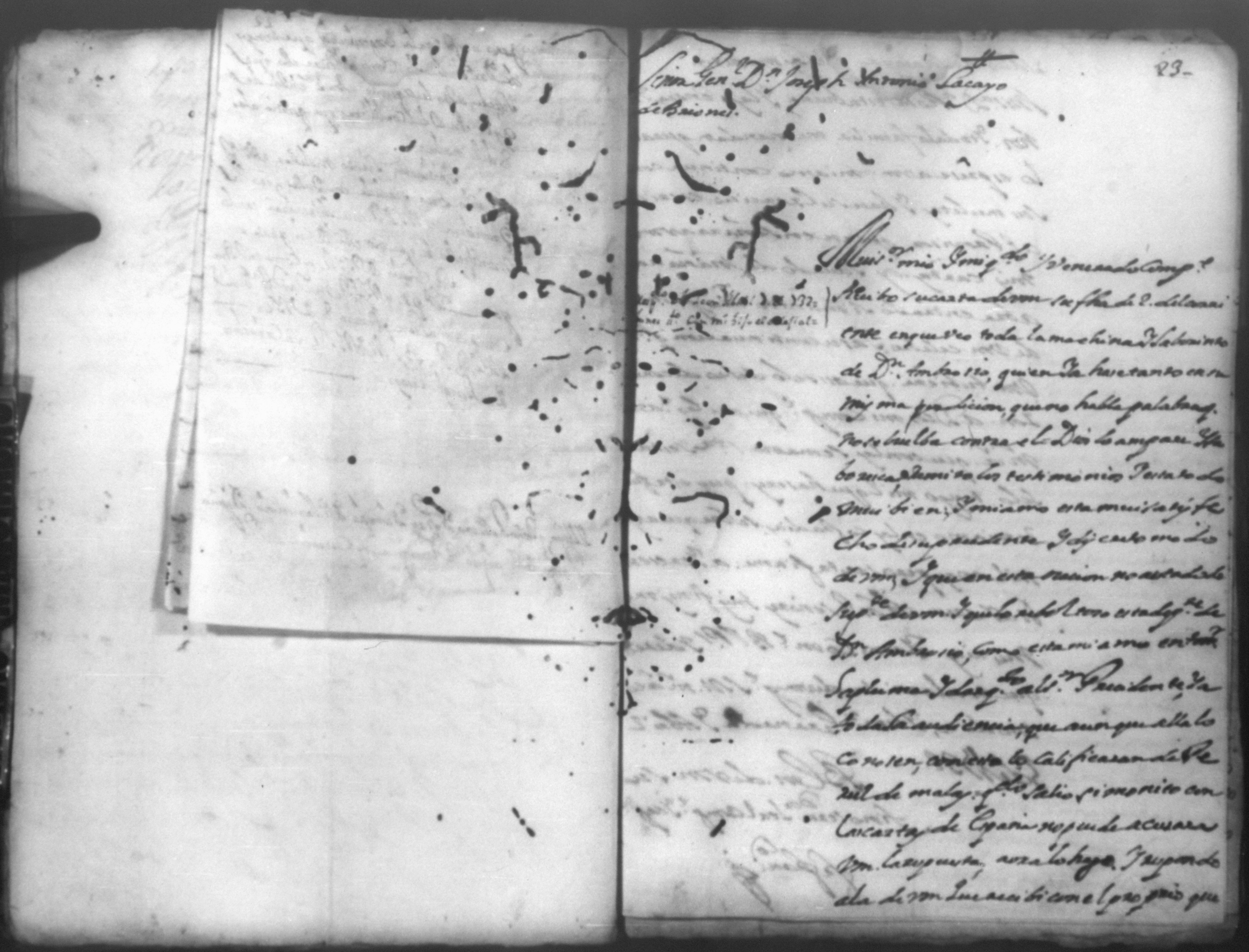 Temática: *Páginas manchadas* Autos creados para que declarara Joseph Lacayo ante el Alcalde Ordinario lo que supuso de aver escrito el [thesorero] en carta y no quiso hacer la declaración y sobre otra carta que escribio al theniente del Arzobispado.