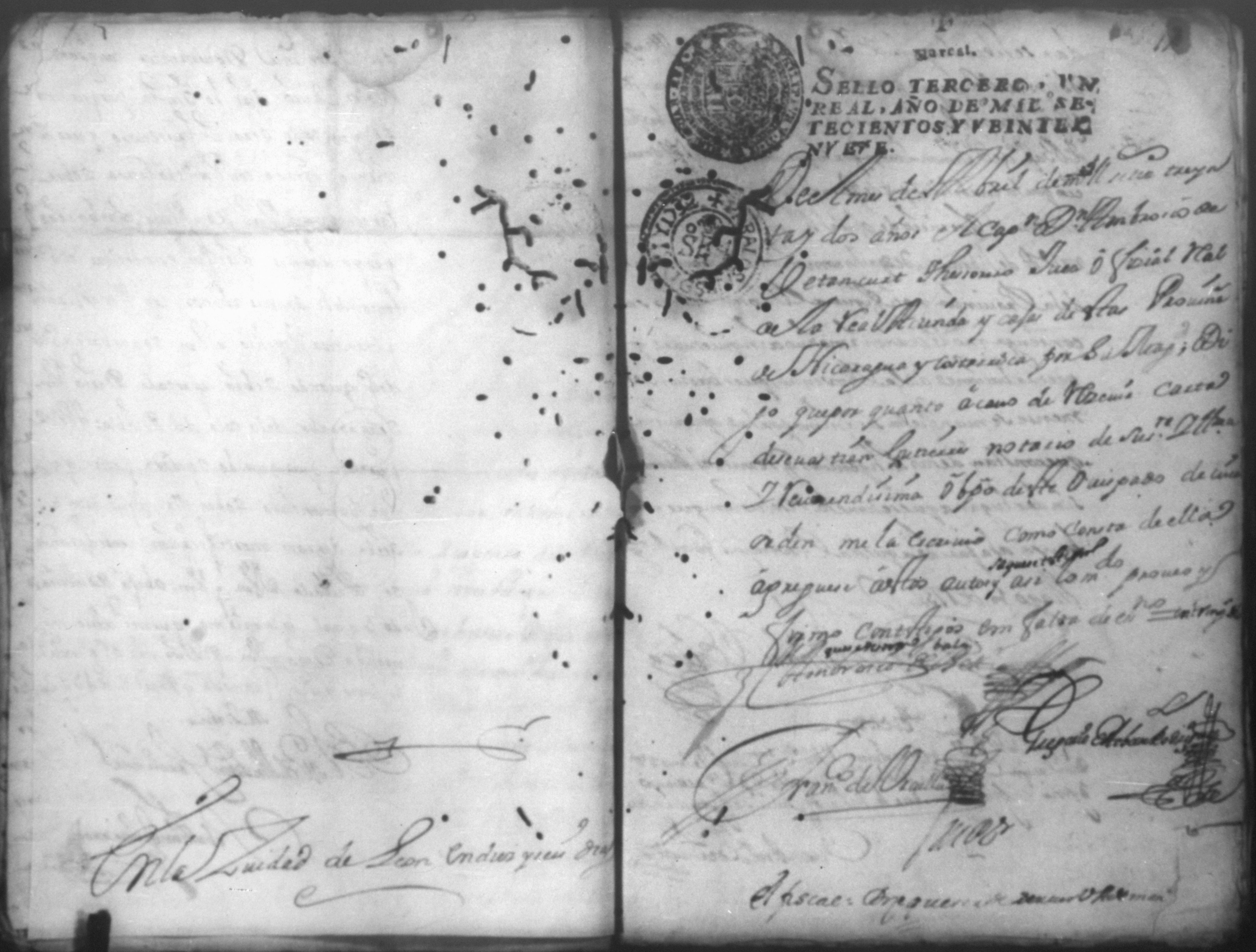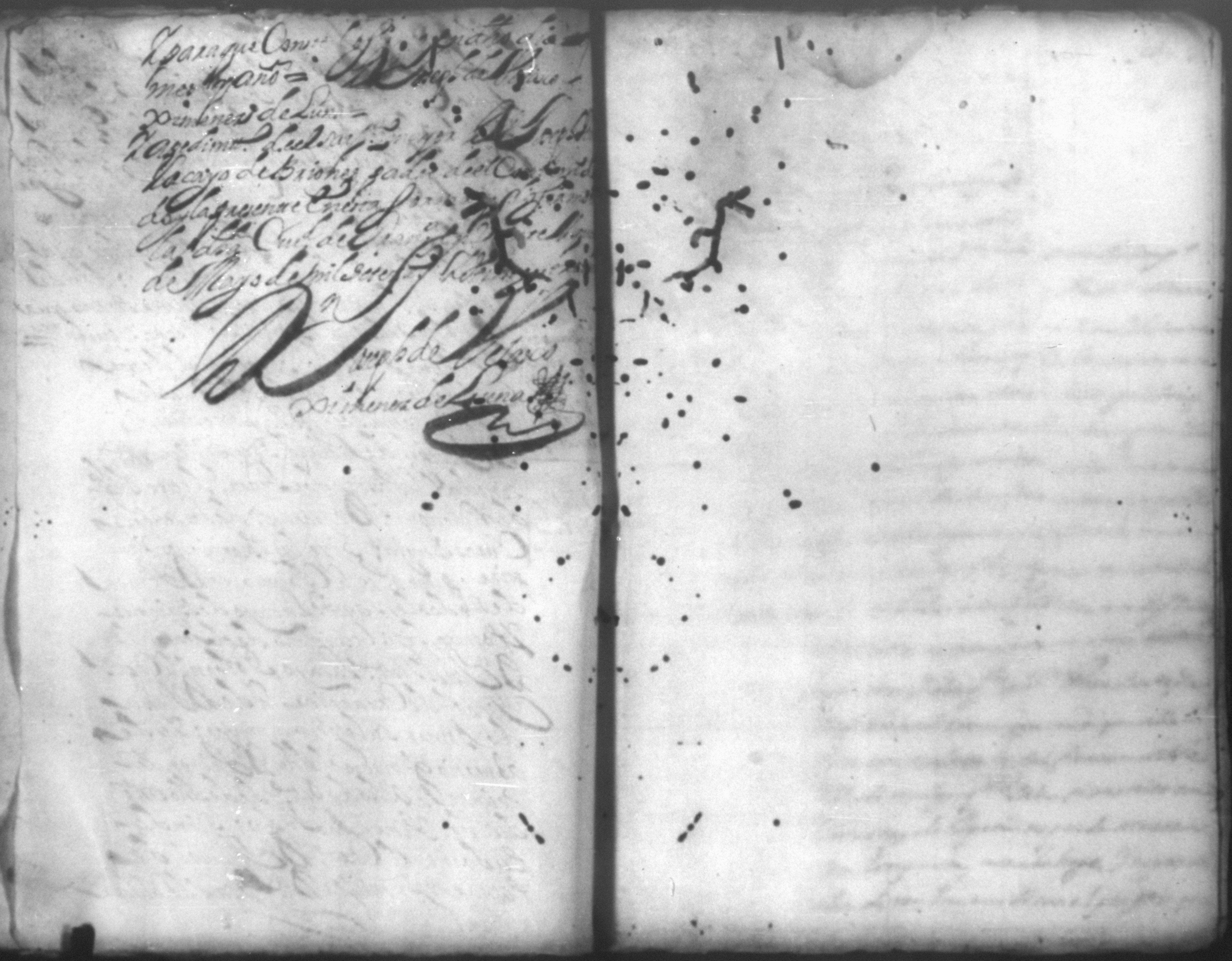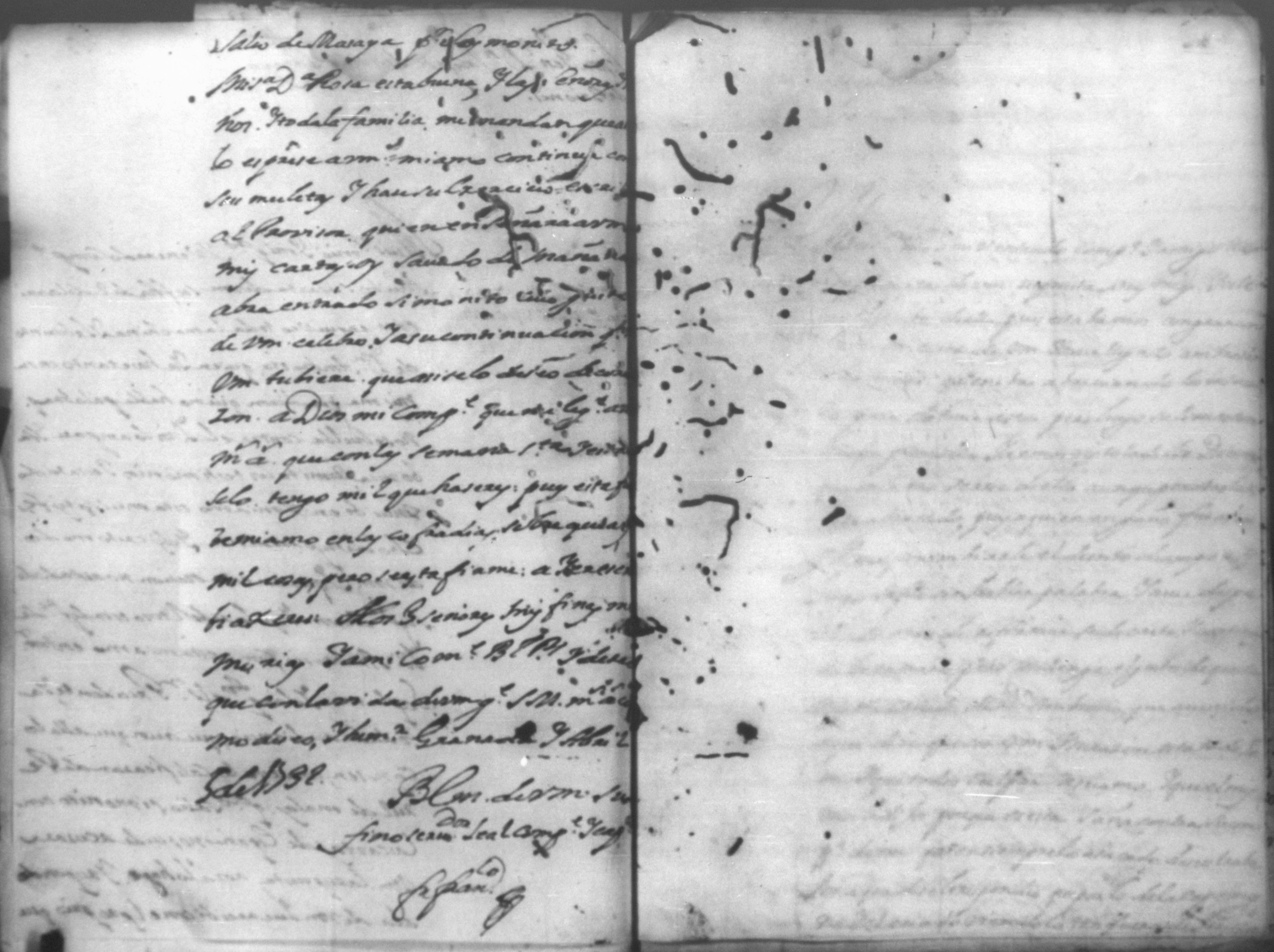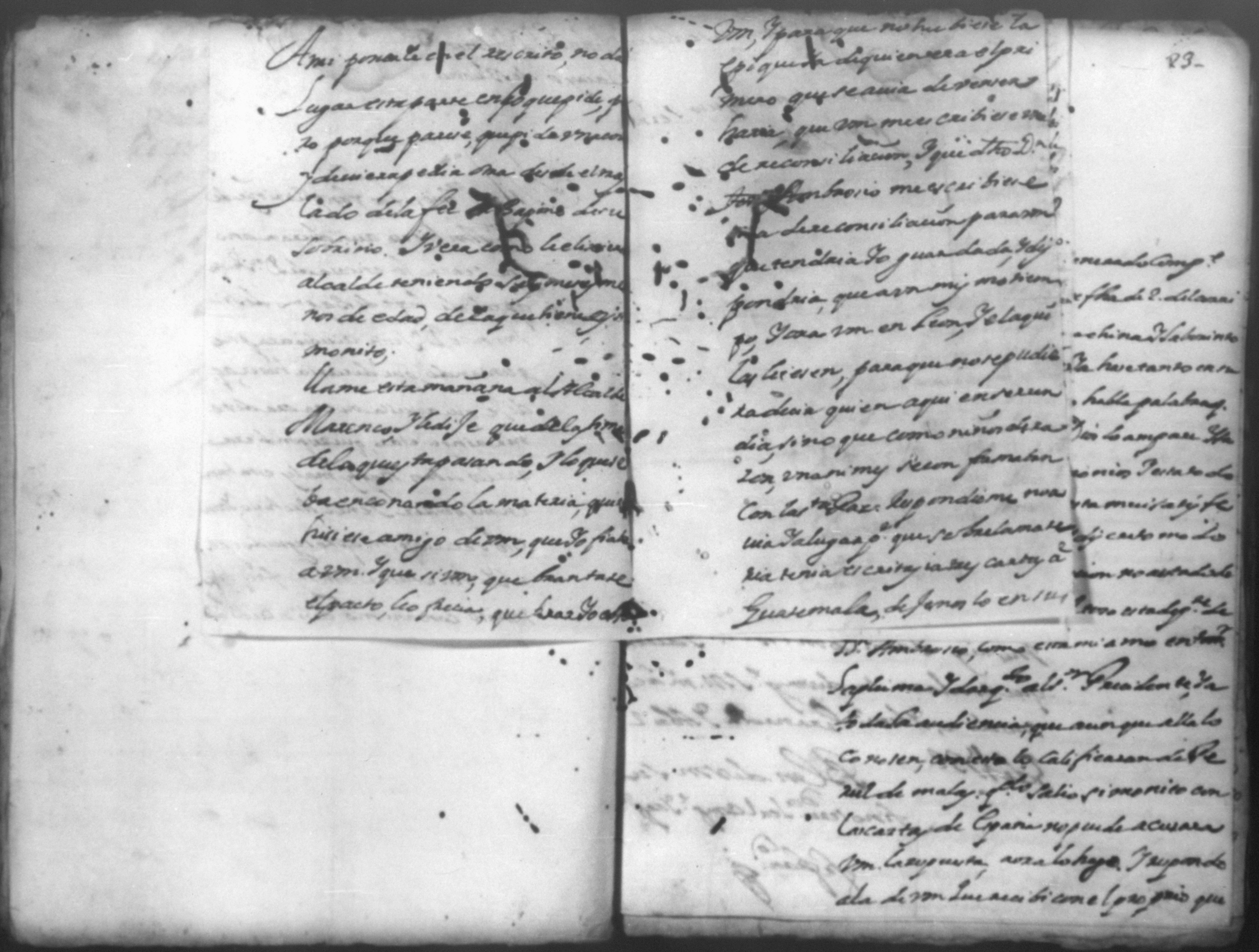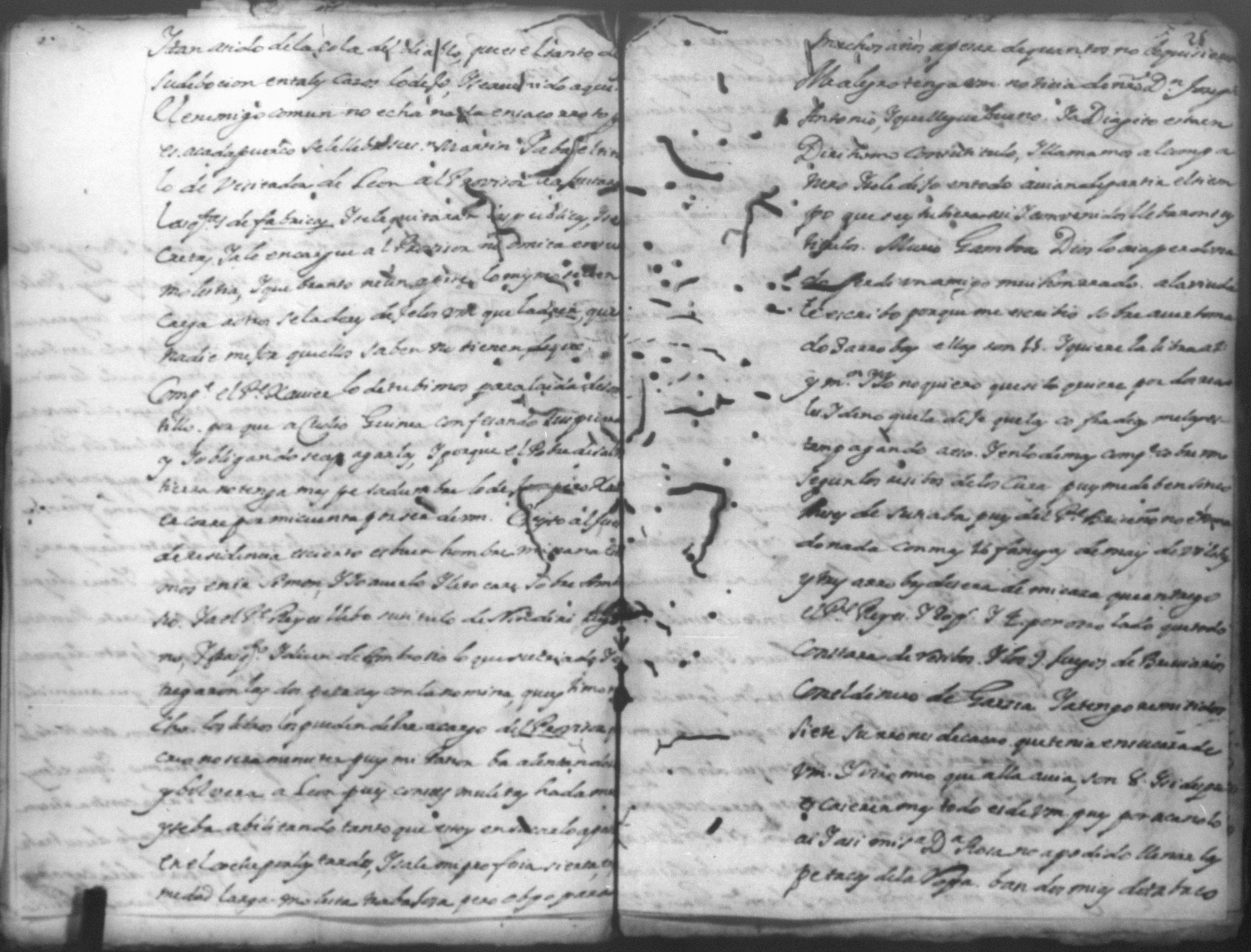 Temática: *Páginas manchadas* Autos creados para que declarara Joseph Lacayo ante el Alcalde Ordinario lo que supuso de aver escrito el [thesorero] en carta y no quiso hacer la declaración y sobre otra carta que escribio al theniente del Arzobispado.