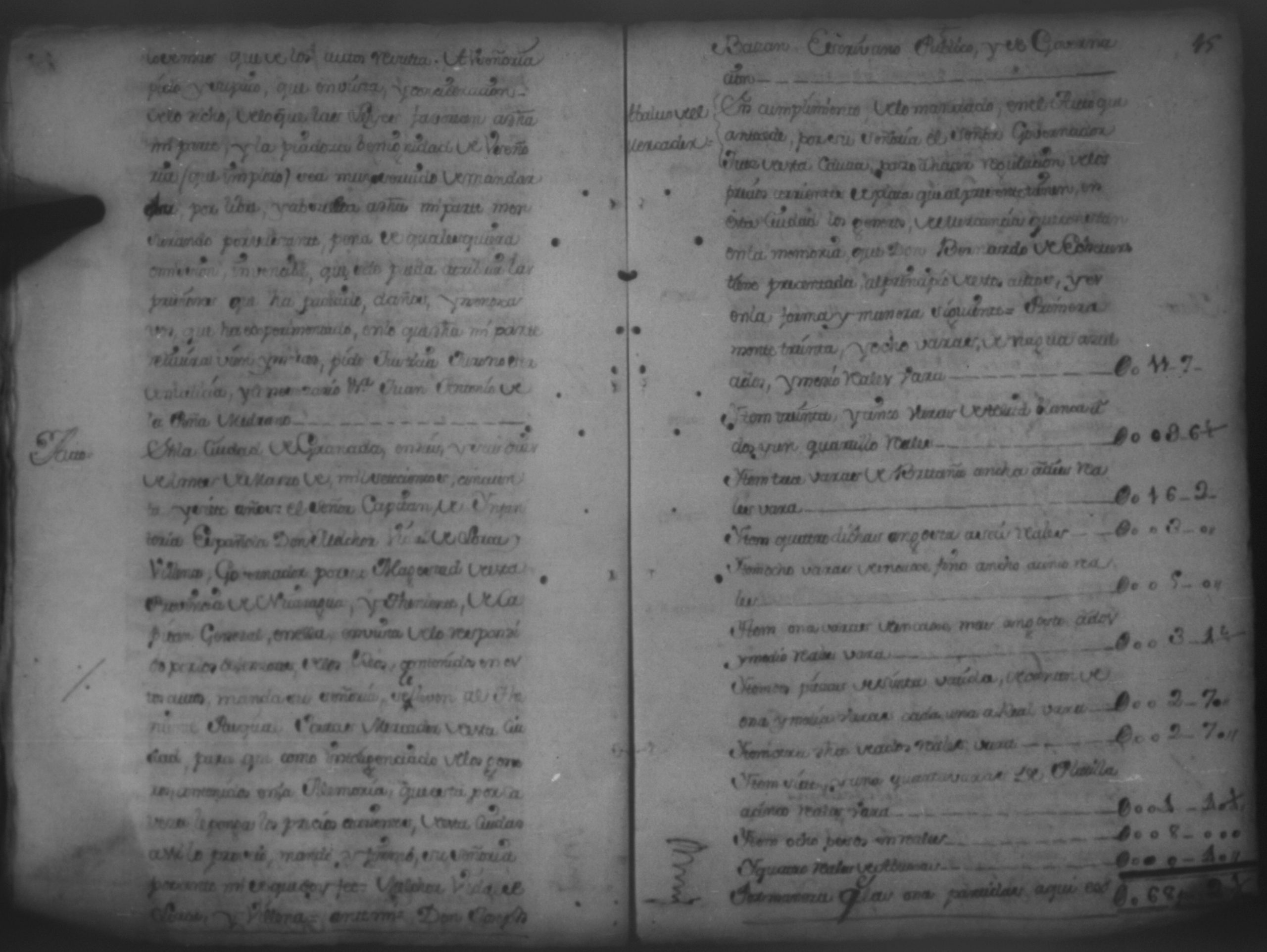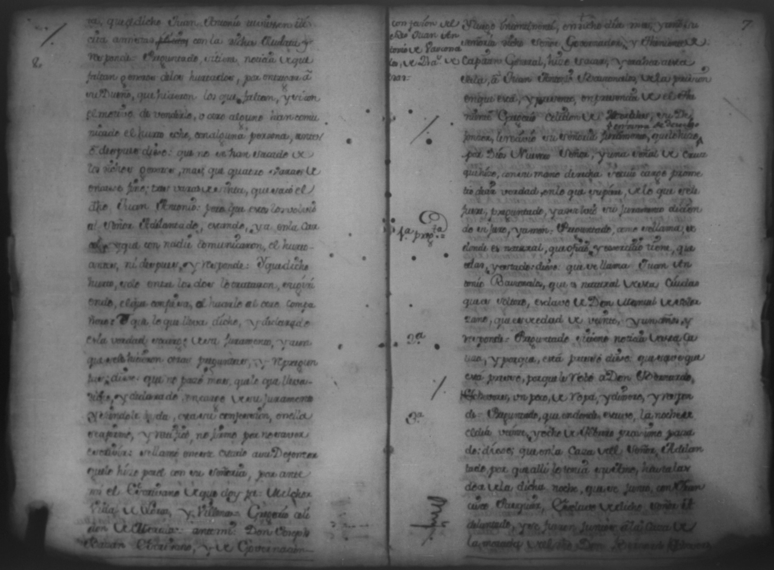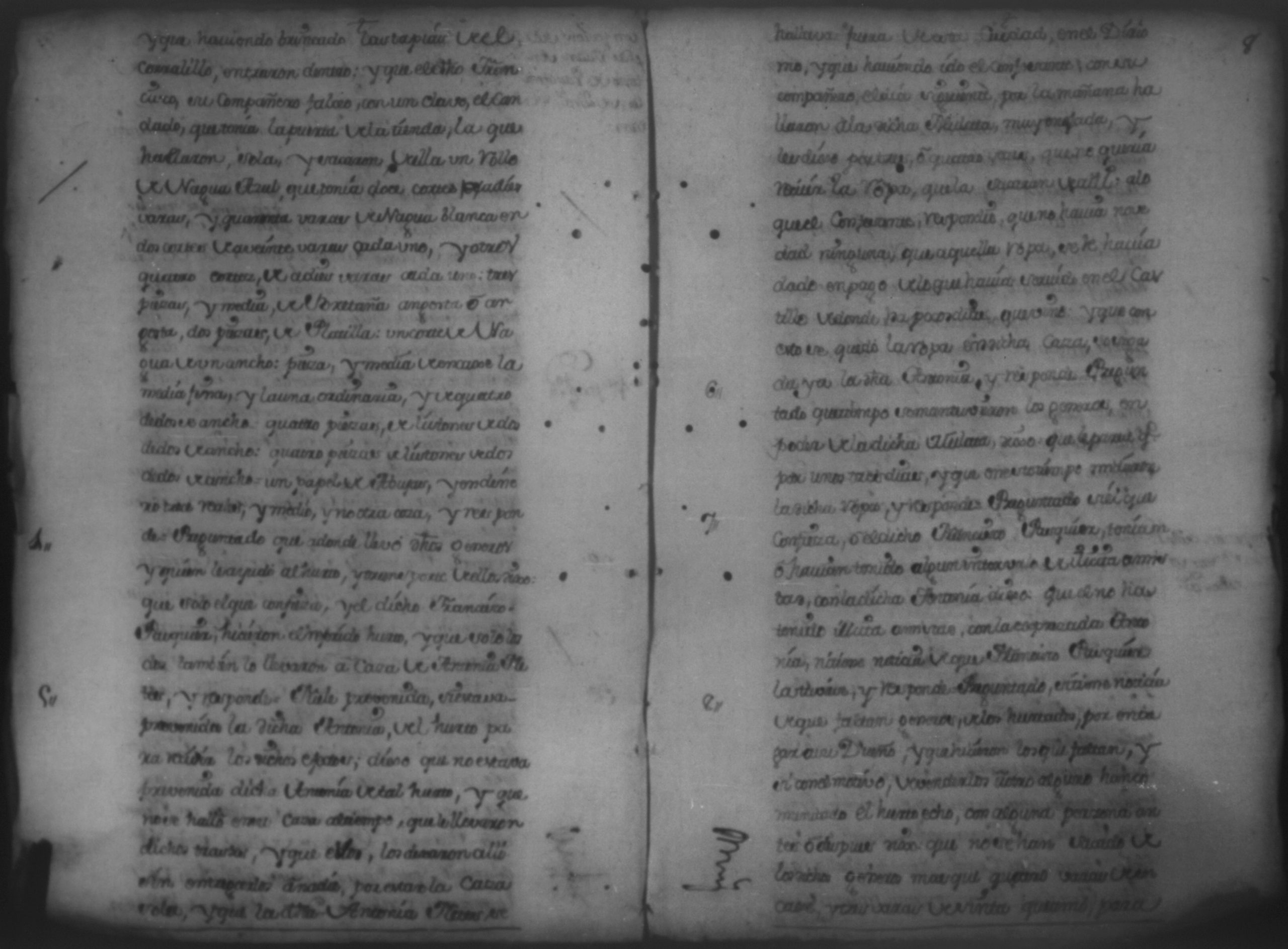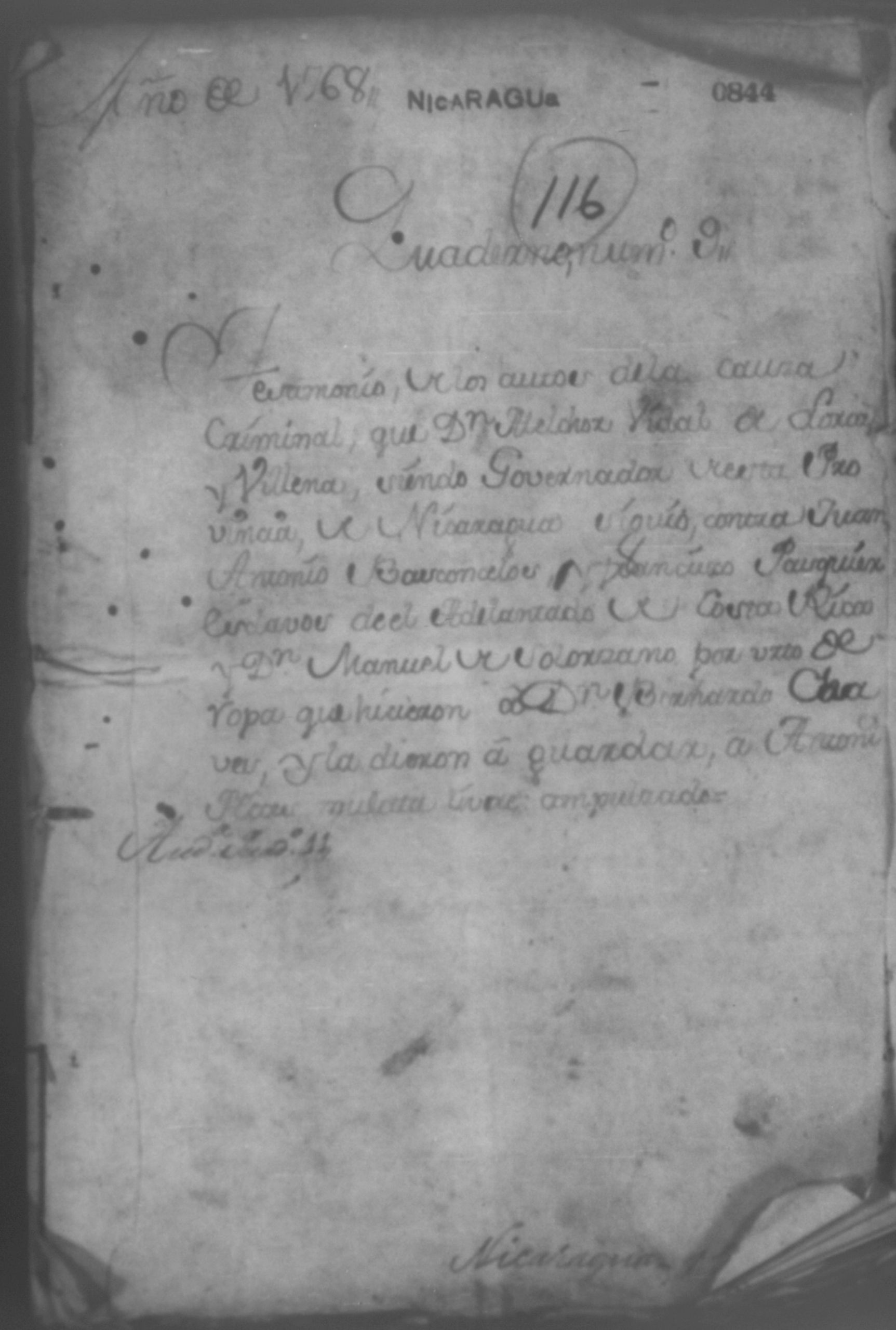 Temática: Quaderno N°. 9. Testimonio de los autos de la causa criminal que Don Melchor Vidal de Larios y Villena siendo Governador de esta Provincia de Nicaragua siguio contra Juan Antonio Basconcelos y Francisco [Pasquier] esclavos del Adelantado de Costa Rica y Don Manuel de Solorsano por hurto de ropa que hicieron a Don Bernardo Chaves y la dieron a guardar a Antonia Flores, mulata