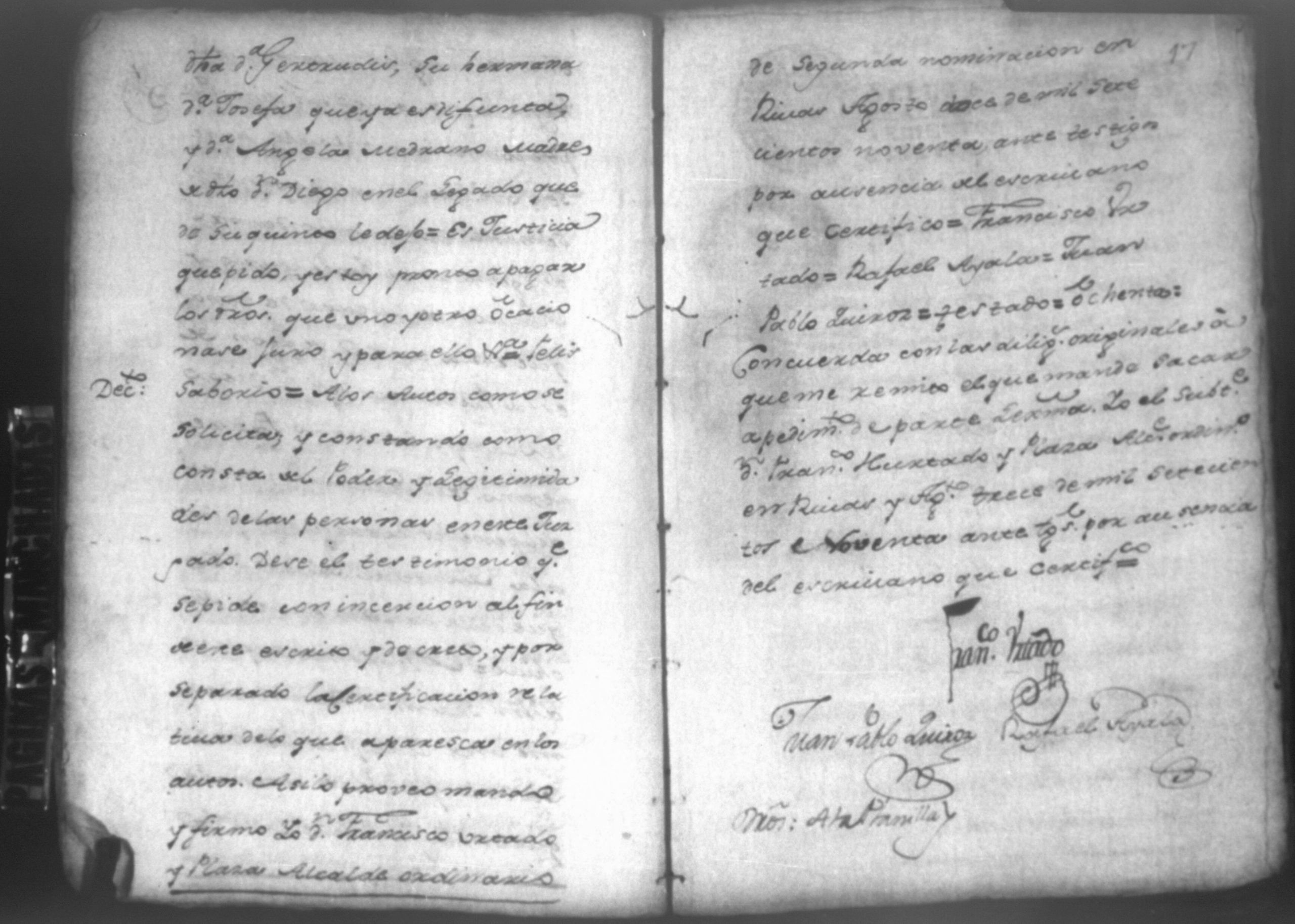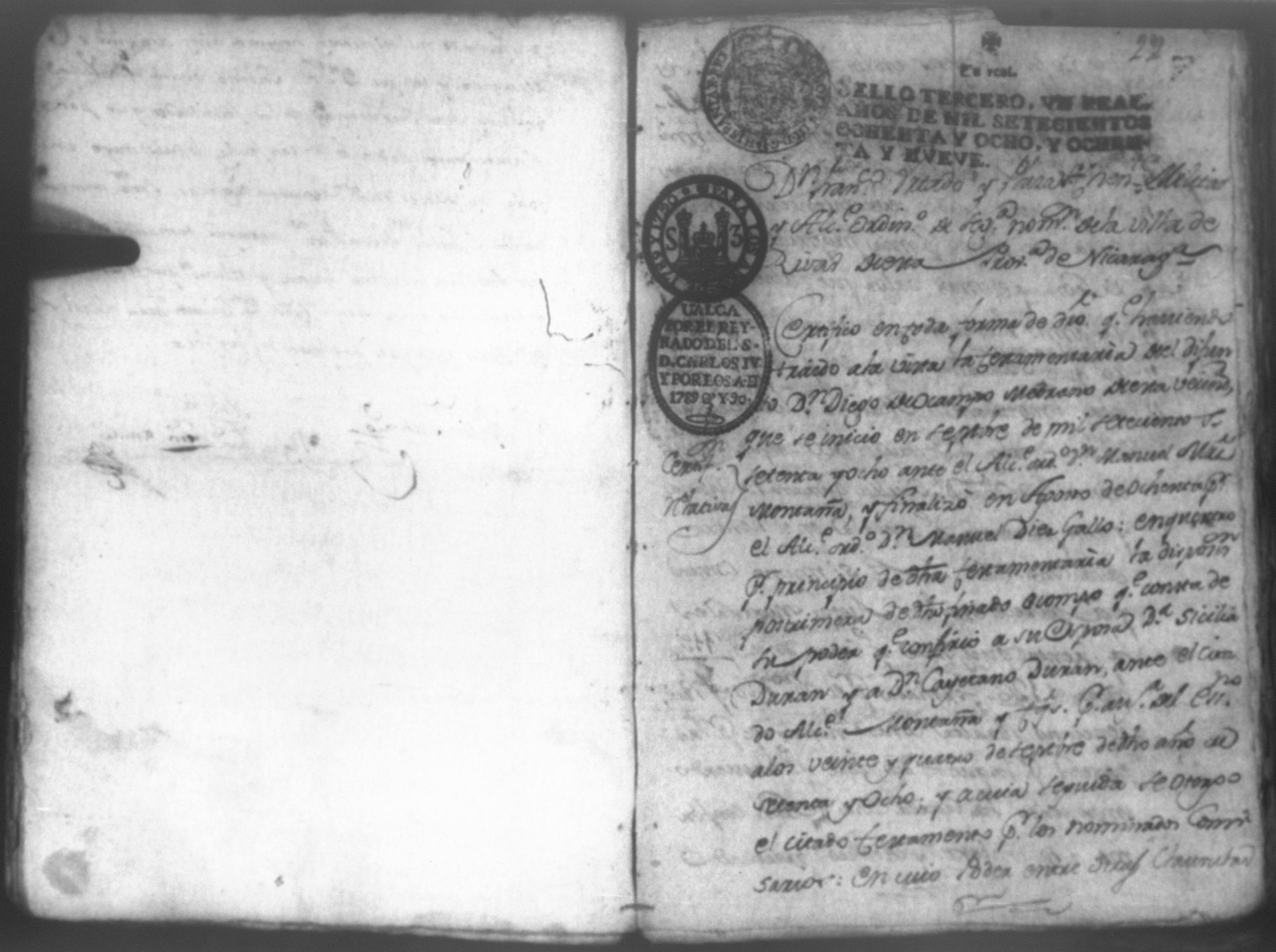 Temática: Audiencia, León, 1793. Autos que sigue Don Francisco Miguel de Ocampo con Don Felix Saborio sobre pertenencia de una casa en León. Incluye: Pruebas a favor de los hijos menores del finado Don Diego de Ocampo en el pleito que sigue el procurador Yglesias contra Doña Angela Medrano por haberle vendido esta una casa que tienen en la Calle Real, que va para Subtiaba. Subtiaba era un pueblo indígena en León, de origen Maribio. Algunas páginas del documento se encuentran manchadas.
