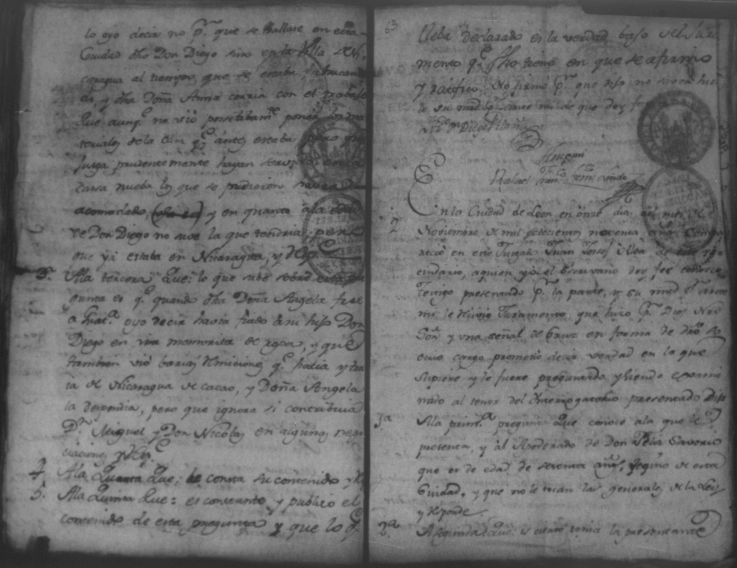 Temática: Audiencia, León, 1793. Autos que sigue Don Francisco Miguel de Ocampo con Don Felix Saborio sobre pertenencia de una casa en León. Incluye: Pruebas a favor de los hijos menores del finado Don Diego de Ocampo en el pleito que sigue el procurador Yglesias contra Doña Angela Medrano por haberle vendido esta una casa que tienen en la Calle Real, que va para Subtiaba. Subtiaba era un pueblo indígena en León, de origen Maribio. Algunas páginas del documento se encuentran manchadas.