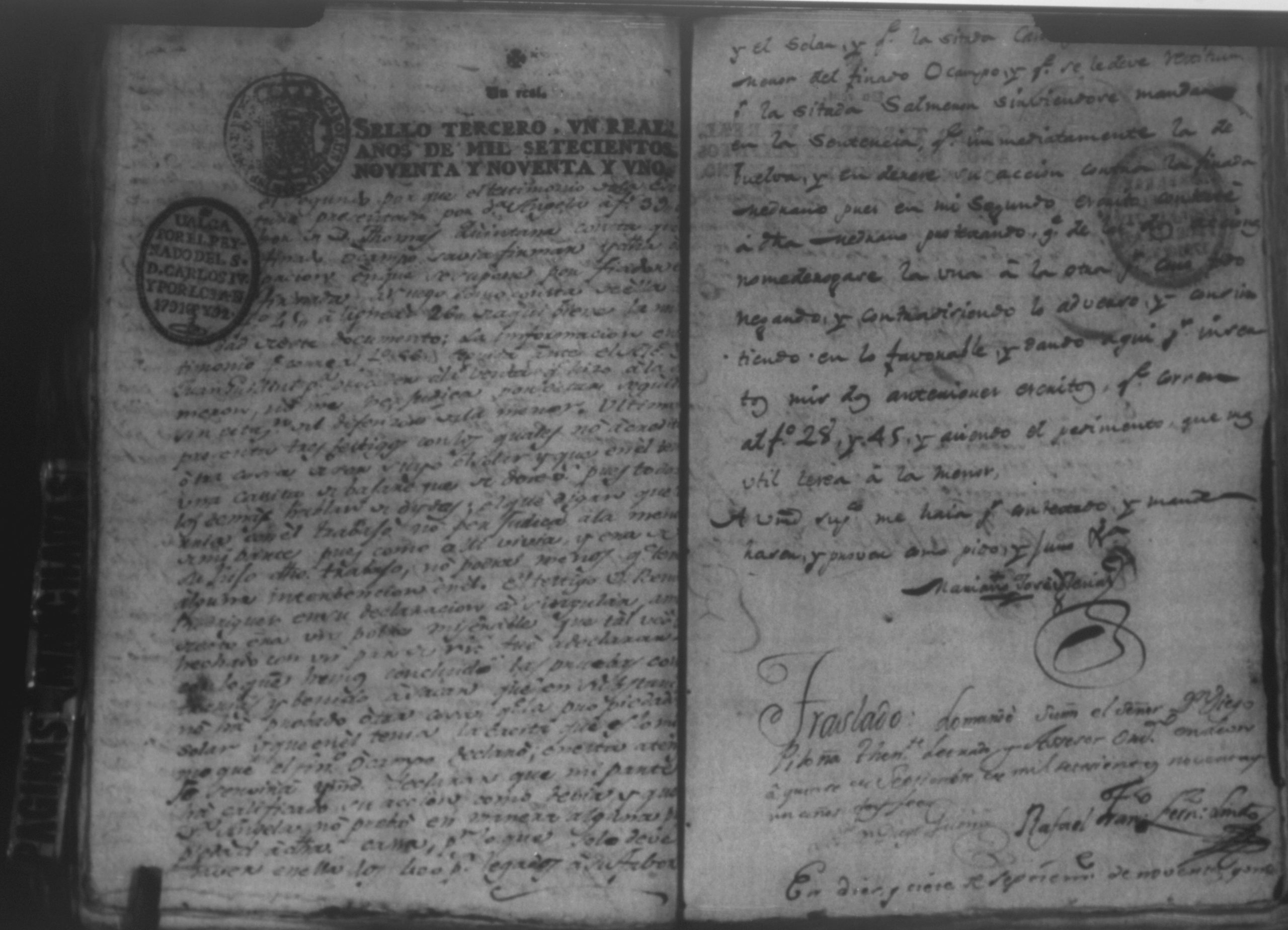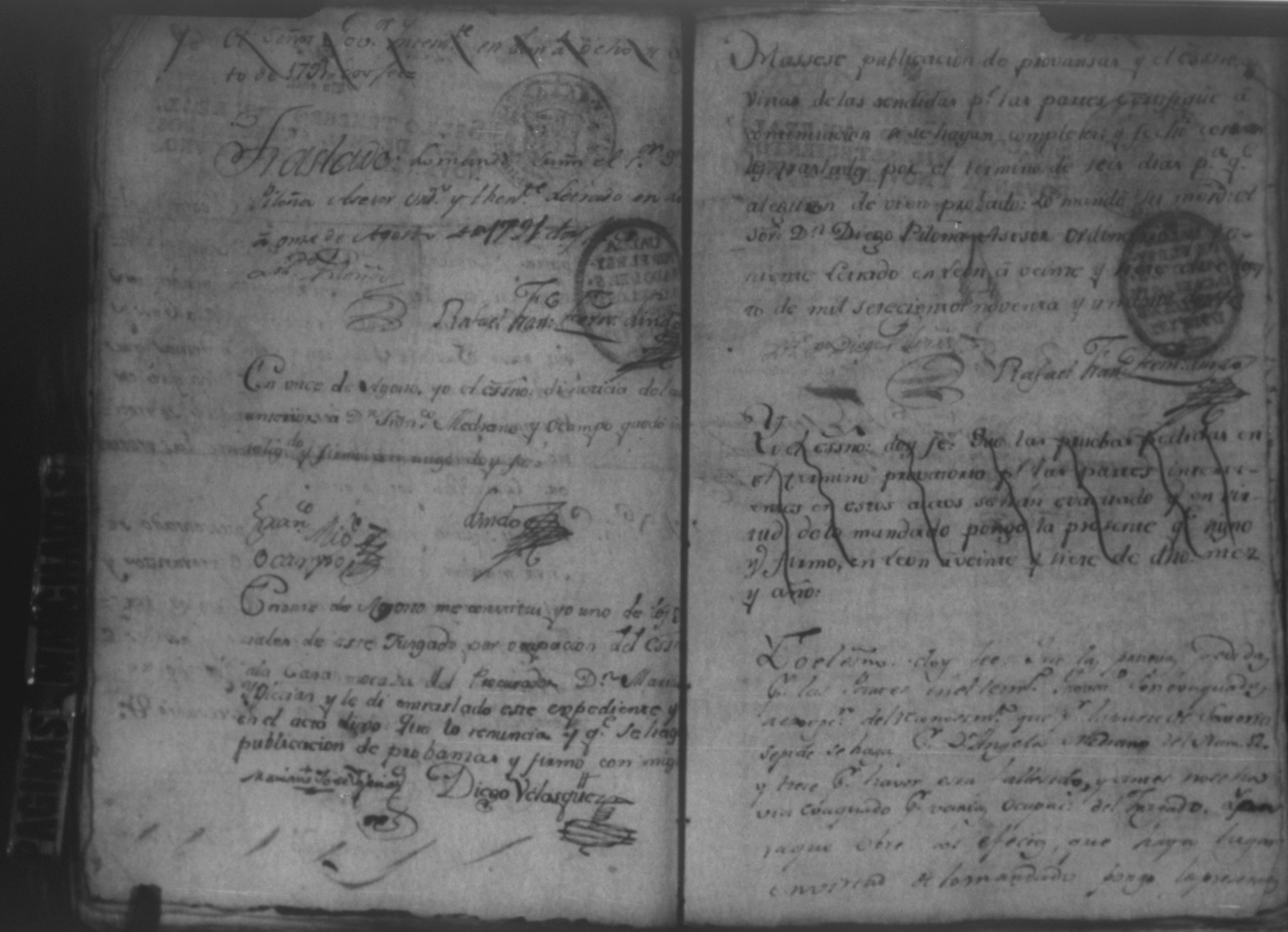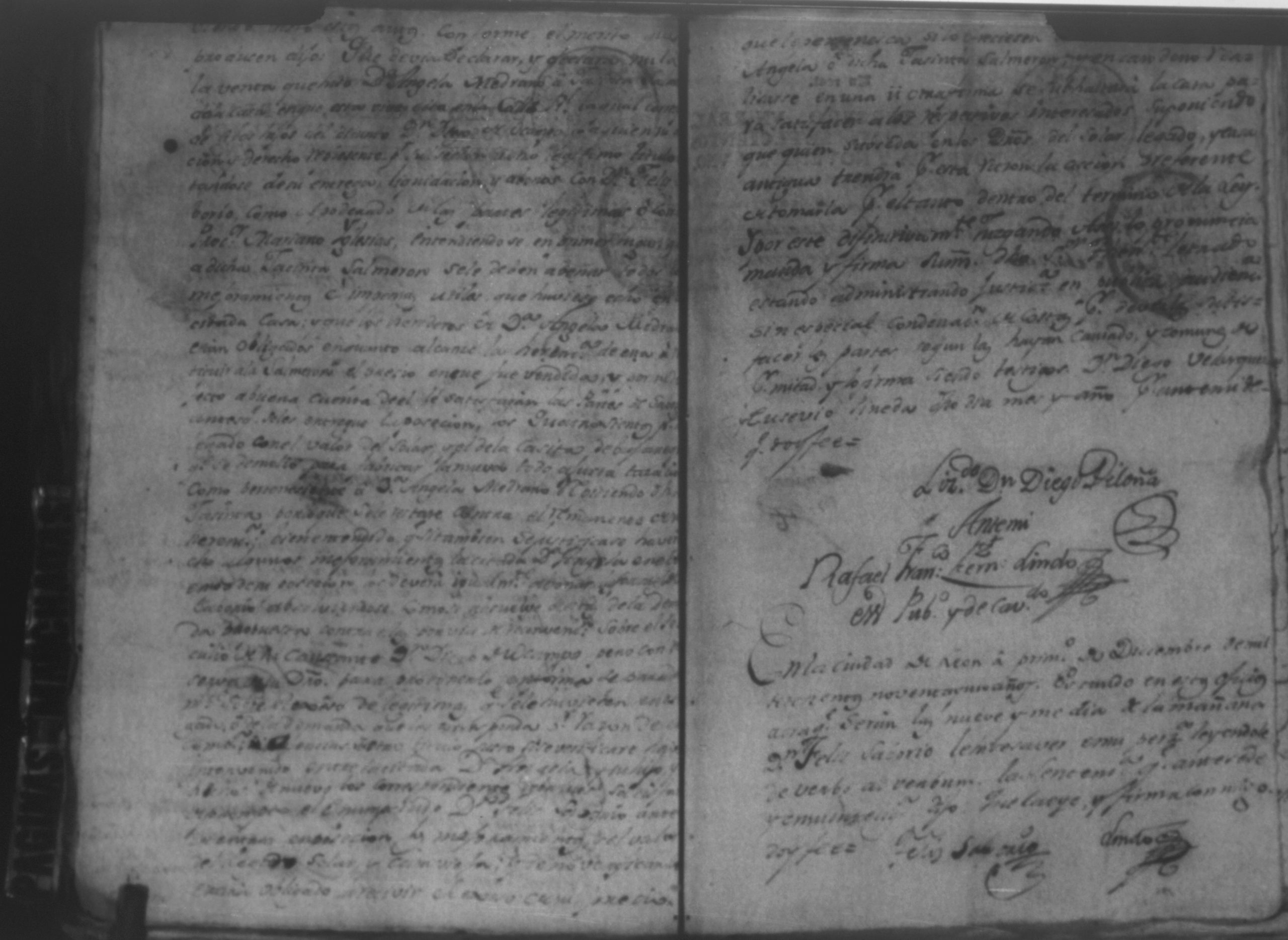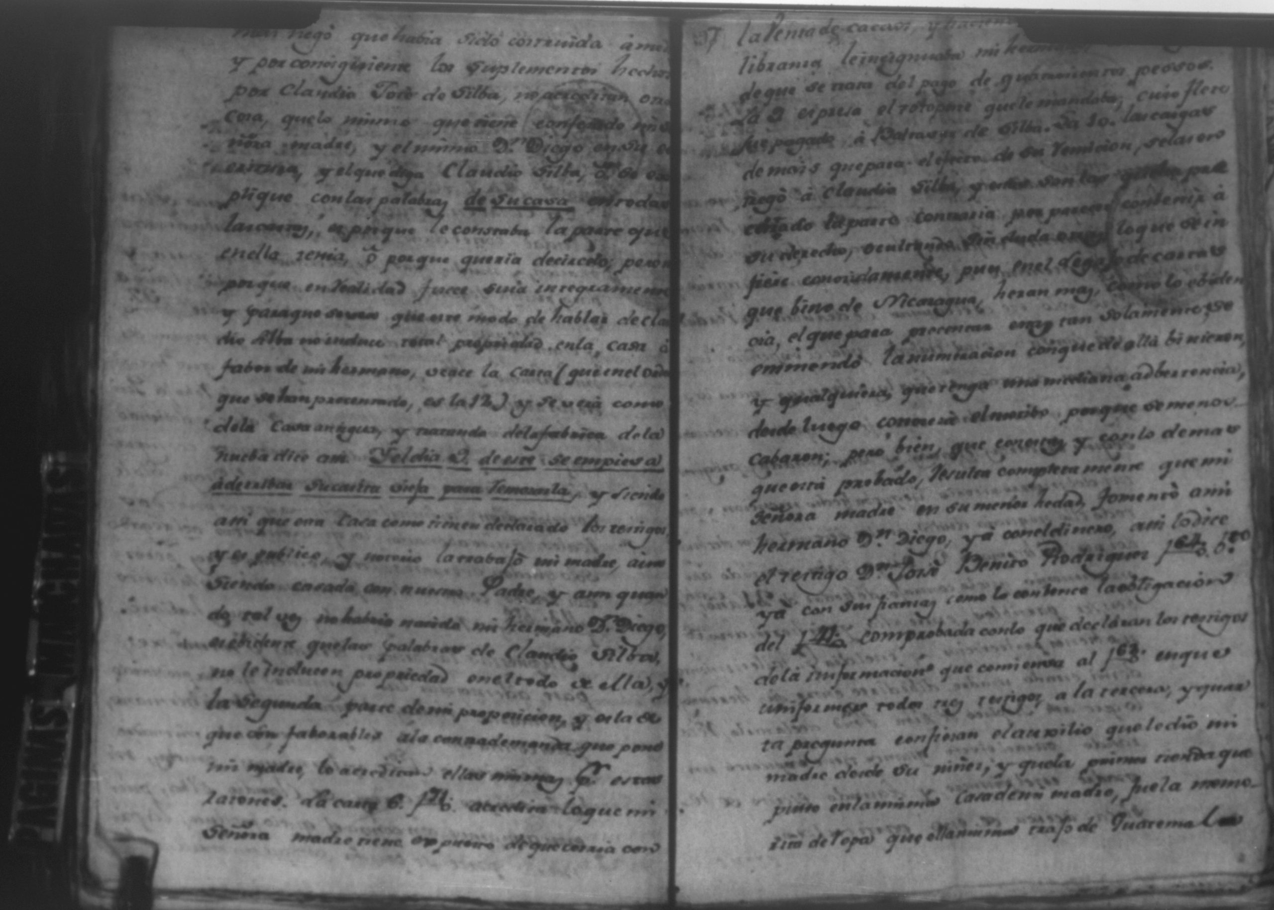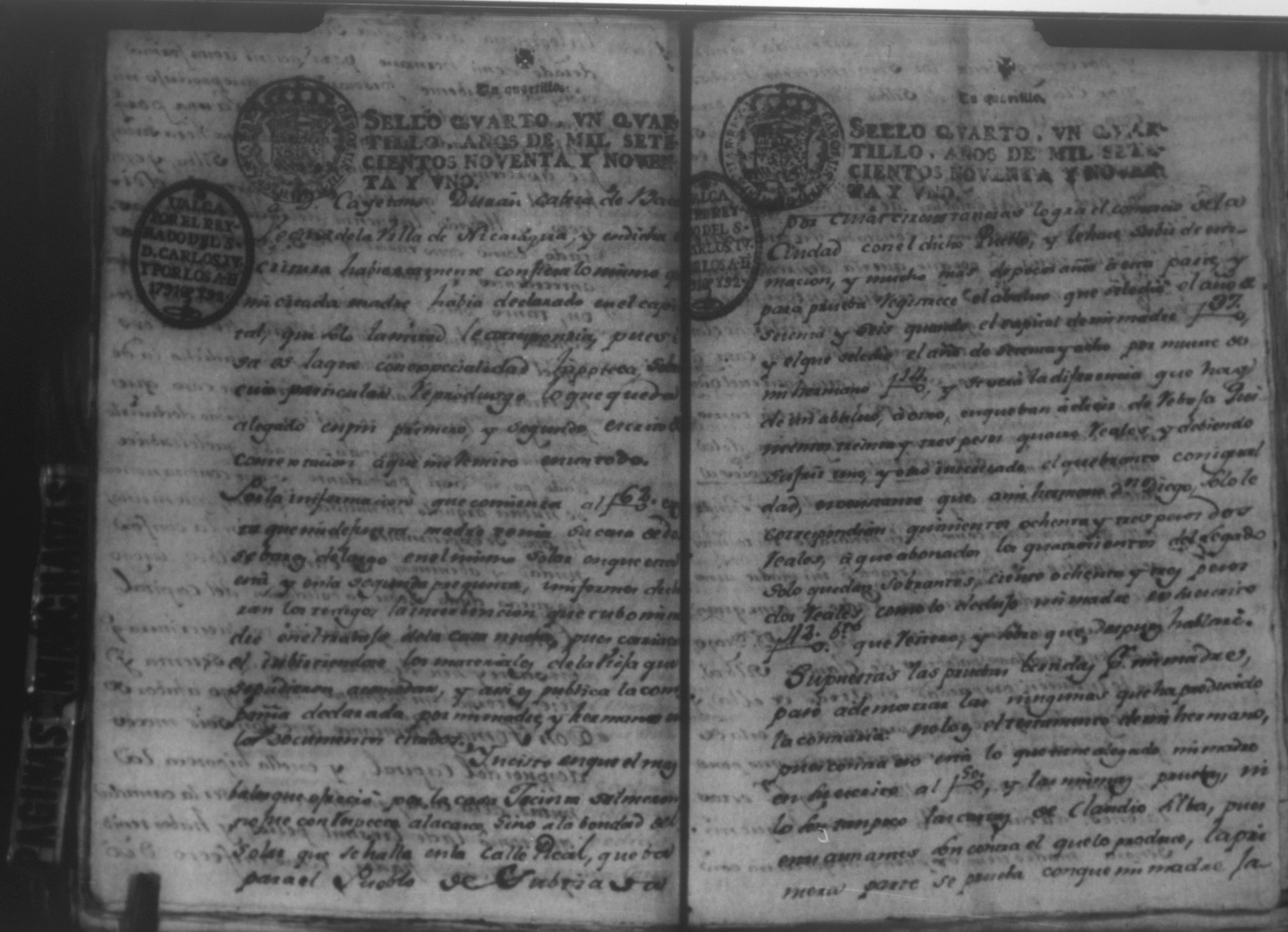 Temática: Audiencia, León, 1793. Autos que sigue Don Francisco Miguel de Ocampo con Don Felix Saborio sobre pertenencia de una casa en León. Incluye: Pruebas a favor de los hijos menores del finado Don Diego de Ocampo en el pleito que sigue el procurador Yglesias contra Doña Angela Medrano por haberle vendido esta una casa que tienen en la Calle Real, que va para Subtiaba. Subtiaba era un pueblo indígena en León, de origen Maribio. Algunas páginas del documento se encuentran manchadas.