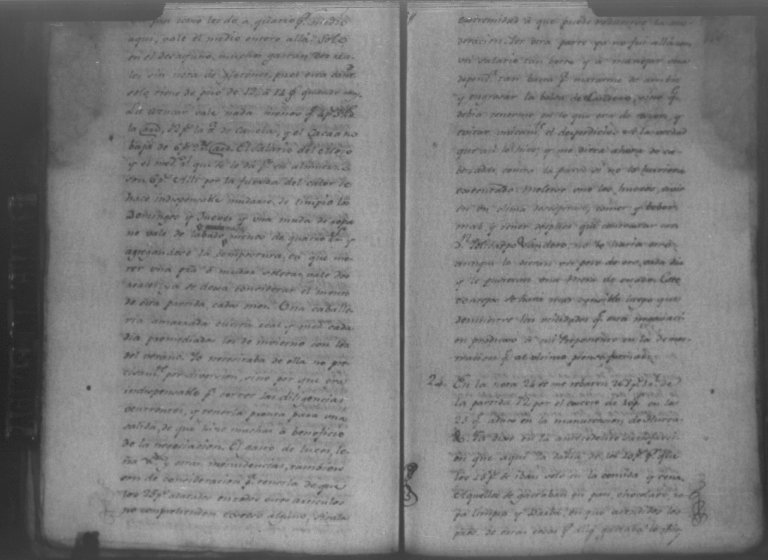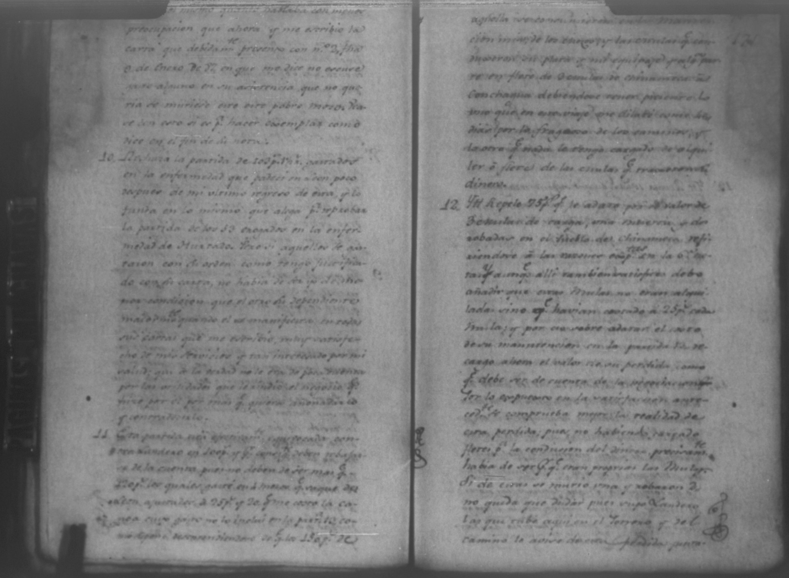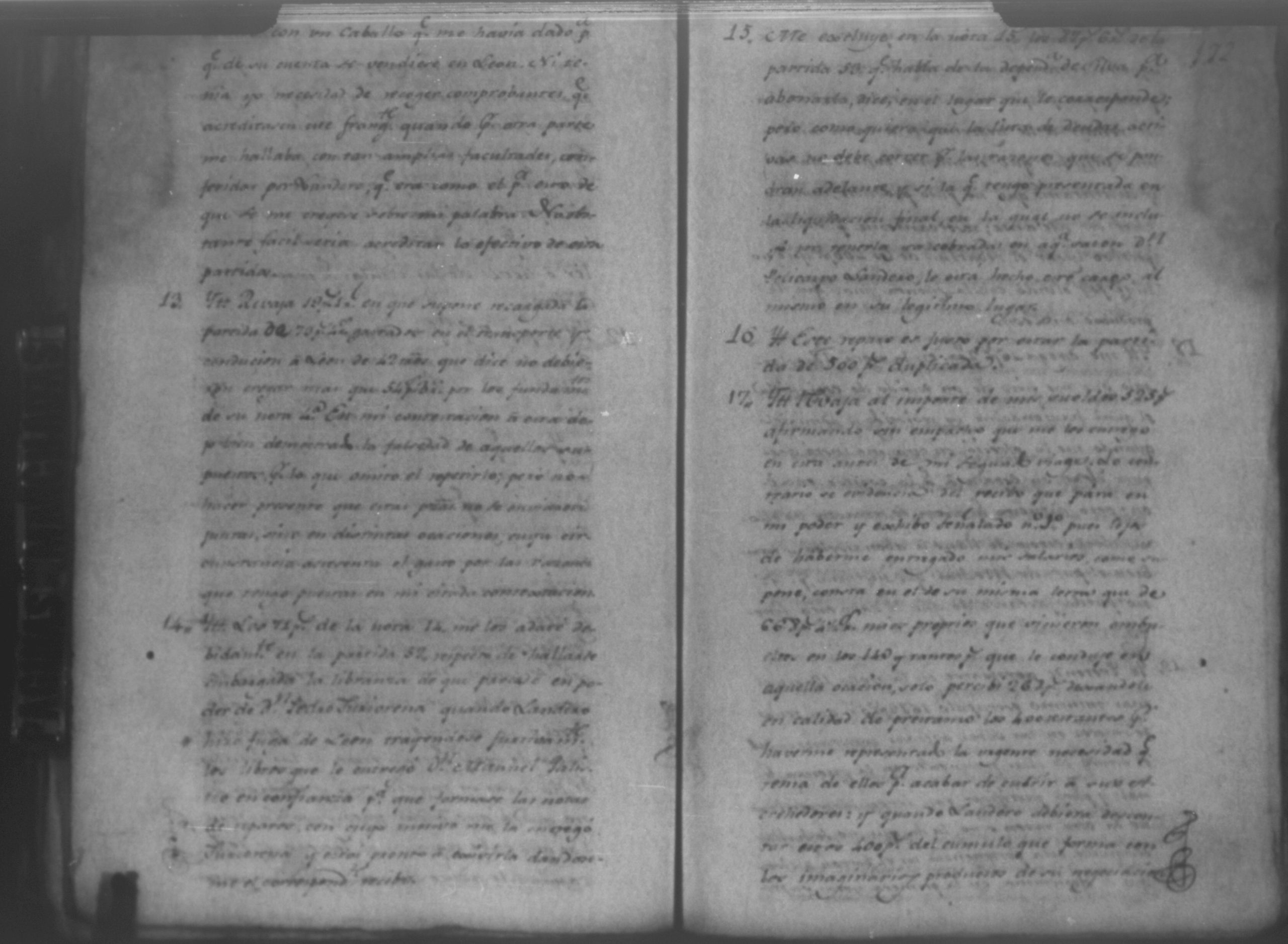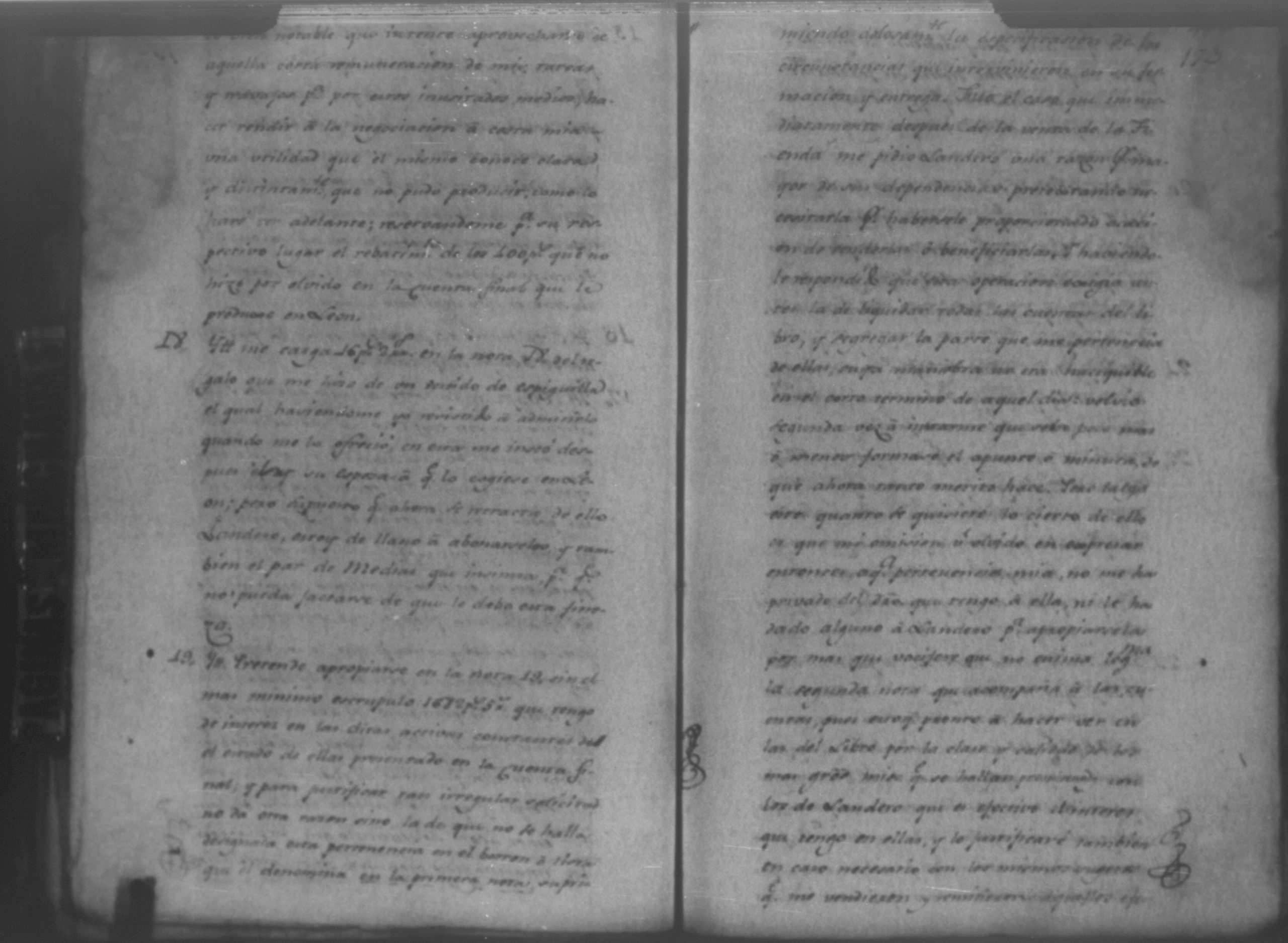 Temática: Audiencia León, 1792. Autos que sigue don Policarpo Landero con don Pedro Aguirre, su cajero, sobre estado de cuentas que necesita para resolver una causa pendiente. Cuaderno 1. "Don Policarpo Landero vecino y del Comercio de la Capital de Guatemala como mas haya lugar ante Vuestras majestades paresco y digo: Que ayer fueron Vuestras majestades mui servidos de darme por Traslado las Cuentas presentadas por mi Caxero Don Pedro Aguirre como igualmente el Libro Manual de caxa y Diario de el para anotar, y formar mi correspondiente Cuenta del Descargo, y Cargo que tenga que hacerlo y como quiera que para mayor comprencion y formacion que tengo que hacer han de ser Vuestras majestades mui servidos mandar se me entreguen las Justificaciones comprobantes que a Vuestras majestades haya exivido por medio de su apoderado Don Pedro Aguirre por serme tan precisos y necesarios para la mayor claridad de mi cuenta pues en la que se me forma hallo algunas contrarierades que son vien de bulto y a su tiempo hare precentes con todo lo demas a favor y en contra... [...]" (Extracto de la imagen 36)