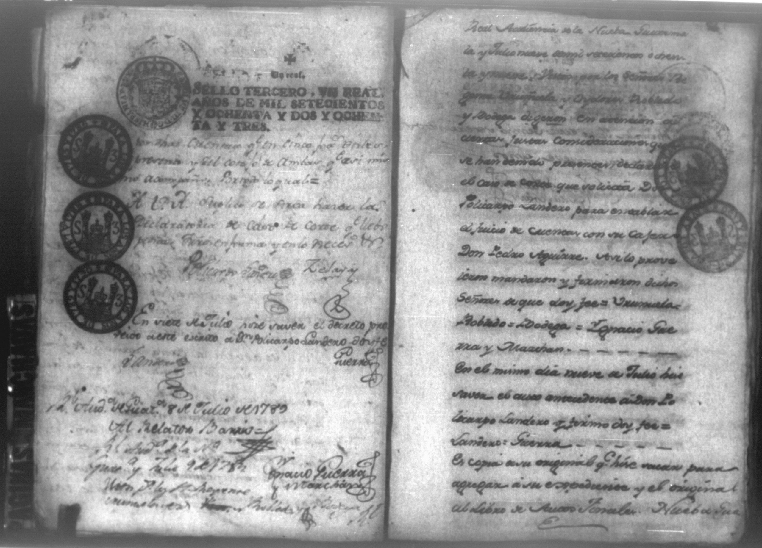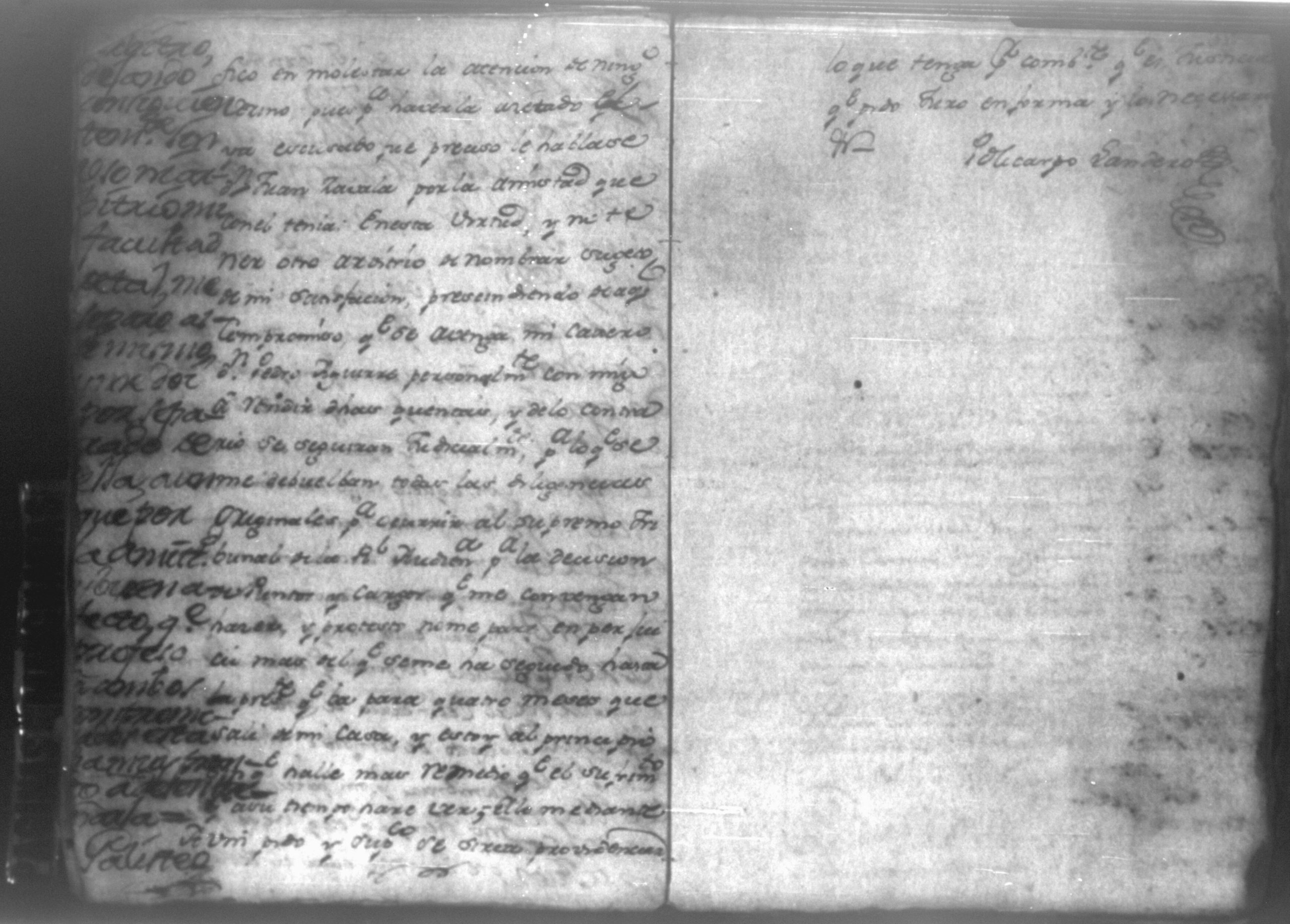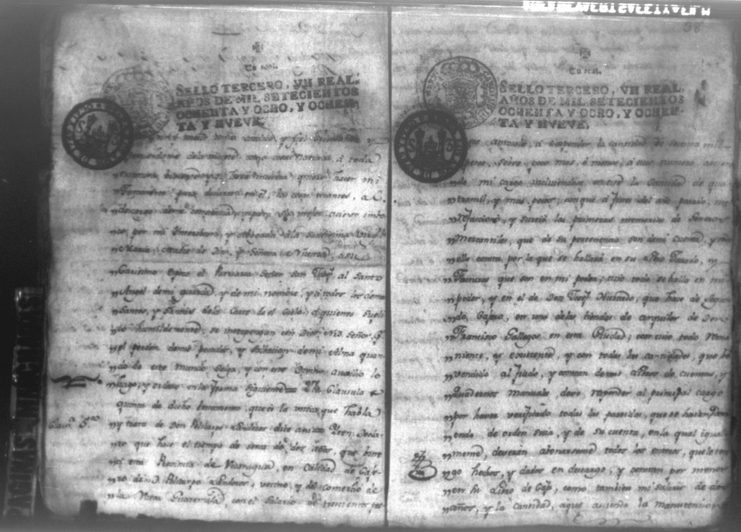 Temática: Audiencia León, 1792. Autos que sigue don Policarpo Landero con don Pedro Aguirre, su cajero, sobre estado de cuentas que necesita para resolver una causa pendiente. Cuaderno 1. "Don Policarpo Landero vecino y del Comercio de la Capital de Guatemala como mas haya lugar ante Vuestras majestades paresco y digo: Que ayer fueron Vuestras majestades mui servidos de darme por Traslado las Cuentas presentadas por mi Caxero Don Pedro Aguirre como igualmente el Libro Manual de caxa y Diario de el para anotar, y formar mi correspondiente Cuenta del Descargo, y Cargo que tenga que hacerlo y como quiera que para mayor comprencion y formacion que tengo que hacer han de ser Vuestras majestades mui servidos mandar se me entreguen las Justificaciones comprobantes que a Vuestras majestades haya exivido por medio de su apoderado Don Pedro Aguirre por serme tan precisos y necesarios para la mayor claridad de mi cuenta pues en la que se me forma hallo algunas contrarierades que son vien de bulto y a su tiempo hare precentes con todo lo demas a favor y en contra... [...]" (Extracto de la imagen 36)