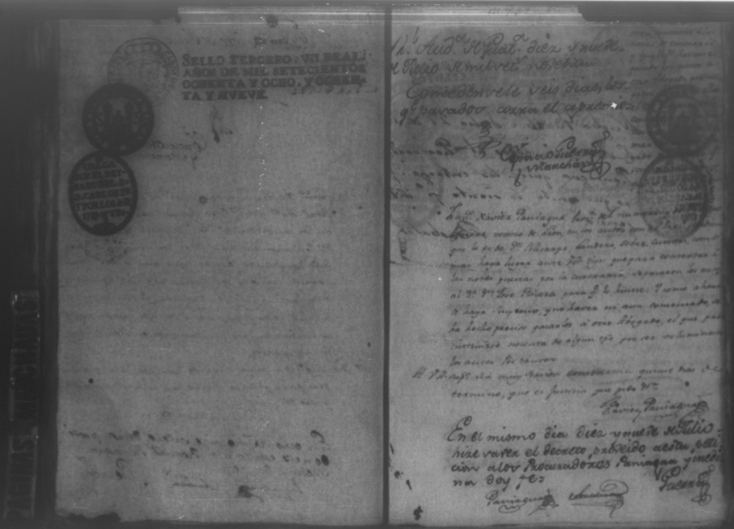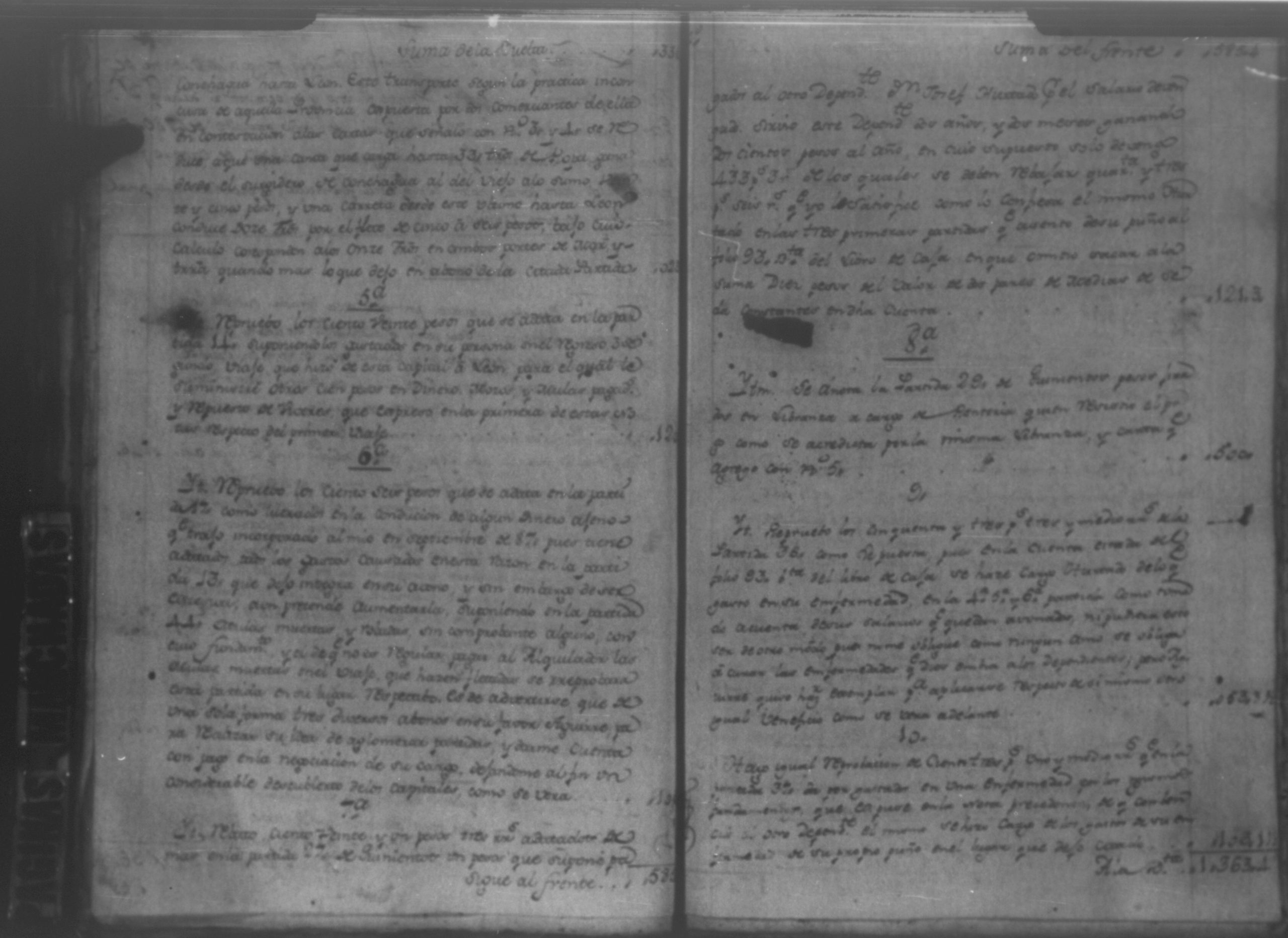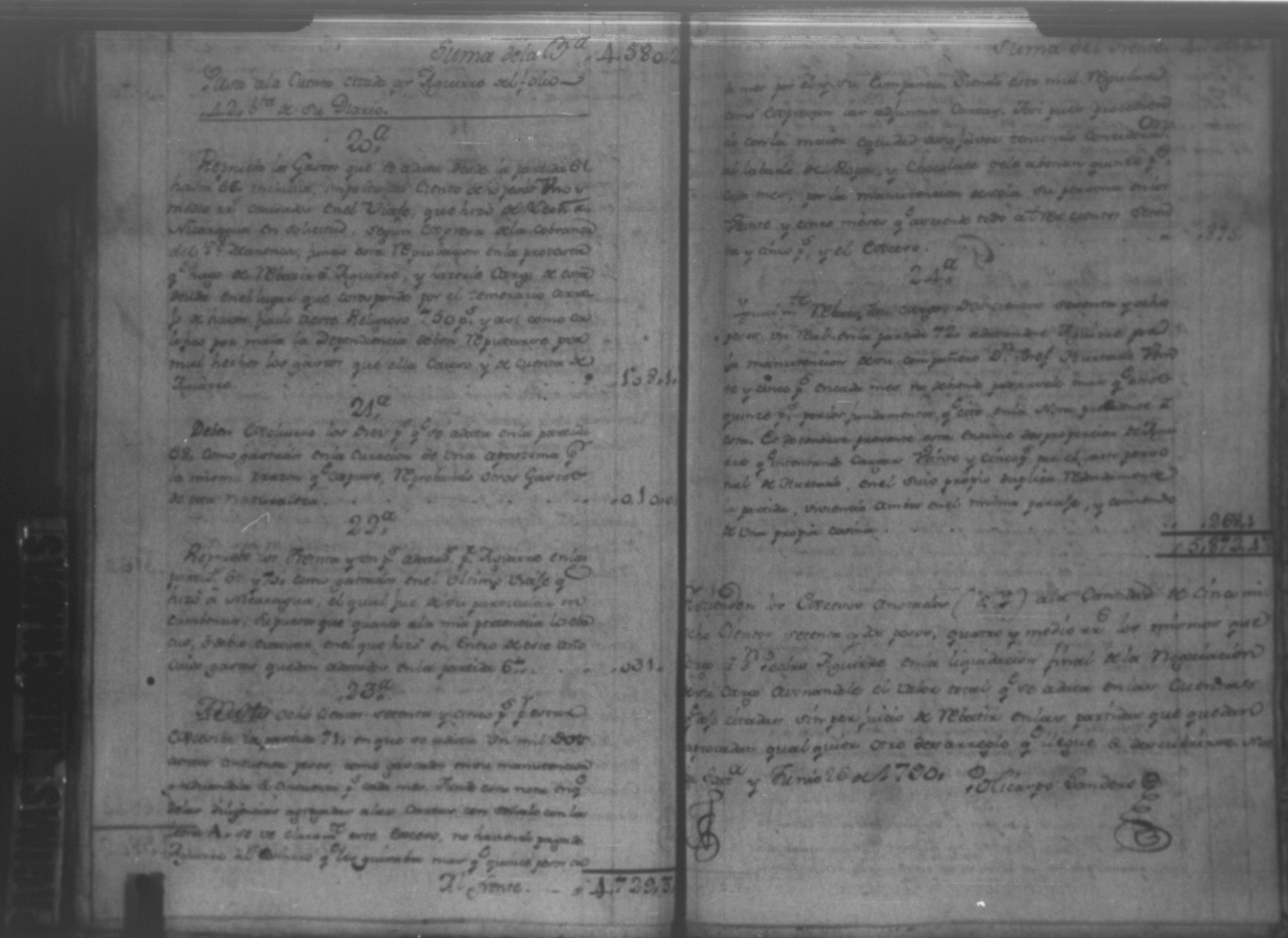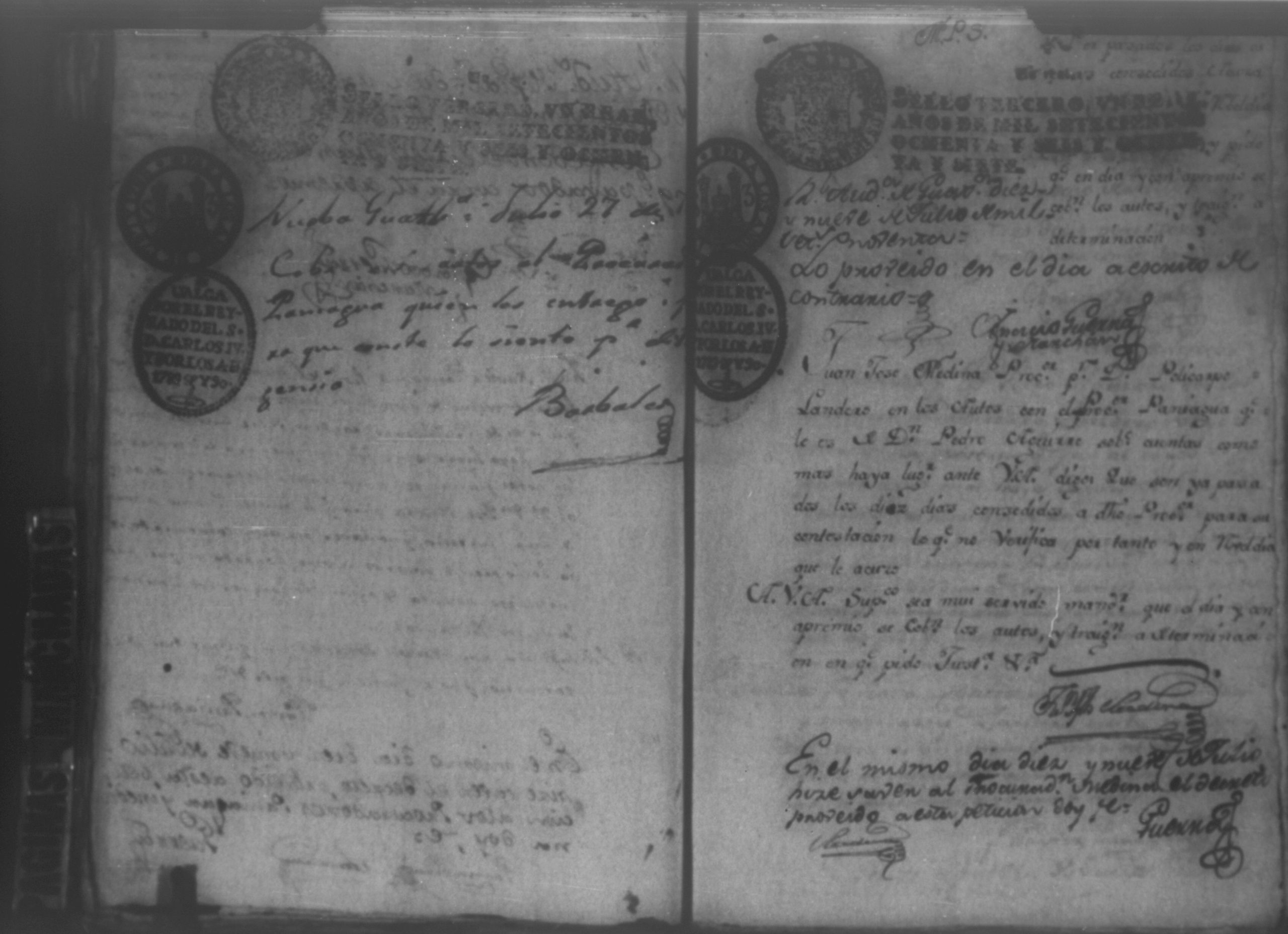 Temática: Audiencia León, 1792. Autos que sigue don Policarpo Landero con don Pedro Aguirre, su cajero, sobre estado de cuentas que necesita para resolver una causa pendiente. Cuaderno 1. "Don Policarpo Landero vecino y del Comercio de la Capital de Guatemala como mas haya lugar ante Vuestras majestades paresco y digo: Que ayer fueron Vuestras majestades mui servidos de darme por Traslado las Cuentas presentadas por mi Caxero Don Pedro Aguirre como igualmente el Libro Manual de caxa y Diario de el para anotar, y formar mi correspondiente Cuenta del Descargo, y Cargo que tenga que hacerlo y como quiera que para mayor comprencion y formacion que tengo que hacer han de ser Vuestras majestades mui servidos mandar se me entreguen las Justificaciones comprobantes que a Vuestras majestades haya exivido por medio de su apoderado Don Pedro Aguirre por serme tan precisos y necesarios para la mayor claridad de mi cuenta pues en la que se me forma hallo algunas contrarierades que son vien de bulto y a su tiempo hare precentes con todo lo demas a favor y en contra... [...]" (Extracto de la imagen 36)