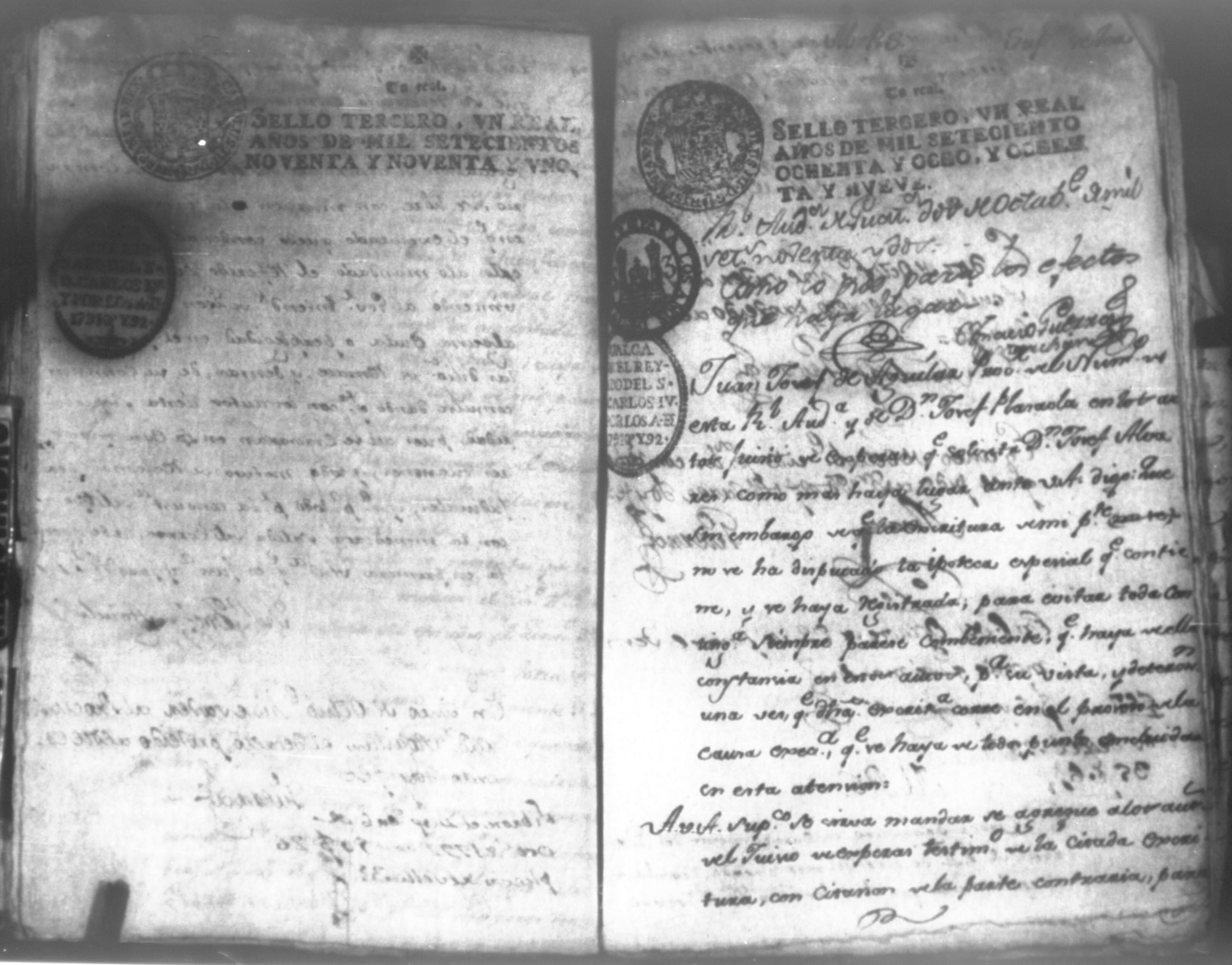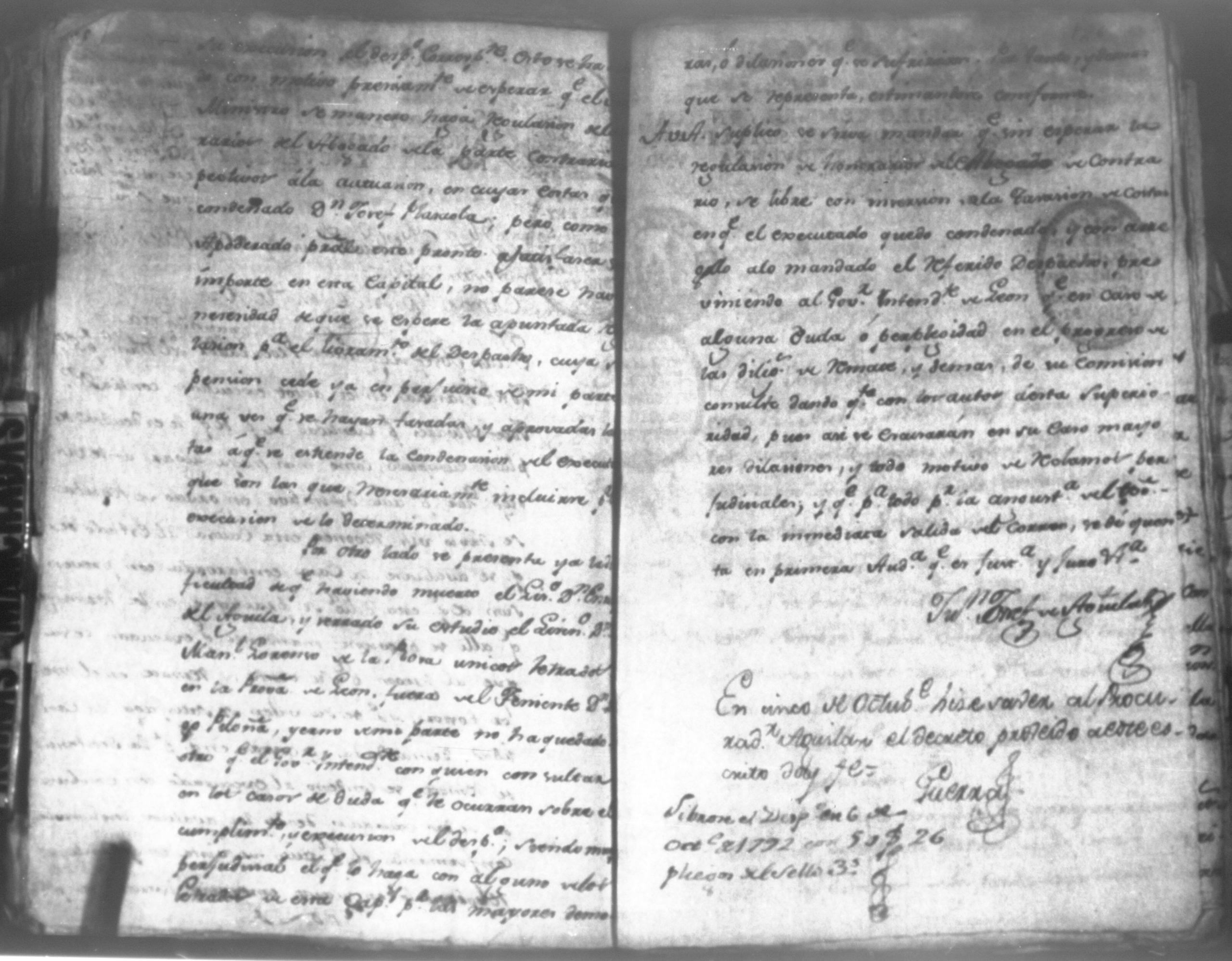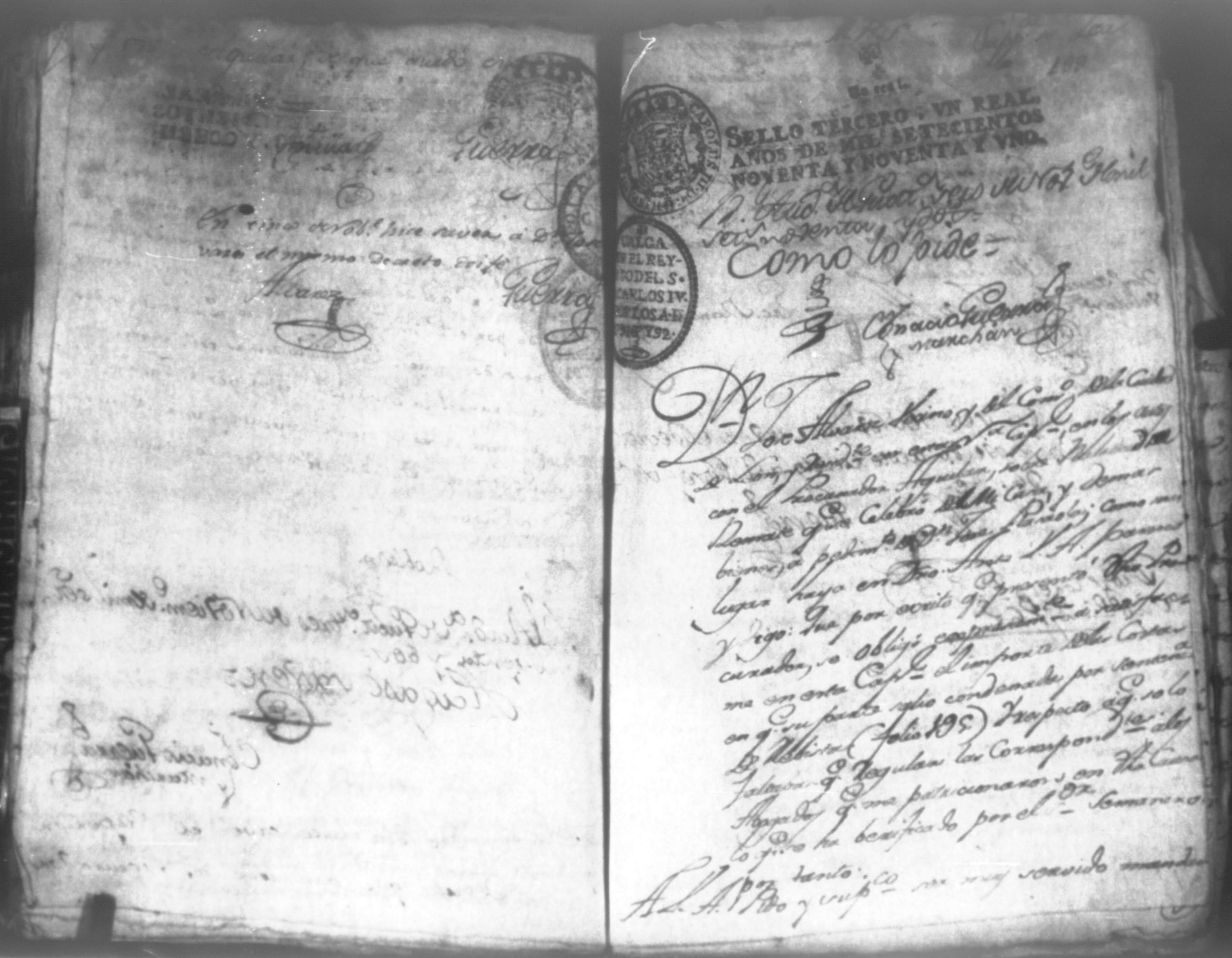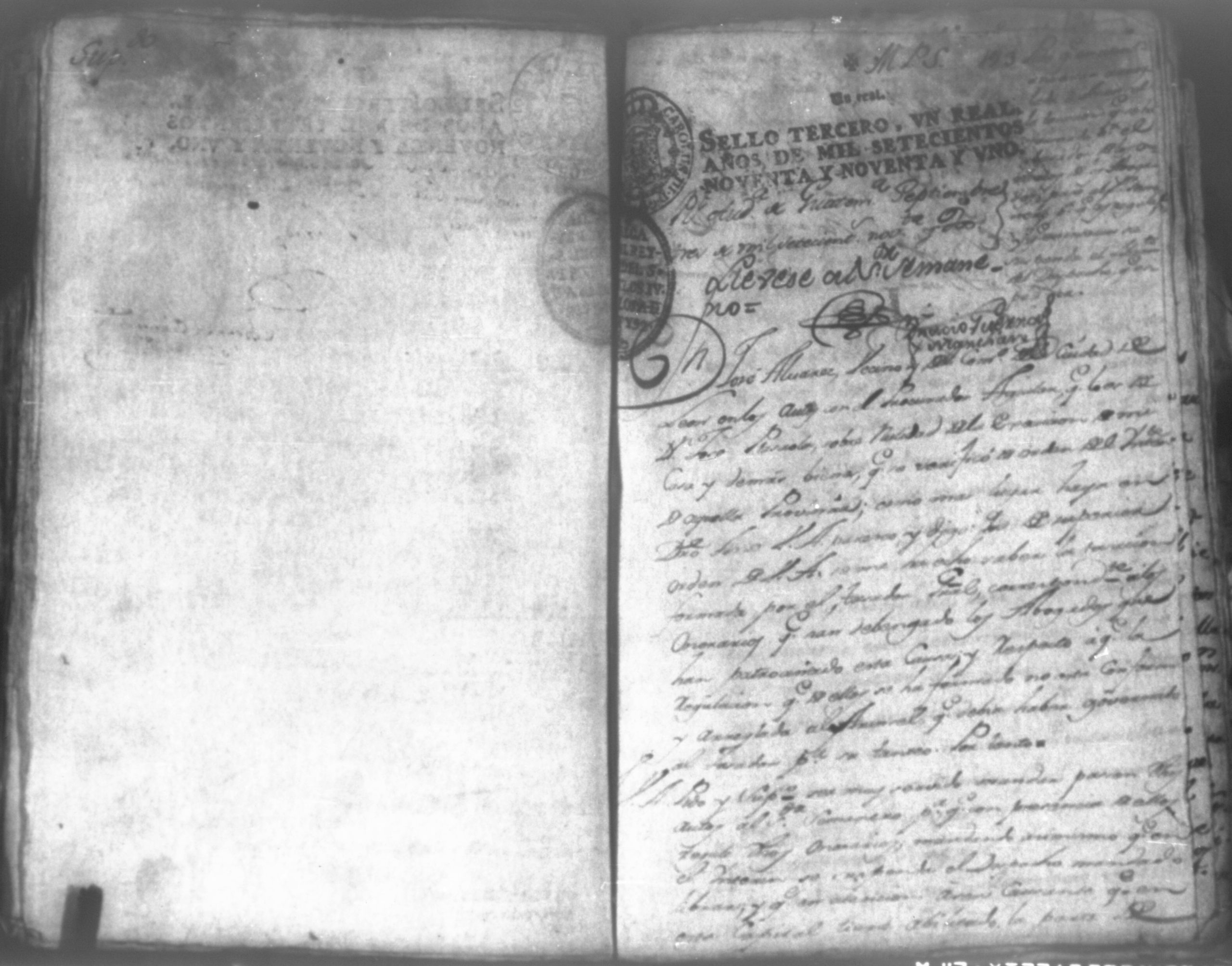 Temática: Audiencia León, 1792. Autos que siguen don José Alvarez y don José Plazaola por cantidad de pesos. Incluye: los Documentos relativos al testimonio de la causa ejecutiva seguida contra don Josef Alvares en el Gobierno e Intendencia de León por cantidad de pesos debidos a don Josef Plazaola (1791). "En la Ciudad de Leon en veinte y tres de Abril de mil setecientos y noventa años: [...] el Escribano y testigos que iran nominados pareció personalmente Don Jossé de Albarez de este vecindario, á quien doy fee conosco, y digo: Que por la presente Escritura Publica otorga en la forma que mas lugar en derecho que deve, y se obliga á dar, y pagar, y que dará y pagará realmente, y con efecto á Don Jossé de Plazaola, vezino del Pueblo del Biejo, ó á quien su Poder, y causa huviere, es á saver la cantidad de ocho mil setecientos sesenta y tres pesos y un real por otra tanto que en generos mercantiles de Castilla, de la tierra que ha vendido al fiado, y se a entregado [...]". (Extracto del folio 1)