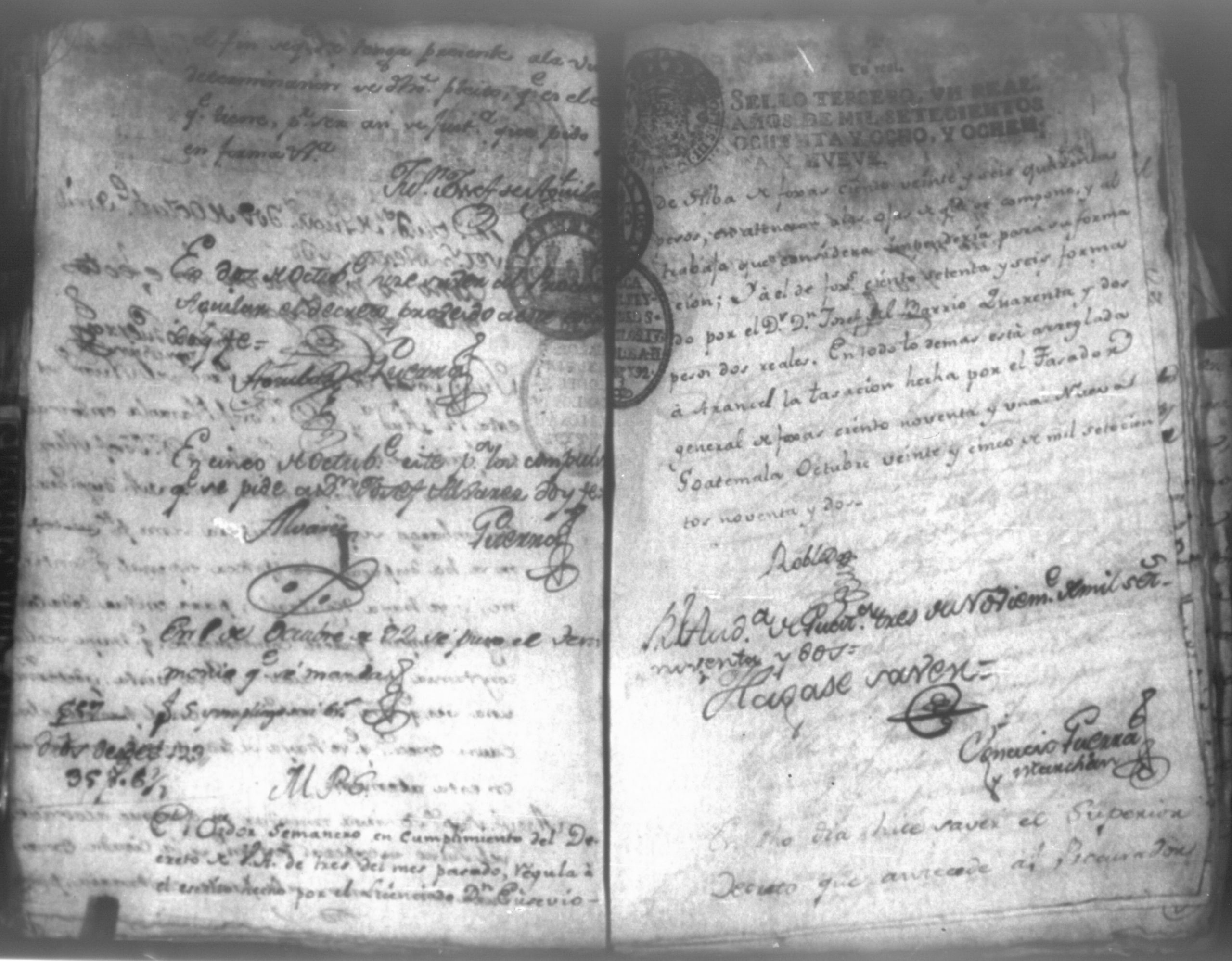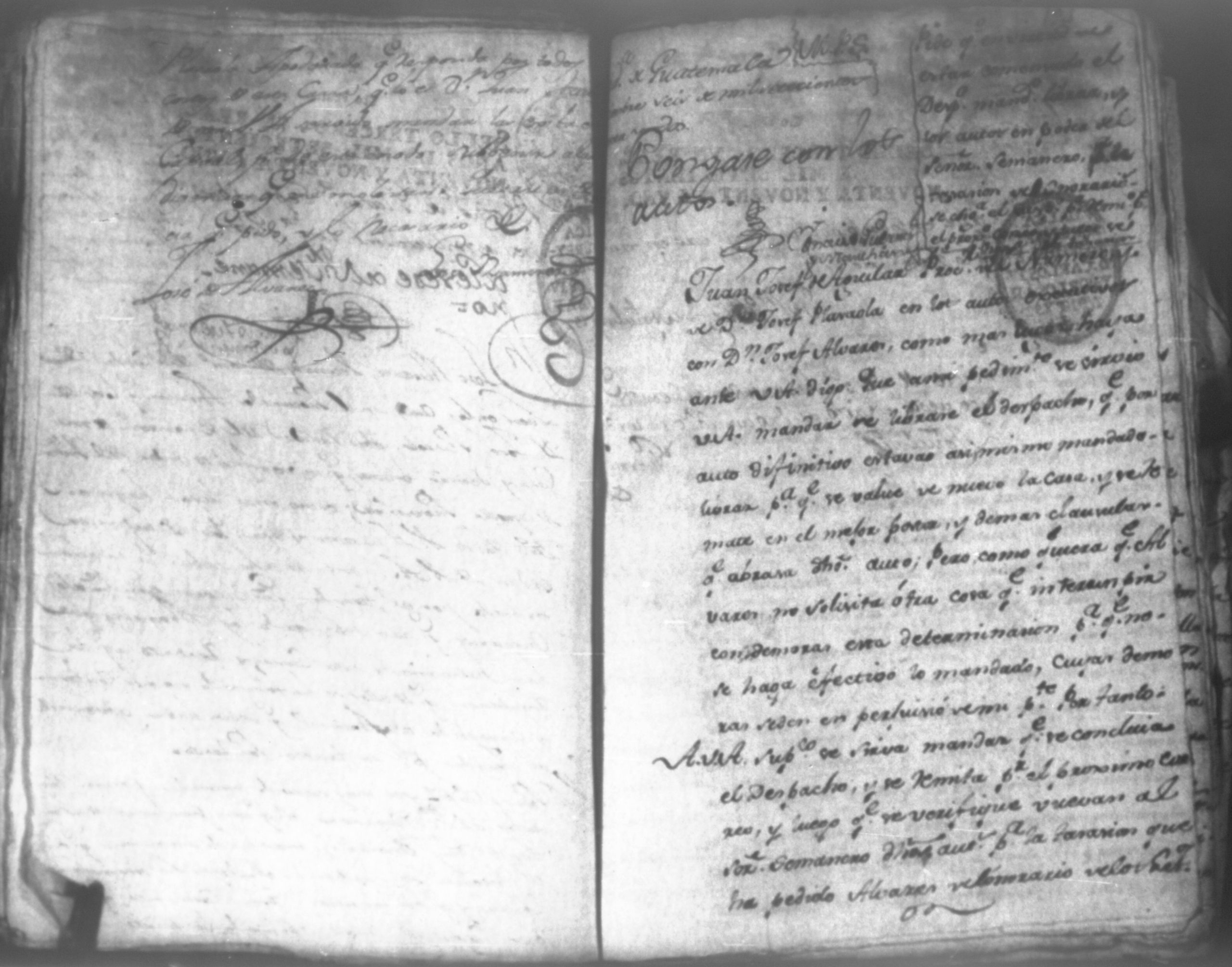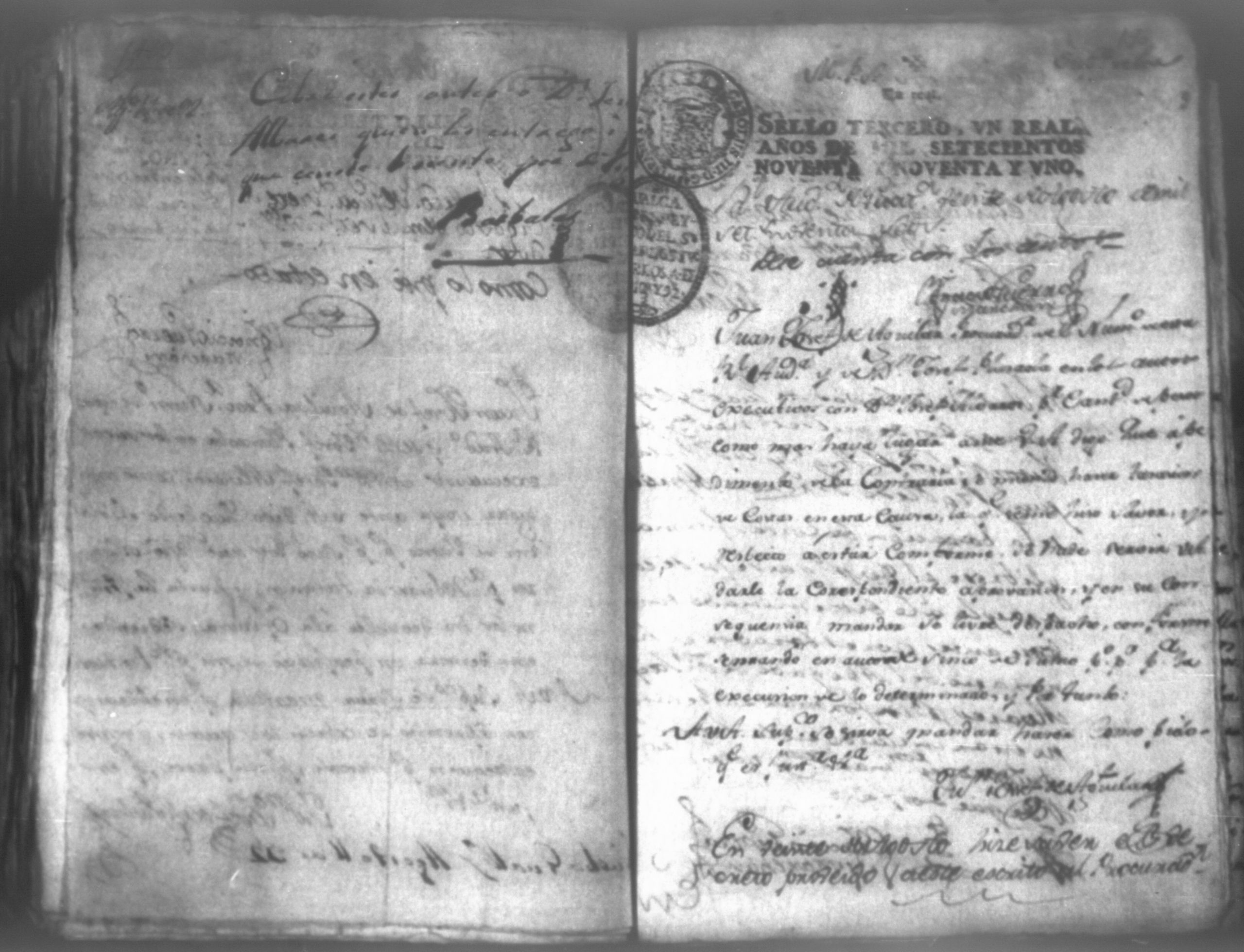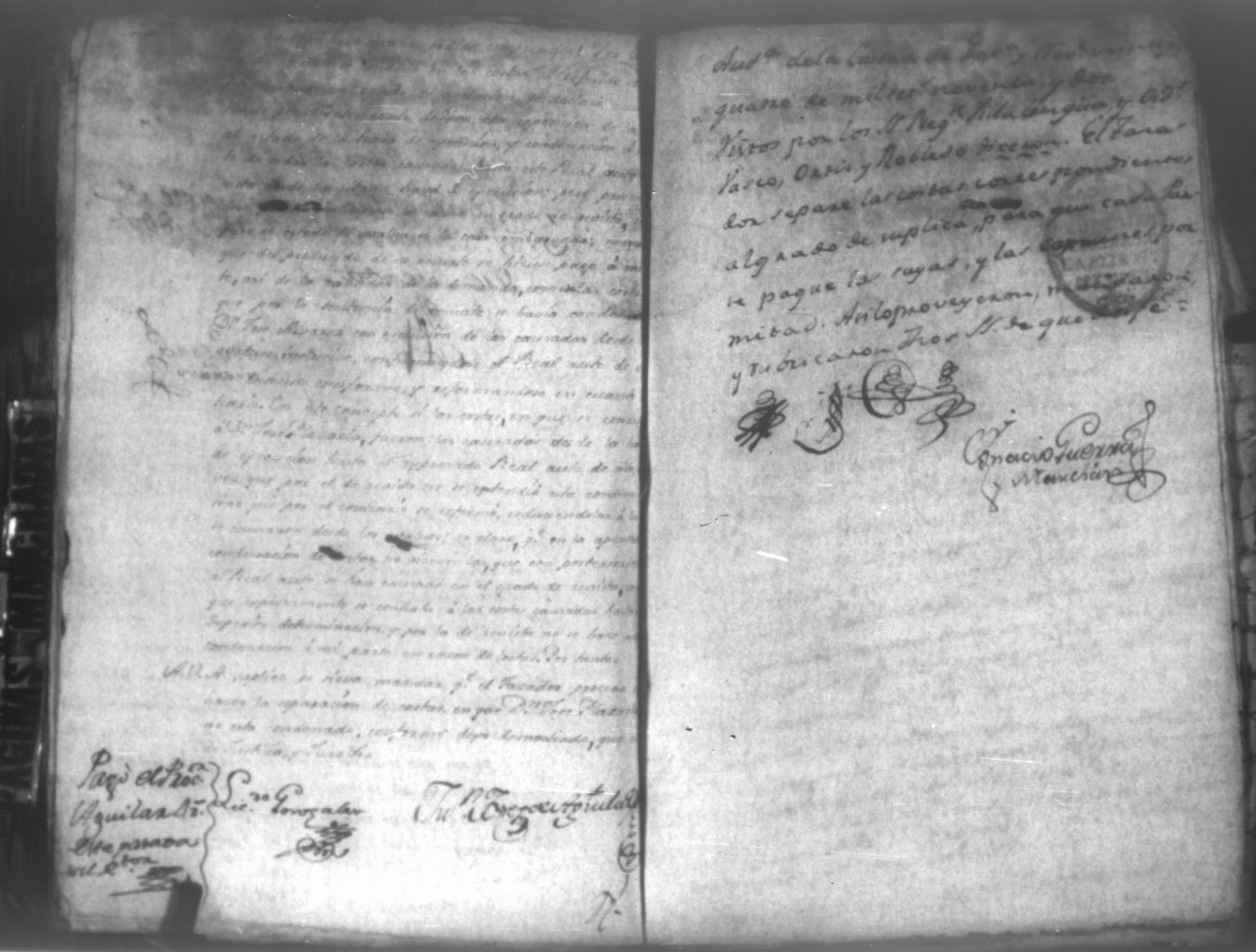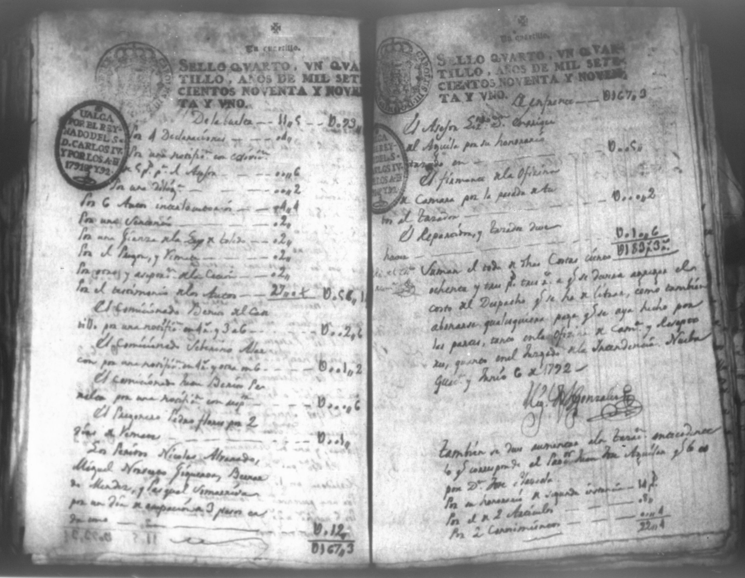 Temática: Audiencia León, 1792. Autos que siguen don José Alvarez y don José Plazaola por cantidad de pesos. Incluye: los Documentos relativos al testimonio de la causa ejecutiva seguida contra don Josef Alvares en el Gobierno e Intendencia de León por cantidad de pesos debidos a don Josef Plazaola (1791). "En la Ciudad de Leon en veinte y tres de Abril de mil setecientos y noventa años: [...] el Escribano y testigos que iran nominados pareció personalmente Don Jossé de Albarez de este vecindario, á quien doy fee conosco, y digo: Que por la presente Escritura Publica otorga en la forma que mas lugar en derecho que deve, y se obliga á dar, y pagar, y que dará y pagará realmente, y con efecto á Don Jossé de Plazaola, vezino del Pueblo del Biejo, ó á quien su Poder, y causa huviere, es á saver la cantidad de ocho mil setecientos sesenta y tres pesos y un real por otra tanto que en generos mercantiles de Castilla, de la tierra que ha vendido al fiado, y se a entregado [...]". (Extracto del folio 1)