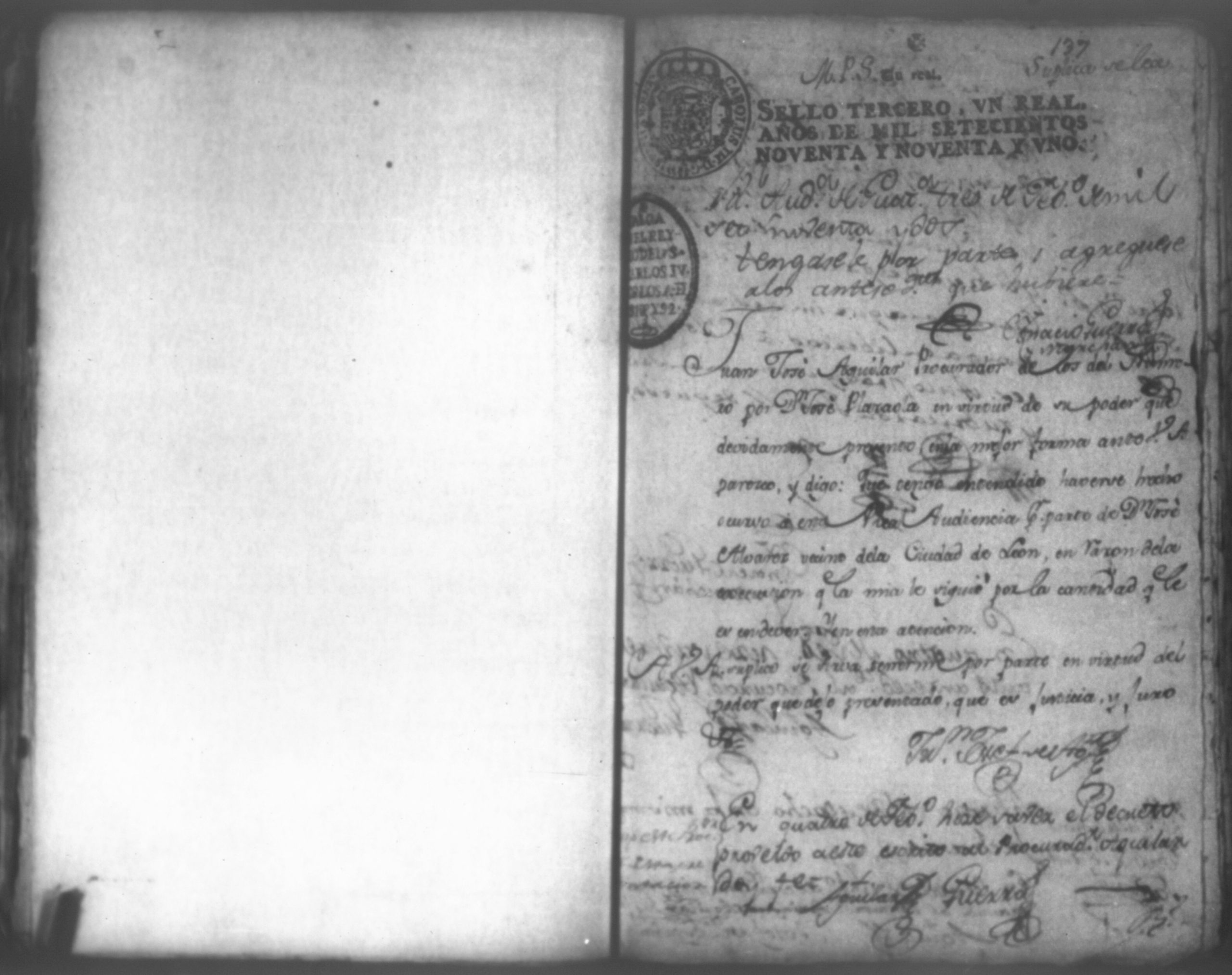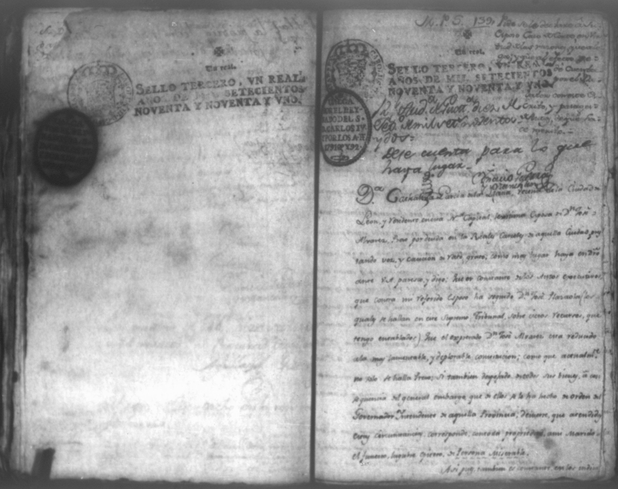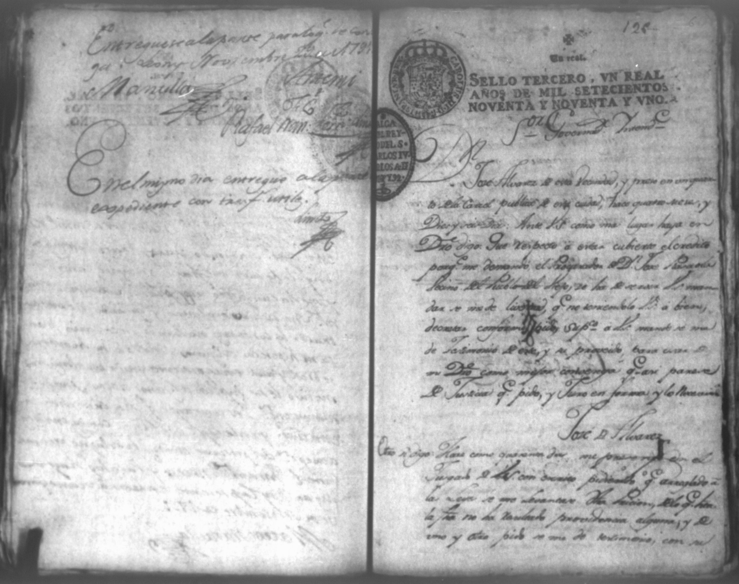 Temática: Audiencia León, 1792. Autos que siguen don José Alvarez y don José Plazaola por cantidad de pesos. Incluye: los Documentos relativos al testimonio de la causa ejecutiva seguida contra don Josef Alvares en el Gobierno e Intendencia de León por cantidad de pesos debidos a don Josef Plazaola (1791). "En la Ciudad de Leon en veinte y tres de Abril de mil setecientos y noventa años: [...] el Escribano y testigos que iran nominados pareció personalmente Don Jossé de Albarez de este vecindario, á quien doy fee conosco, y digo: Que por la presente Escritura Publica otorga en la forma que mas lugar en derecho que deve, y se obliga á dar, y pagar, y que dará y pagará realmente, y con efecto á Don Jossé de Plazaola, vezino del Pueblo del Biejo, ó á quien su Poder, y causa huviere, es á saver la cantidad de ocho mil setecientos sesenta y tres pesos y un real por otra tanto que en generos mercantiles de Castilla, de la tierra que ha vendido al fiado, y se a entregado [...]". (Extracto del folio 1)