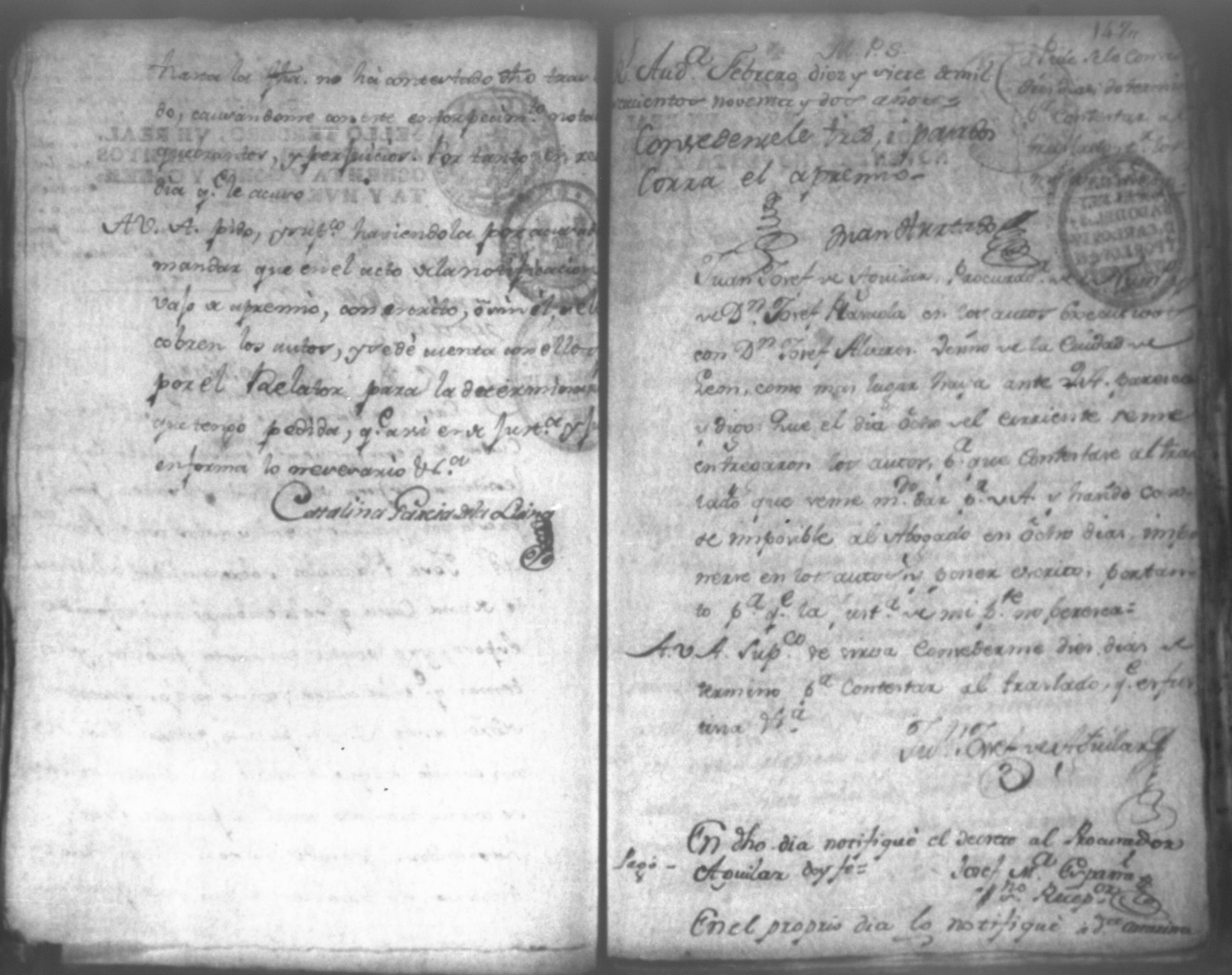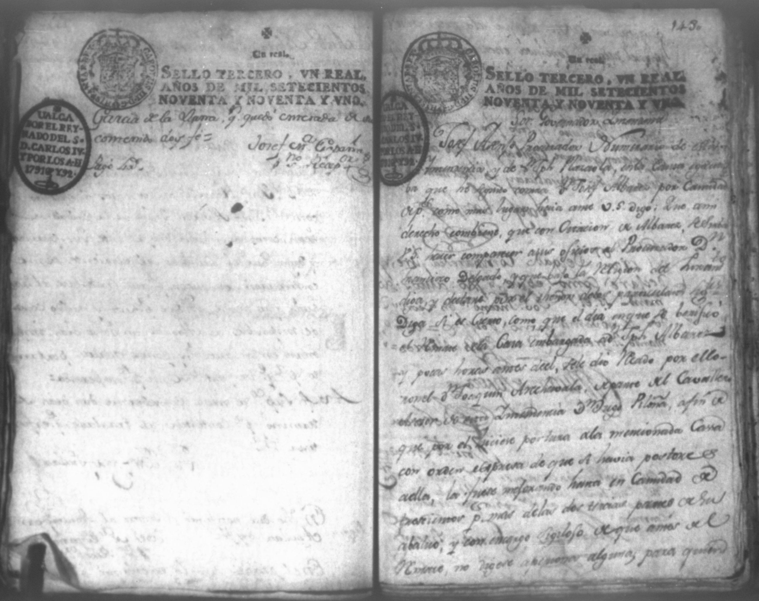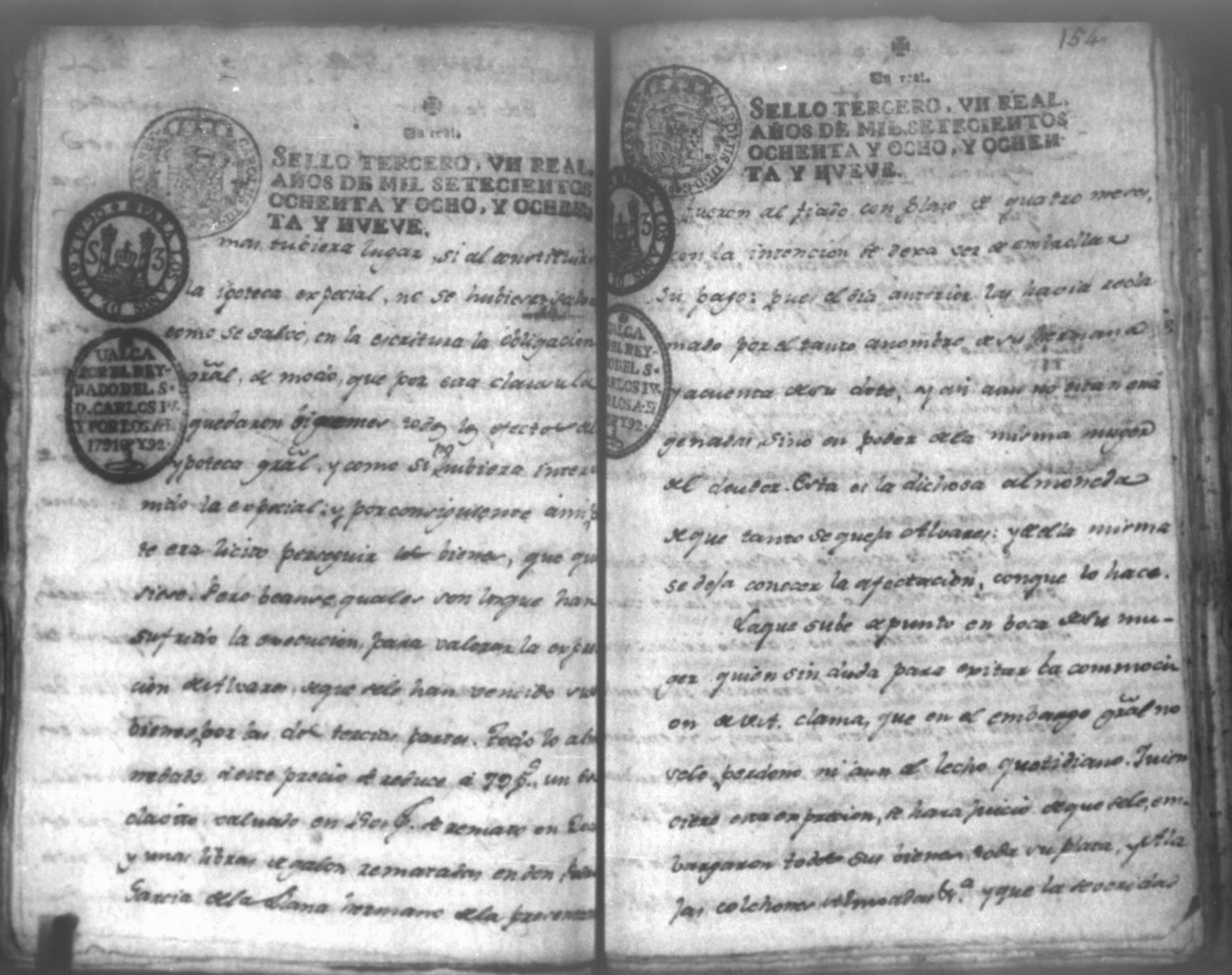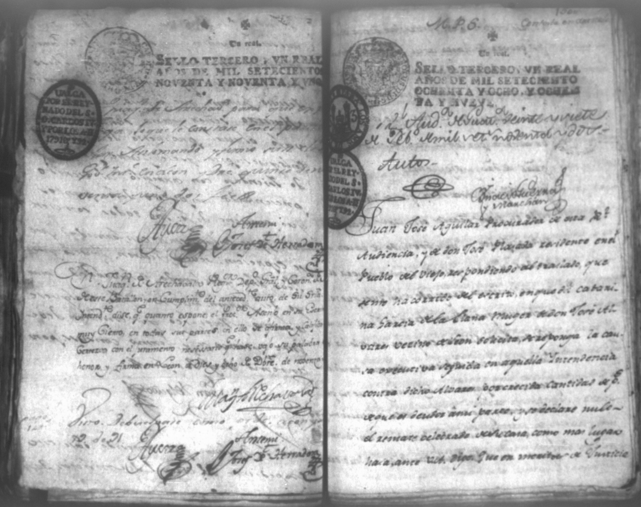 Temática: Audiencia León, 1792. Autos que siguen don José Alvarez y don José Plazaola por cantidad de pesos. Incluye: los Documentos relativos al testimonio de la causa ejecutiva seguida contra don Josef Alvares en el Gobierno e Intendencia de León por cantidad de pesos debidos a don Josef Plazaola (1791). "En la Ciudad de Leon en veinte y tres de Abril de mil setecientos y noventa años: [...] el Escribano y testigos que iran nominados pareció personalmente Don Jossé de Albarez de este vecindario, á quien doy fee conosco, y digo: Que por la presente Escritura Publica otorga en la forma que mas lugar en derecho que deve, y se obliga á dar, y pagar, y que dará y pagará realmente, y con efecto á Don Jossé de Plazaola, vezino del Pueblo del Biejo, ó á quien su Poder, y causa huviere, es á saver la cantidad de ocho mil setecientos sesenta y tres pesos y un real por otra tanto que en generos mercantiles de Castilla, de la tierra que ha vendido al fiado, y se a entregado [...]". (Extracto del folio 1)