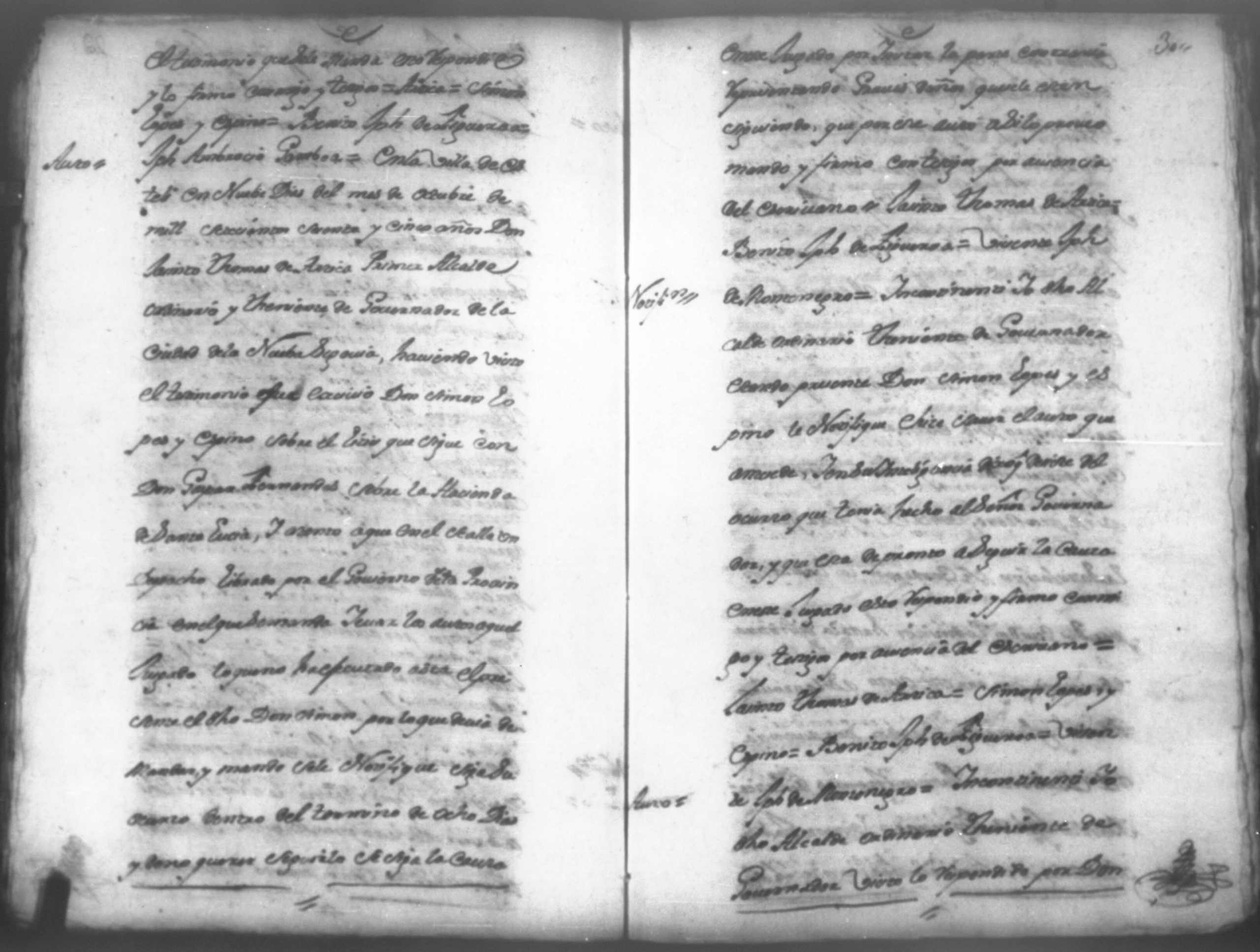 Temática: Leon, Año de 1766. Apelación. Autos que sigue por apelación Don Simon Lopes Espino contra Don Gaspar Fernandes sobre la propiedad de la Hacienda Santa Lucía terminos de la Segovia y nulidad de remate.