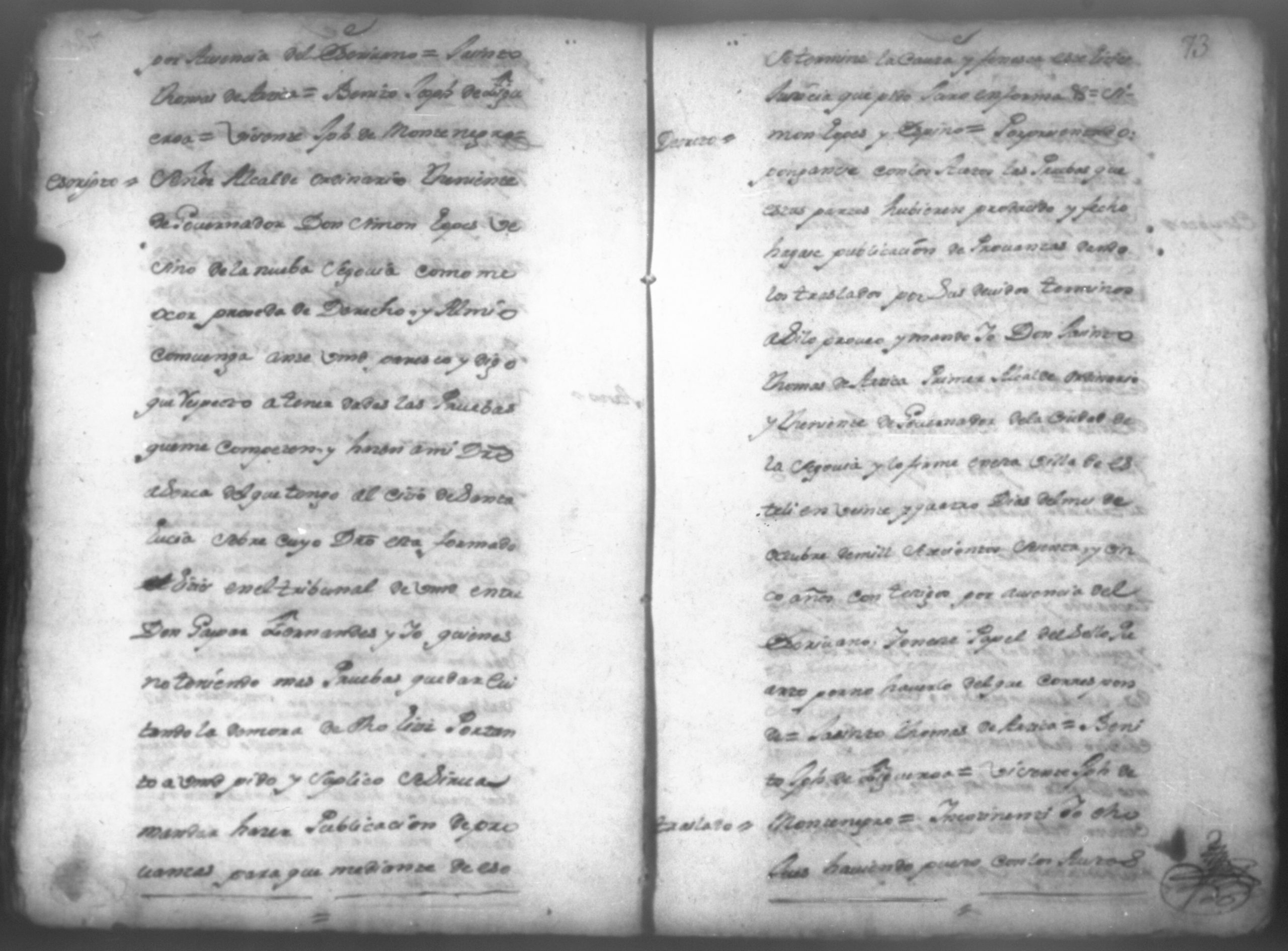 Temática: Leon, Año de 1766. Apelación. Autos que sigue por apelación Don Simon Lopes Espino contra Don Gaspar Fernandes sobre la propiedad de la Hacienda Santa Lucía terminos de la Segovia y nulidad de remate.