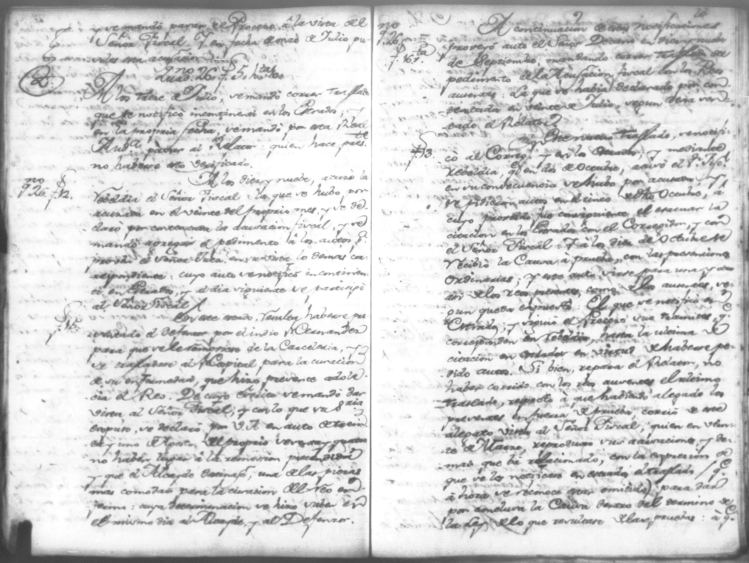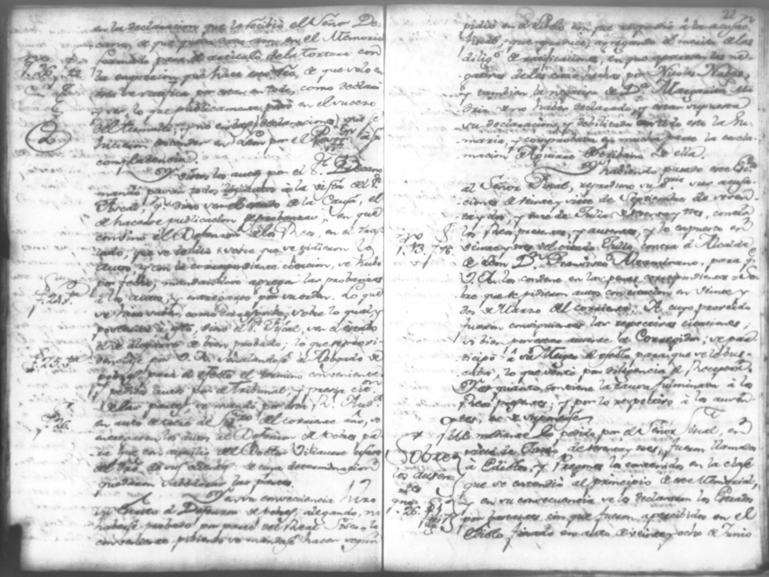 Temática: Autos criminales seguidos contra varios sujetos complicados en el tumulto y levantamiento que se hizo en el Pueblo del Viejo la noche del dia doce de noviembre de setecientos cincuenta y nueve contra su Corregidor Don Pedro de Sala insultando armados su casa y alando [...] su persona y la de su mujer Doña Maria [...] de que resulto el homicidio del Sargento Andres de Salasar perpeputado por dicho Corregidor con un trabucaso que disparo al tiempo del tumulto. Reos Manuel Galiano, Francisco Coraza, Bacilio Picado, Lorenzo Martinez, Juan Joseph Cervantes y Cornelio [...]