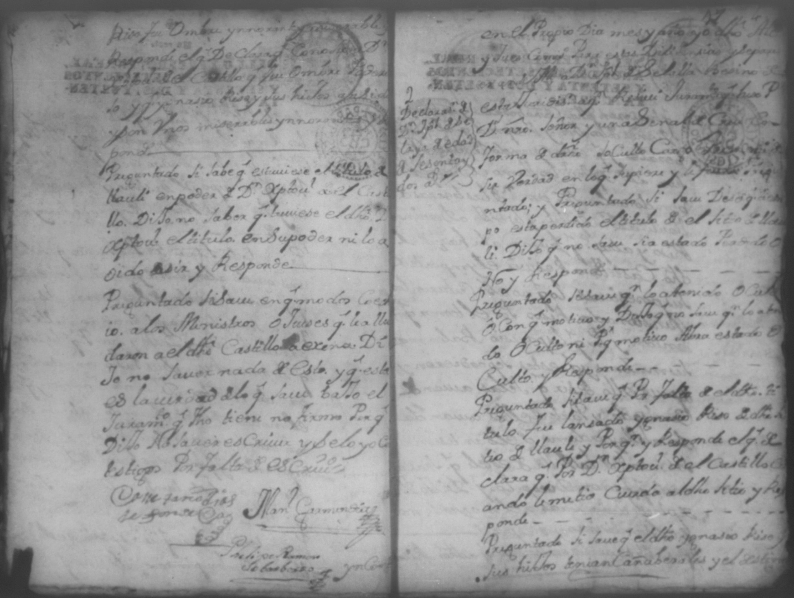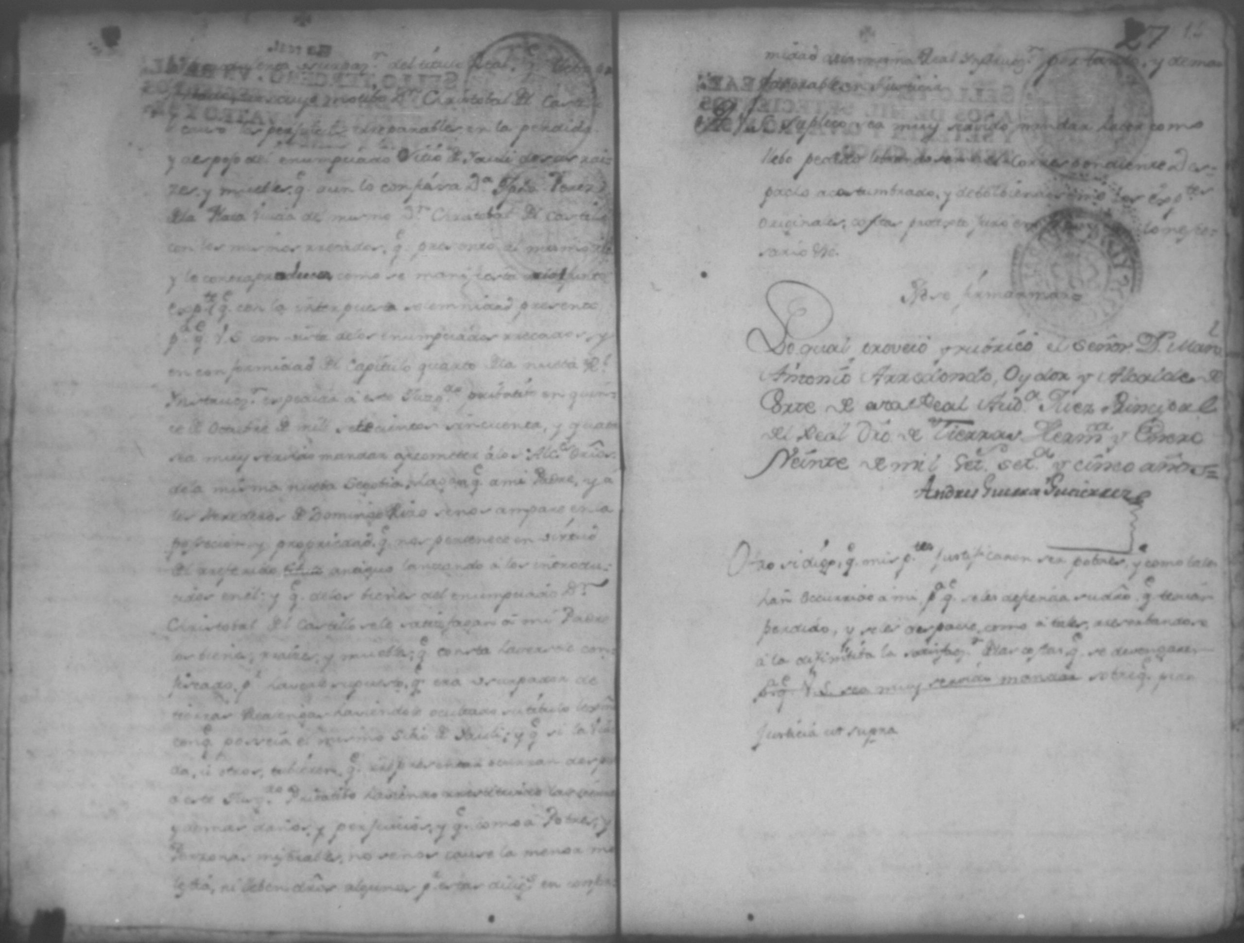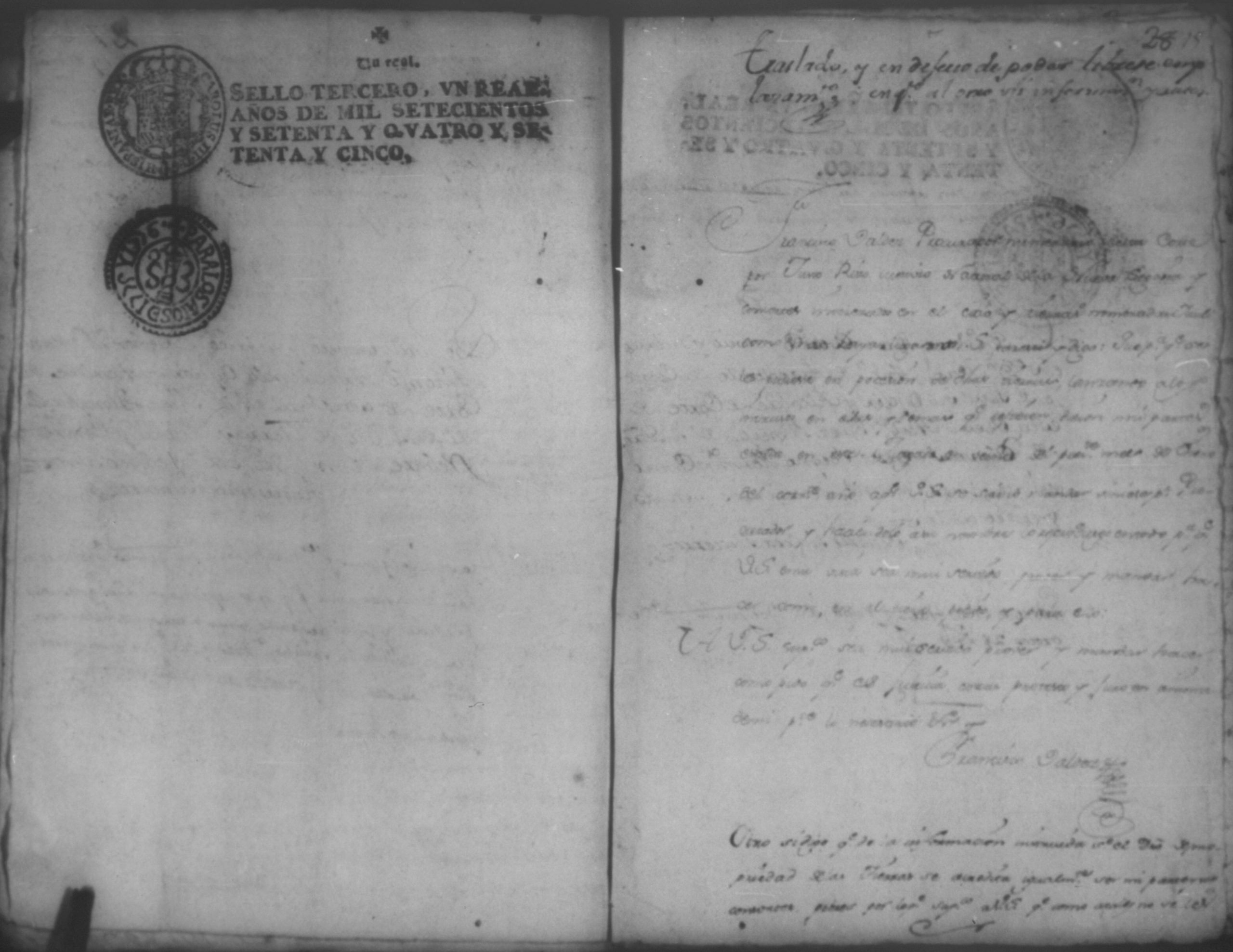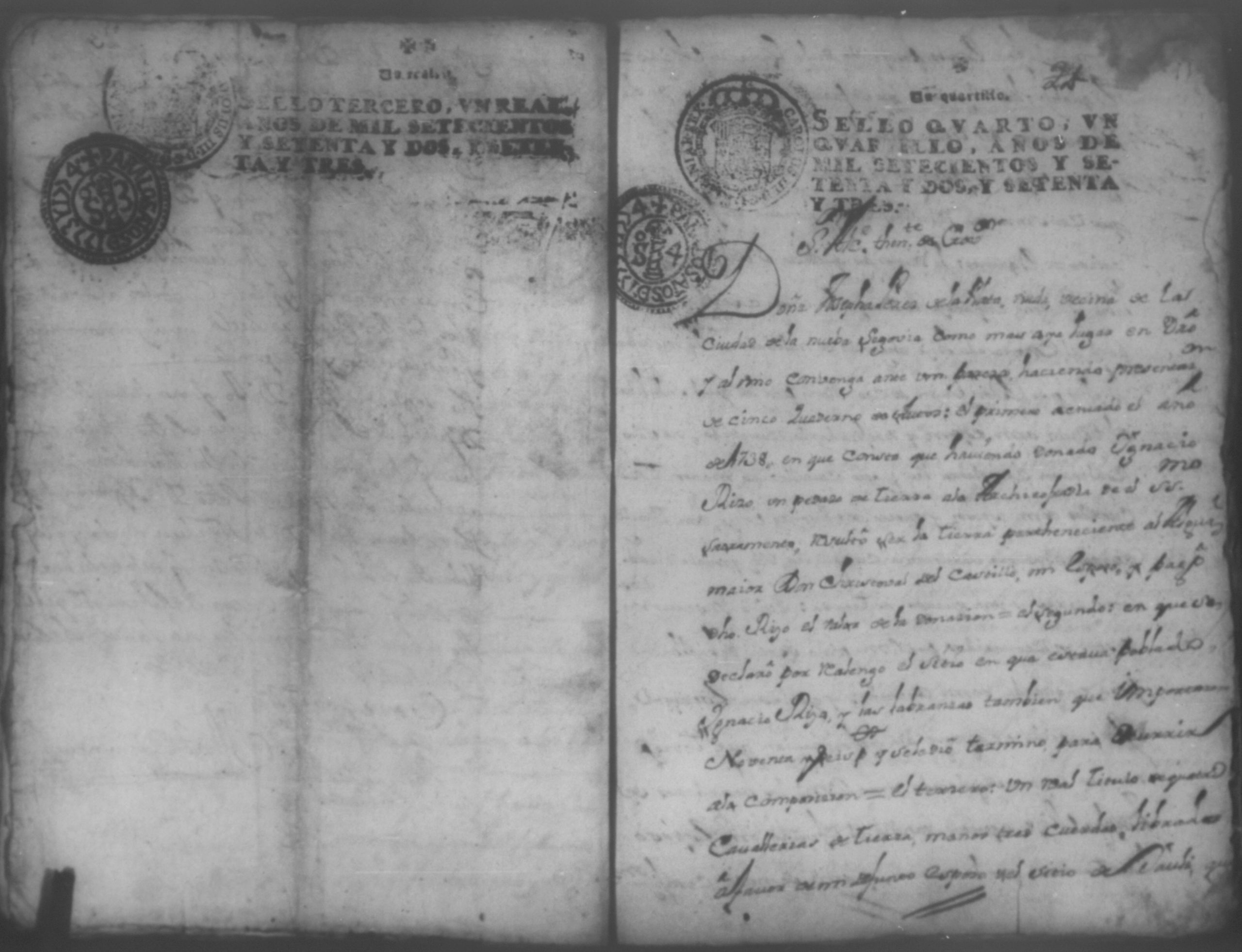 Temática: "Leon 1776. Juzgado de tierras. Autos que sigue Justo Rizo contra Doñan Josefa Perez de la Plata vezinos de la Cegovia Domingo Rizo vecino de la ciudad de Cegovia por mi y a nombre de mis hermanos por quienes presto vos y petición de visto […] ante vuestra merced parezco en la mejor forma […] lugar en dicho y dejo que desde el año de noventa y sinco padeció mi abuelo Don Antonio Rizo entre otros años uno nombrado […] […] jurisdicción como capitán desta Real […] y por […] de dicho mi abuelo dio en la herencia de dicho […] Ygnacio Rizo… "