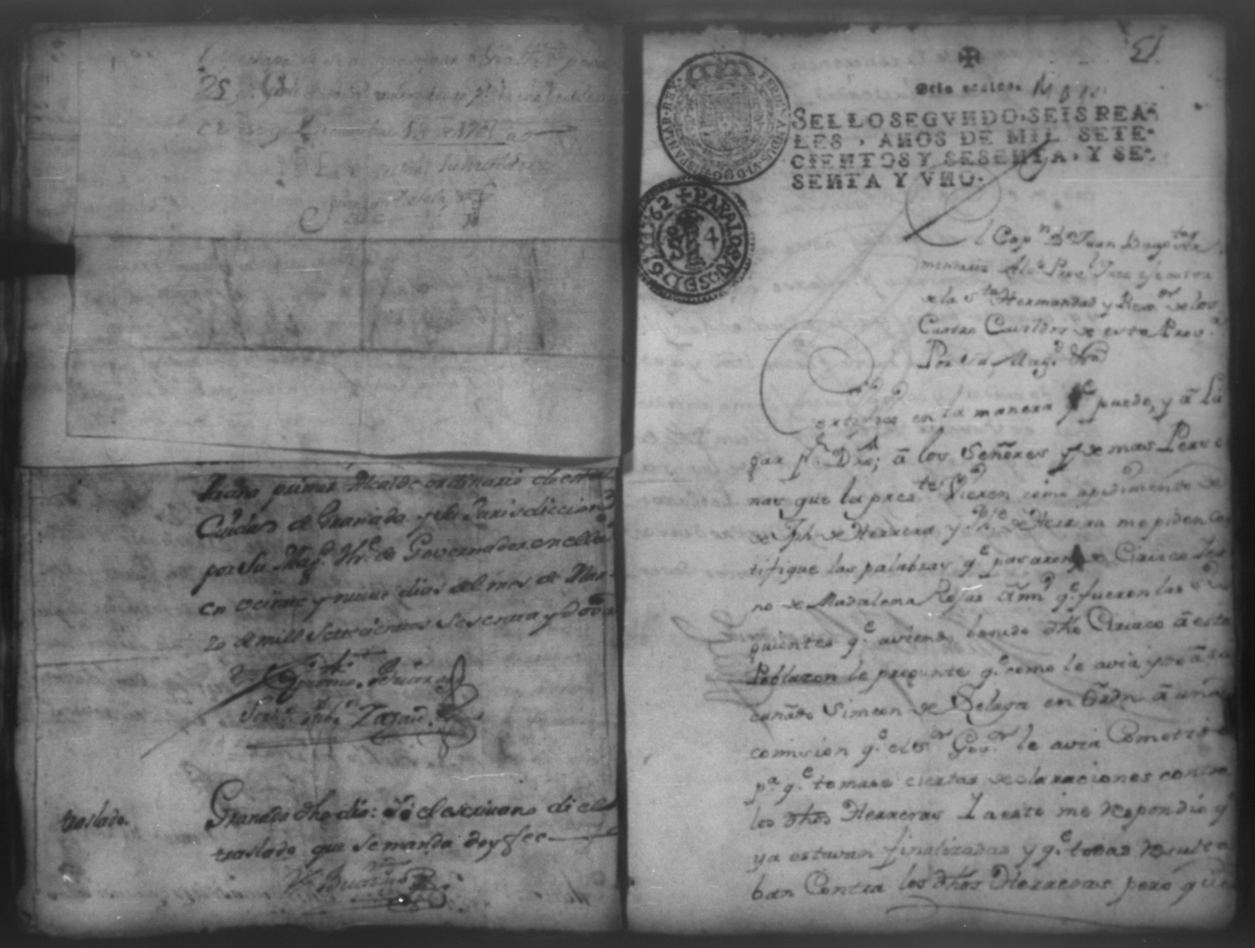 Temática: Año de 1762. Autos seguidos contra Joseph Phelipe de [Terrera] y Nicolas de Luna por demanda criminal puesta contra ellos por los capitanes Don Manuel Estevan de Solorzano, Don Francisco Ruiz de Aguilar y Don Juan Jacinto de Pravia. En pasados el año 1761.