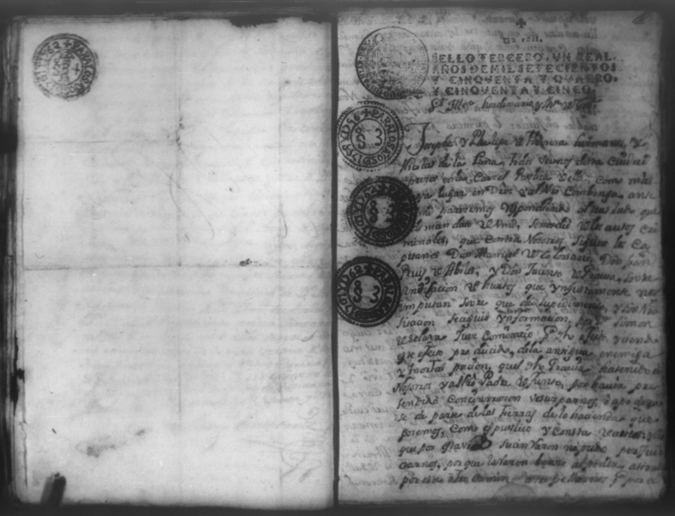 Temática: Año de 1762. Autos seguidos contra Joseph Phelipe de [Terrera] y Nicolas de Luna por demanda criminal puesta contra ellos por los capitanes Don Manuel Estevan de Solorzano, Don Francisco Ruiz de Aguilar y Don Juan Jacinto de Pravia. En pasados el año 1761.
