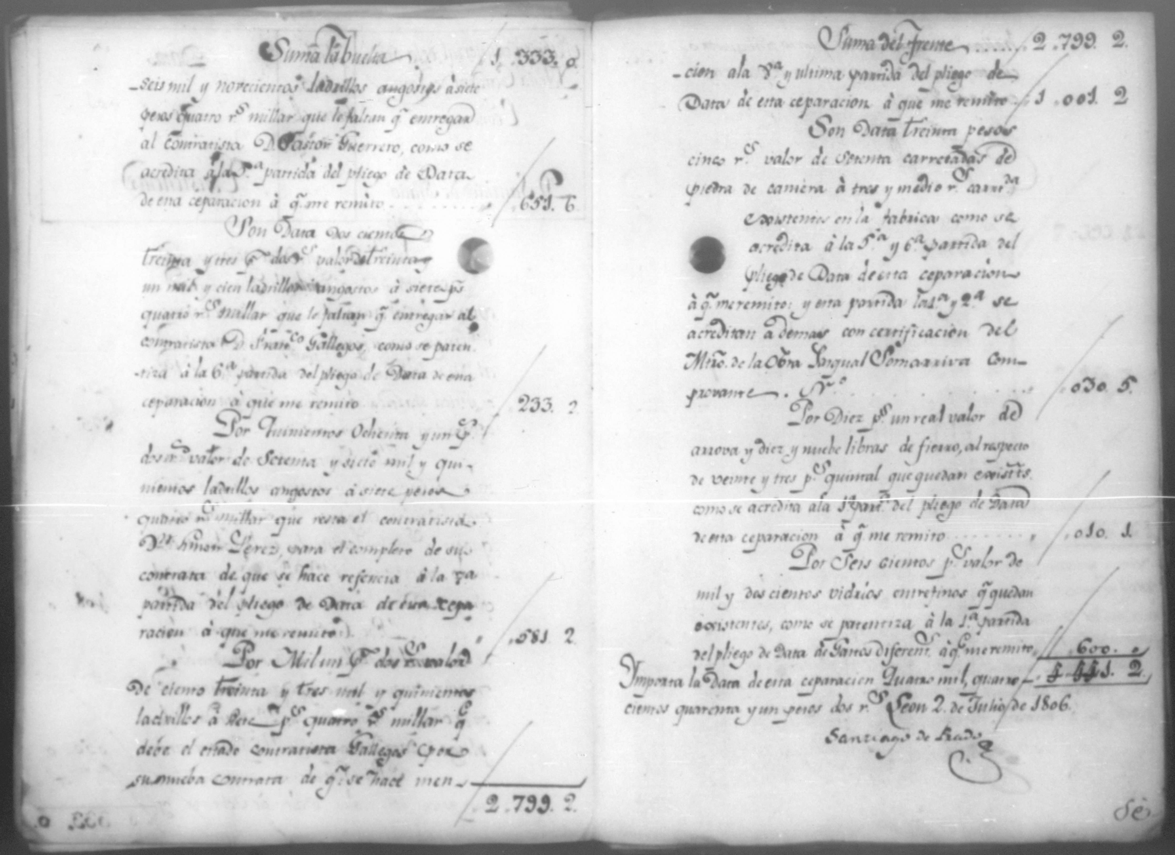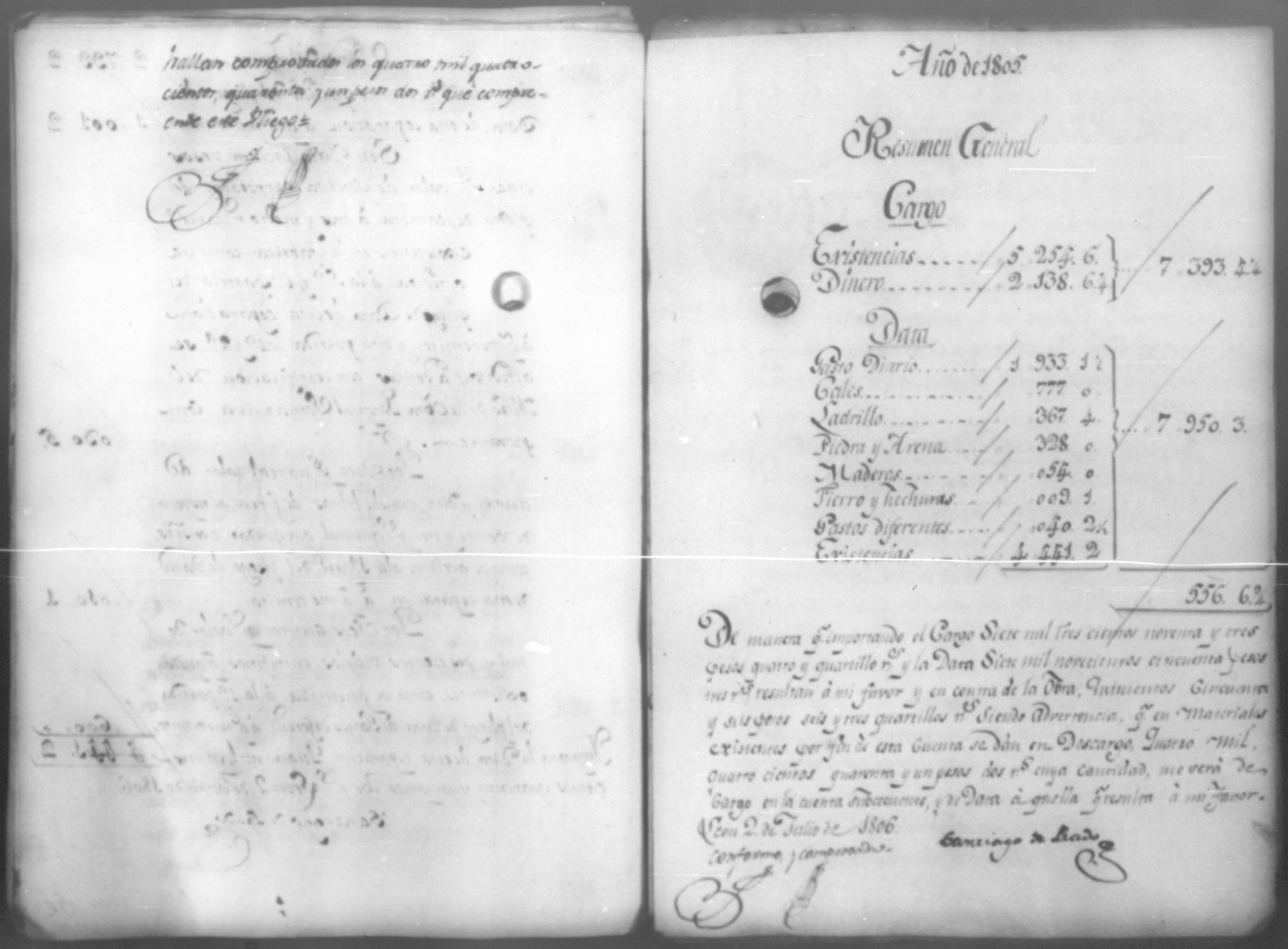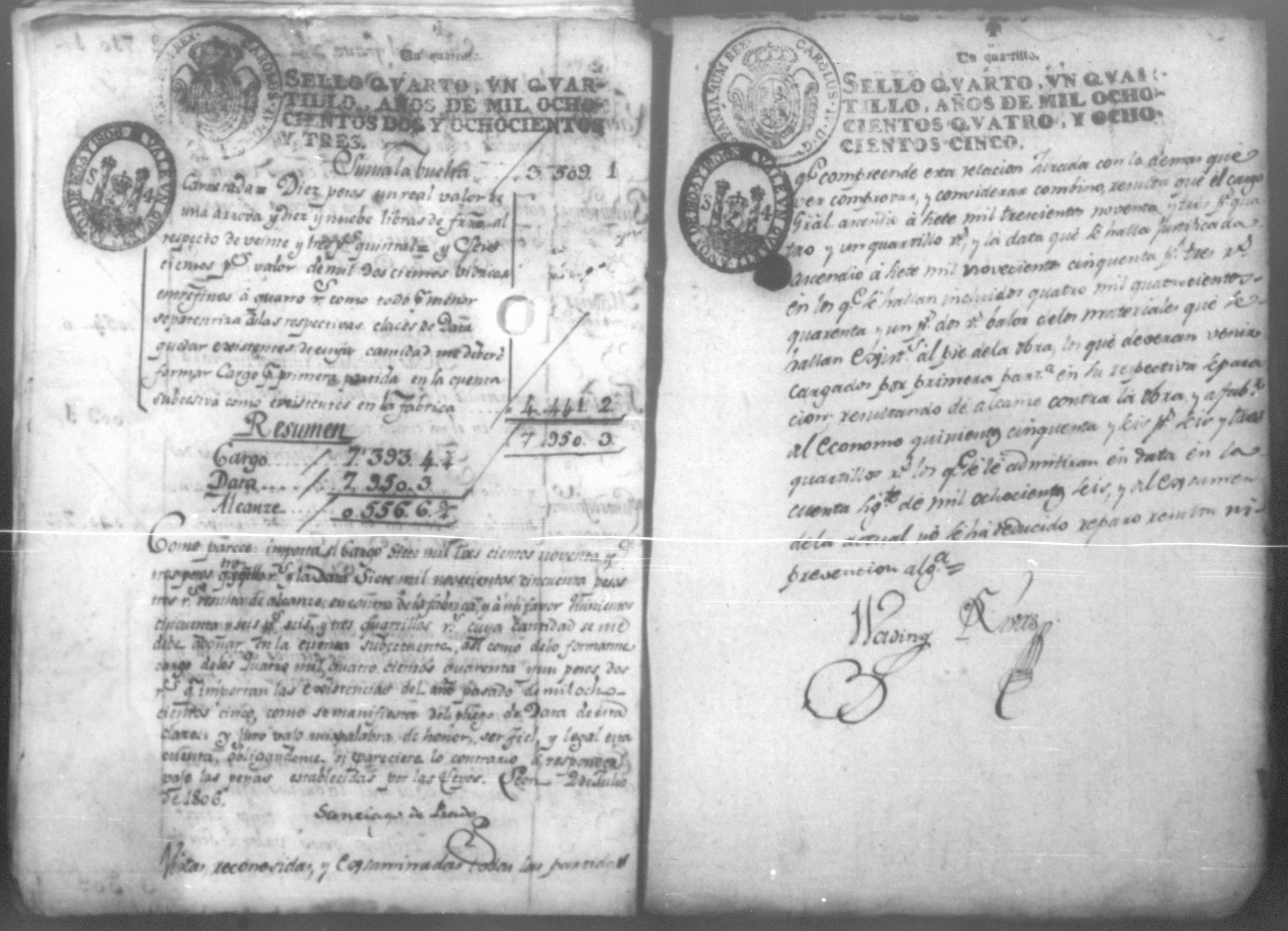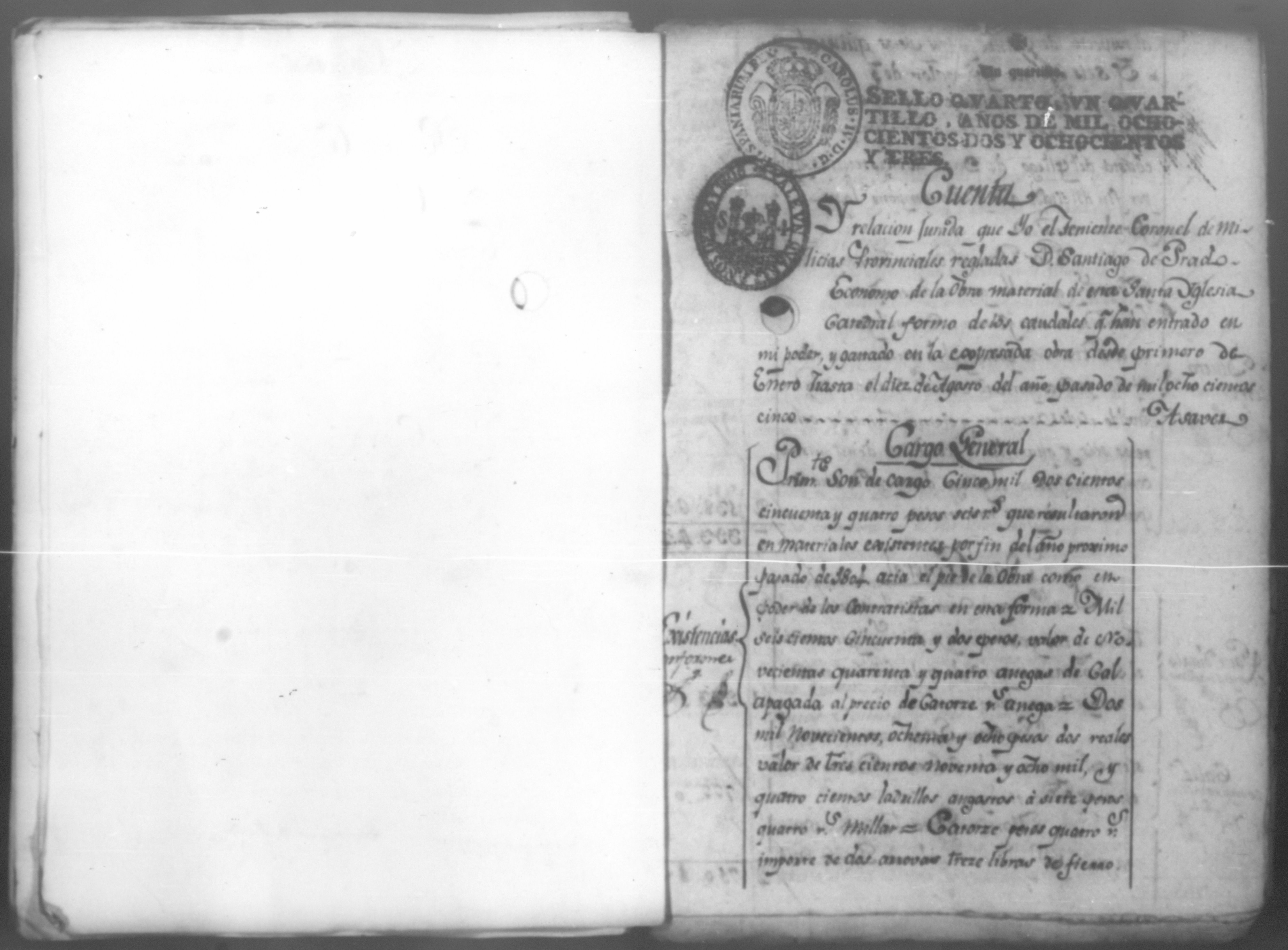 Temática: Año de 1805. Fabrica material de la Santa Iglesia Catedral de León. Economo Don Santiago de Prado. Cargo de existencias