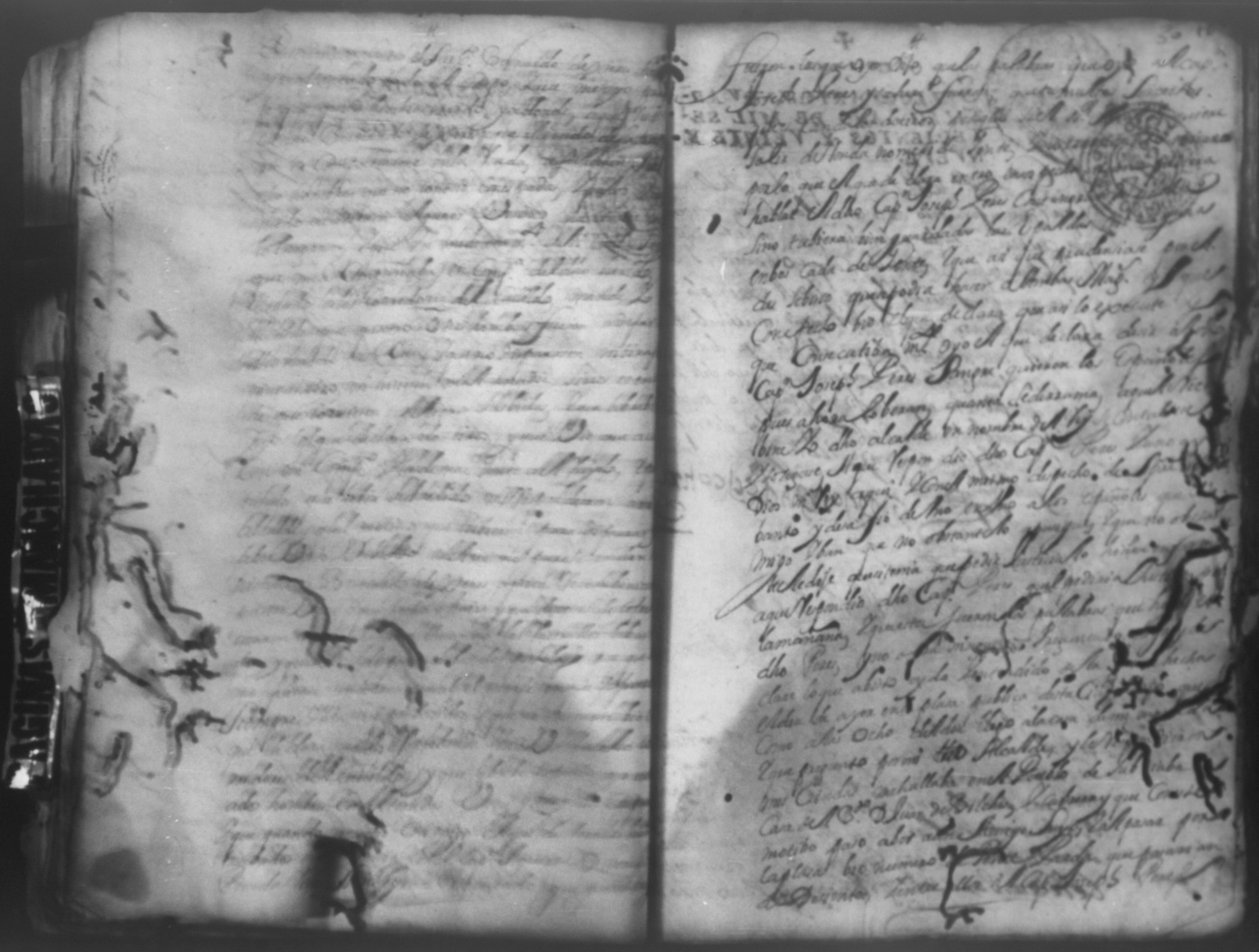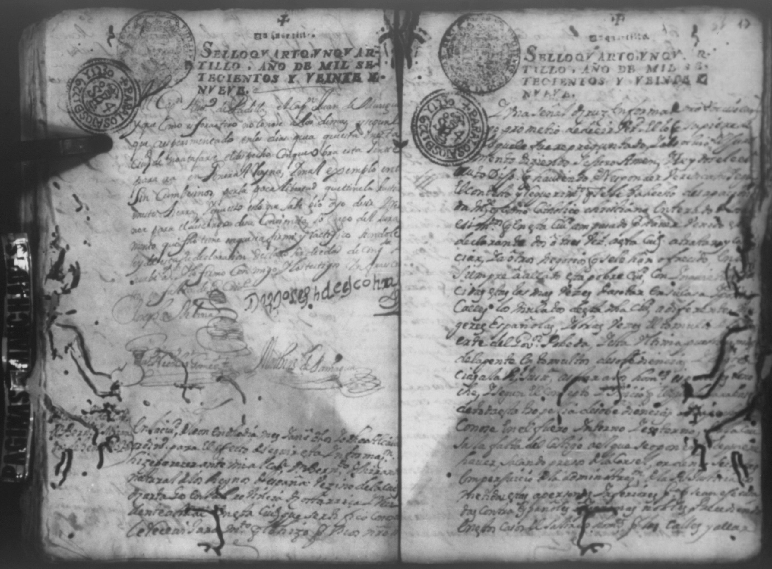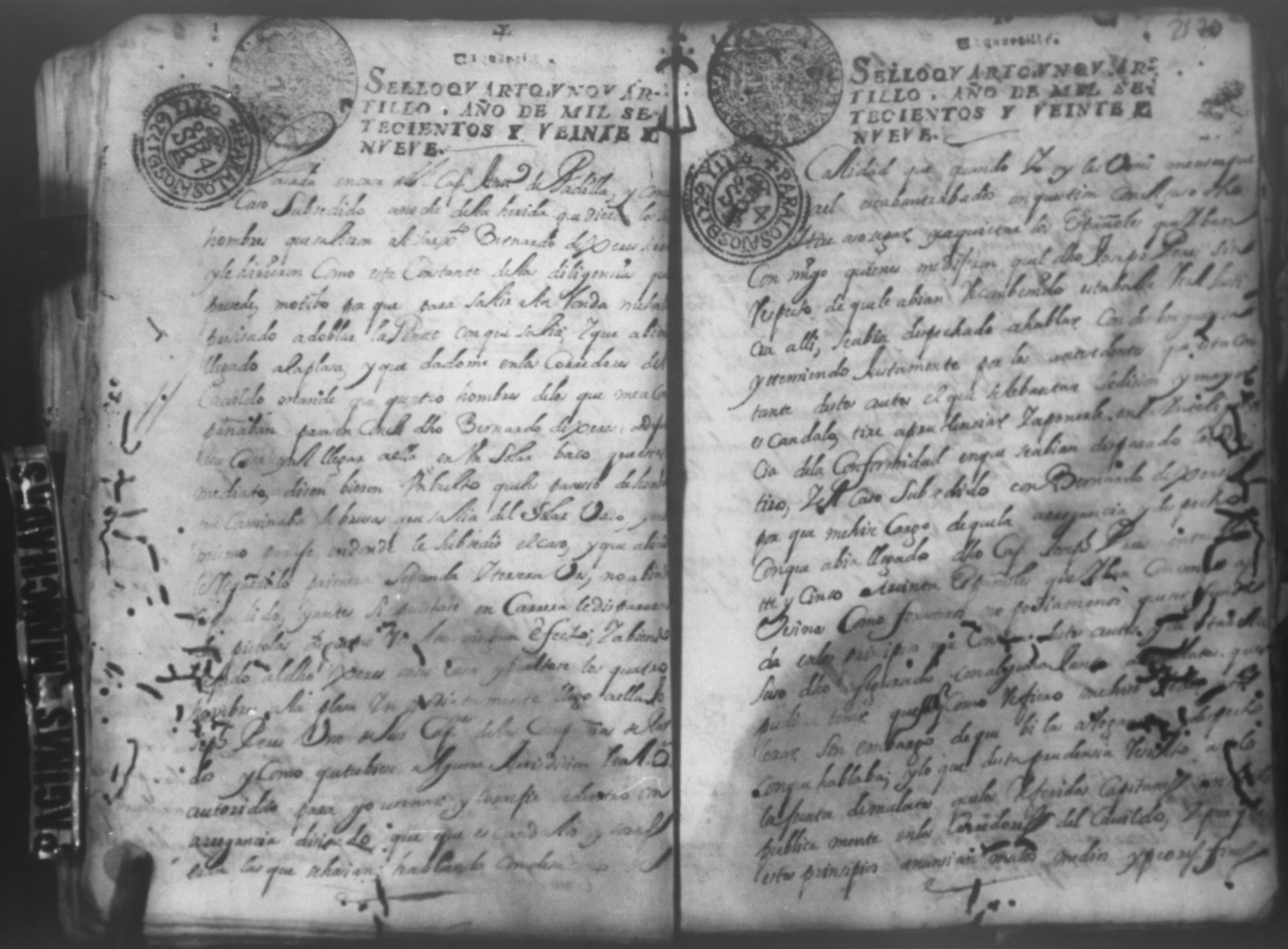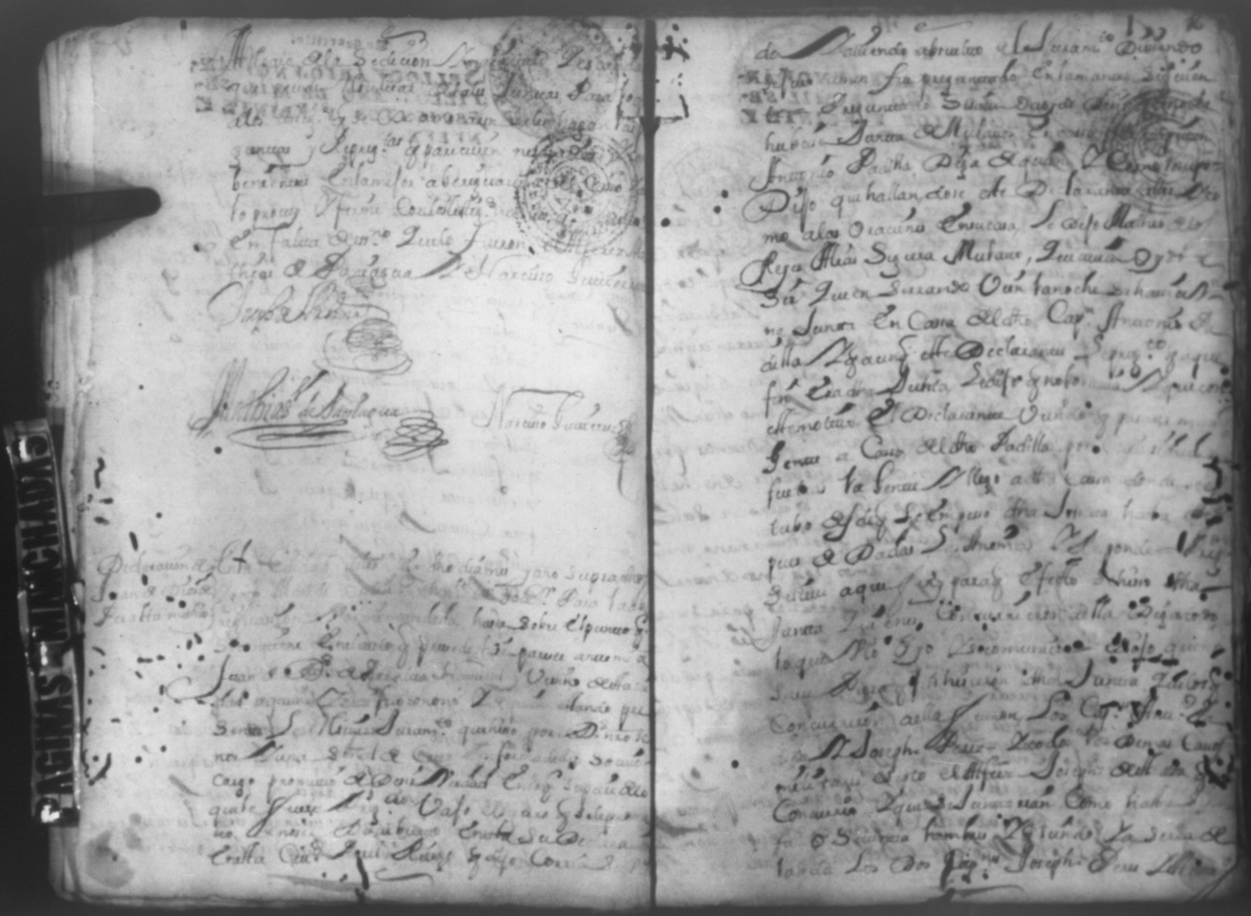 Temática: Leon 1729. Causa Criminal seguida de oficcion por la Real Justizia contra Juan Rafael de Espinosa, ygnazio de Sequeira y [Derifio] Javier la executa de [yncautos] en la pugna [...] de [sargento] Mayor en que prohiben los duelos y desafios. Firma de Mathias de Samagua. Documentos hace mención de varias causas criminales. Expediente contiene varias paginas con manchas por humedad.