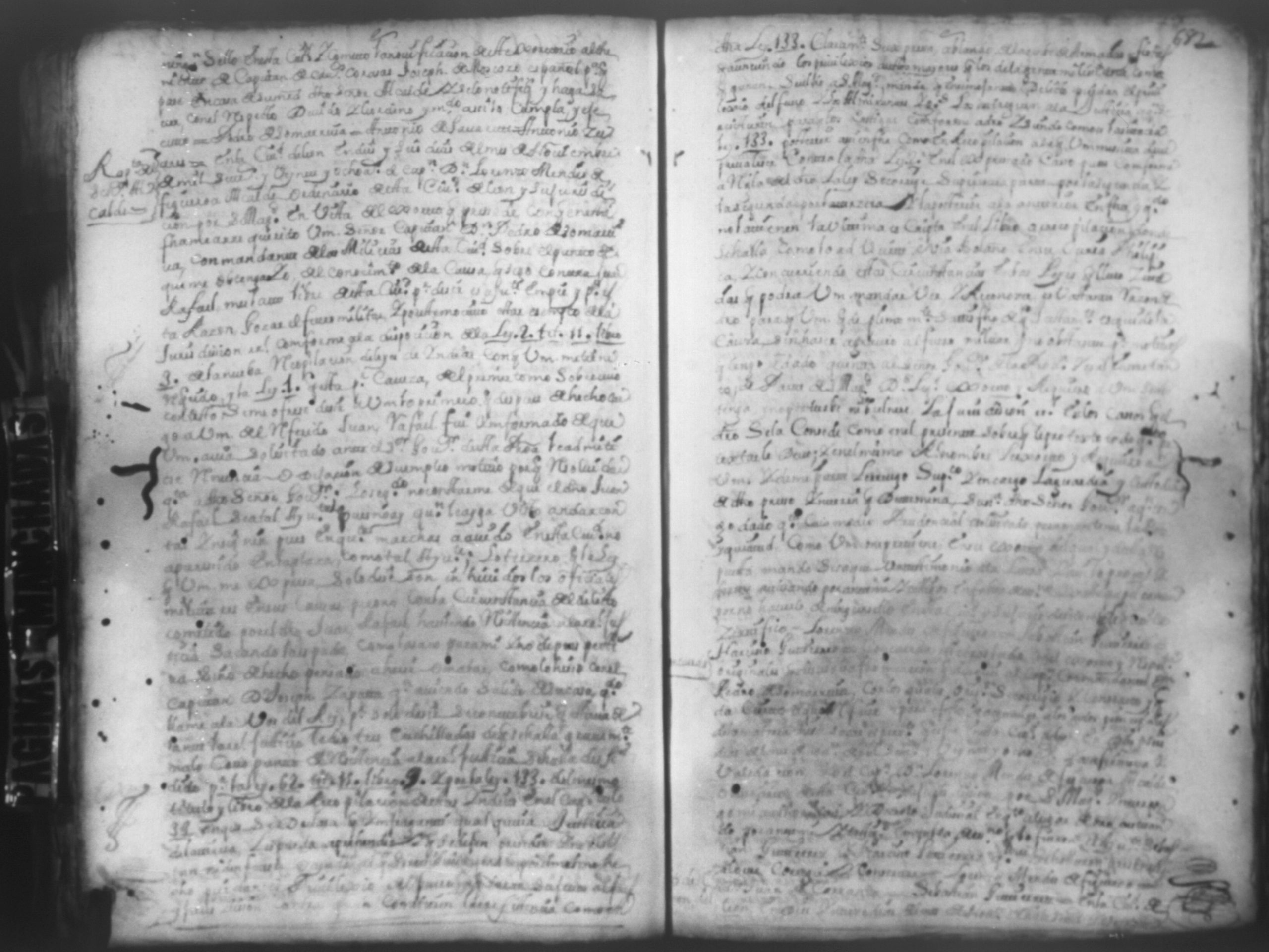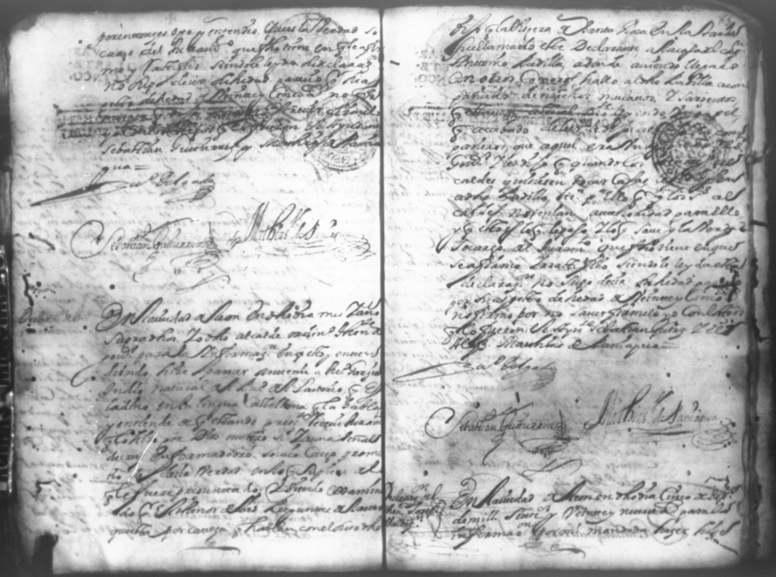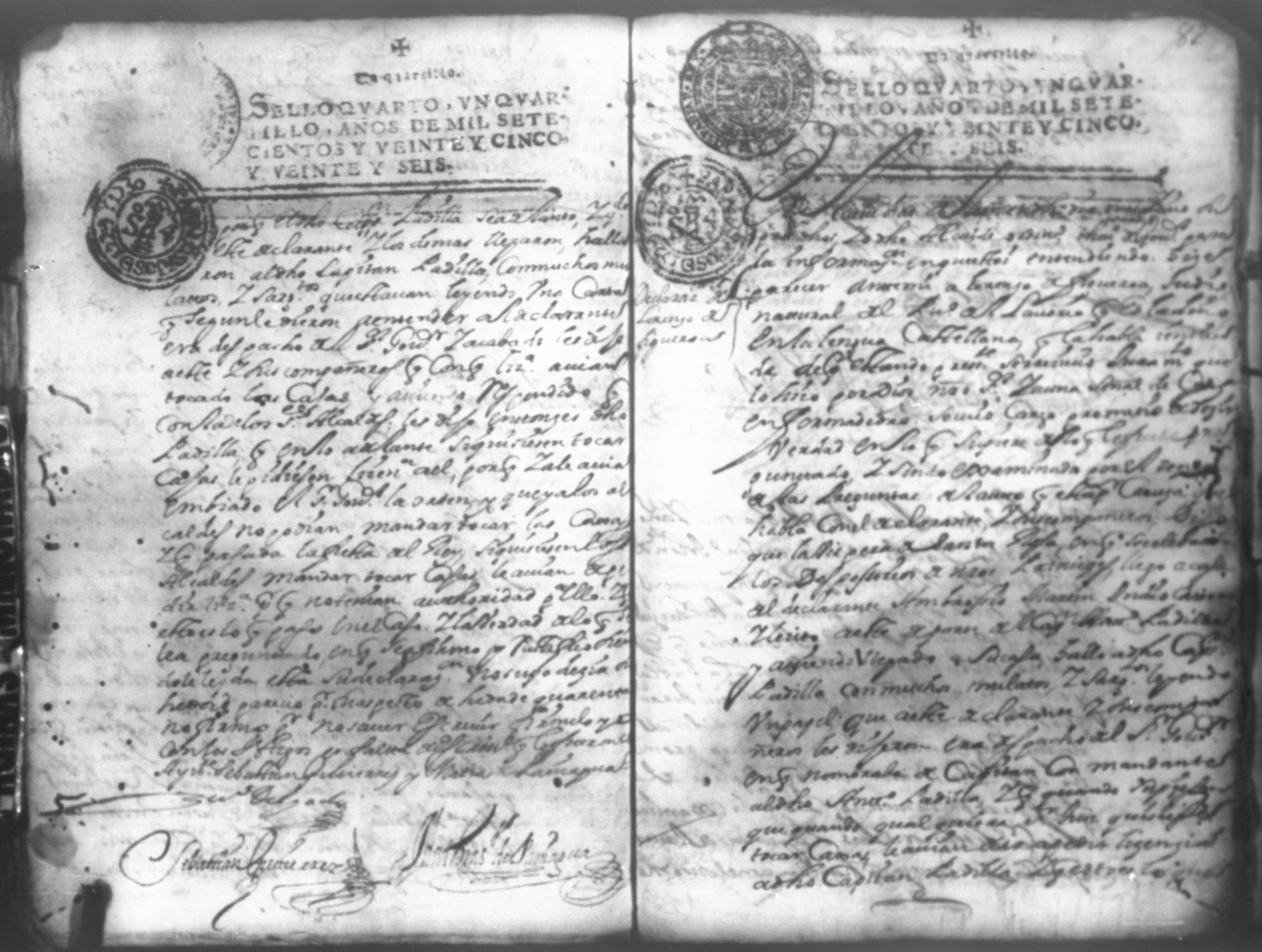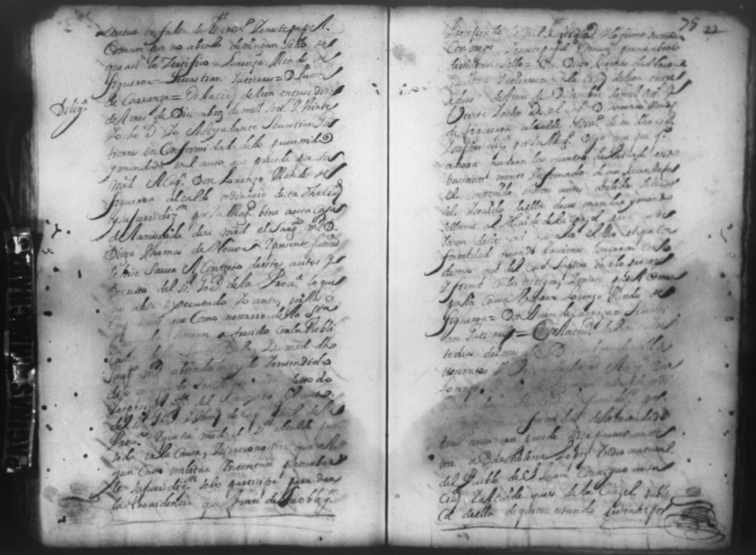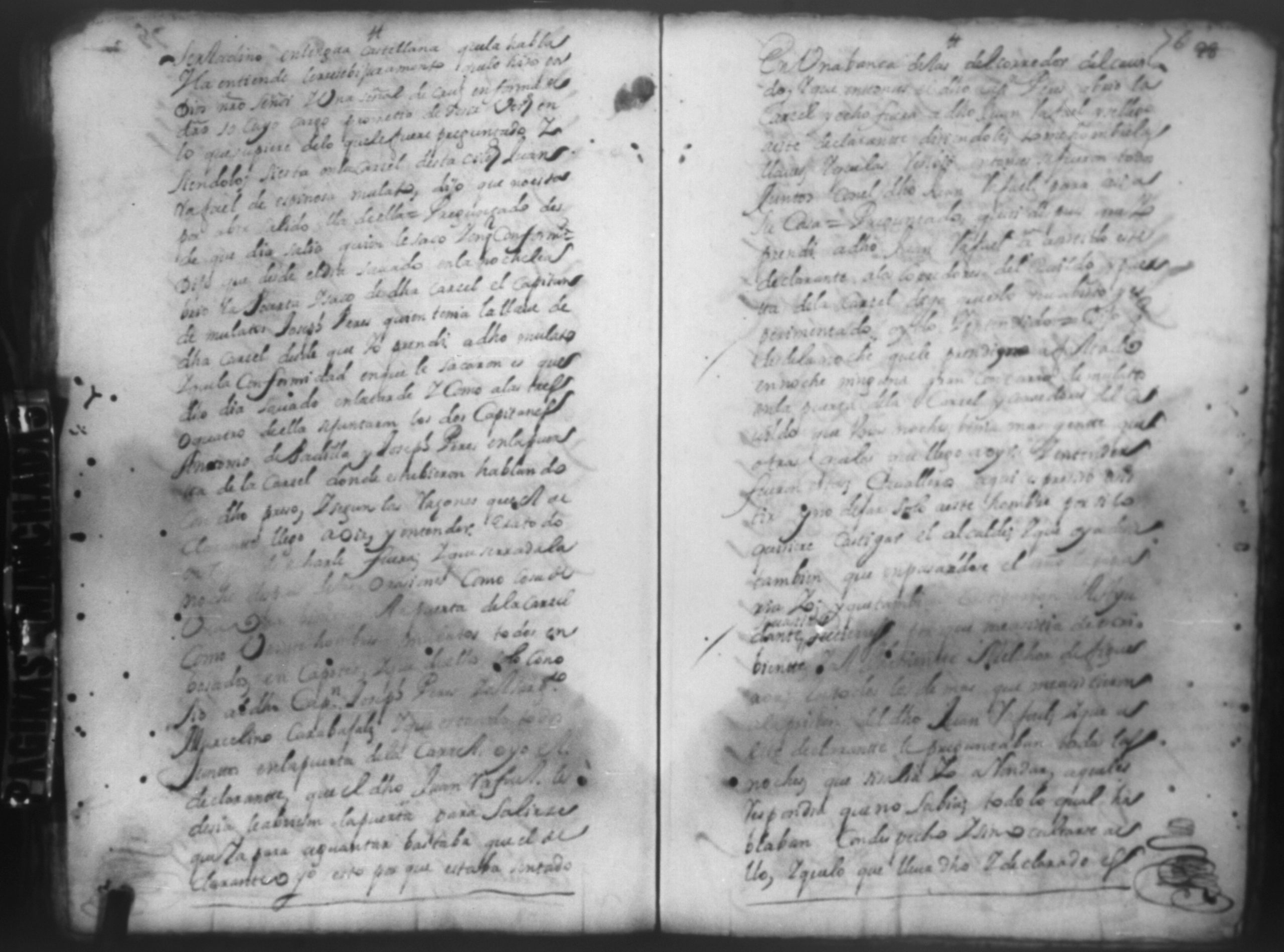 Temática: Leon 1729. Causa Criminal seguida de oficcion por la Real Justizia contra Juan Rafael de Espinosa, ygnazio de Sequeira y [Derifio] Javier la executa de [yncautos] en la pugna [...] de [sargento] Mayor en que prohiben los duelos y desafios. Firma de Mathias de Samagua. Documentos hace mención de varias causas criminales. Expediente contiene varias paginas con manchas por humedad.