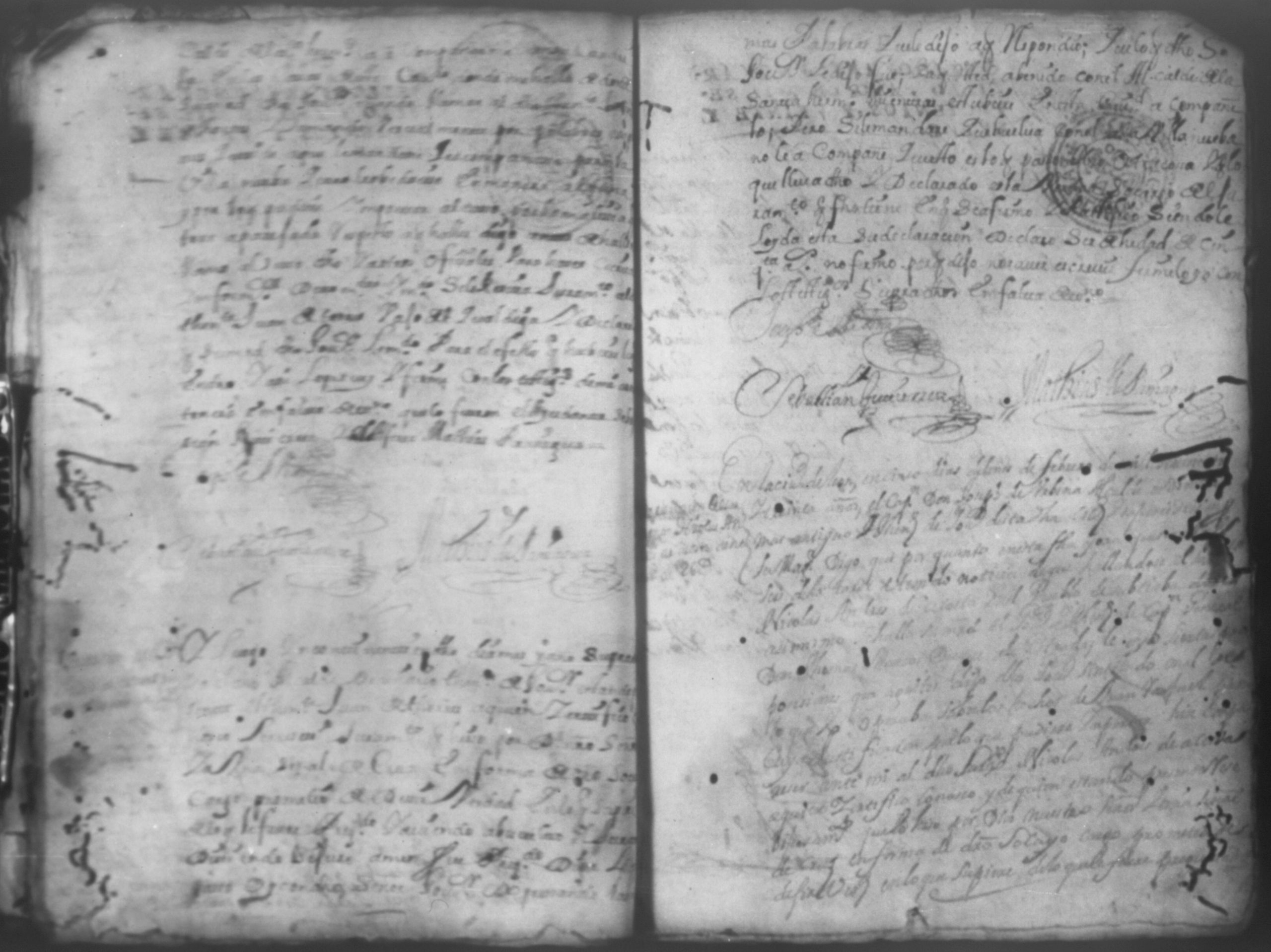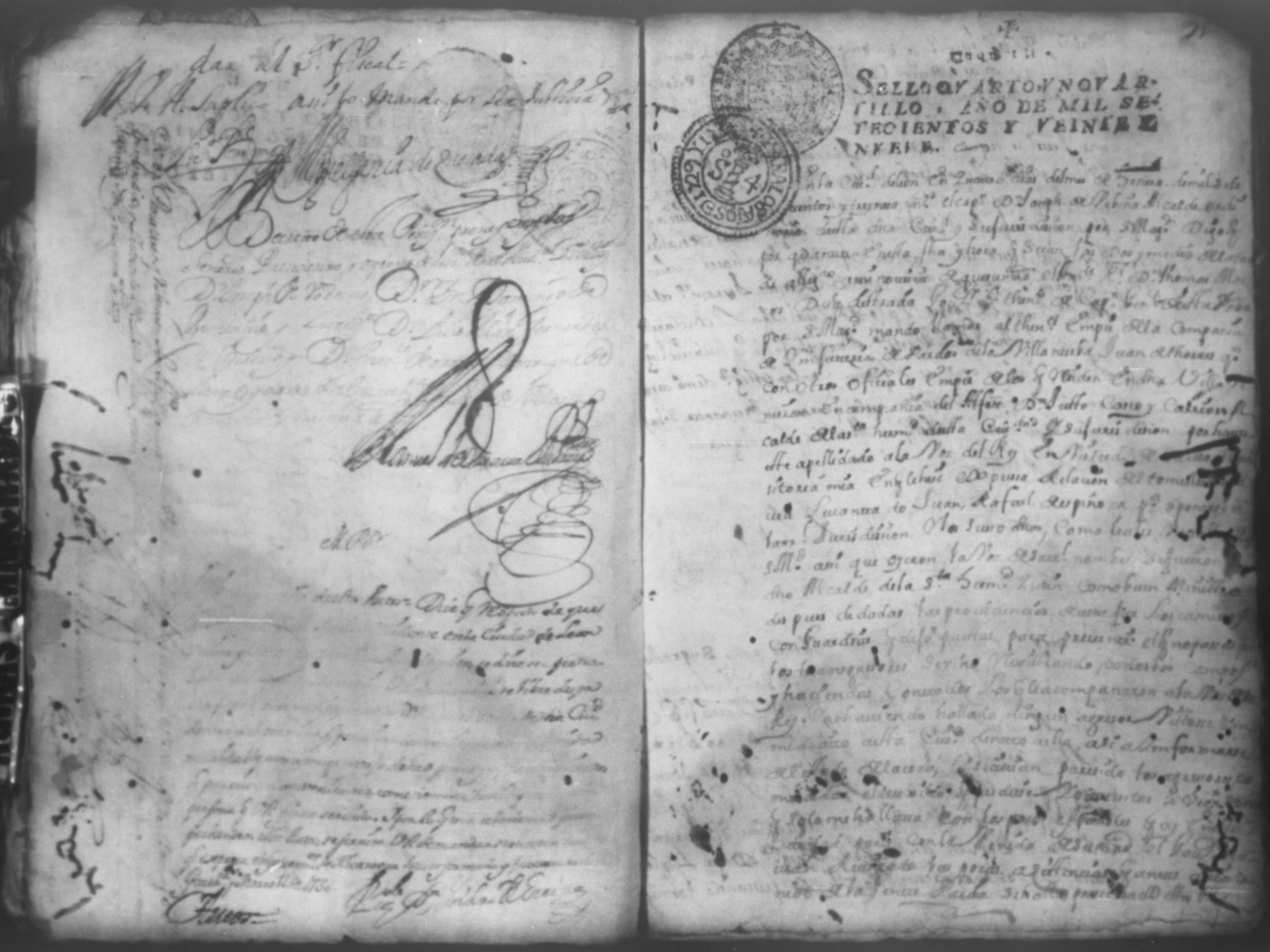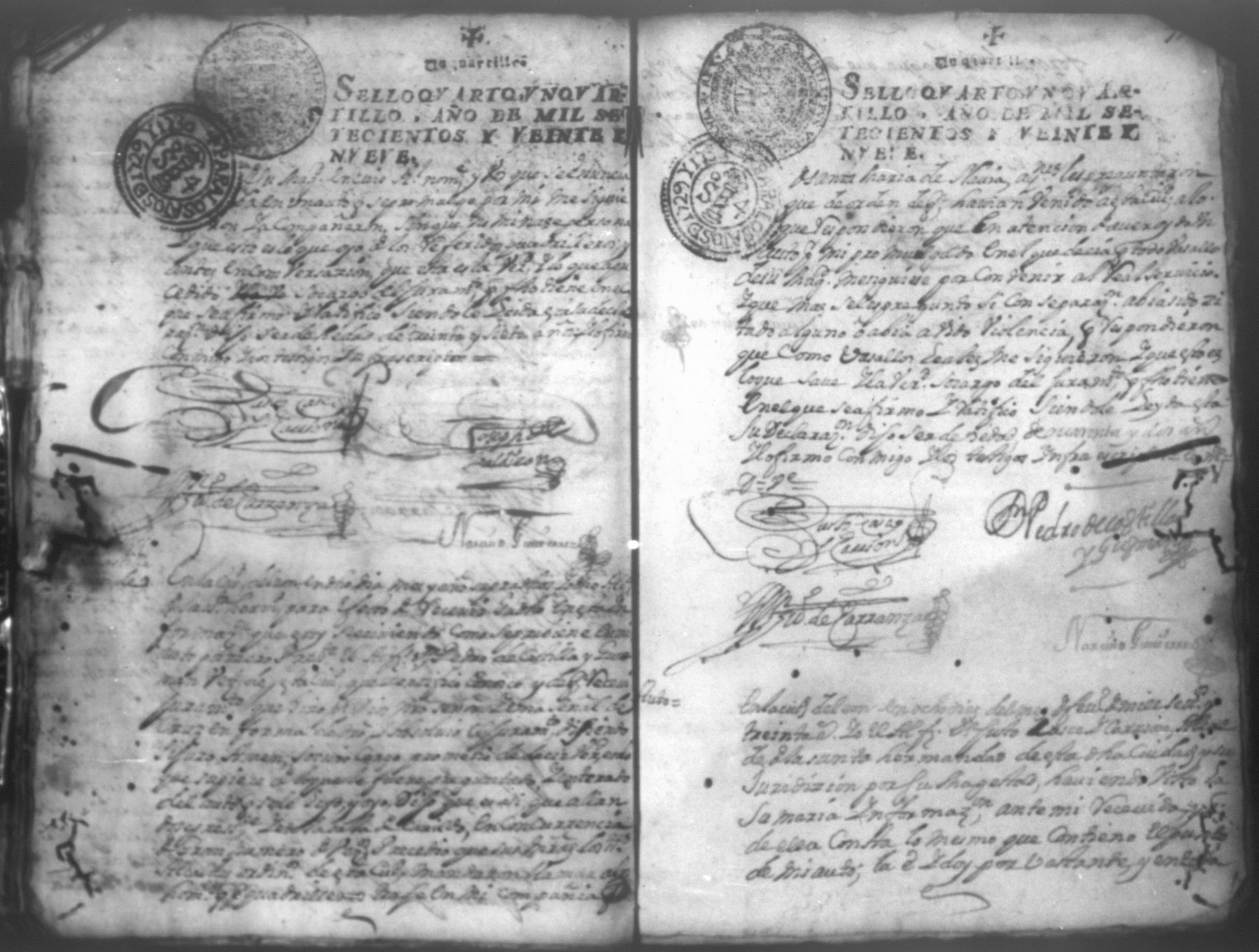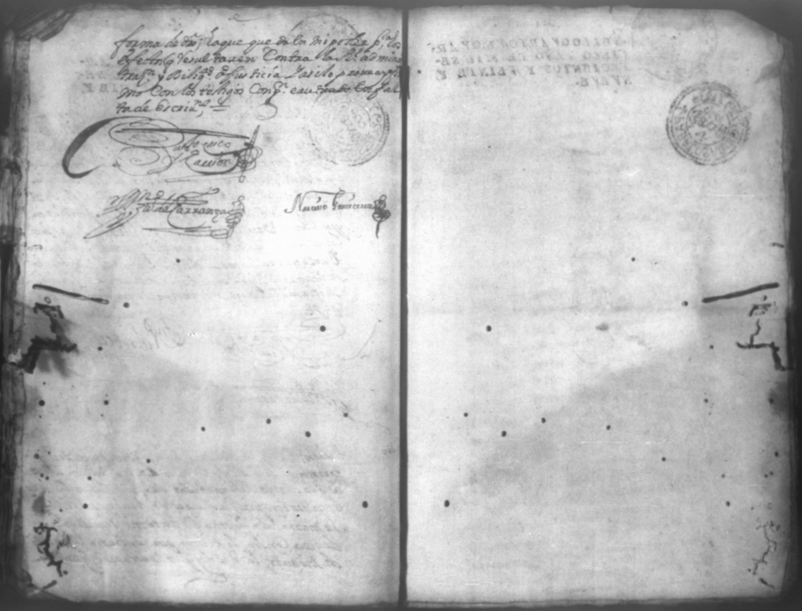 Temática: Leon 1729. Causa Criminal seguida de oficcion por la Real Justizia contra Juan Rafael de Espinosa, ygnazio de Sequeira y [Derifio] Javier la executa de [yncautos] en la pugna [...] de [sargento] Mayor en que prohiben los duelos y desafios. Firma de Mathias de Samagua. Documentos hace mención de varias causas criminales. Expediente contiene varias paginas con manchas por humedad.