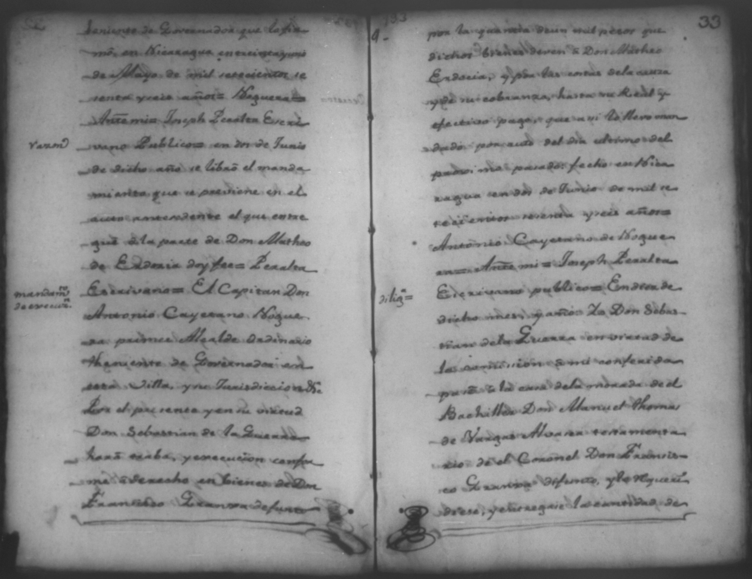 Causa executiva seguida por Don Francisco Granja contra Don Matheo de Erdozia por mil pesos, Nicaragua 1776