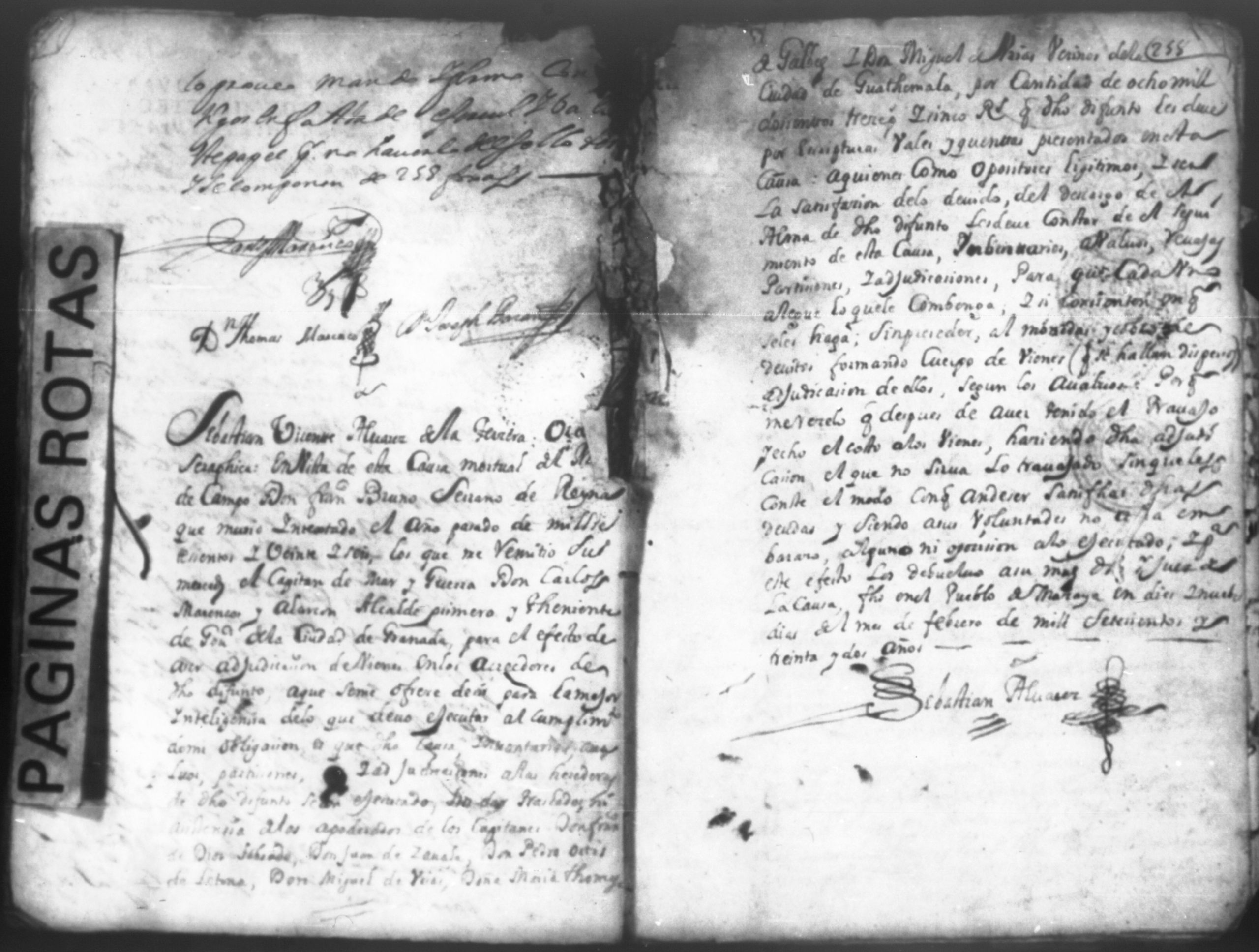 Temática: Causas mortuales dirigidas al señor Alcade ordinario. En la ciudad de Granada en nuebe dias del mes de agosto de mil setecientos y treinta y dos años Ante mí el […] de […] Don Carlos Marcelo Alferer Real y […] Alcalde hordinario más Antiguo y Teniente de Governador de dicha ciudad y su juridicción por se presentola petición de la plana