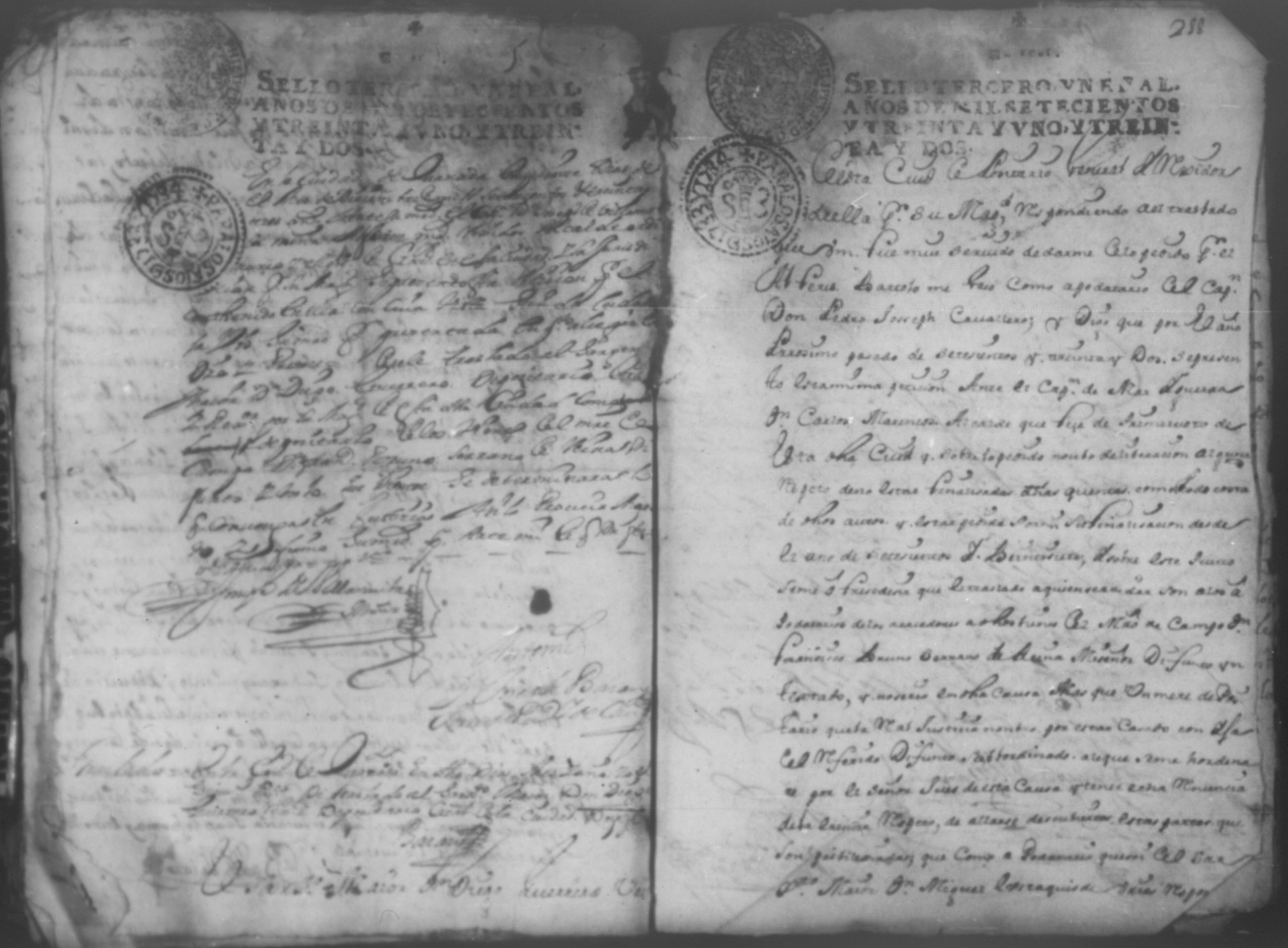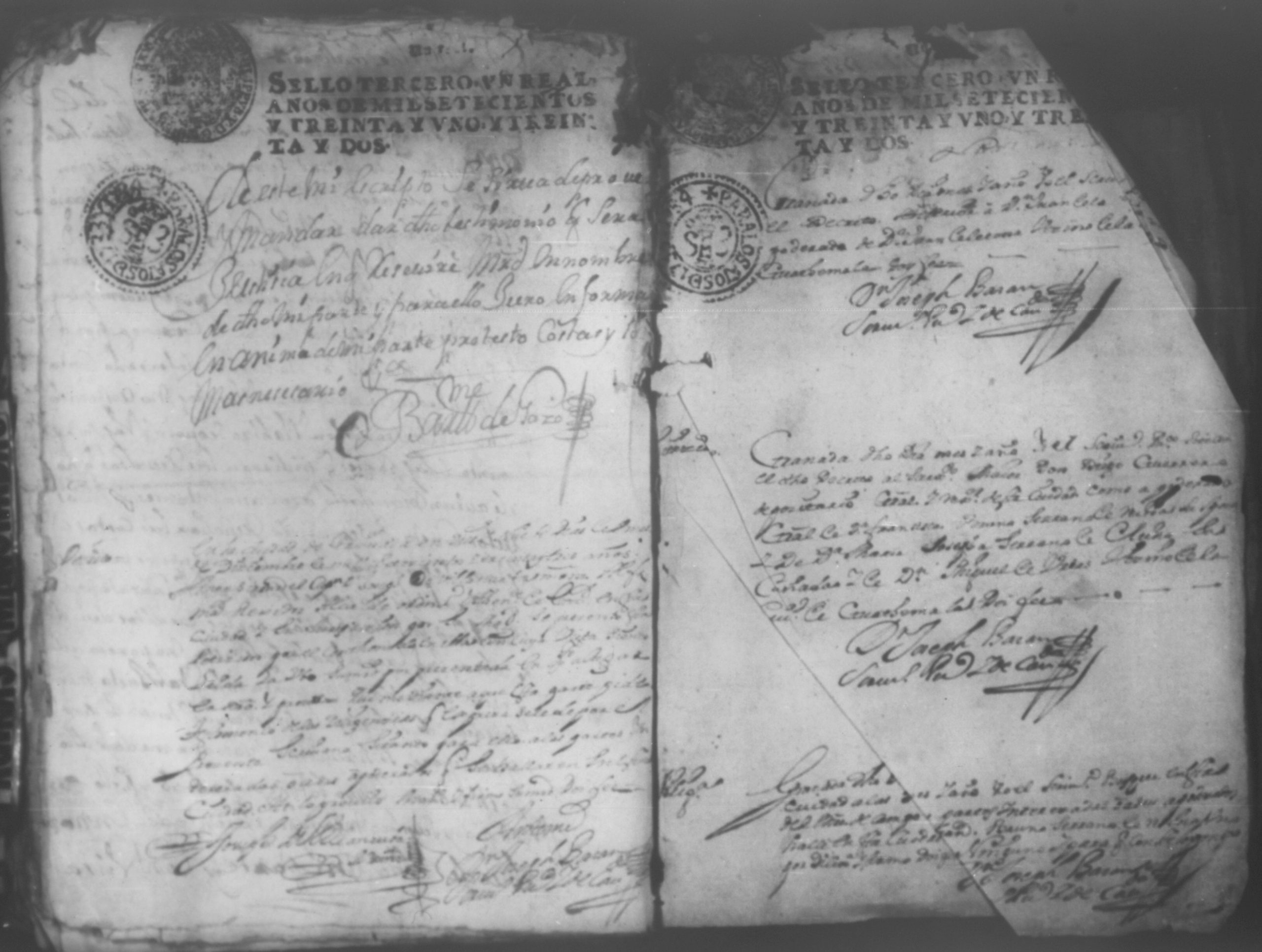 Temática: Causas mortuales dirigidas al señor Alcade ordinario. En la ciudad de Granada en nuebe dias del mes de agosto de mil setecientos y treinta y dos años Ante mí el […] de […] Don Carlos Marcelo Alferer Real y […] Alcalde hordinario más Antiguo y Teniente de Governador de dicha ciudad y su juridicción por se presentola petición de la plana