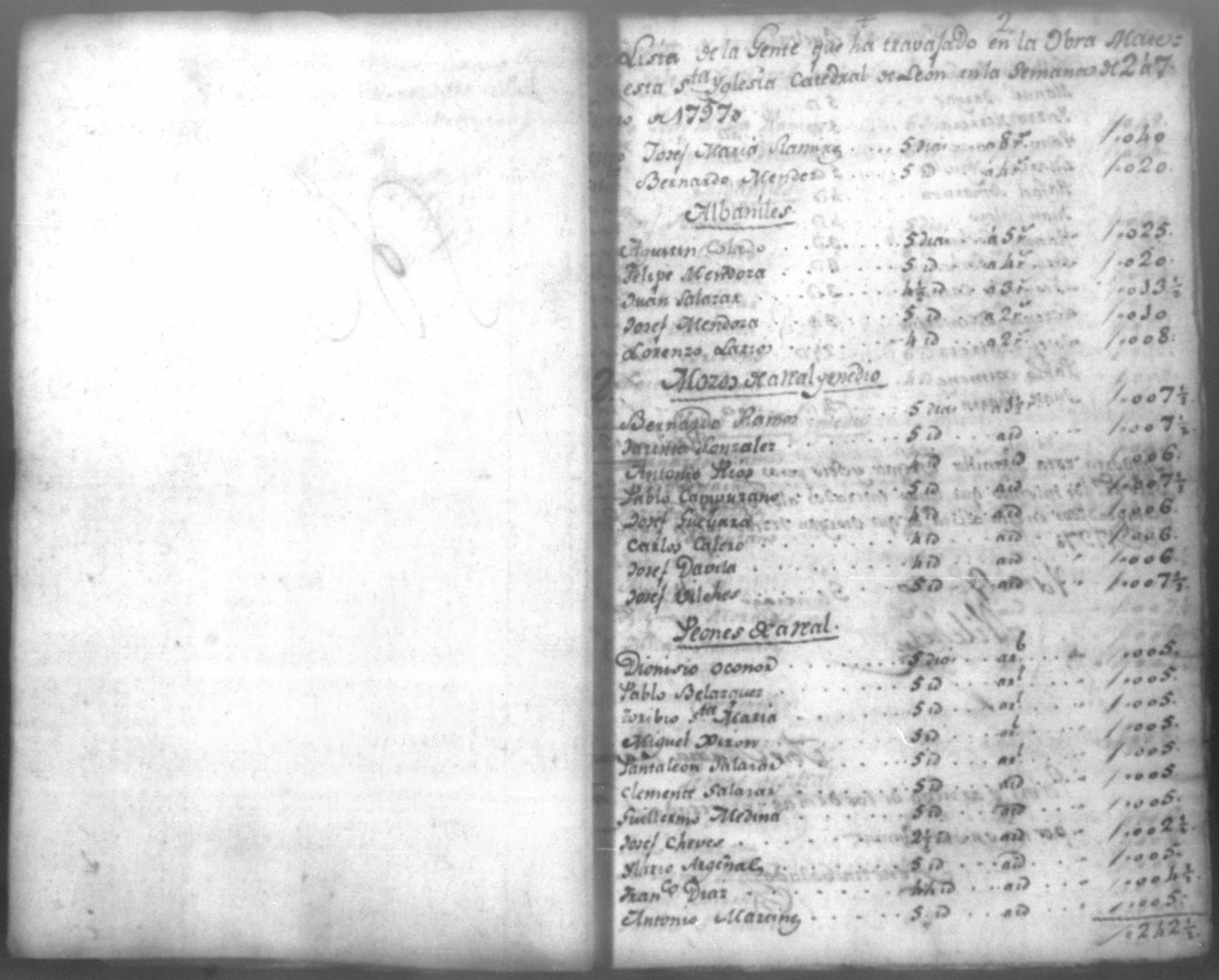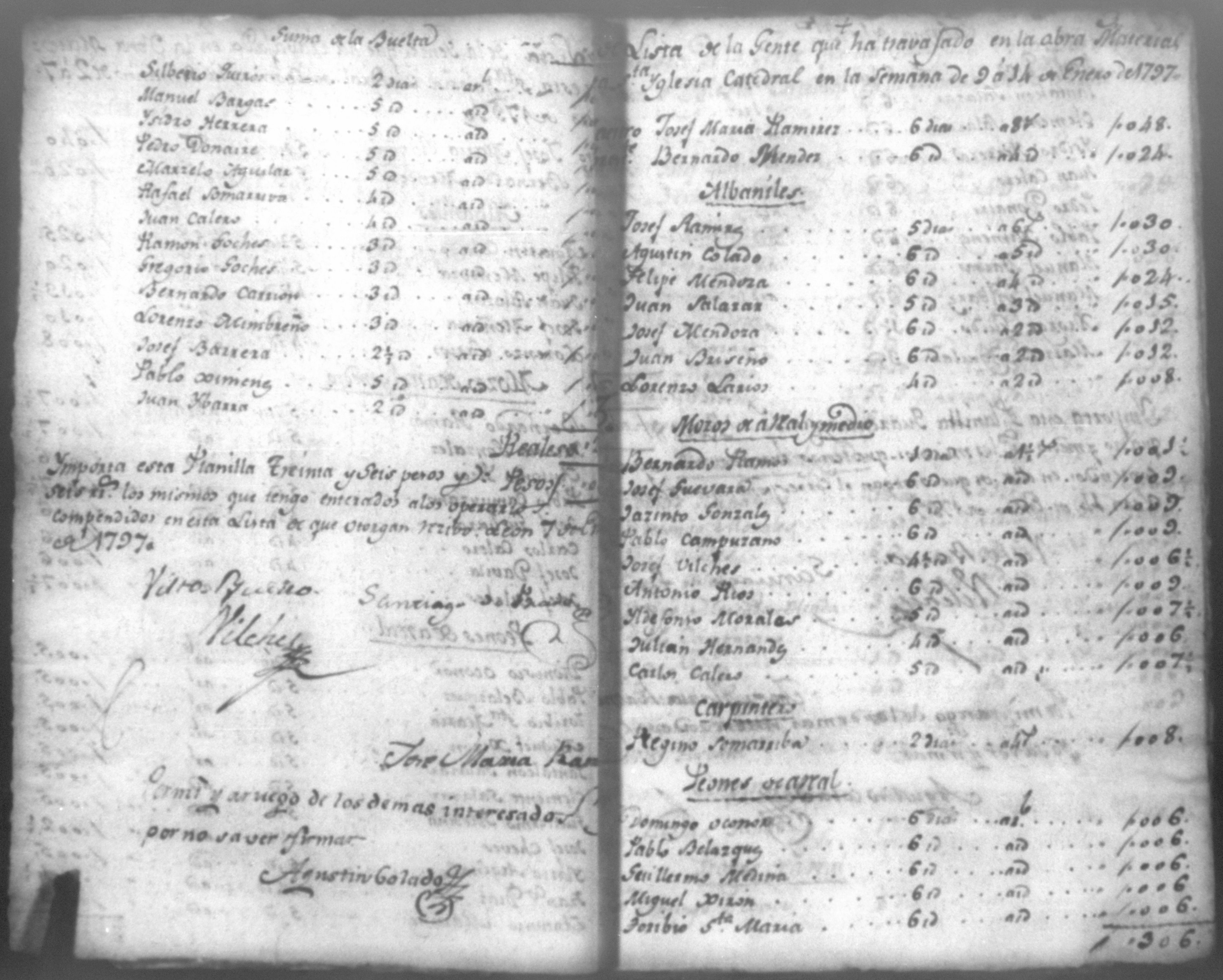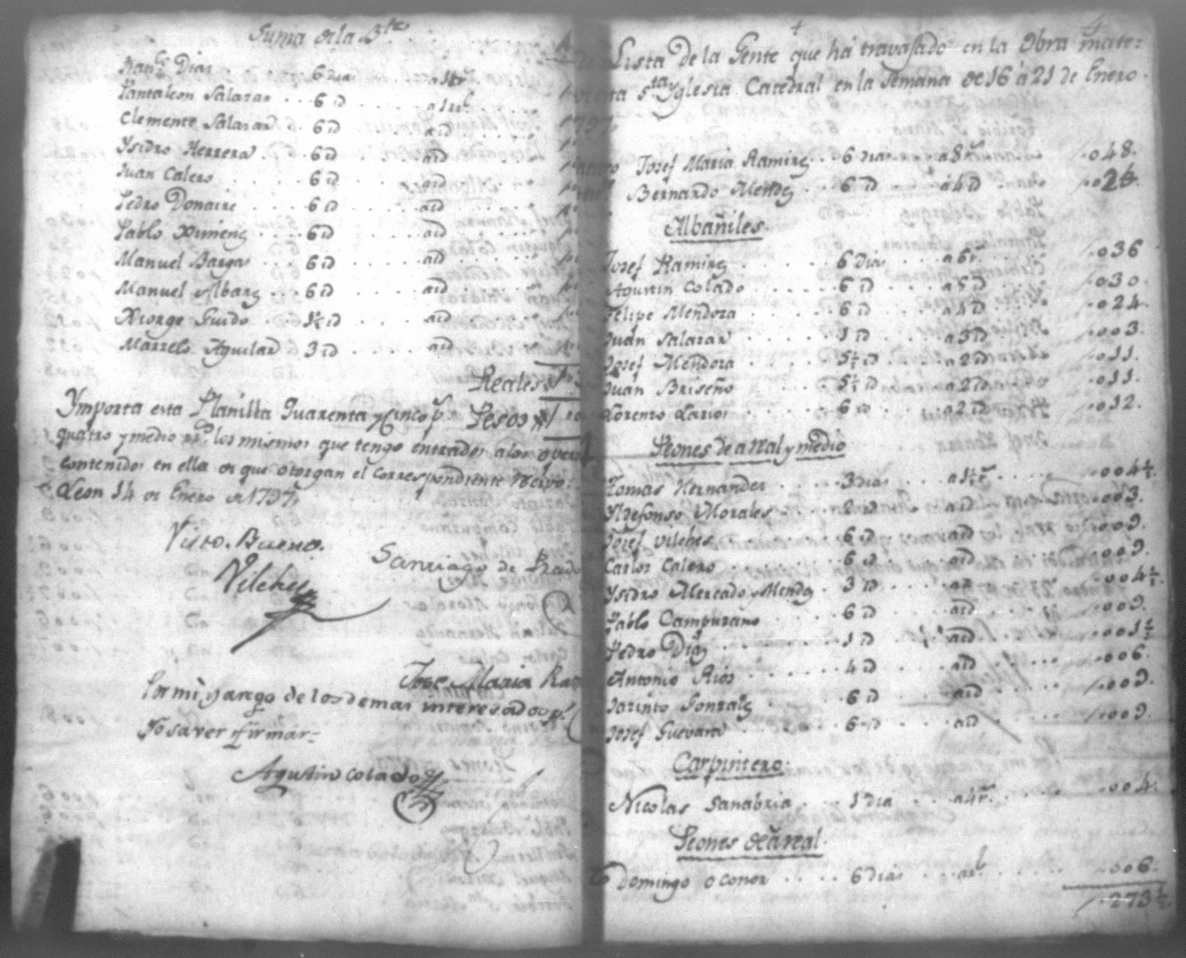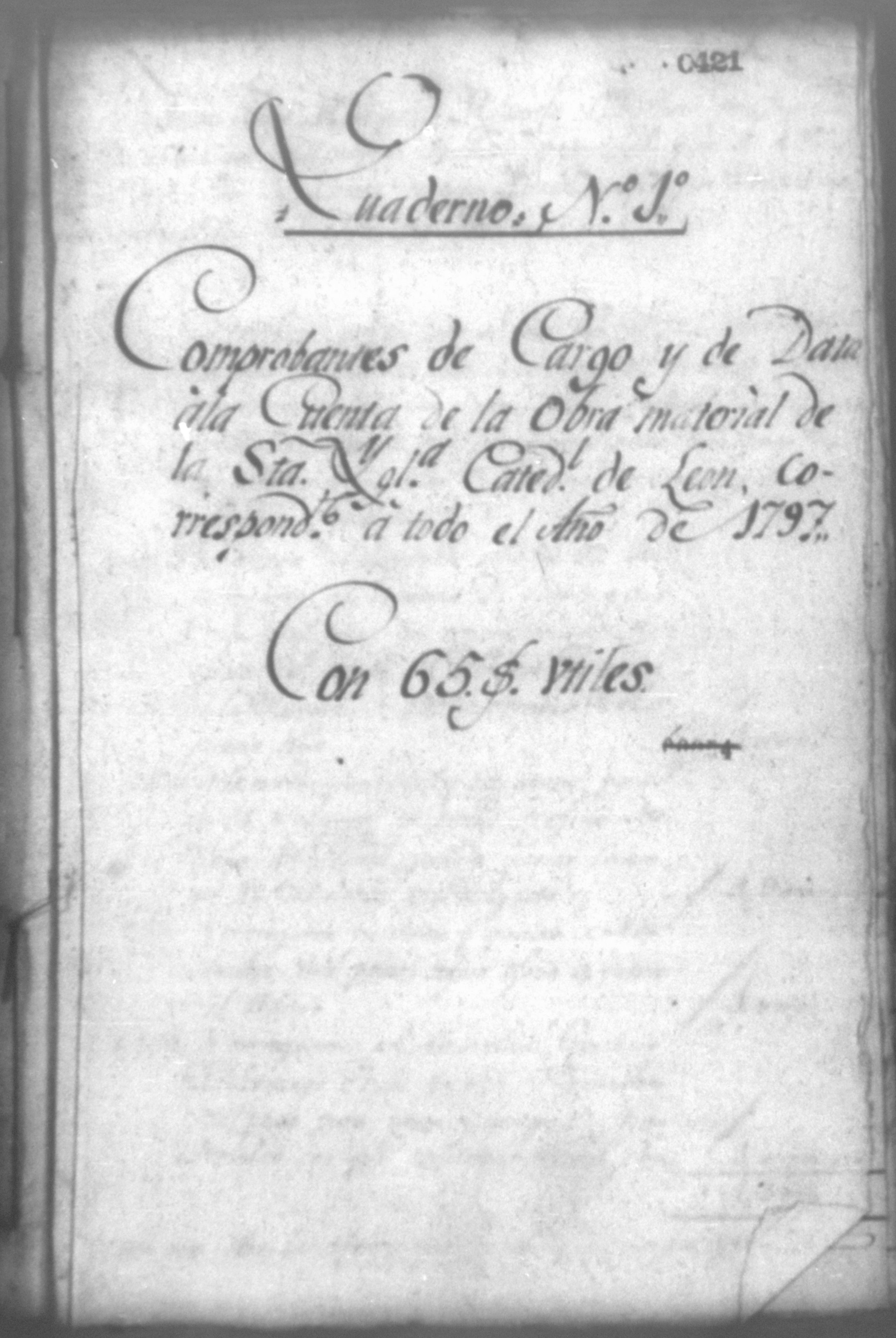 Temática: Quaderno No. 1°. Comprobantes de cargo y data a la cuenta de la obra material de la Santa Iglesia Catedral de León, corresponde a todo el año de 1797