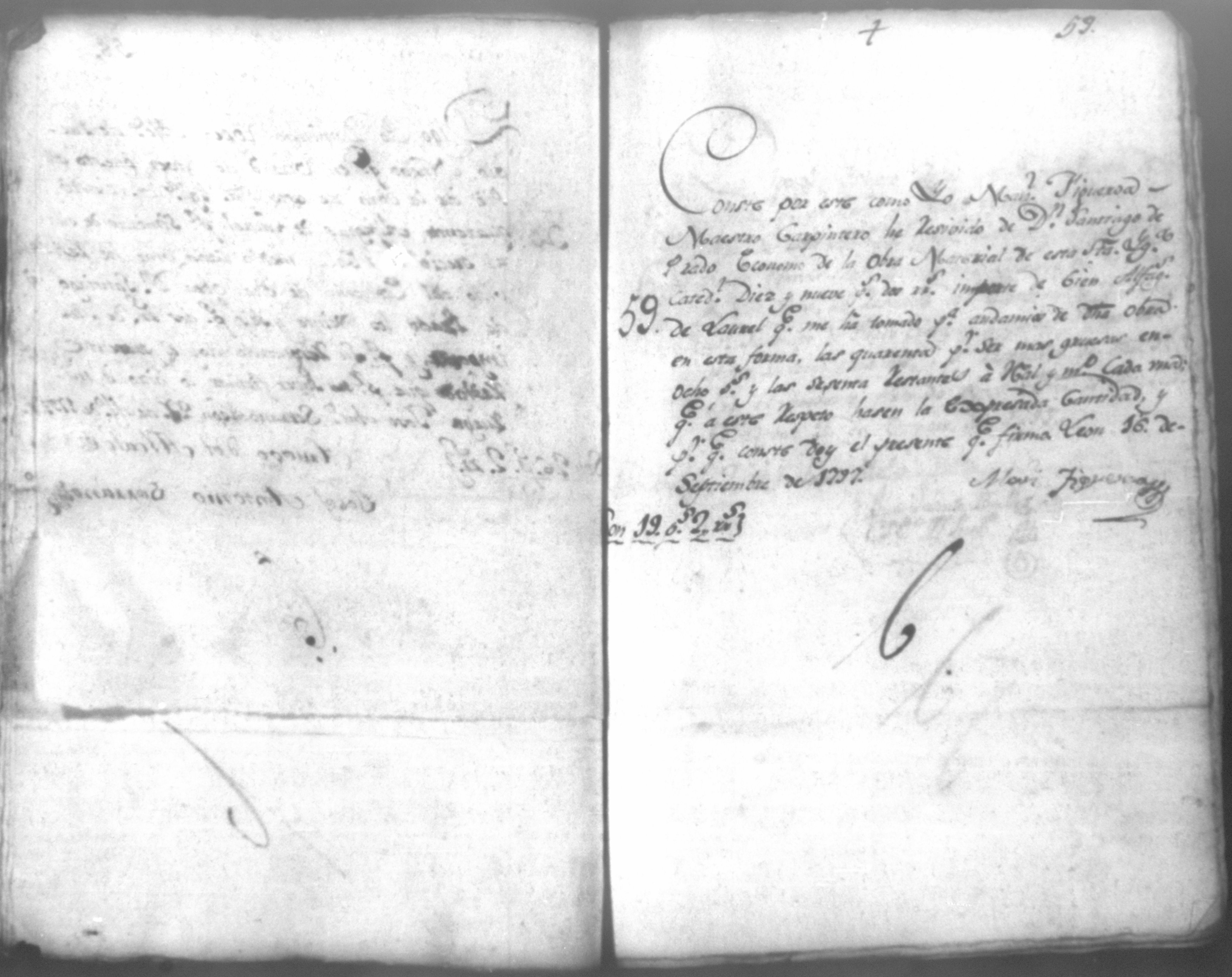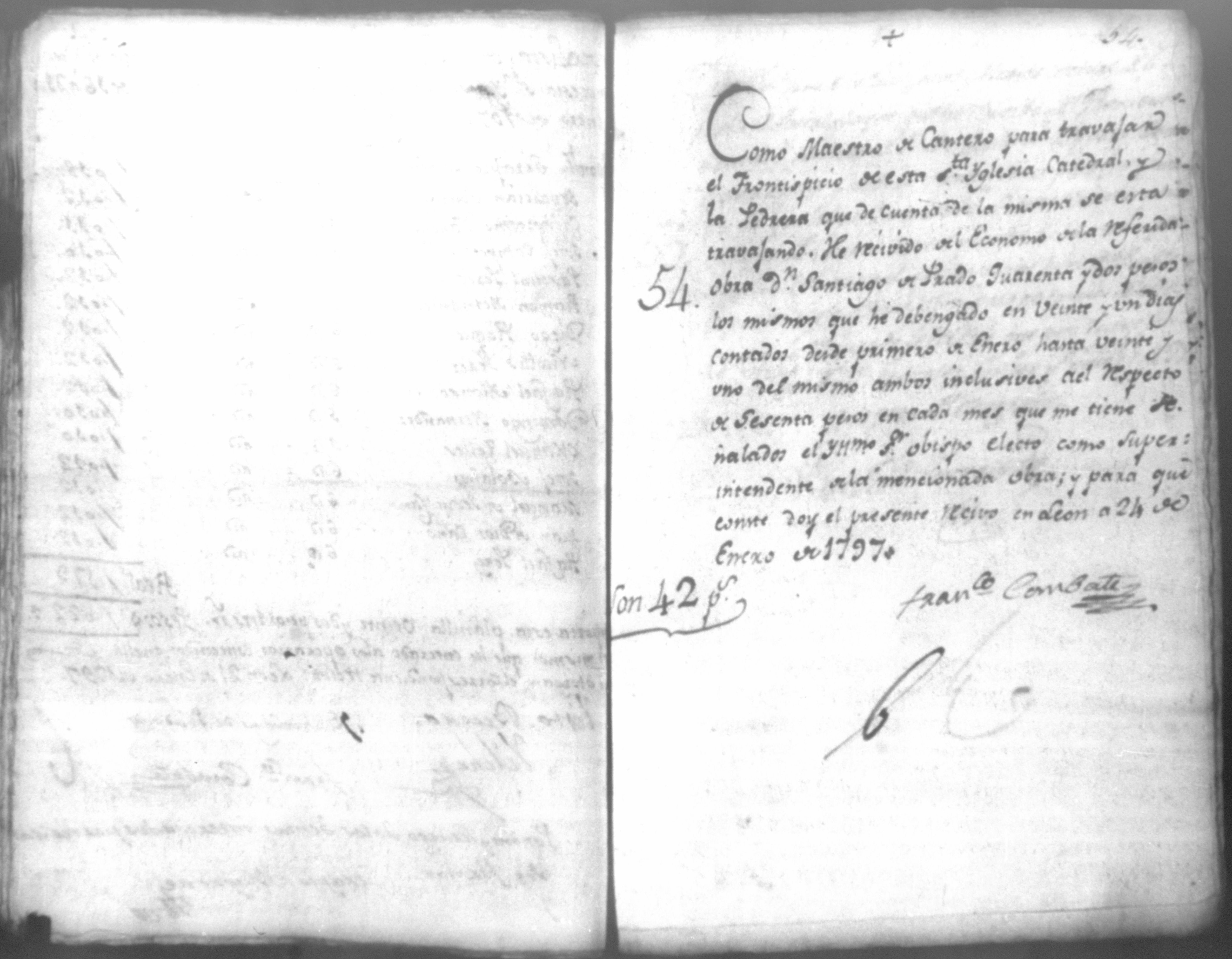 Temática: Quaderno No. 1°. Comprobantes de cargo y data a la cuenta de la obra material de la Santa Iglesia Catedral de León, corresponde a todo el año de 1797