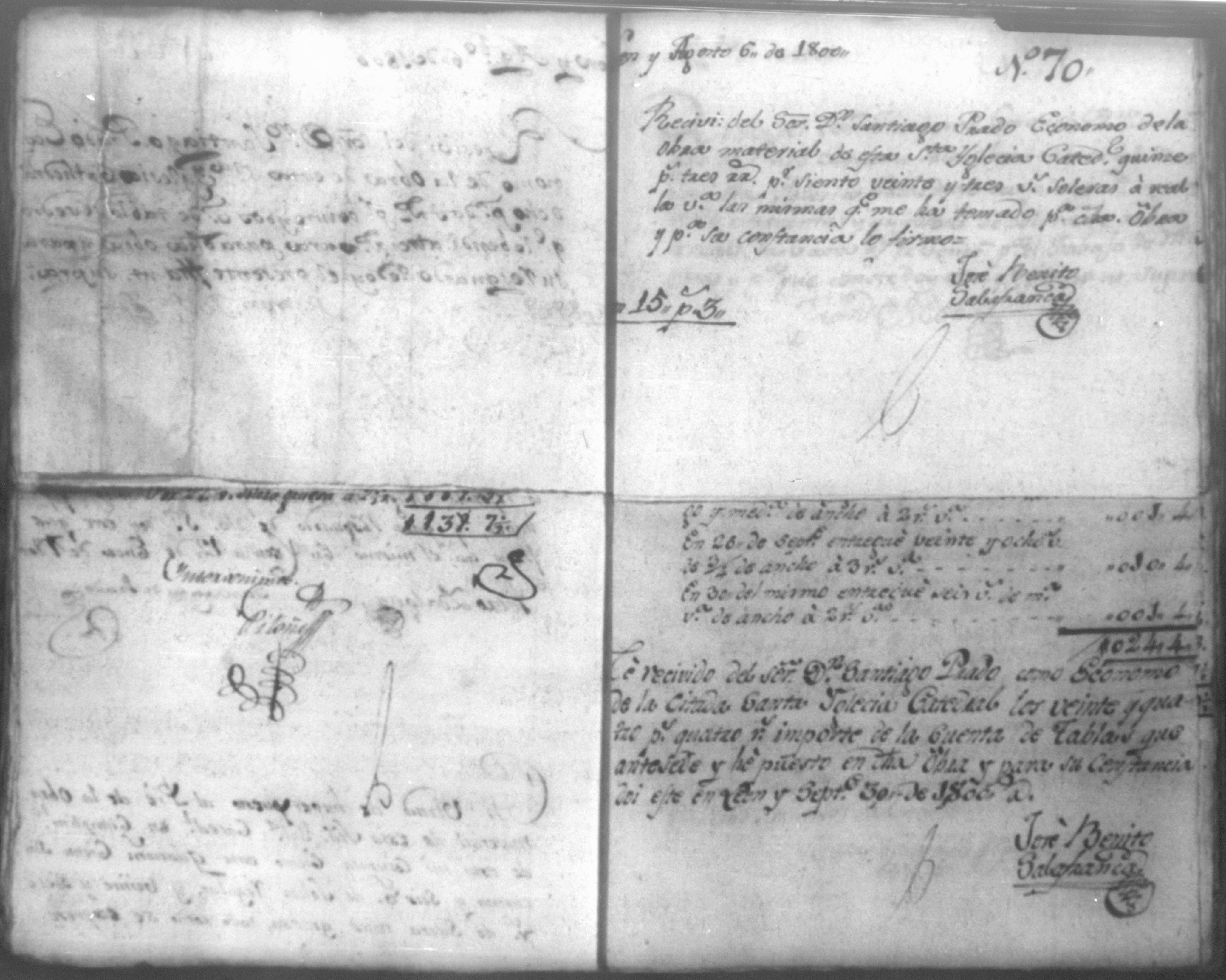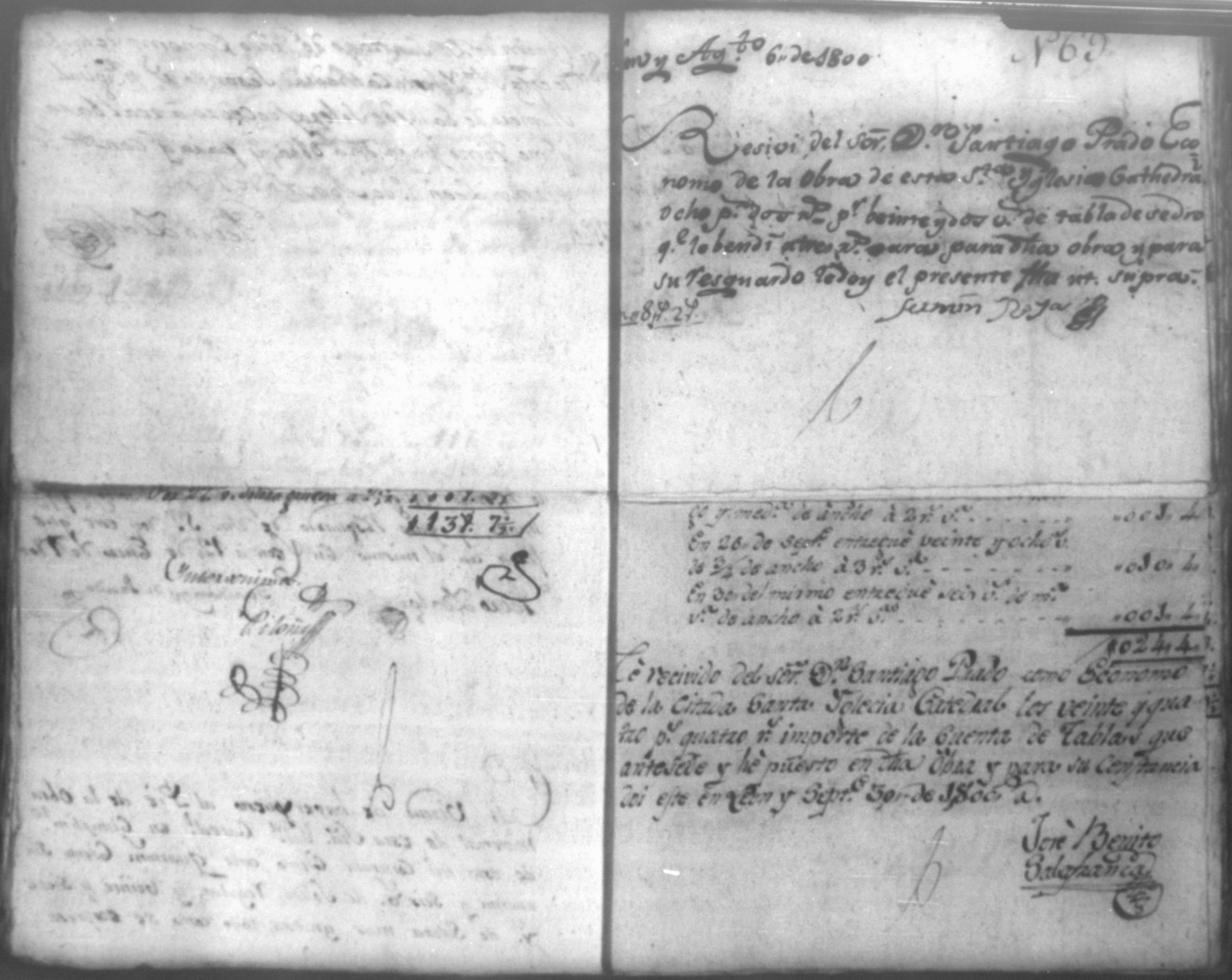 Temática: Año de 1800. 47. Cuaderno de comprobantes de cargo y data que acompañan a la cuenta de la obra material de la Santa Iglesia Catedral de León corrrespondiente a dicho año. Con 81 comprobantes.