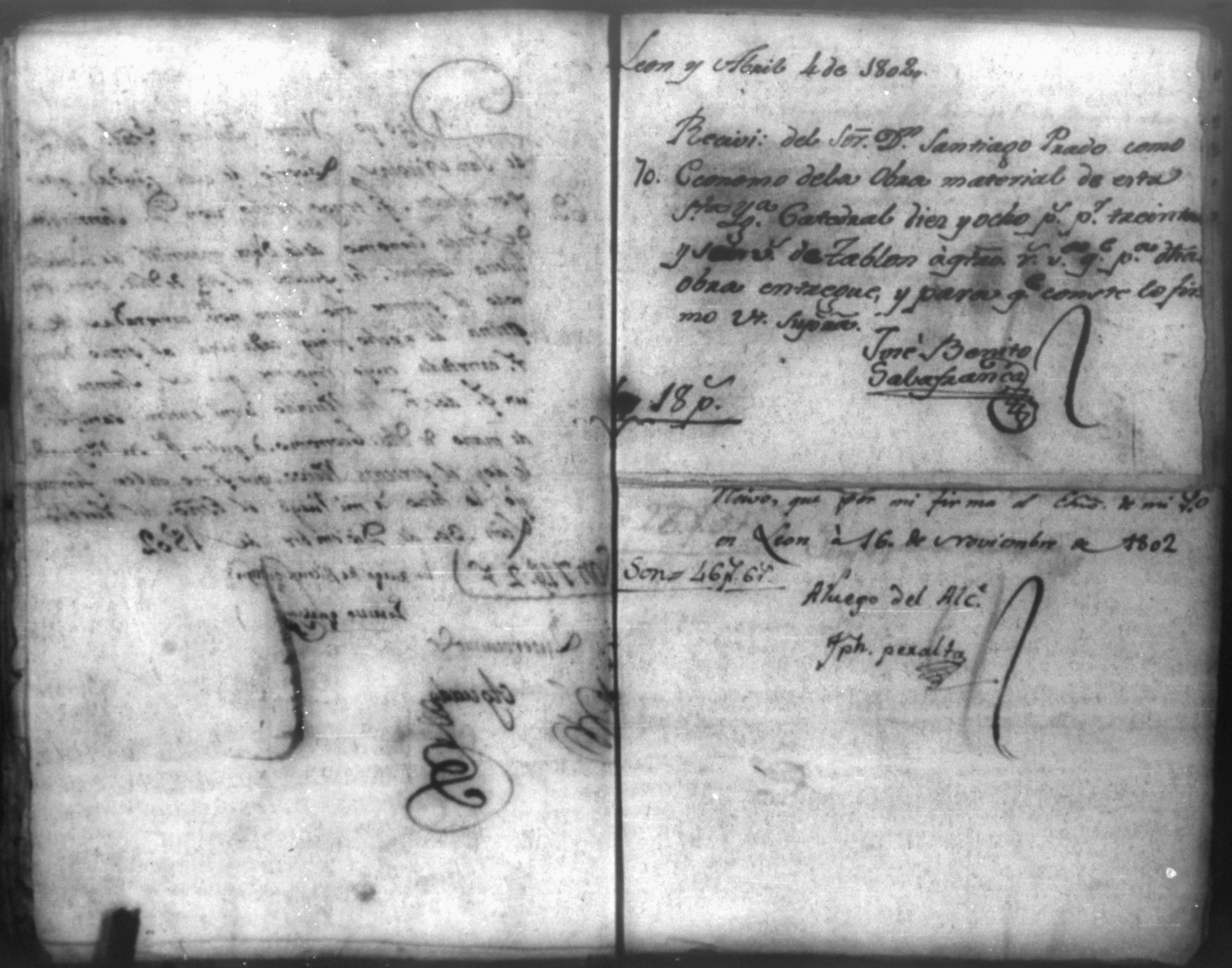 Temática: Cuaderno que contiene ochenta y tres comprobantes de cargo y data que acompañan a la cuenta de la obra material de la Santa Iglesia Catedral de León, correspondiente a todo el año de 1802 la que se dirige a la contabilidad mayor del reyno.