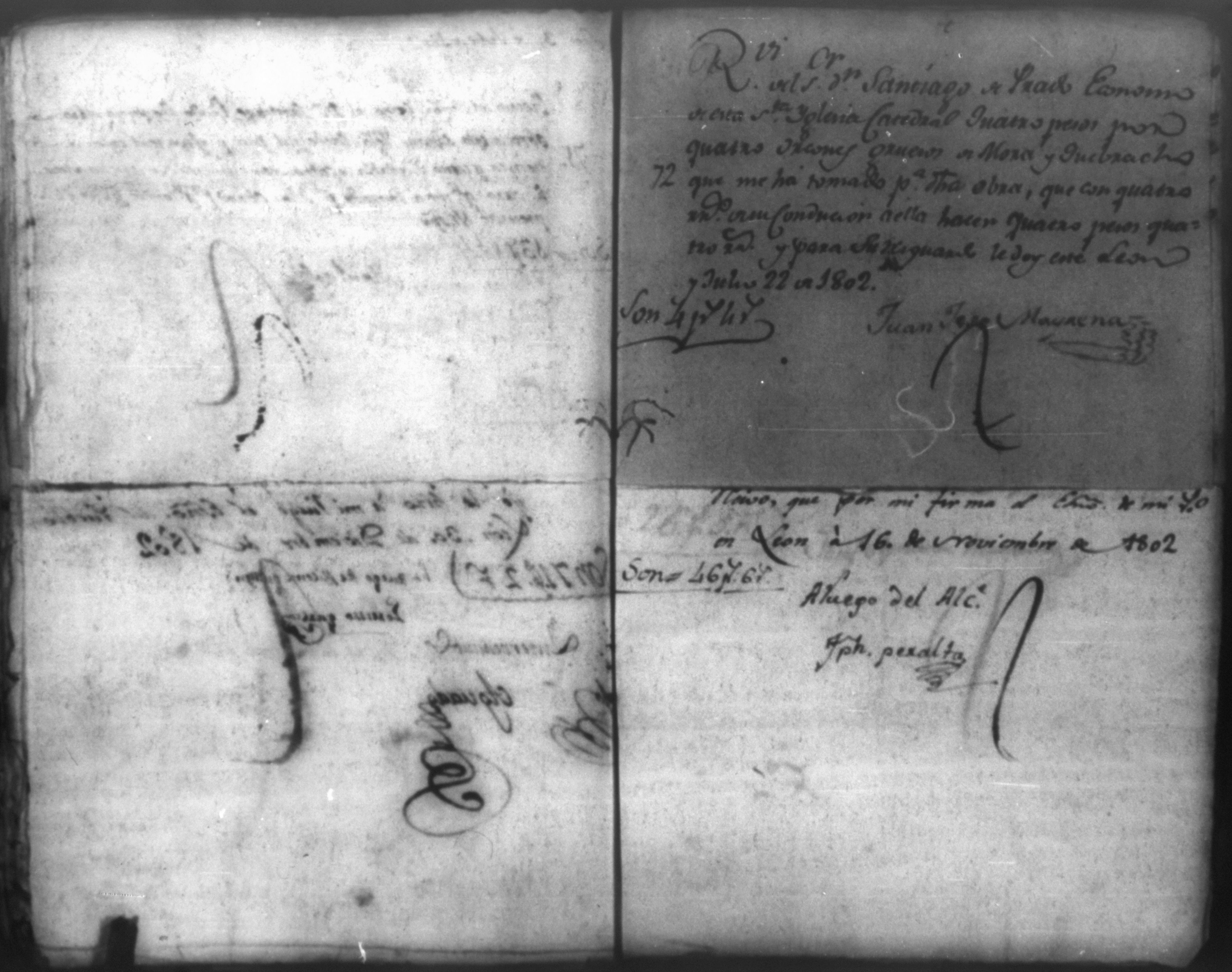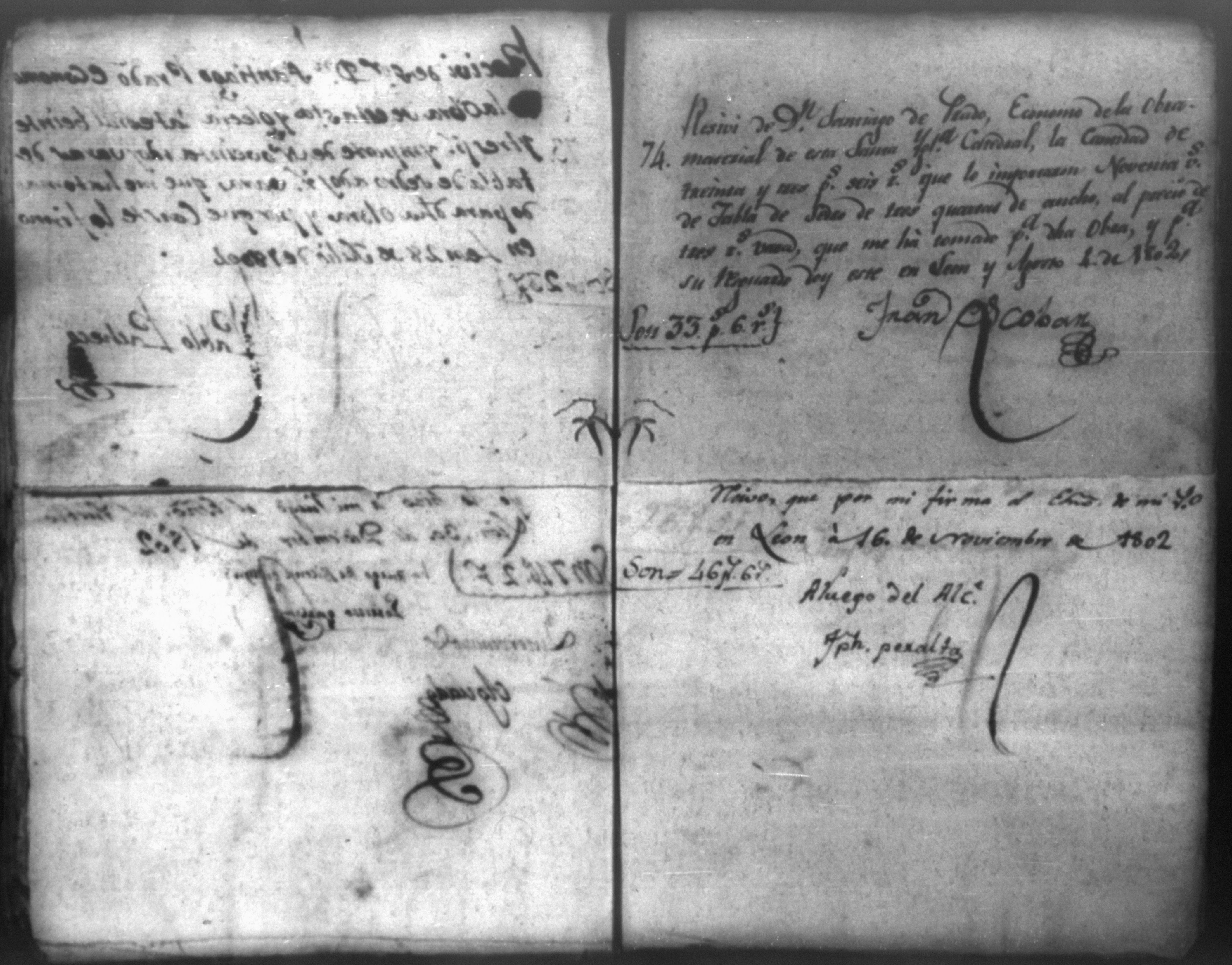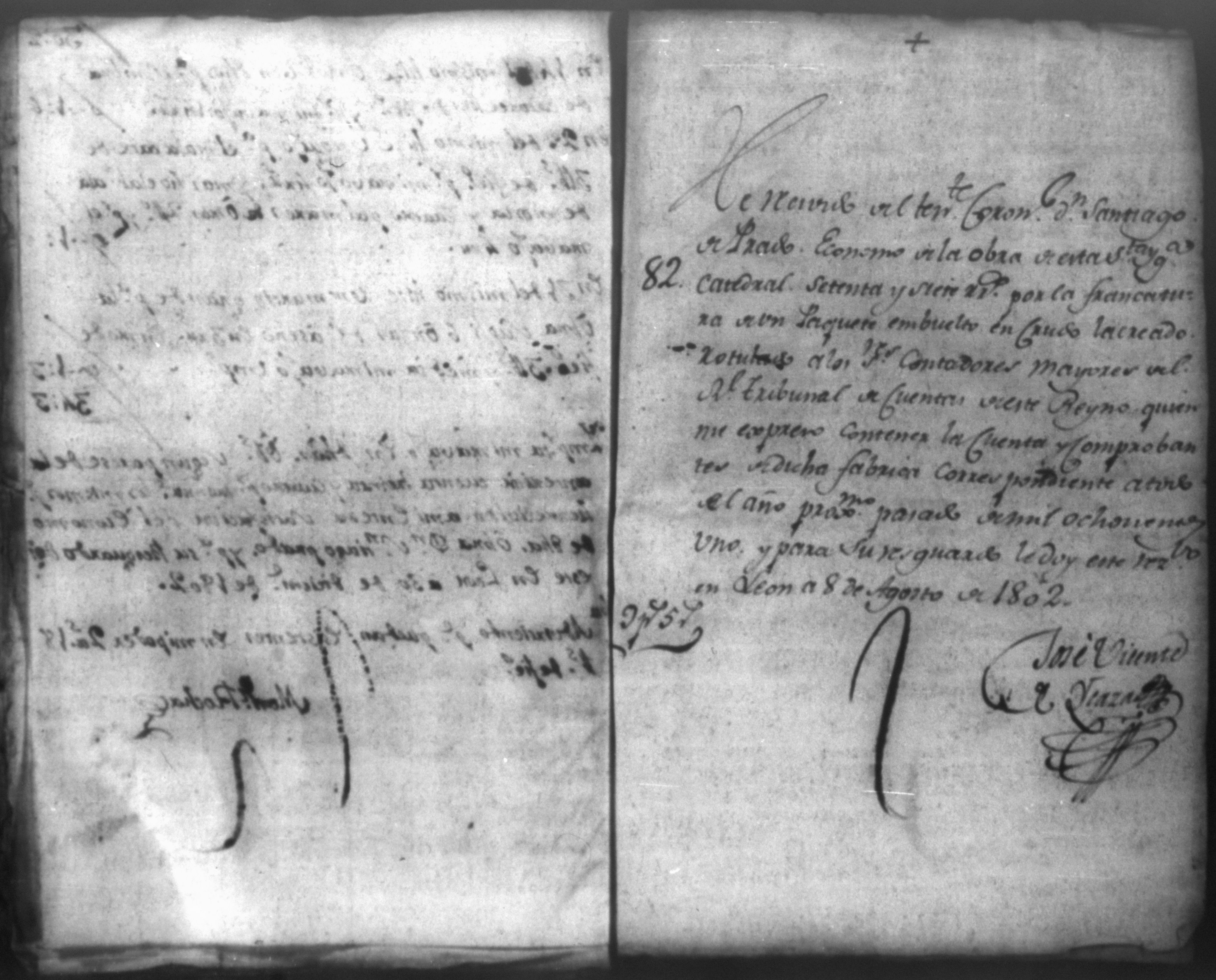 Temática: Cuaderno que contiene ochenta y tres comprobantes de cargo y data que acompañan a la cuenta de la obra material de la Santa Iglesia Catedral de León, correspondiente a todo el año de 1802 la que se dirige a la contabilidad mayor del reyno.