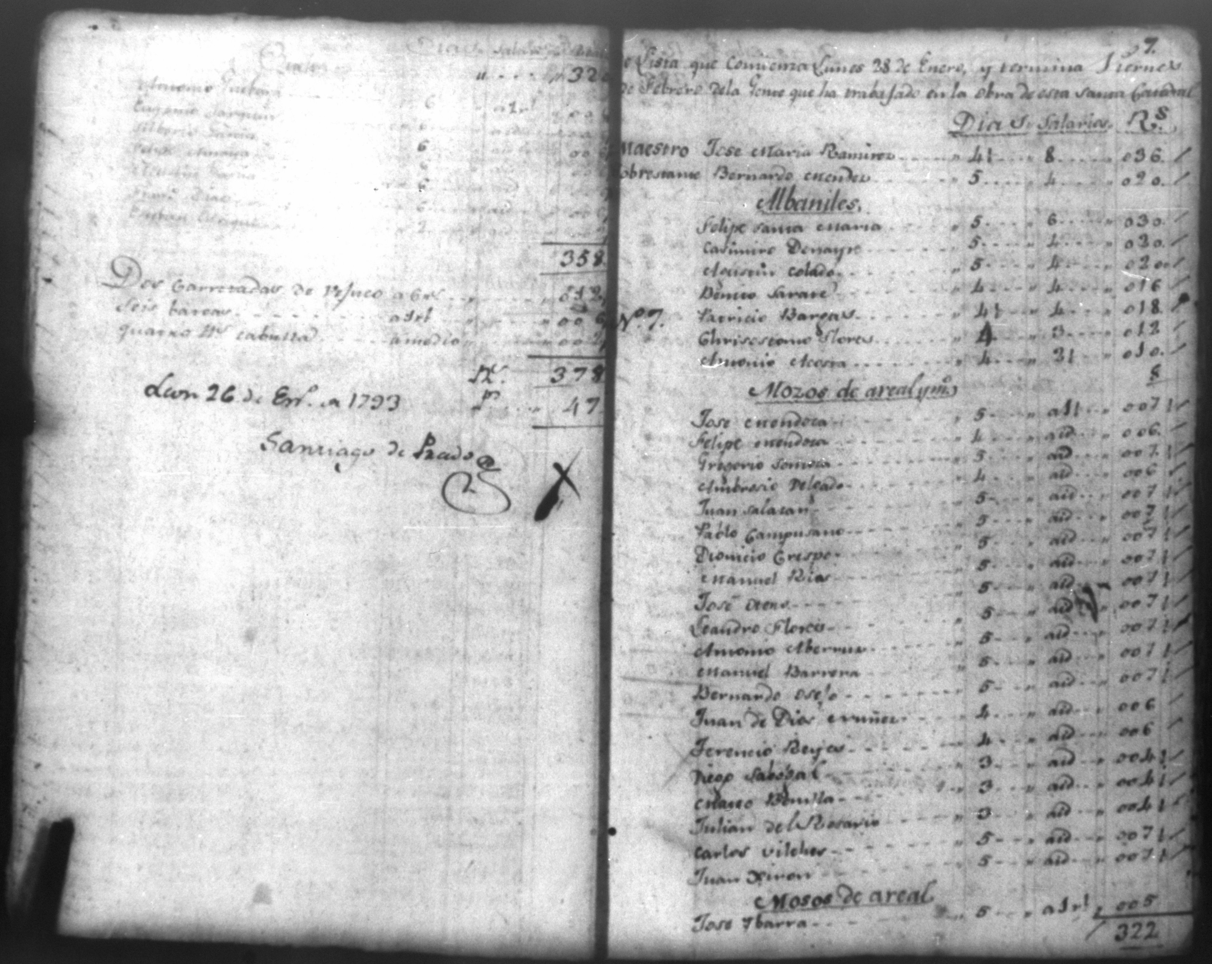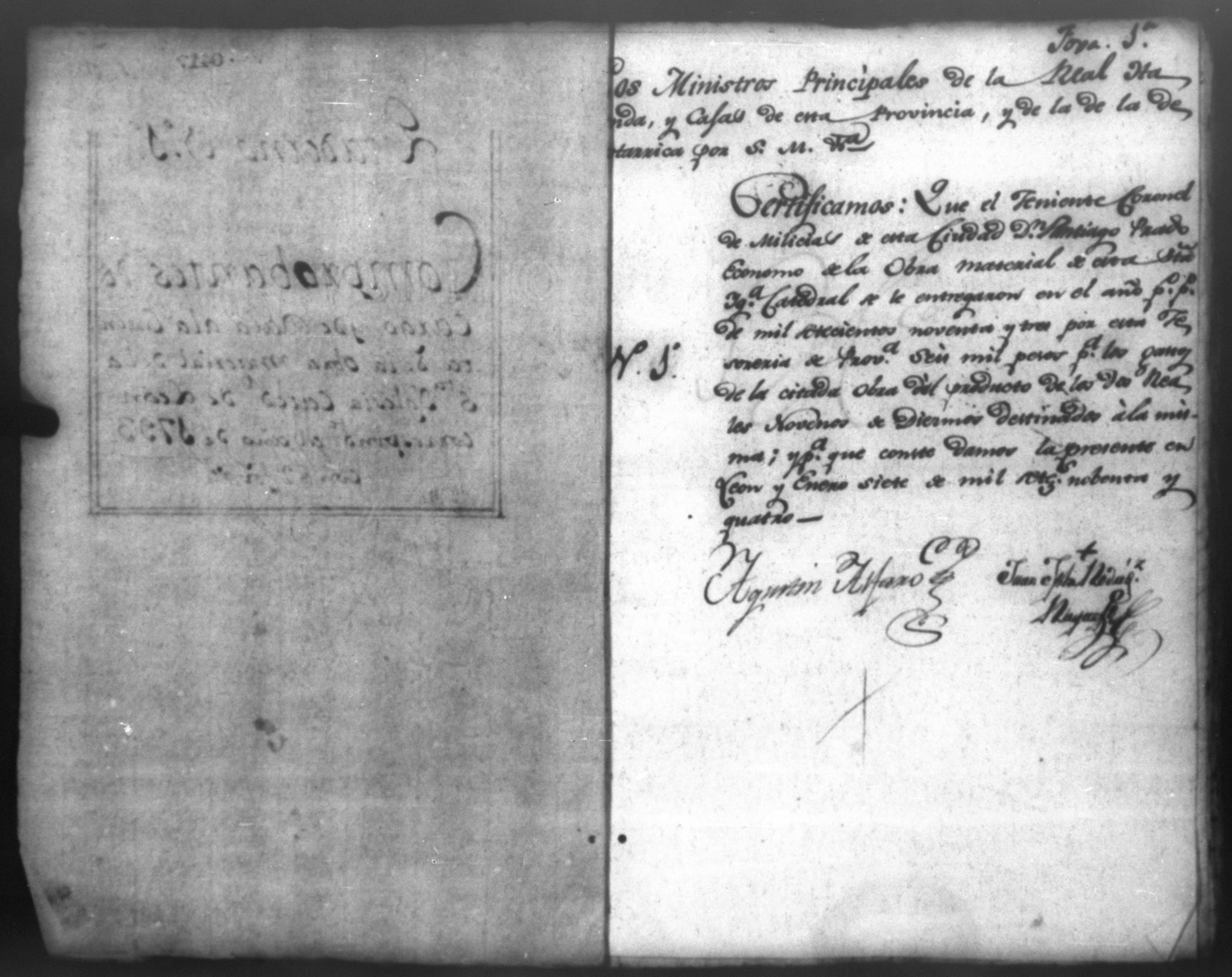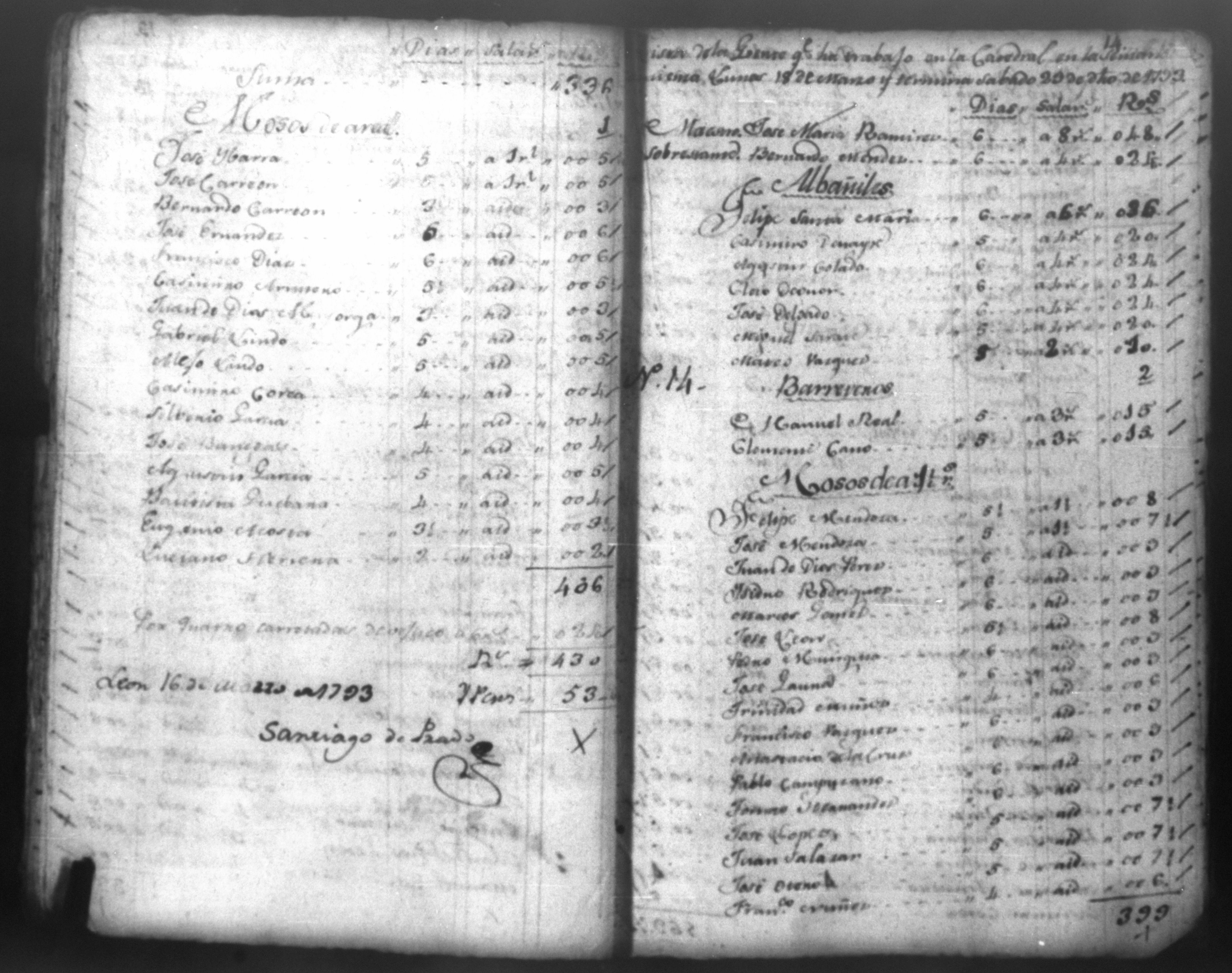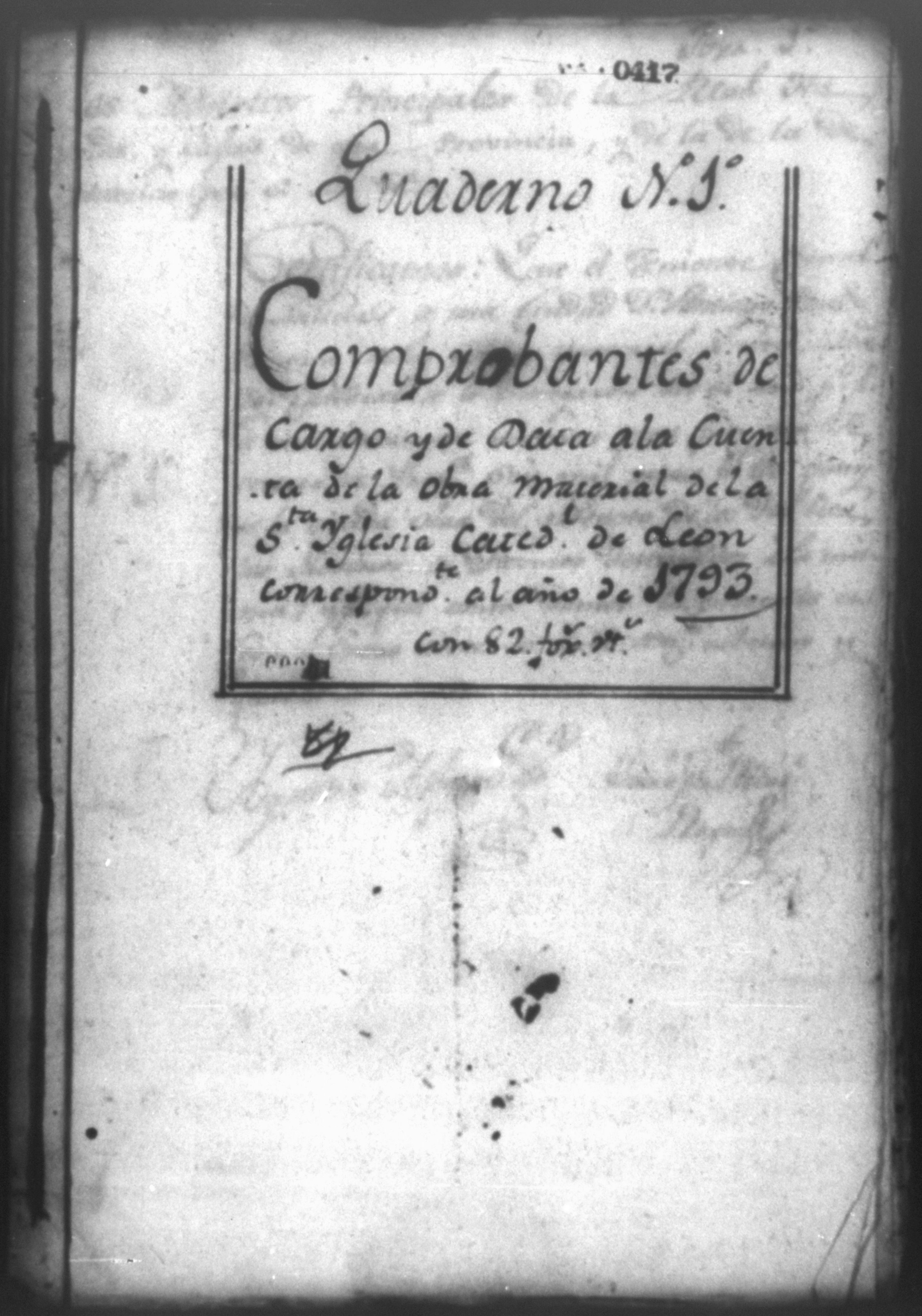 Temática: Quaderno N. 1°. Comprobantes de Cargo y de Data a la cuenta de la obra material de la Santa Yglesia Cathedral de Leon correspondiente al año de 1793. con 82 [foxas utiles]