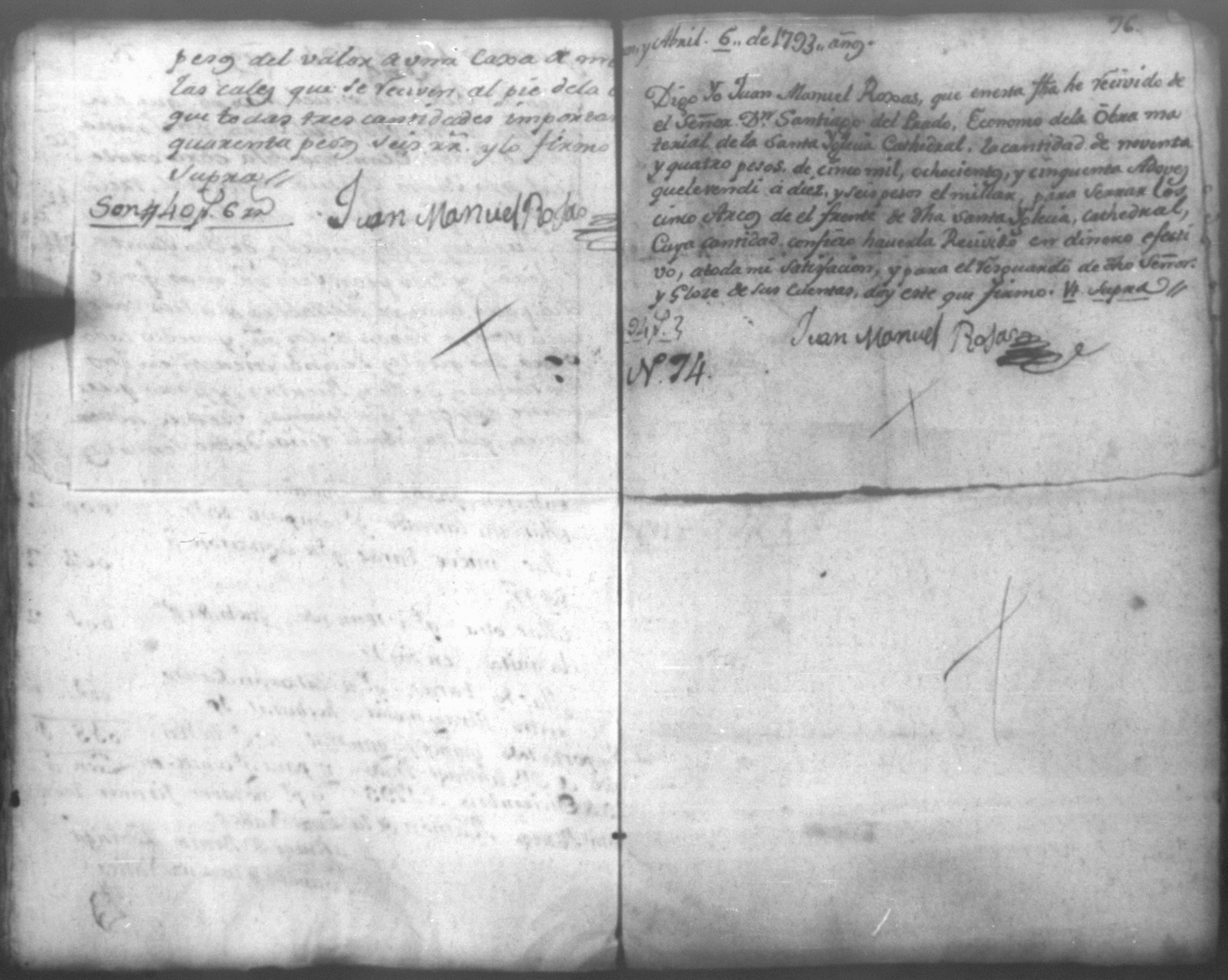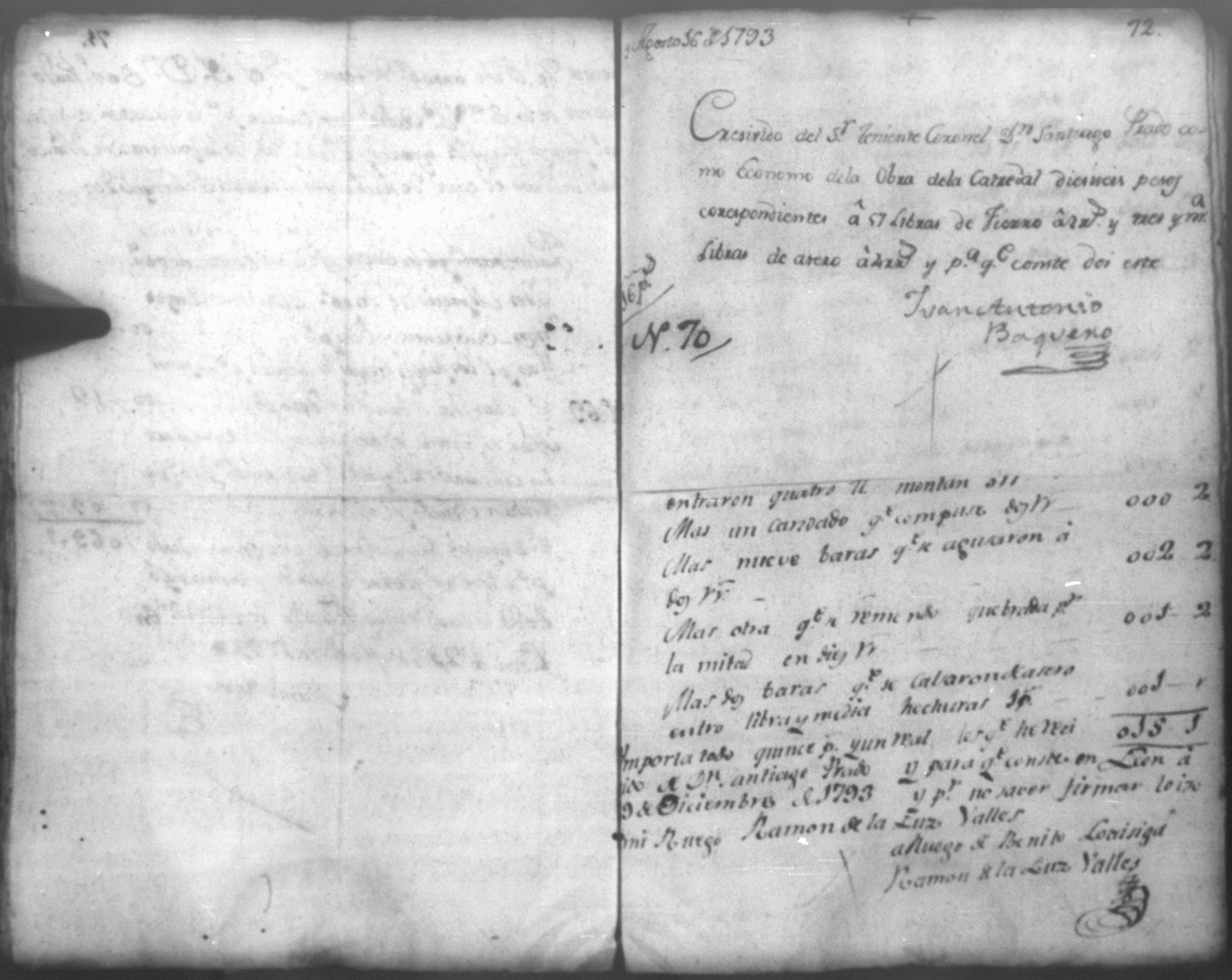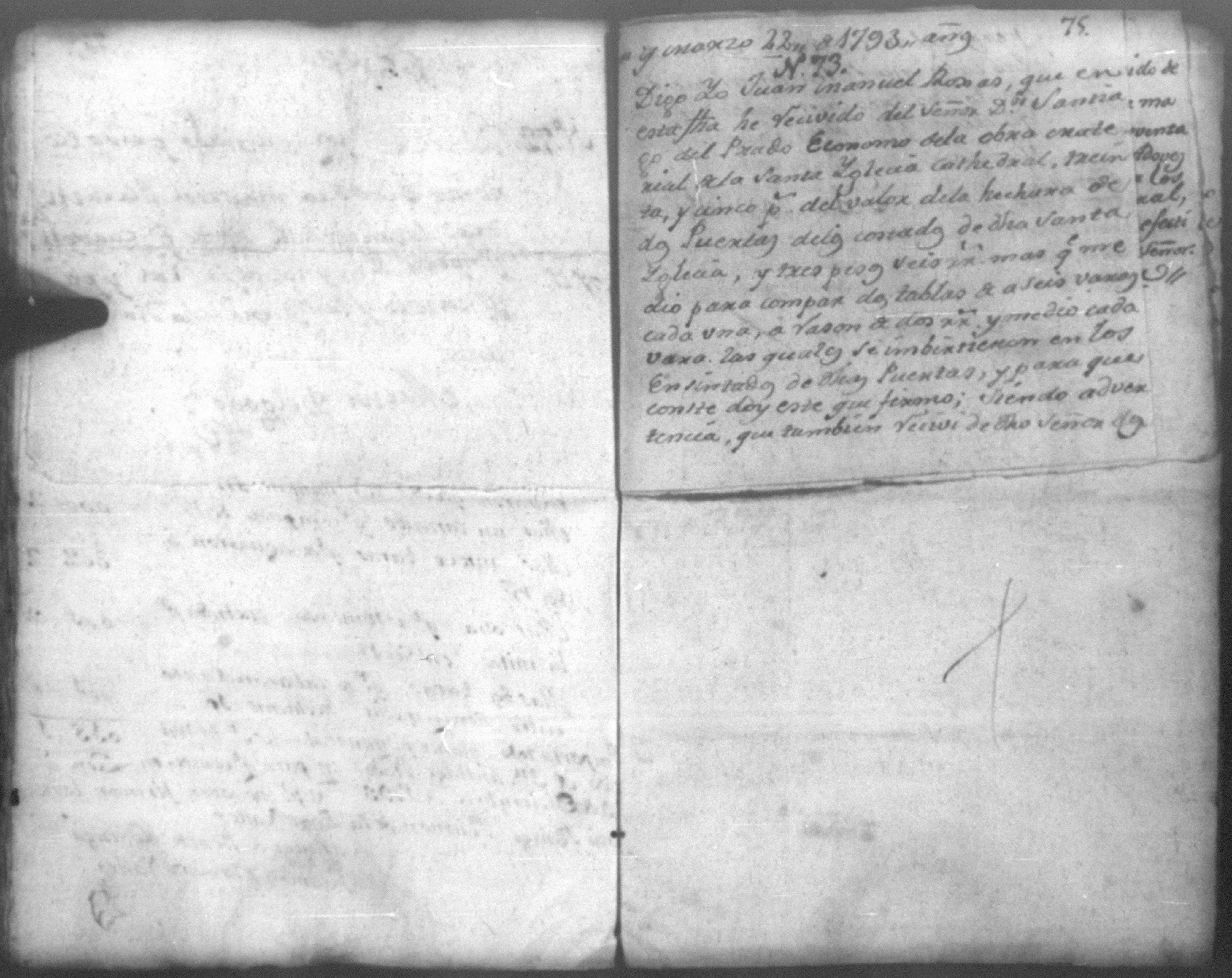 Temática: Quaderno N. 1°. Comprobantes de Cargo y de Data a la cuenta de la obra material de la Santa Yglesia Cathedral de Leon correspondiente al año de 1793. con 82 [foxas utiles]