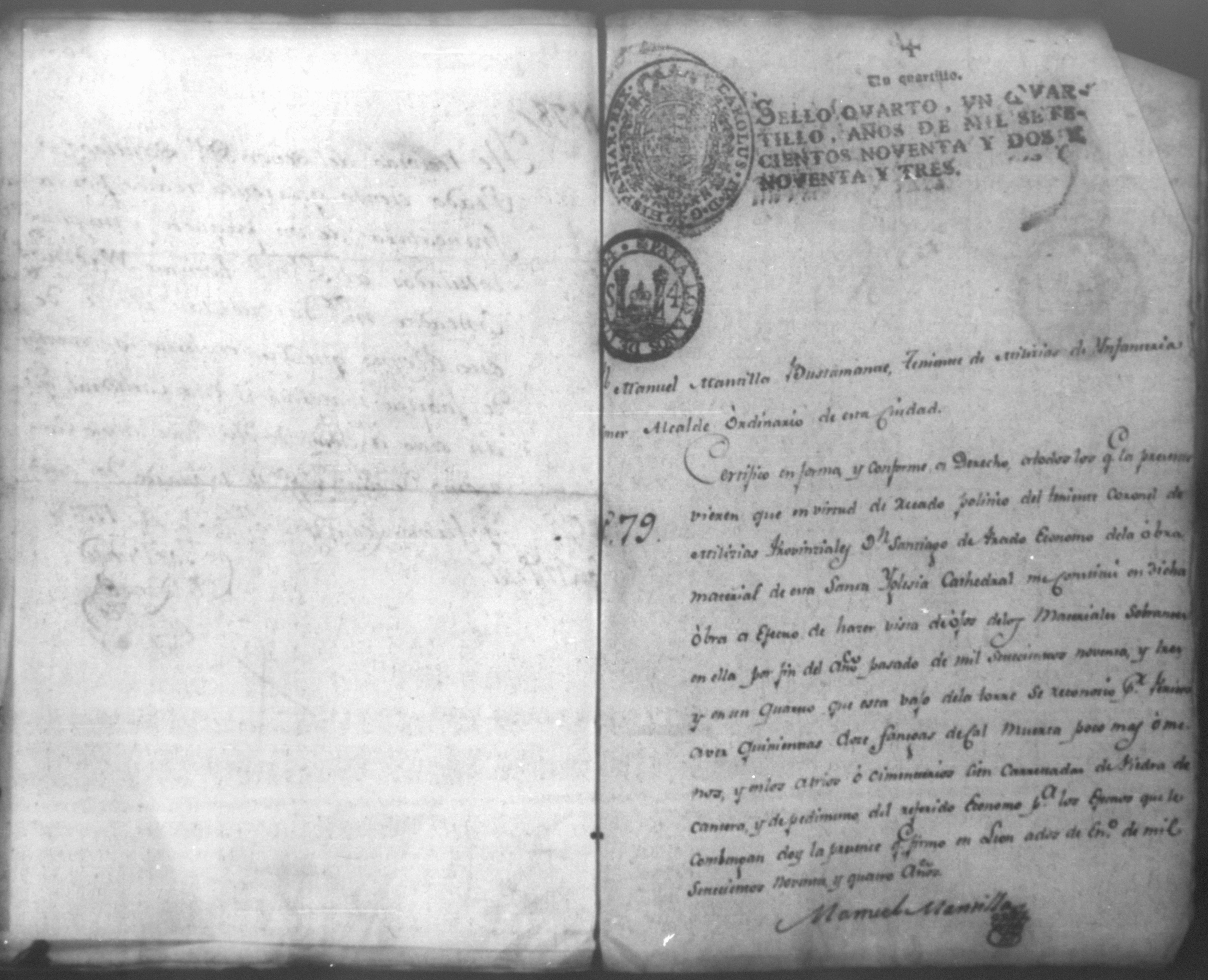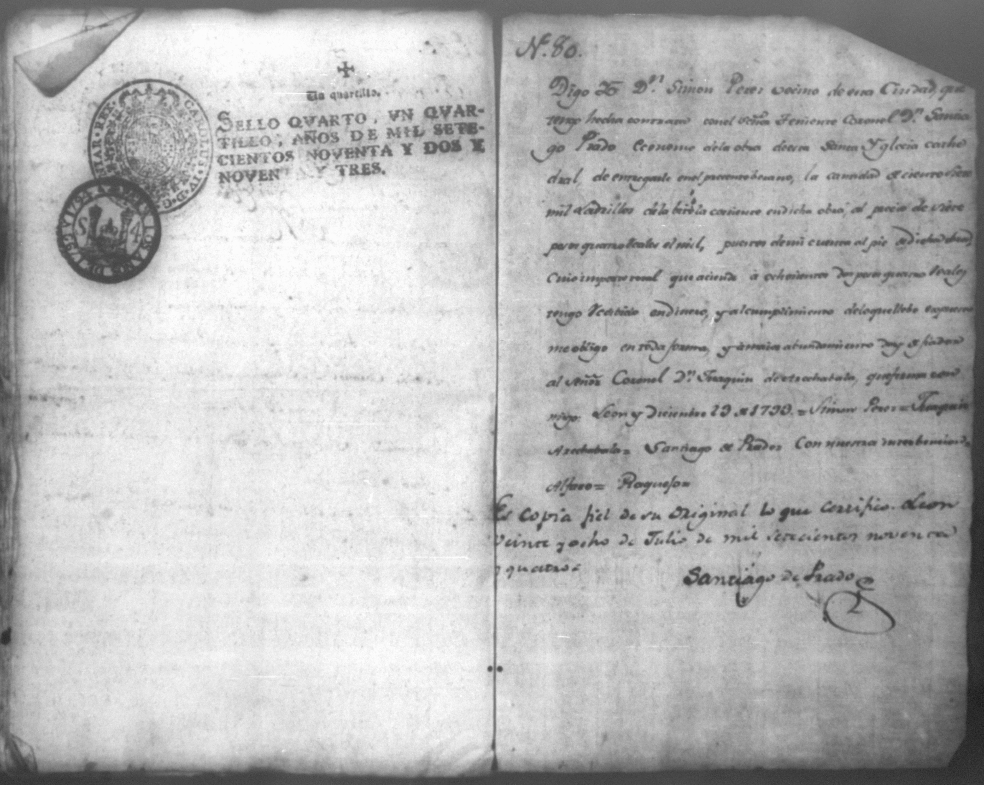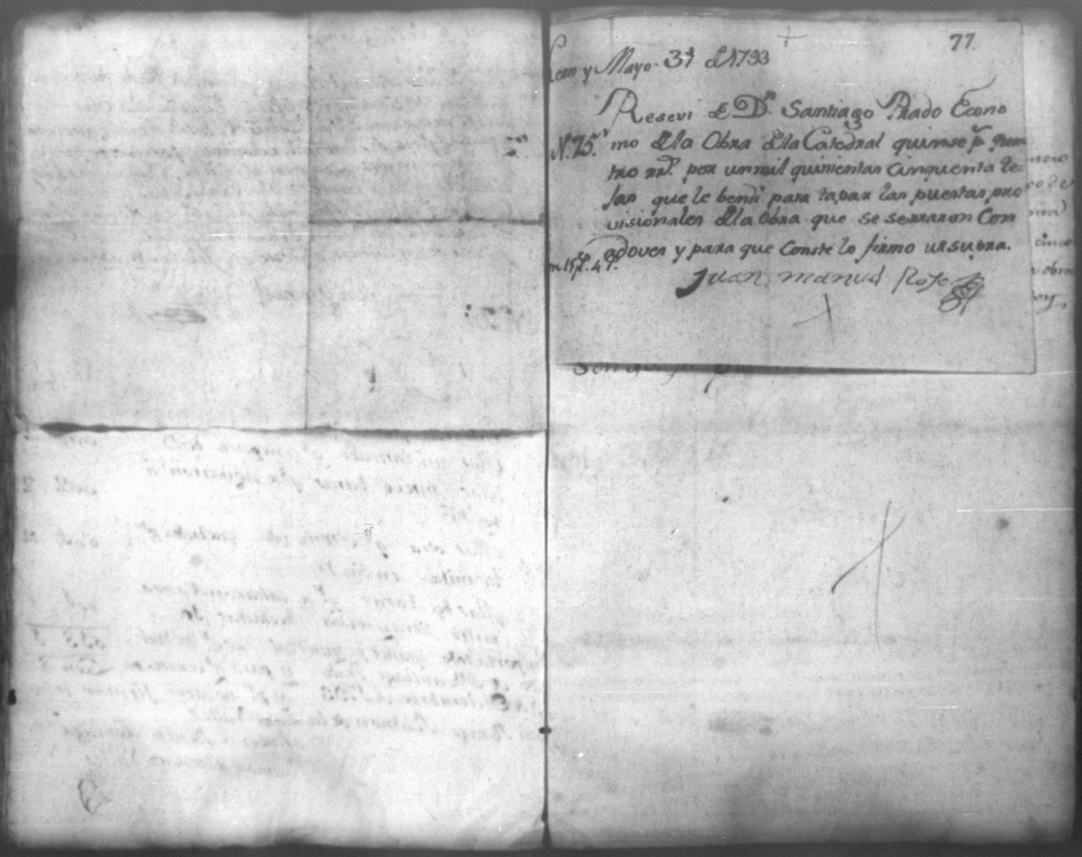 Temática: Quaderno N. 1°. Comprobantes de Cargo y de Data a la cuenta de la obra material de la Santa Yglesia Cathedral de Leon correspondiente al año de 1793. con 82 [foxas utiles]